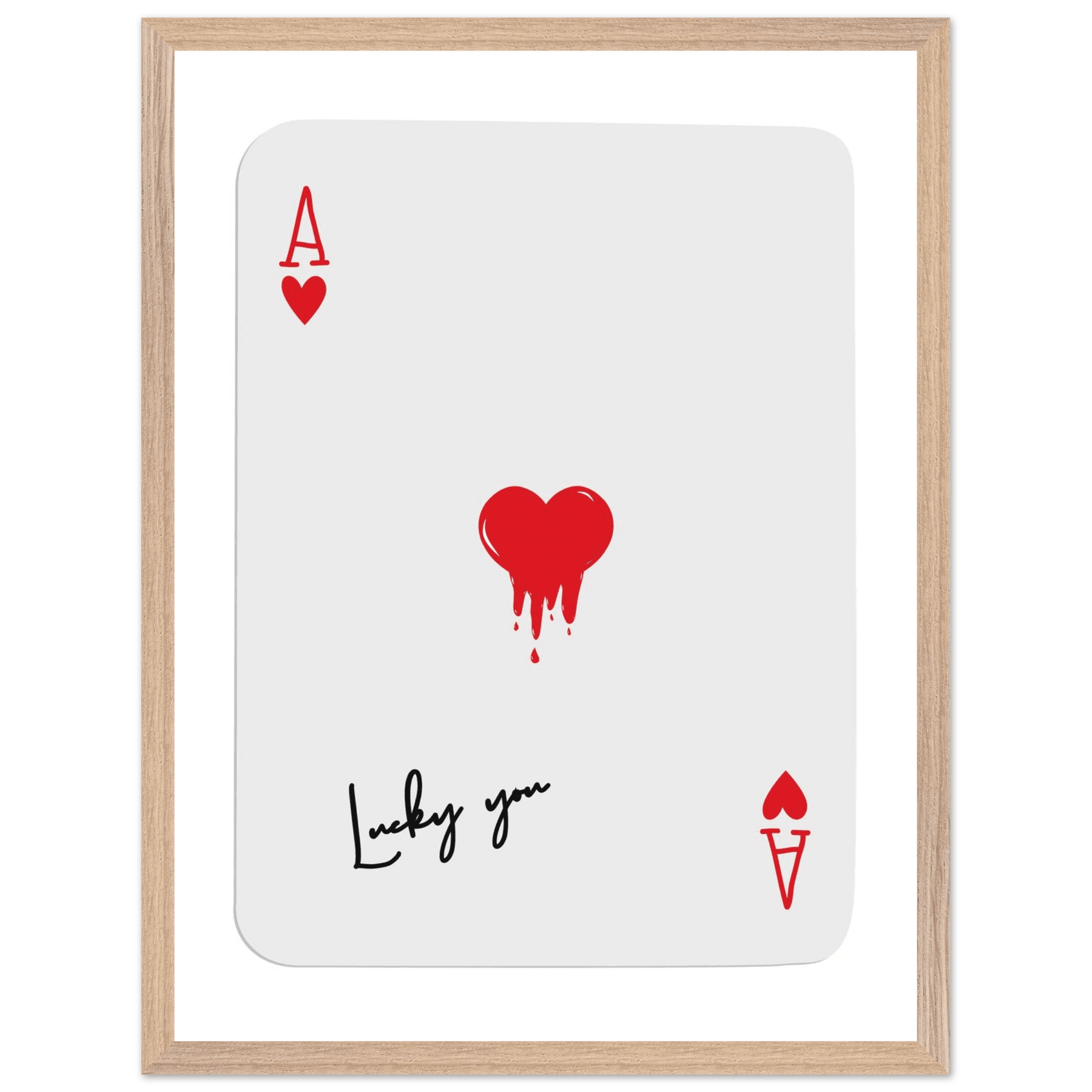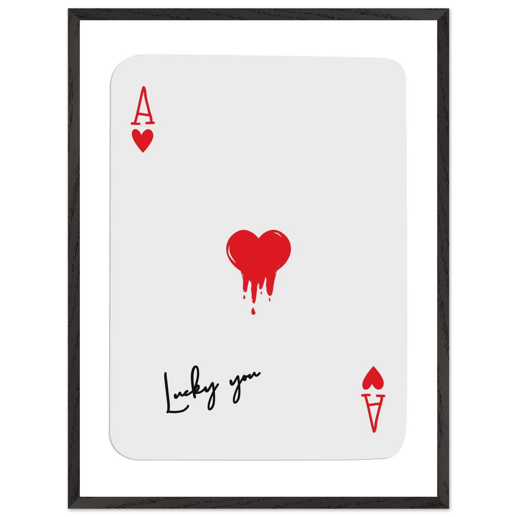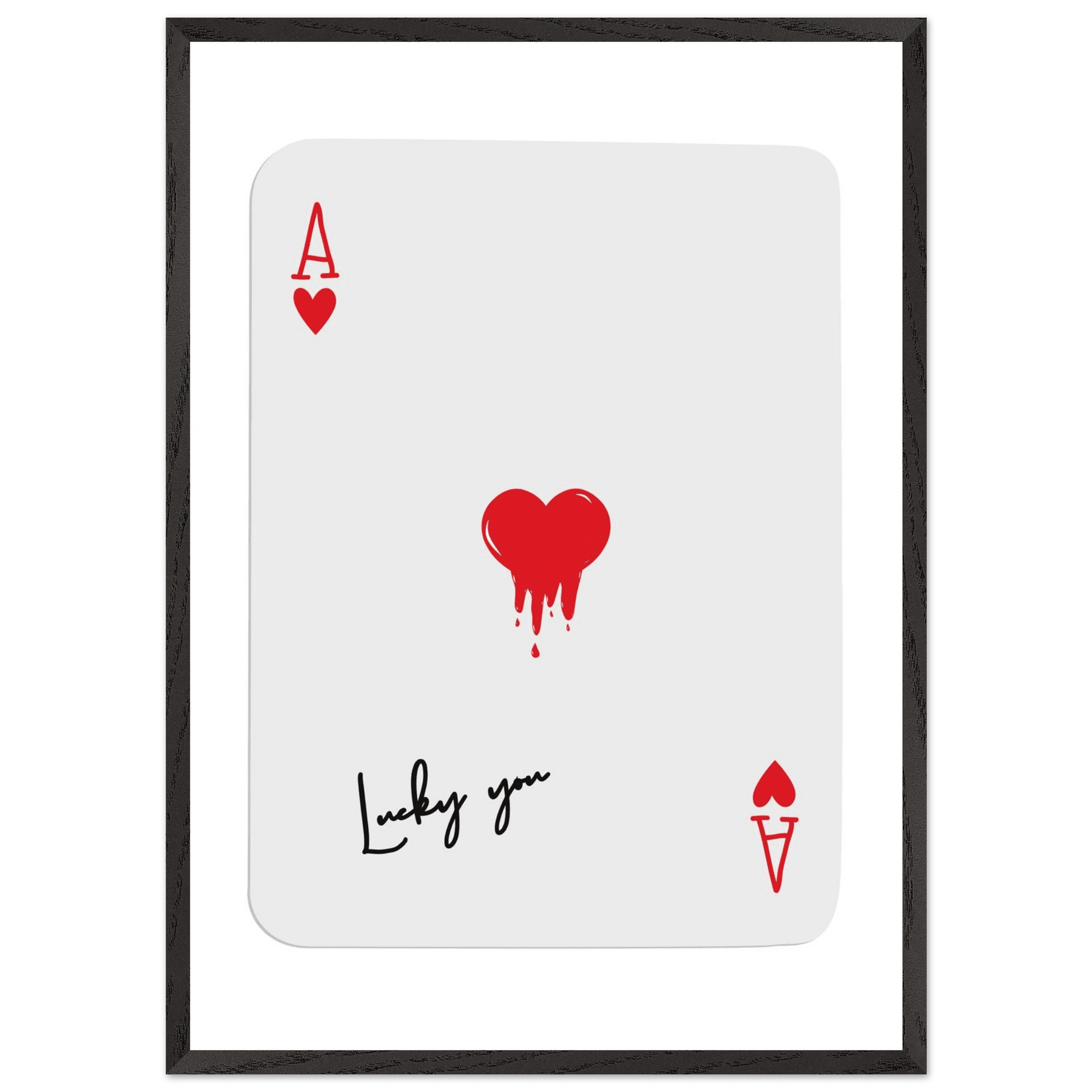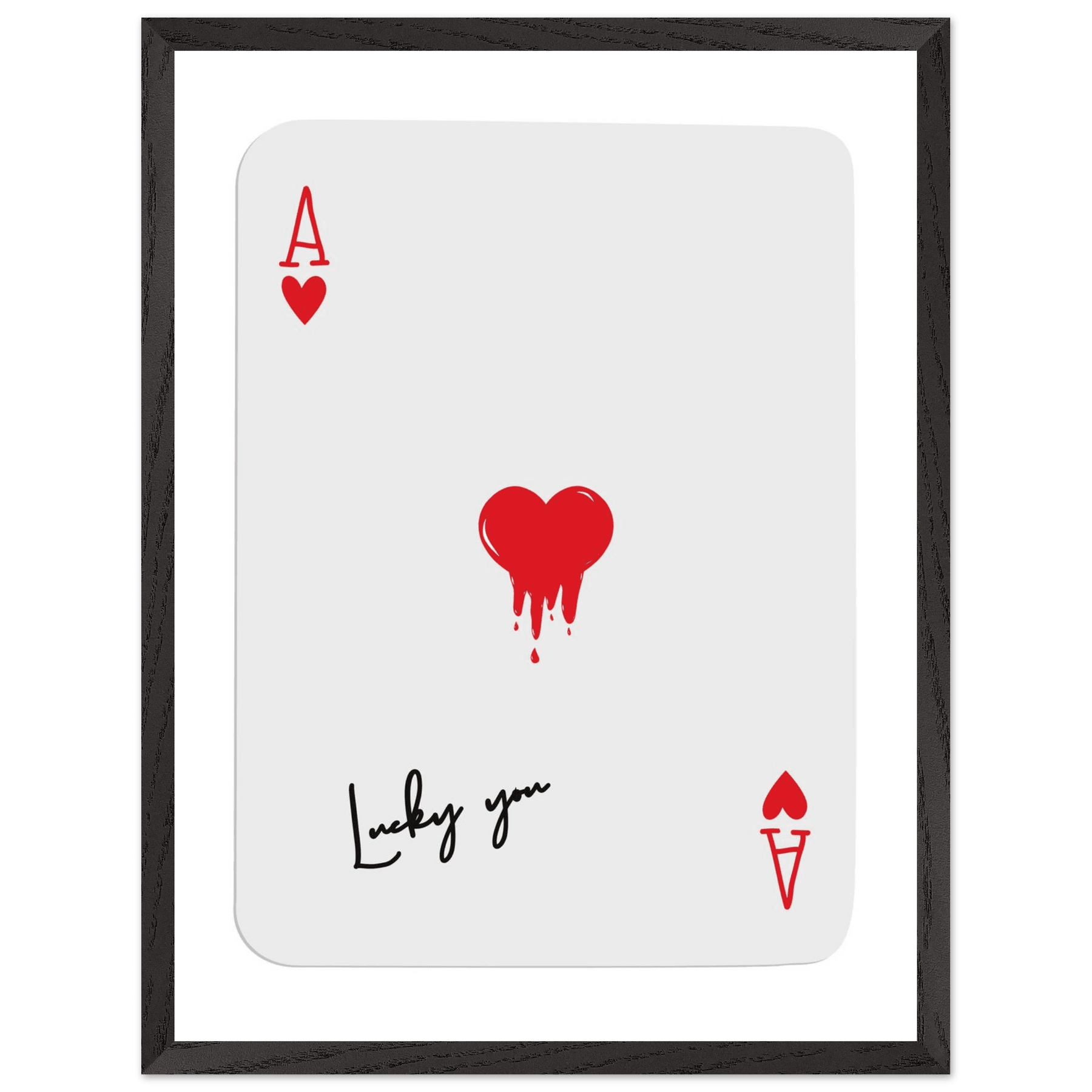 Lucky You Ace of Hearts Poker Card Print - Dripping Heart Art Poster, Eco-Friendly Wood Frame