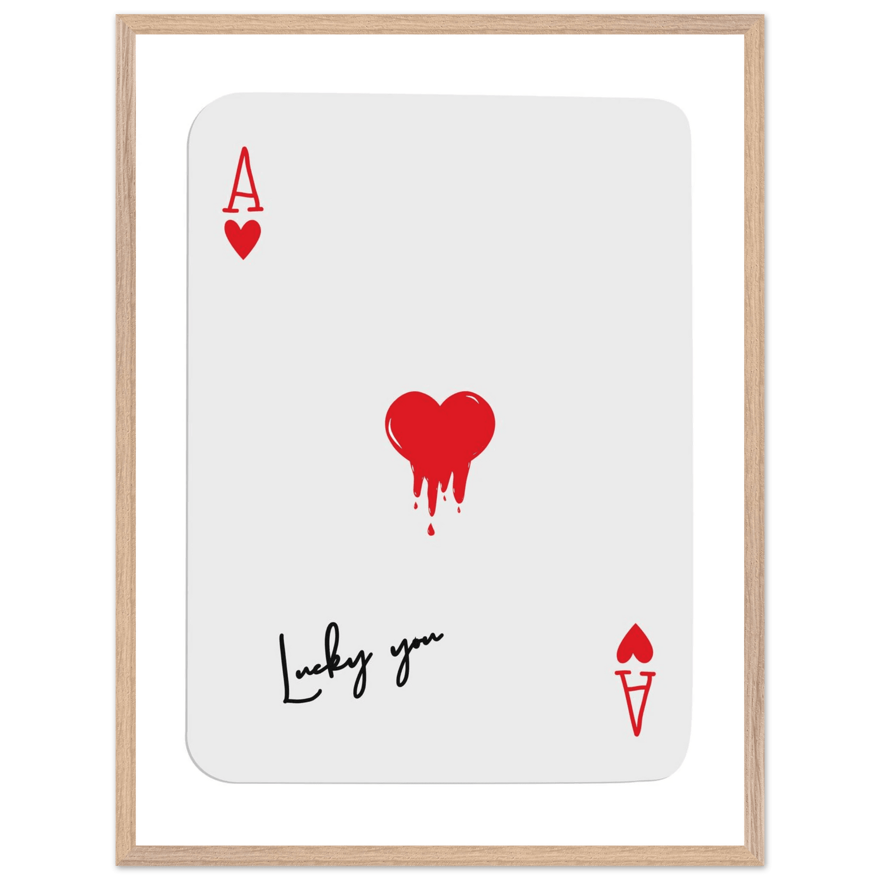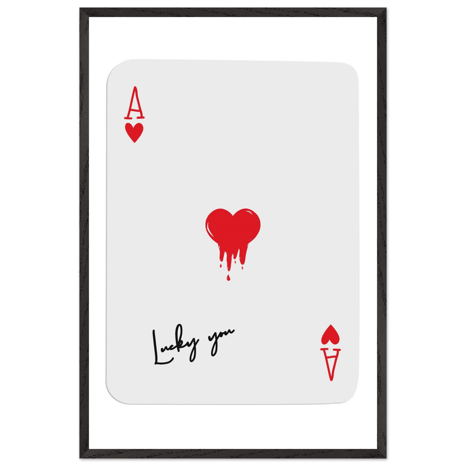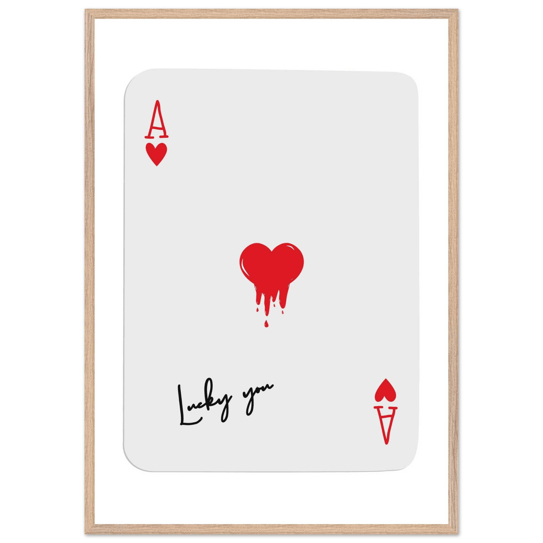 Lucky You Ace of Hearts Poker Card Print - Dripping Heart Art Poster, Eco-Friendly Wood Frame