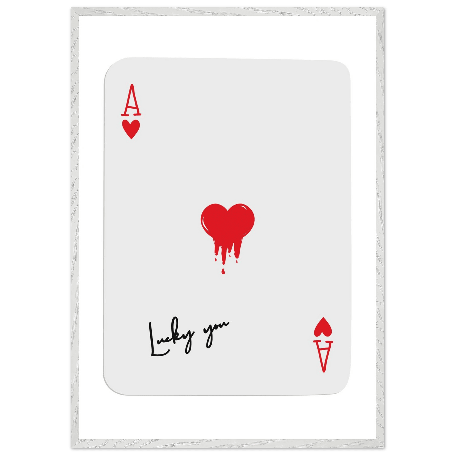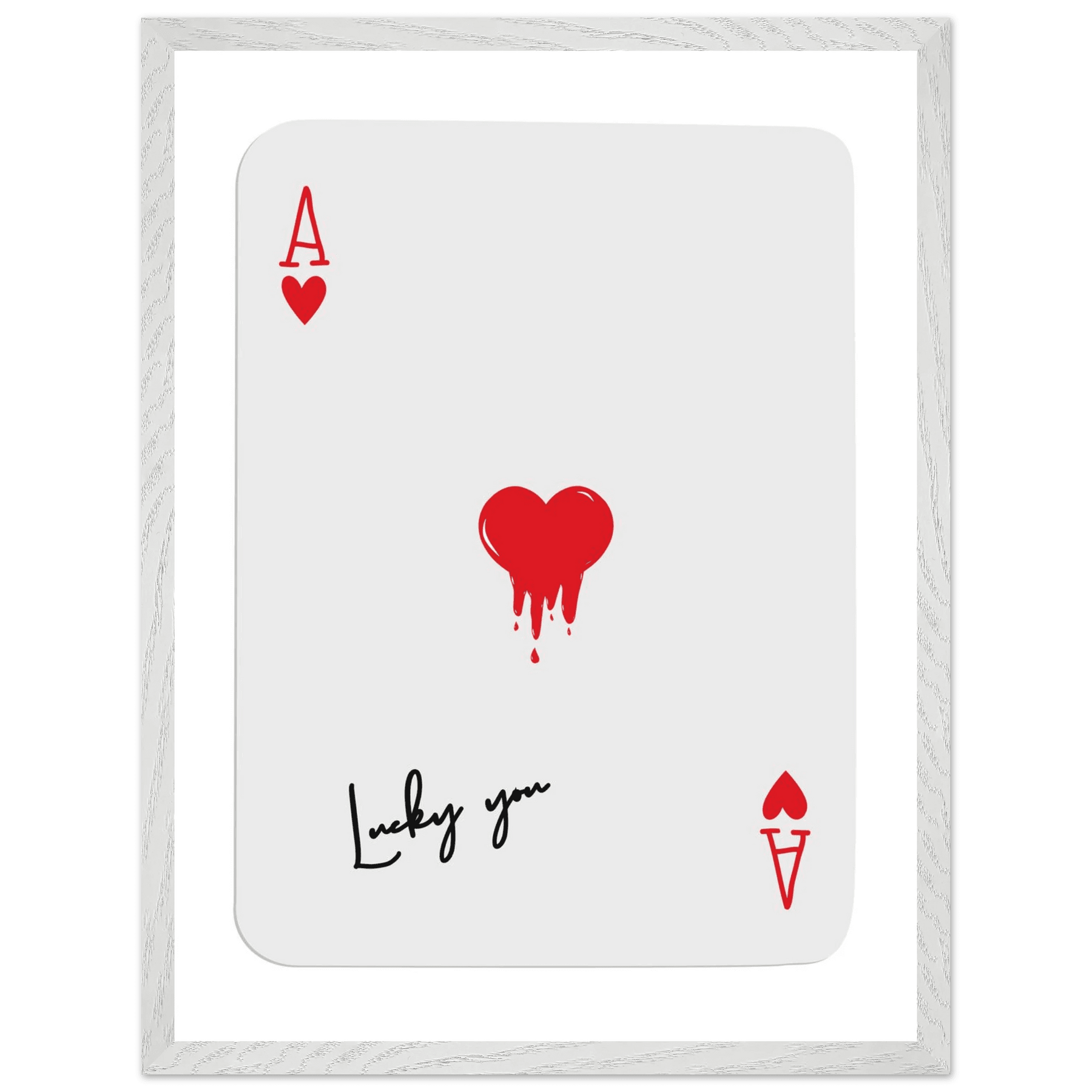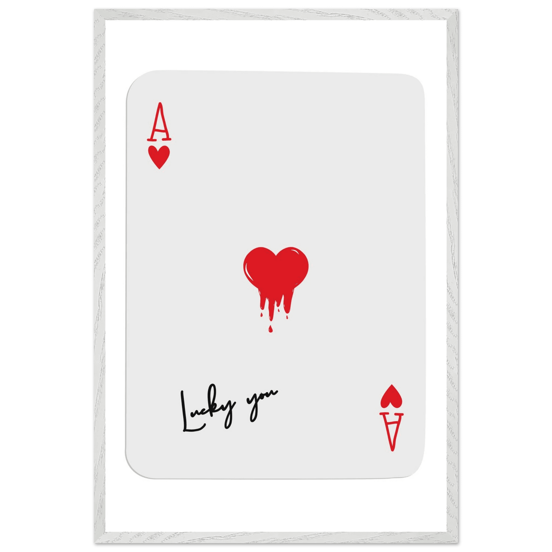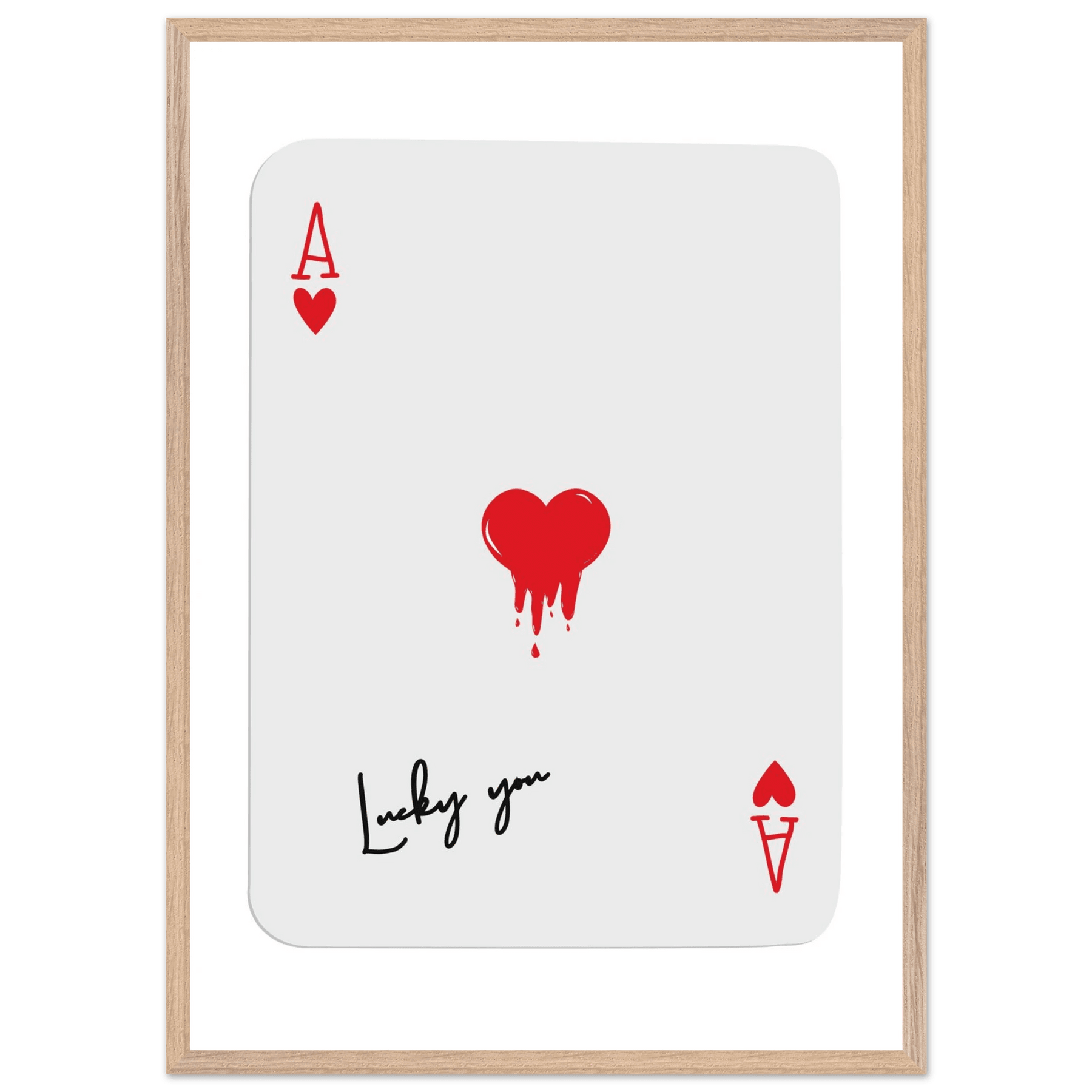 Lucky You Ace of Hearts Poker Card Print - Dripping Heart Art Poster, Eco-Friendly Wood Frame