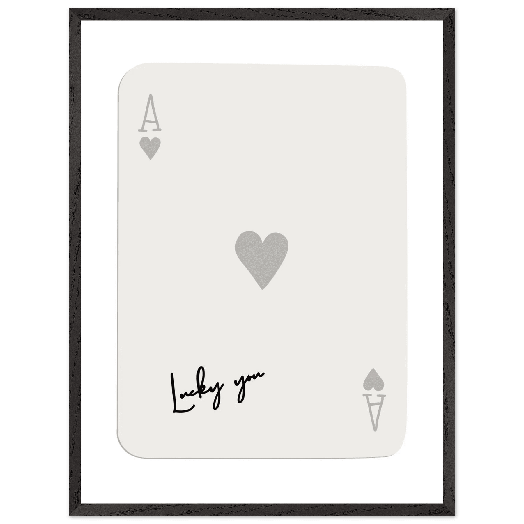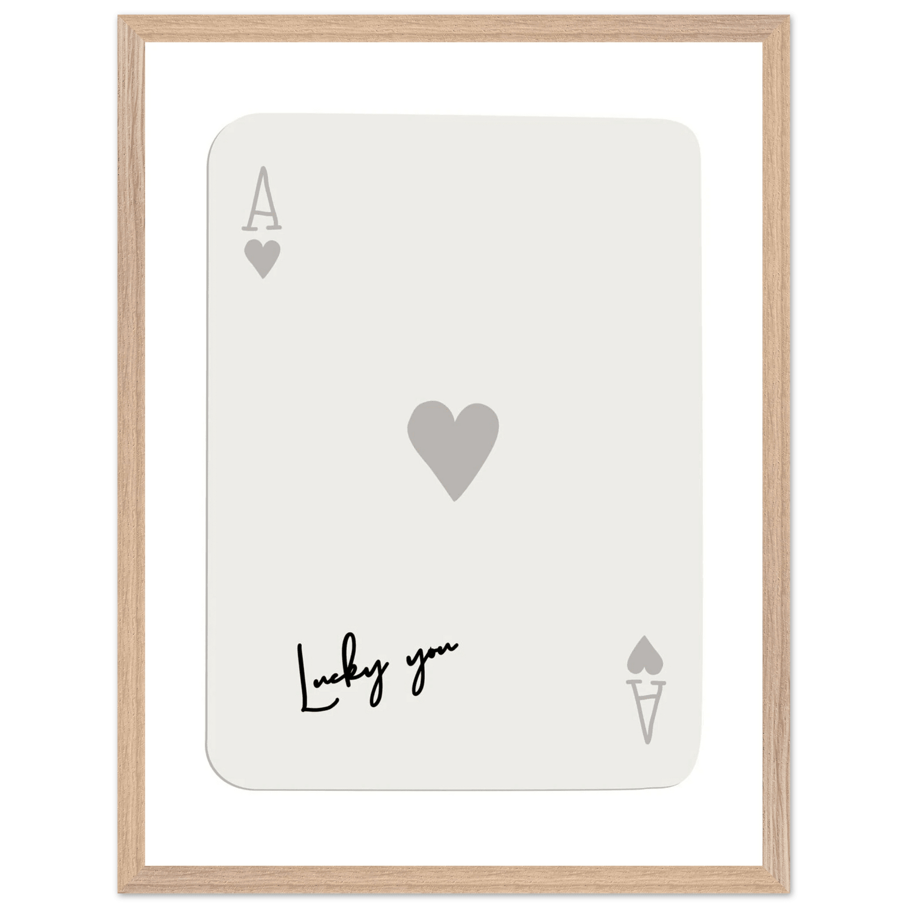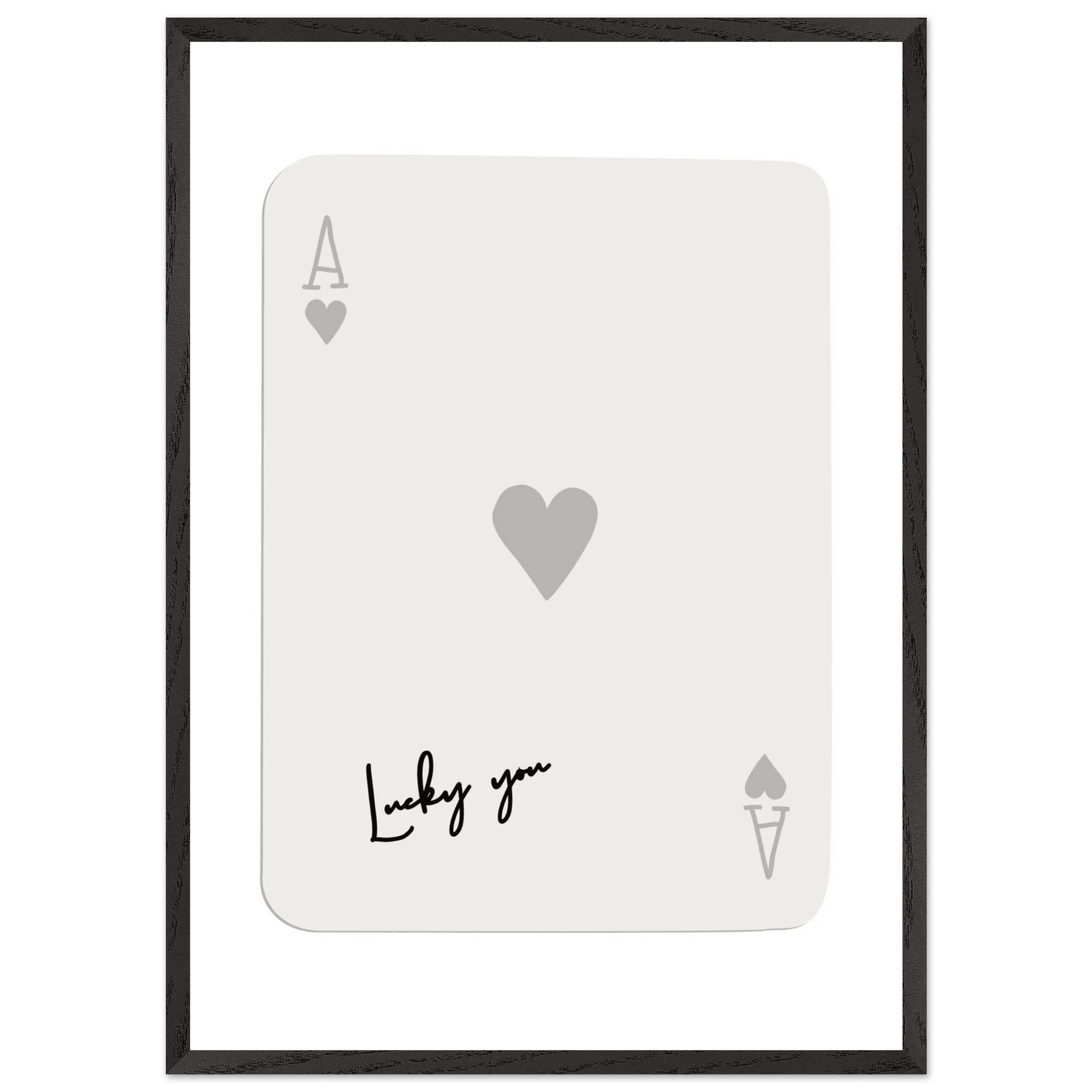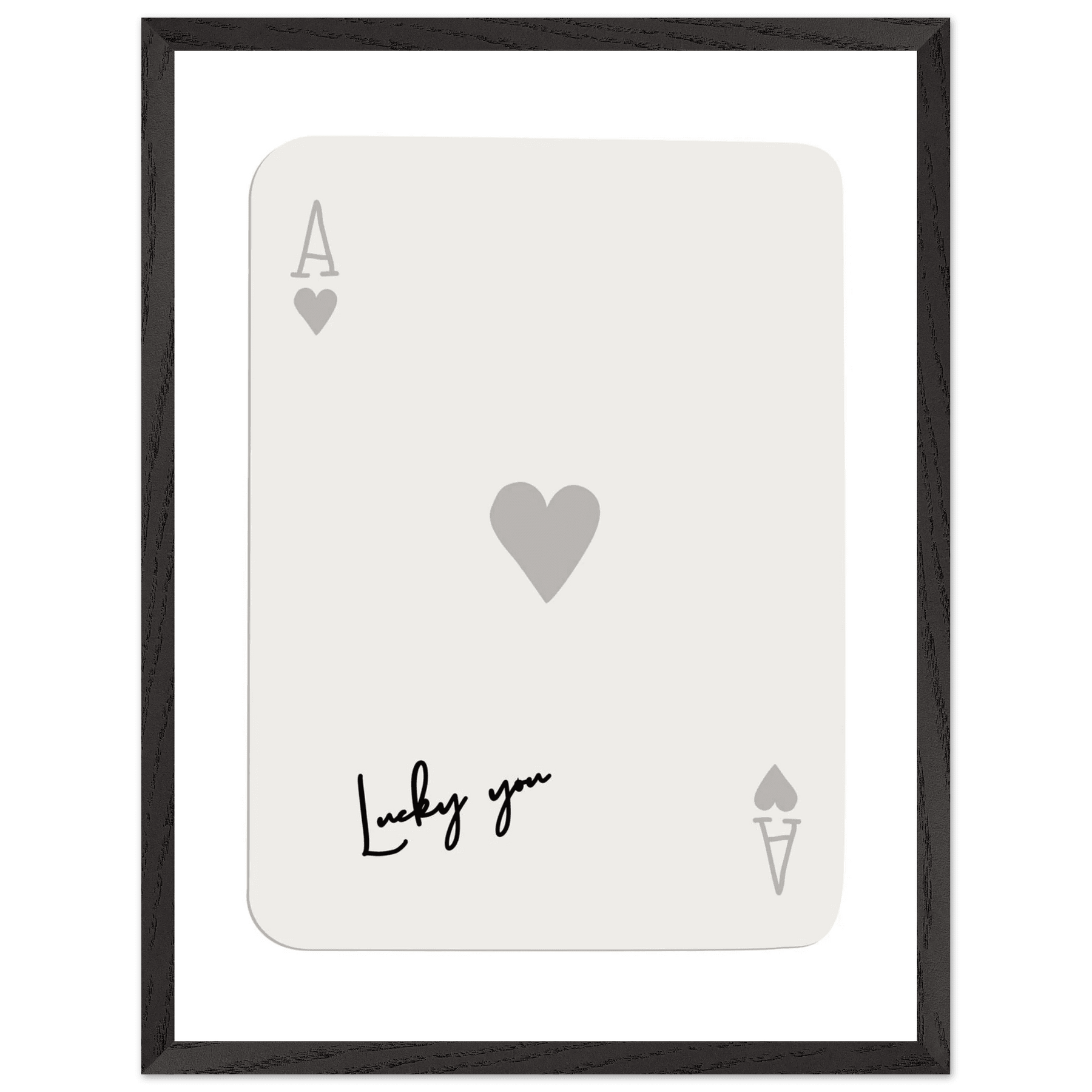 Lucky You Ace of Hearts Poker Card Print - Framed Eco-Friendly Wood Poster Art for Game Lovers