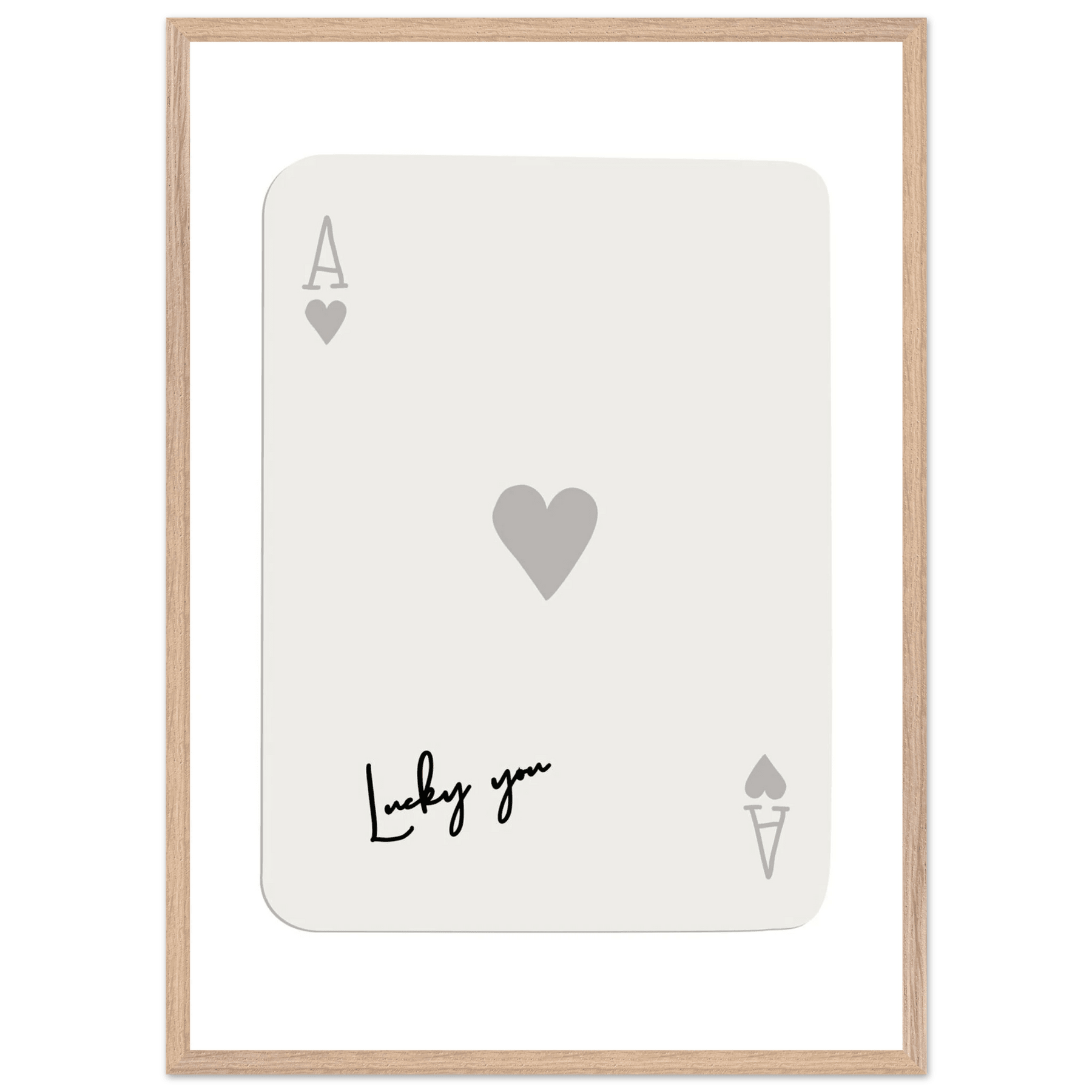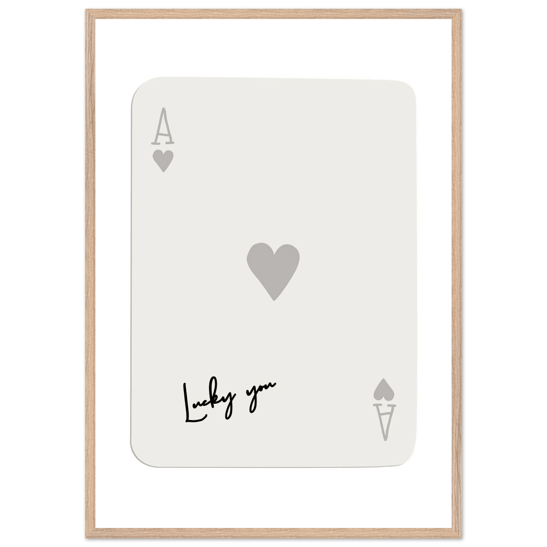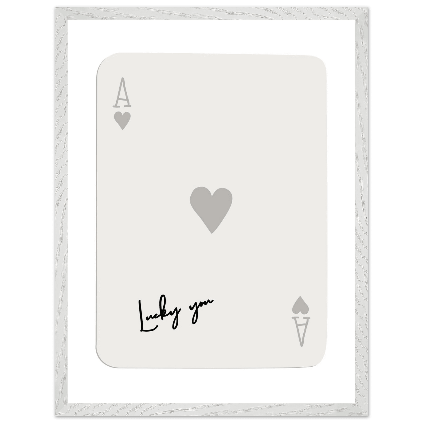 Lucky You Ace of Hearts Poker Card Print - Framed Eco-Friendly Wood Poster Art for Game Lovers
