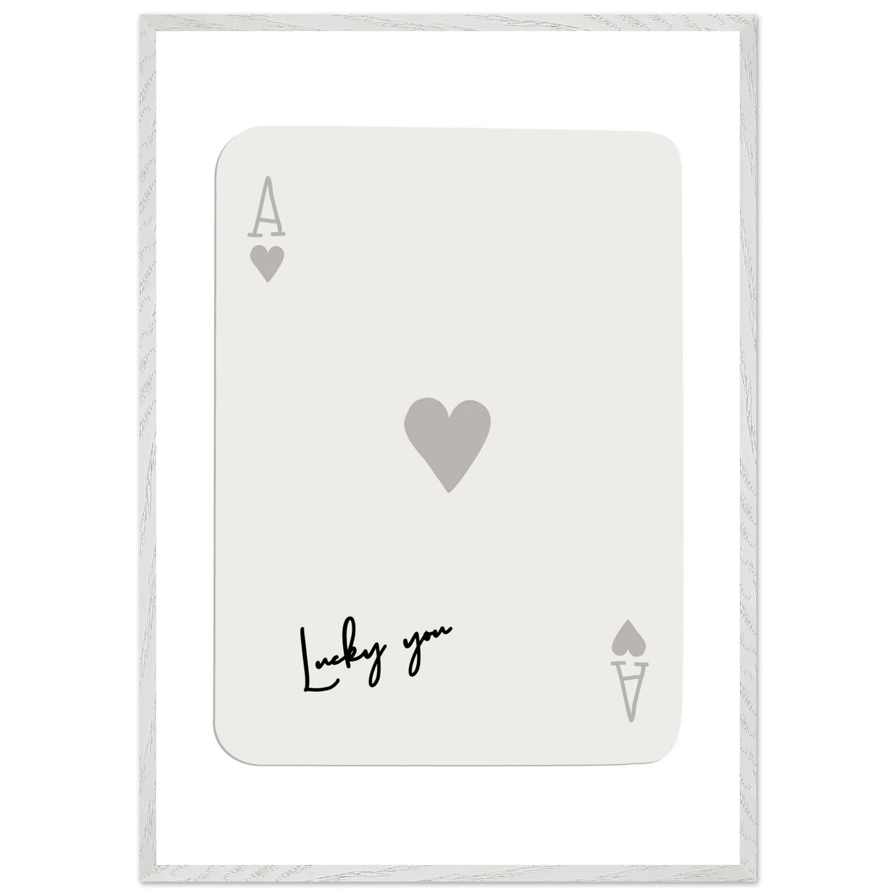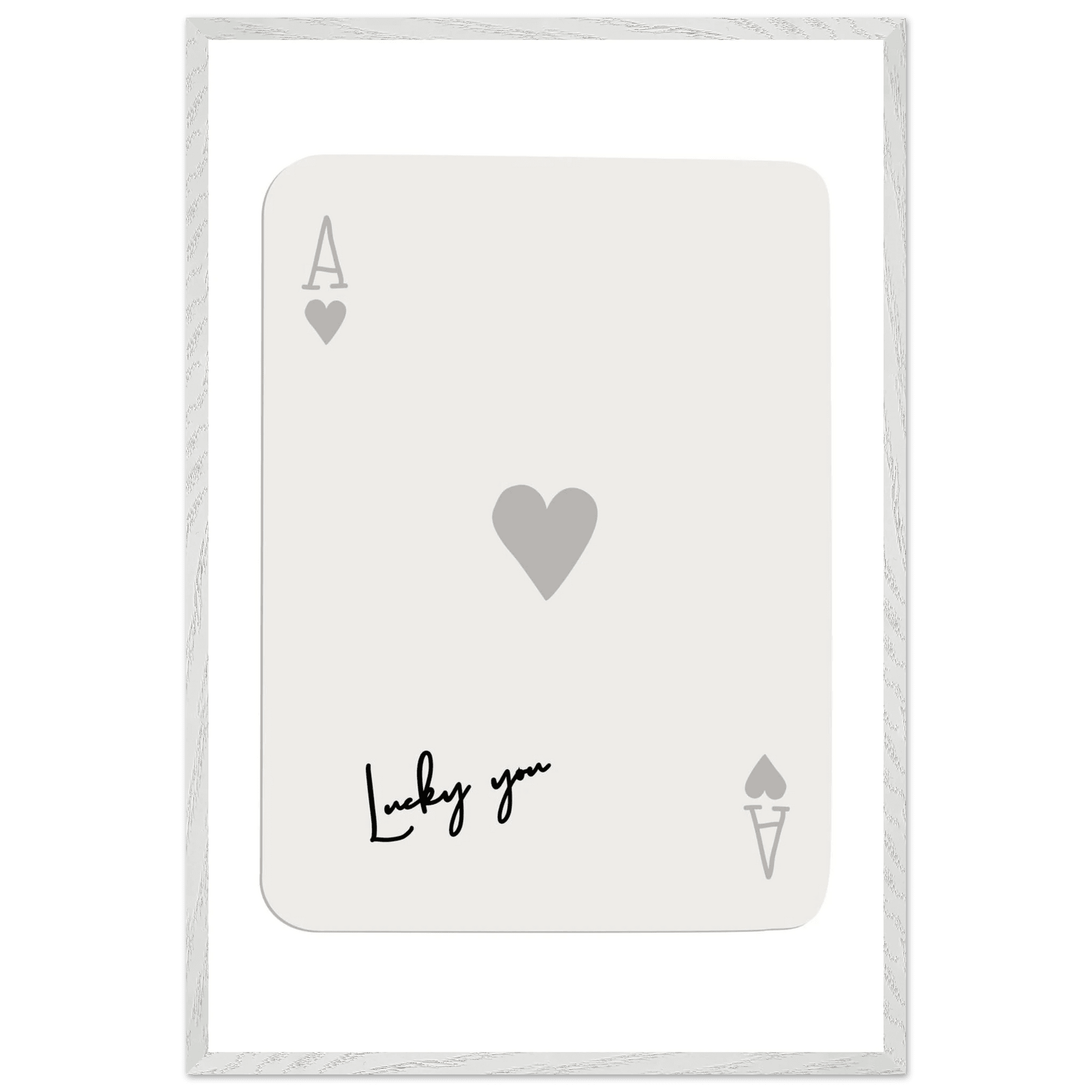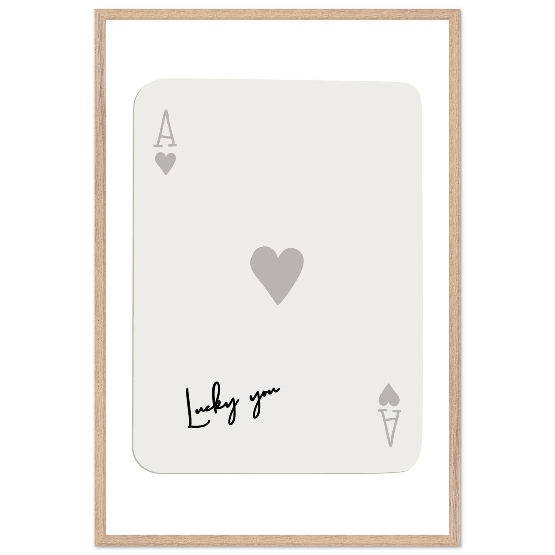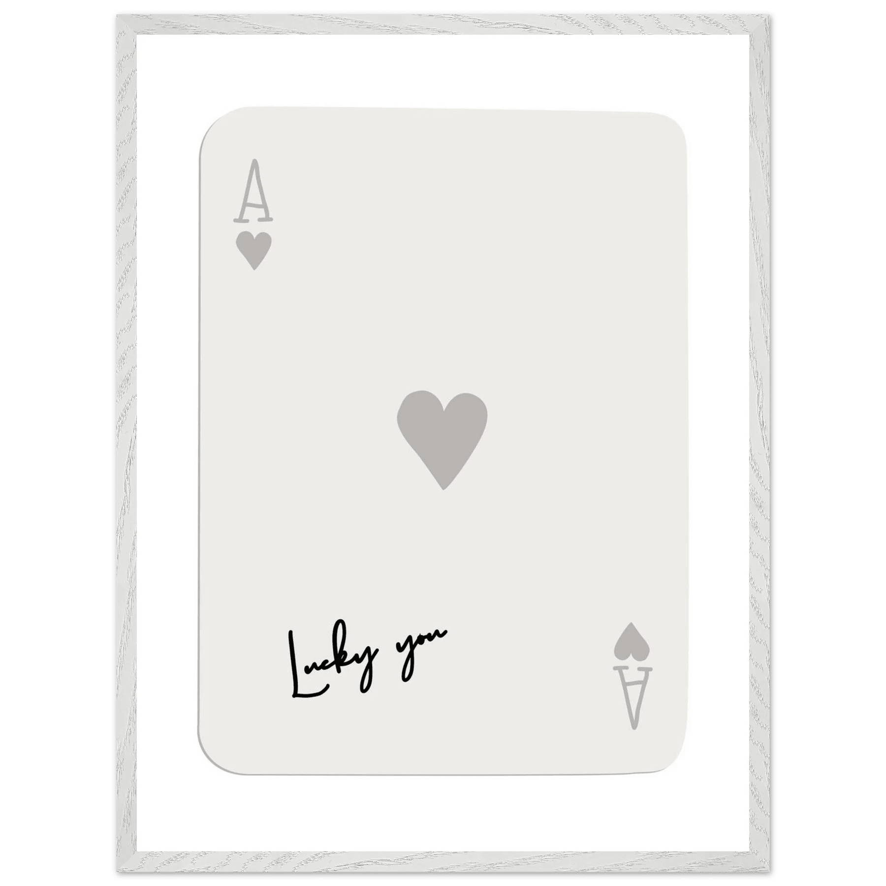 Lucky You Ace of Hearts Poker Card Print - Framed Eco-Friendly Wood Poster Art for Game Lovers
