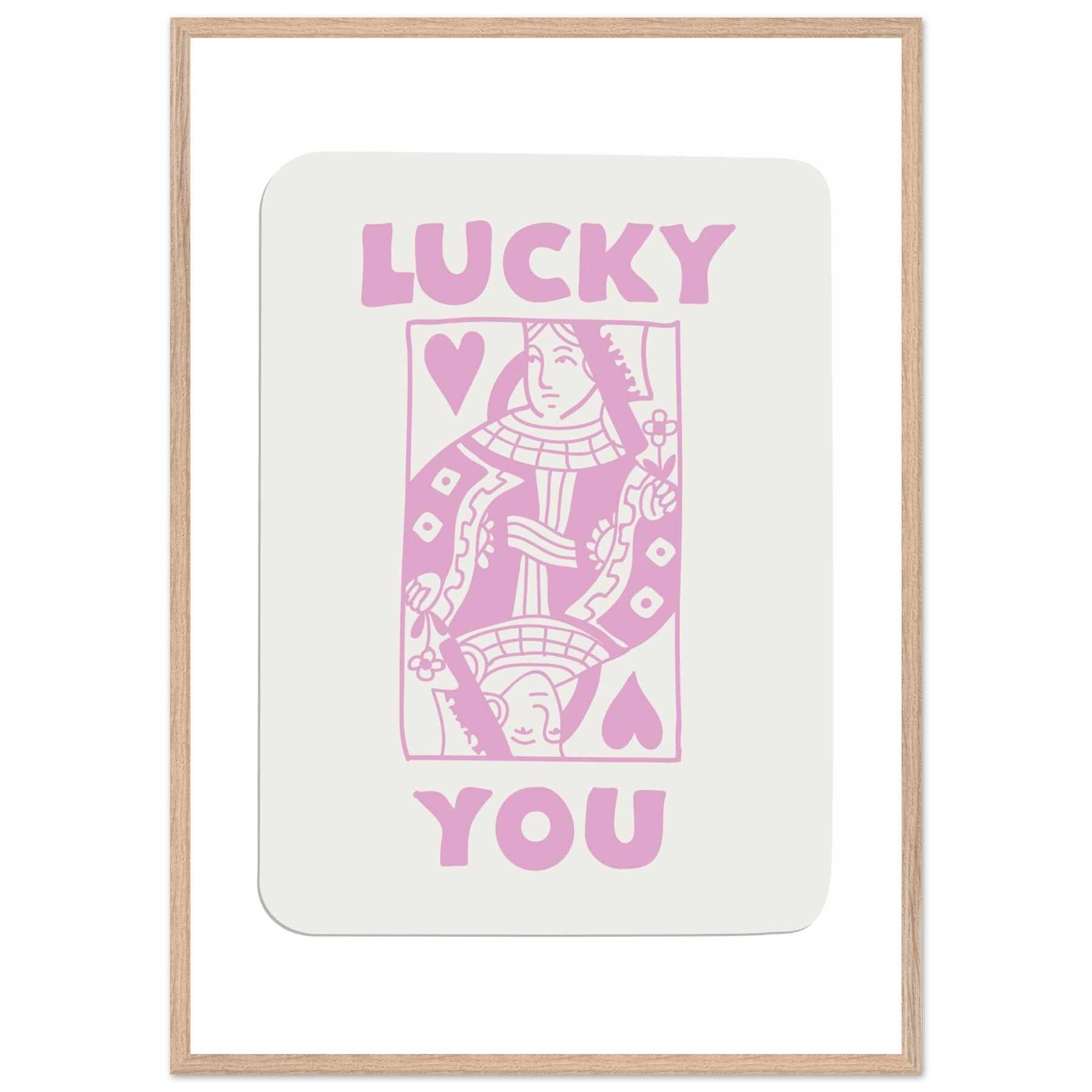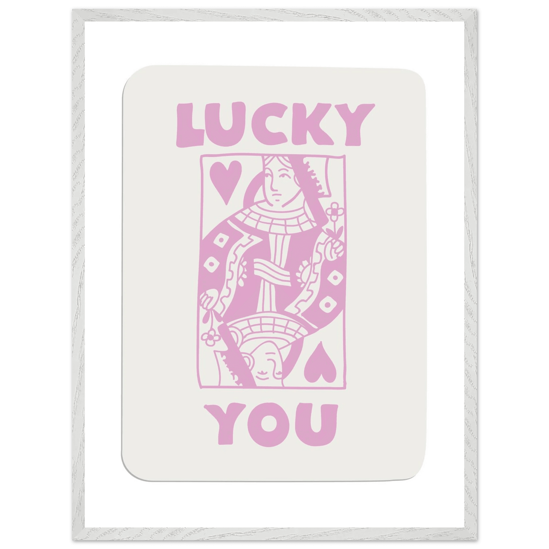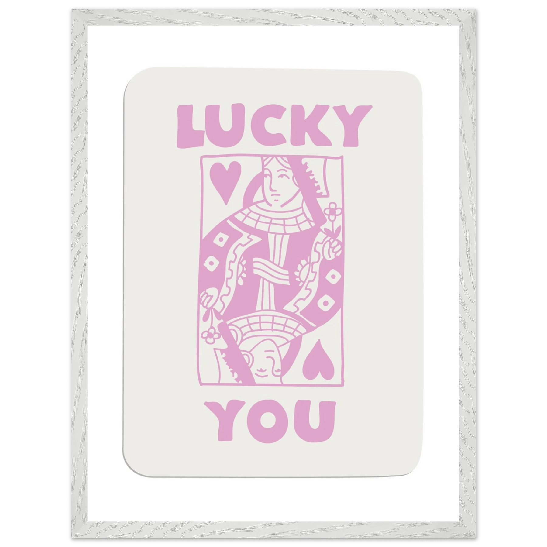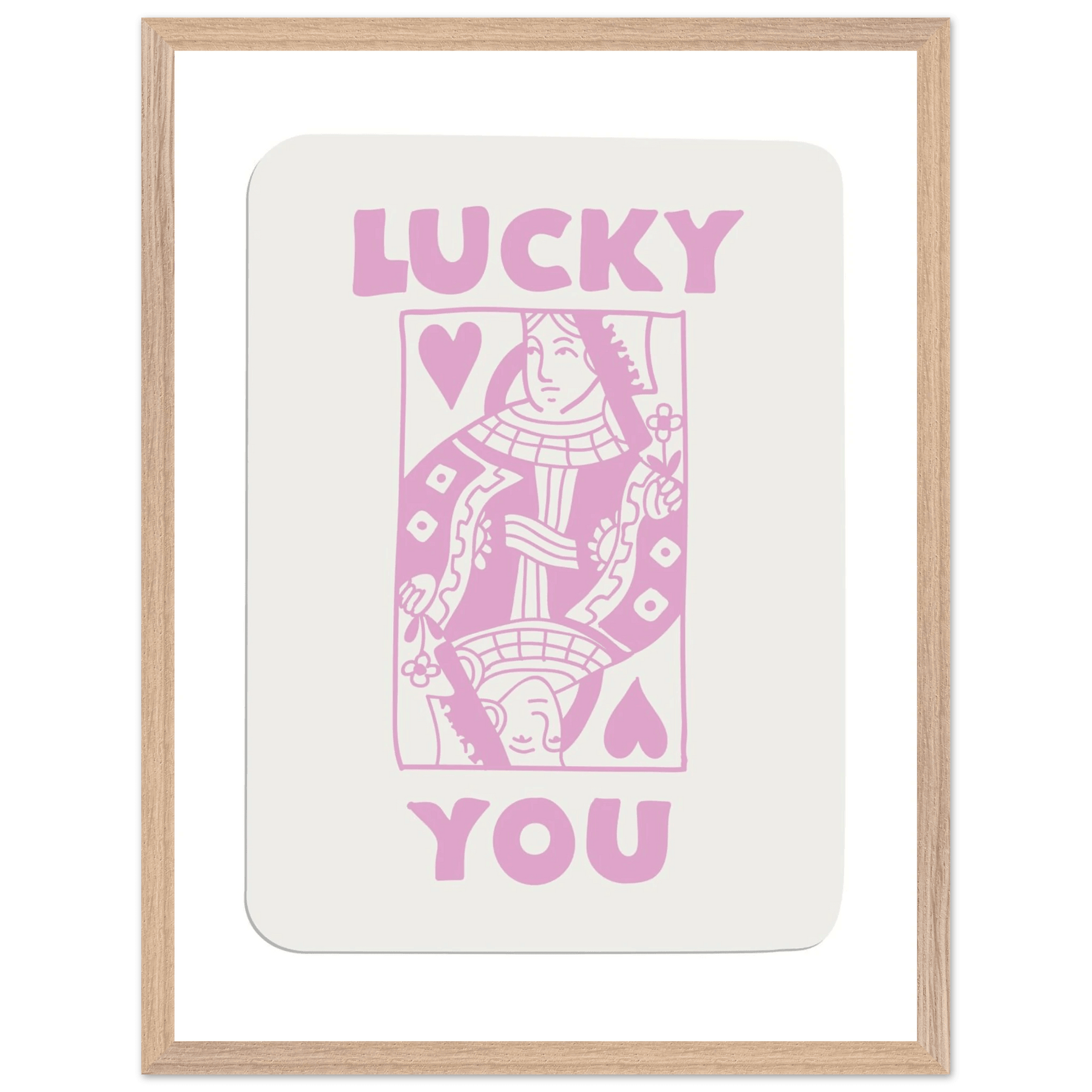 Lucky You Poker Card Art Print - Queen of Hearts Framed Poster, Pink & Cream Aesthetic Decor