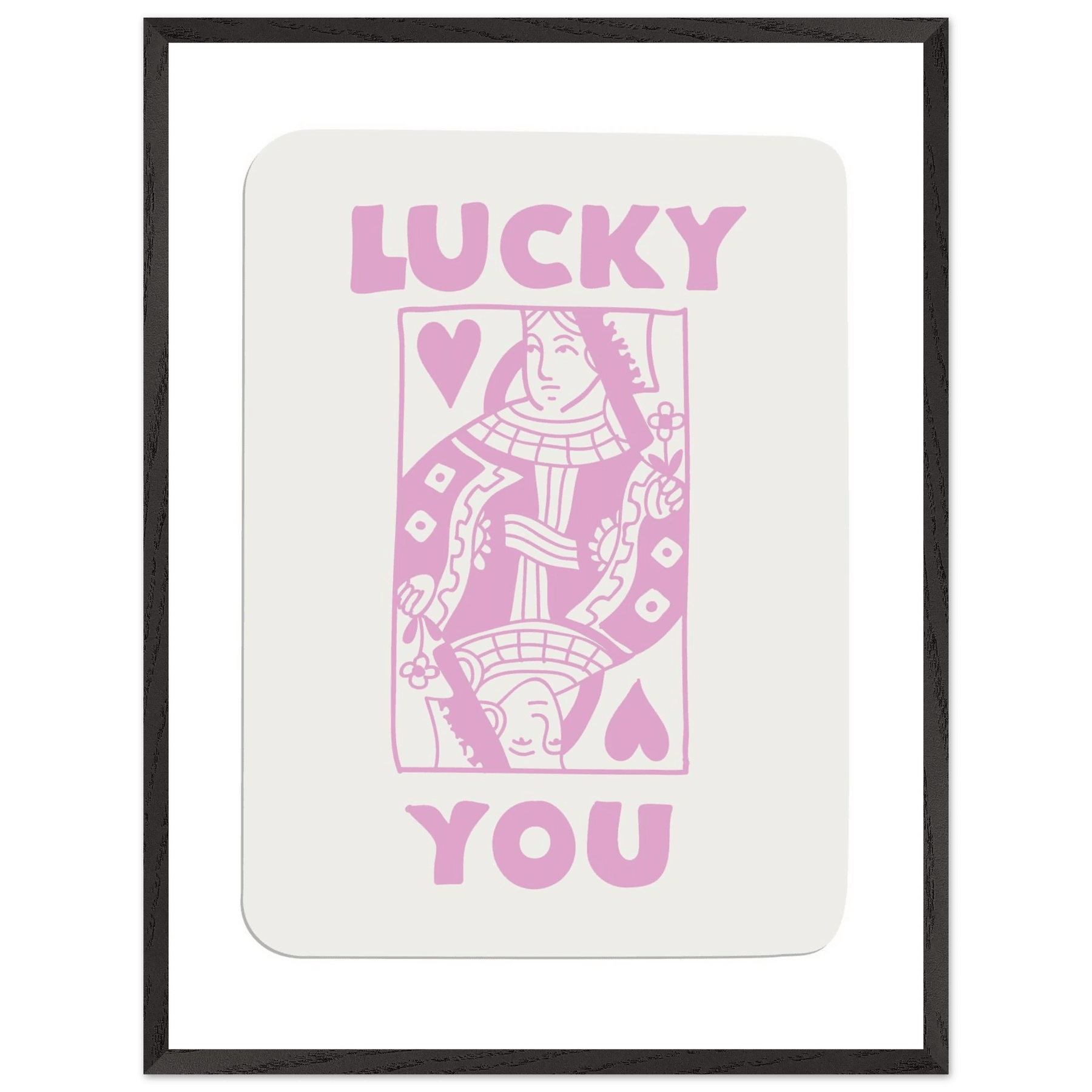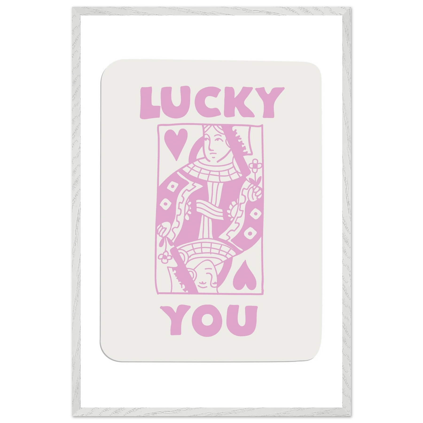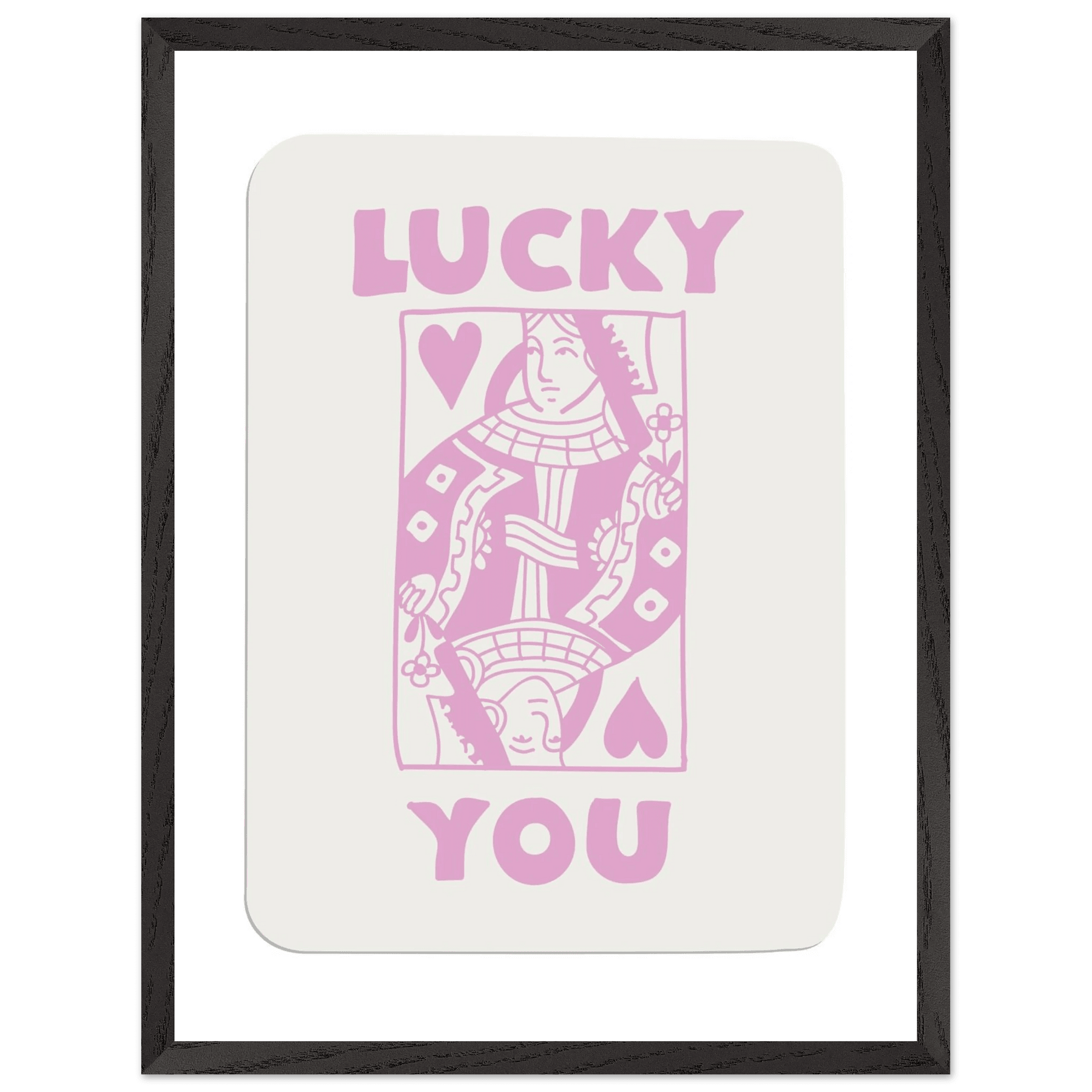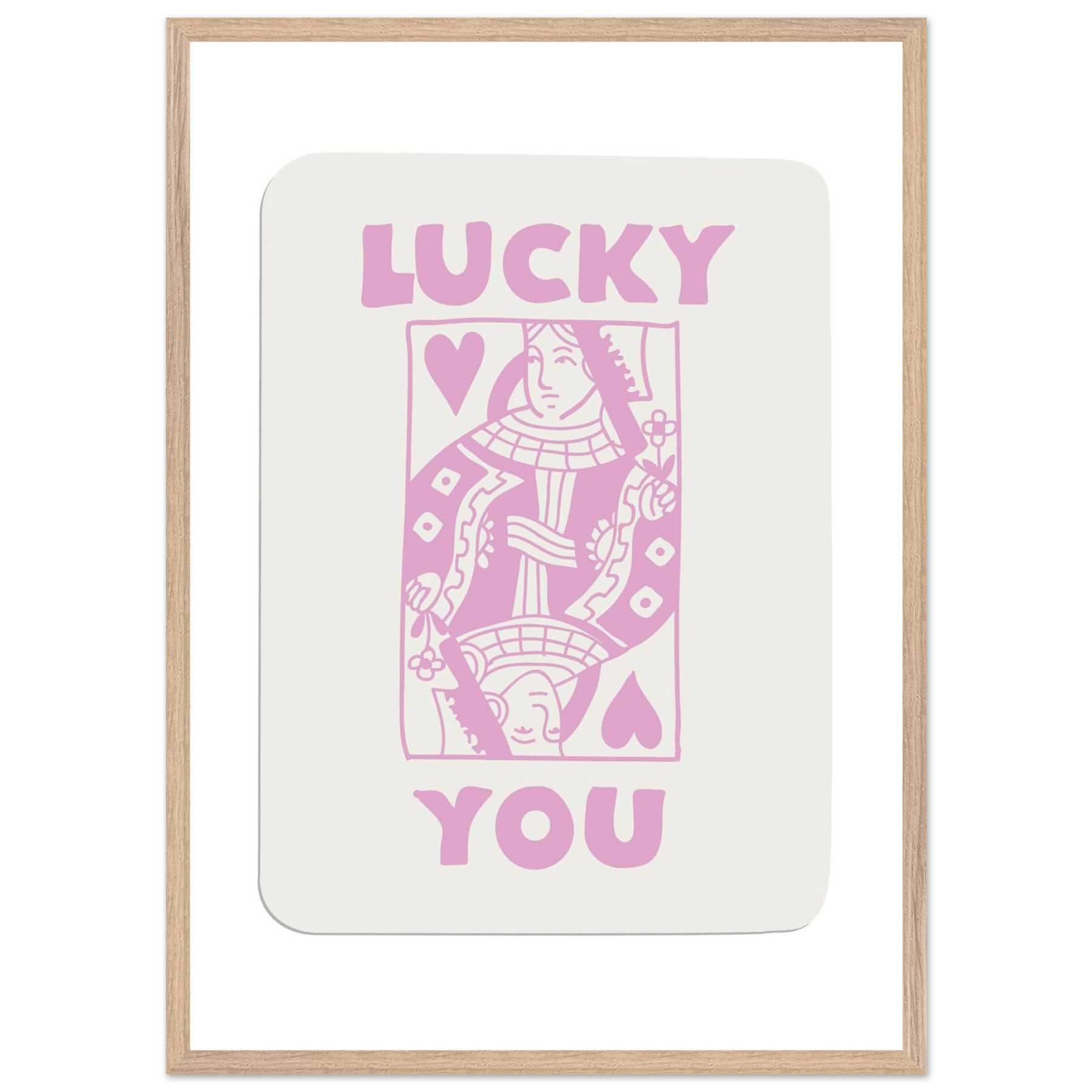 Lucky You Poker Card Art Print - Queen of Hearts Framed Poster, Pink & Cream Aesthetic Decor
