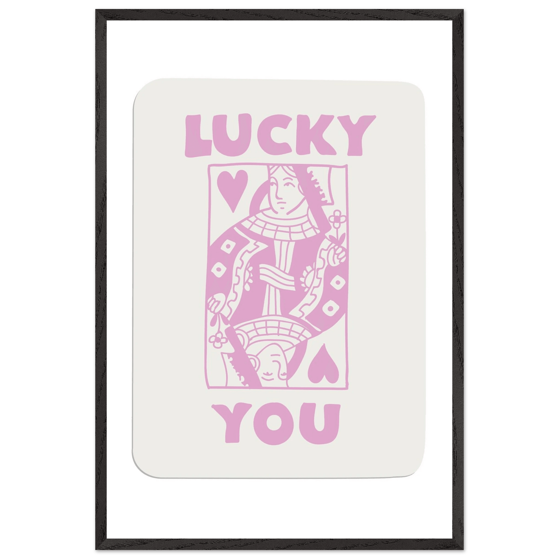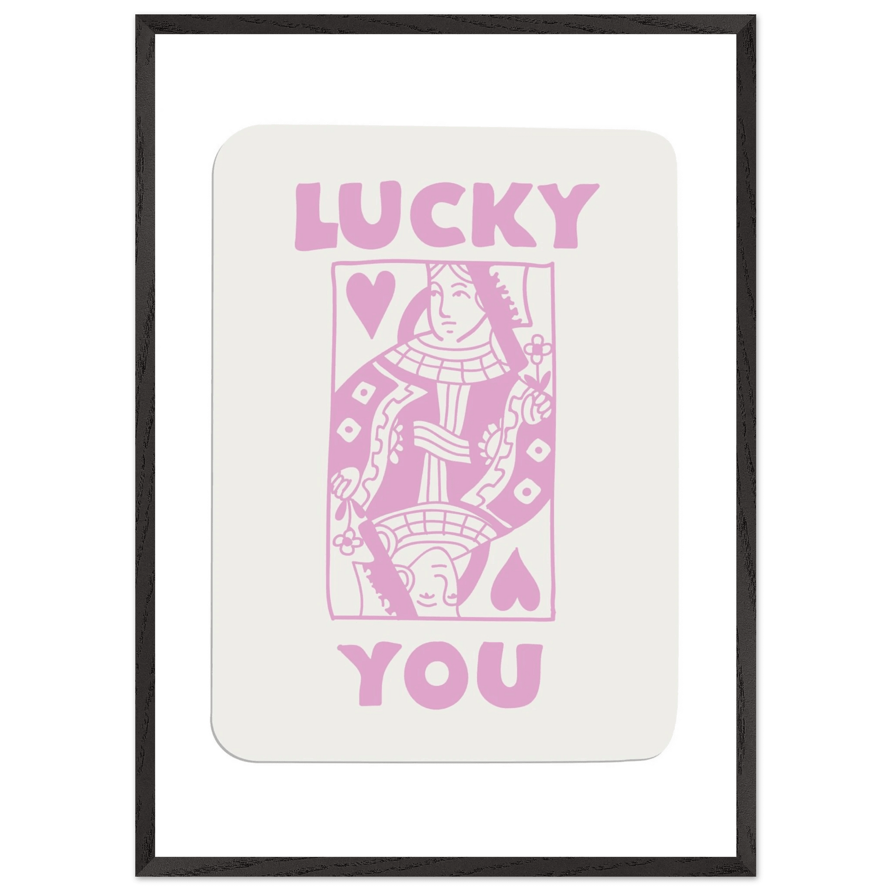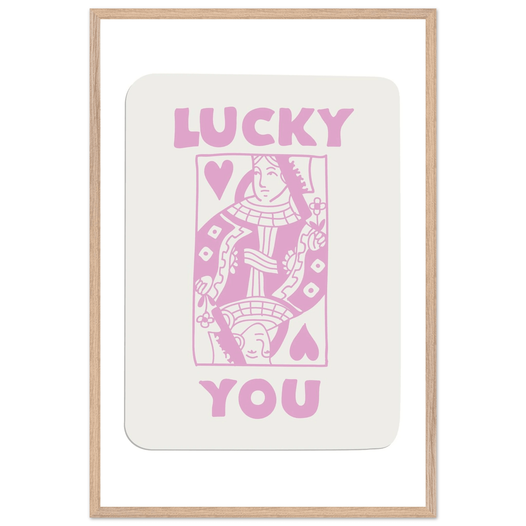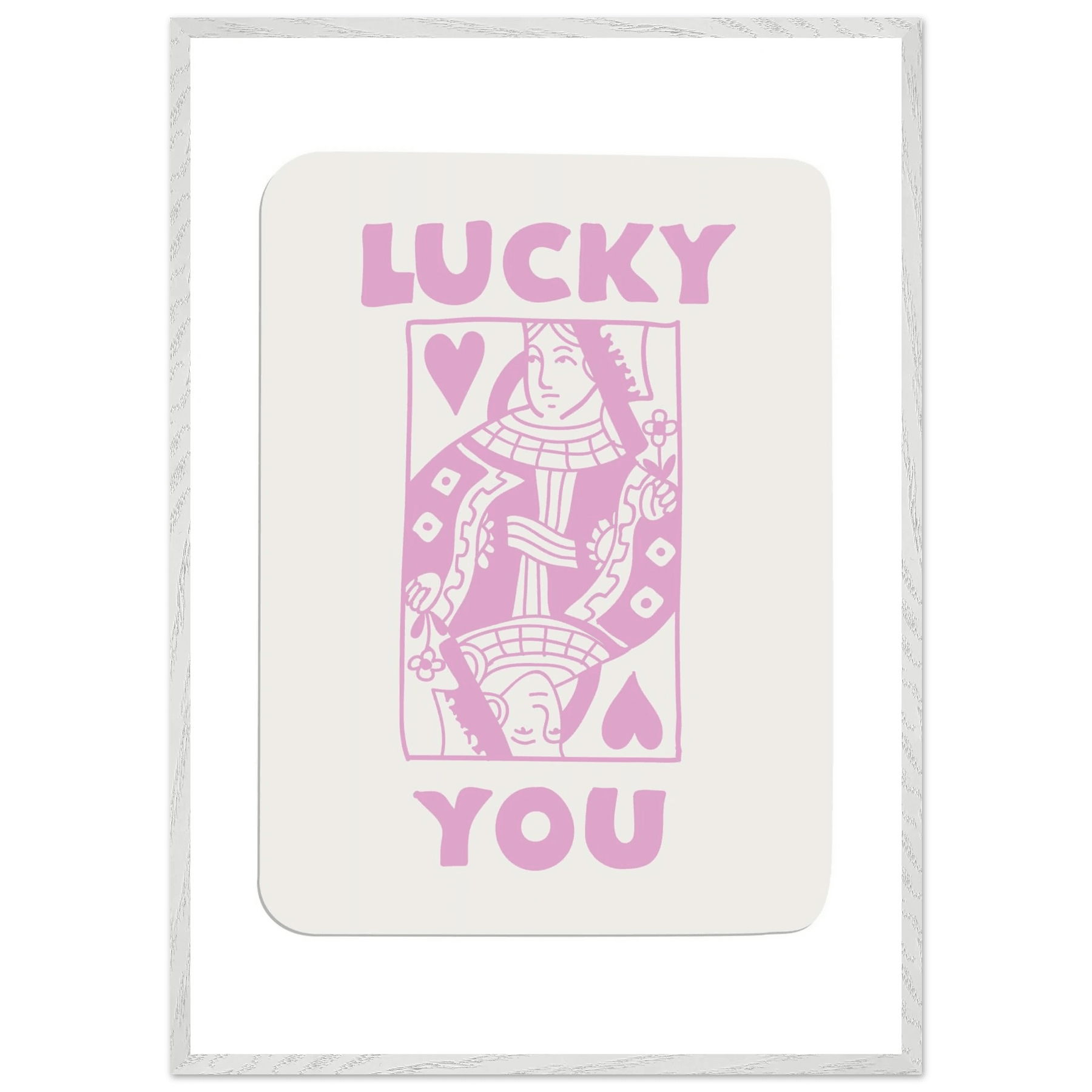 Lucky You Poker Card Art Print - Queen of Hearts Framed Poster, Pink & Cream Aesthetic Decor