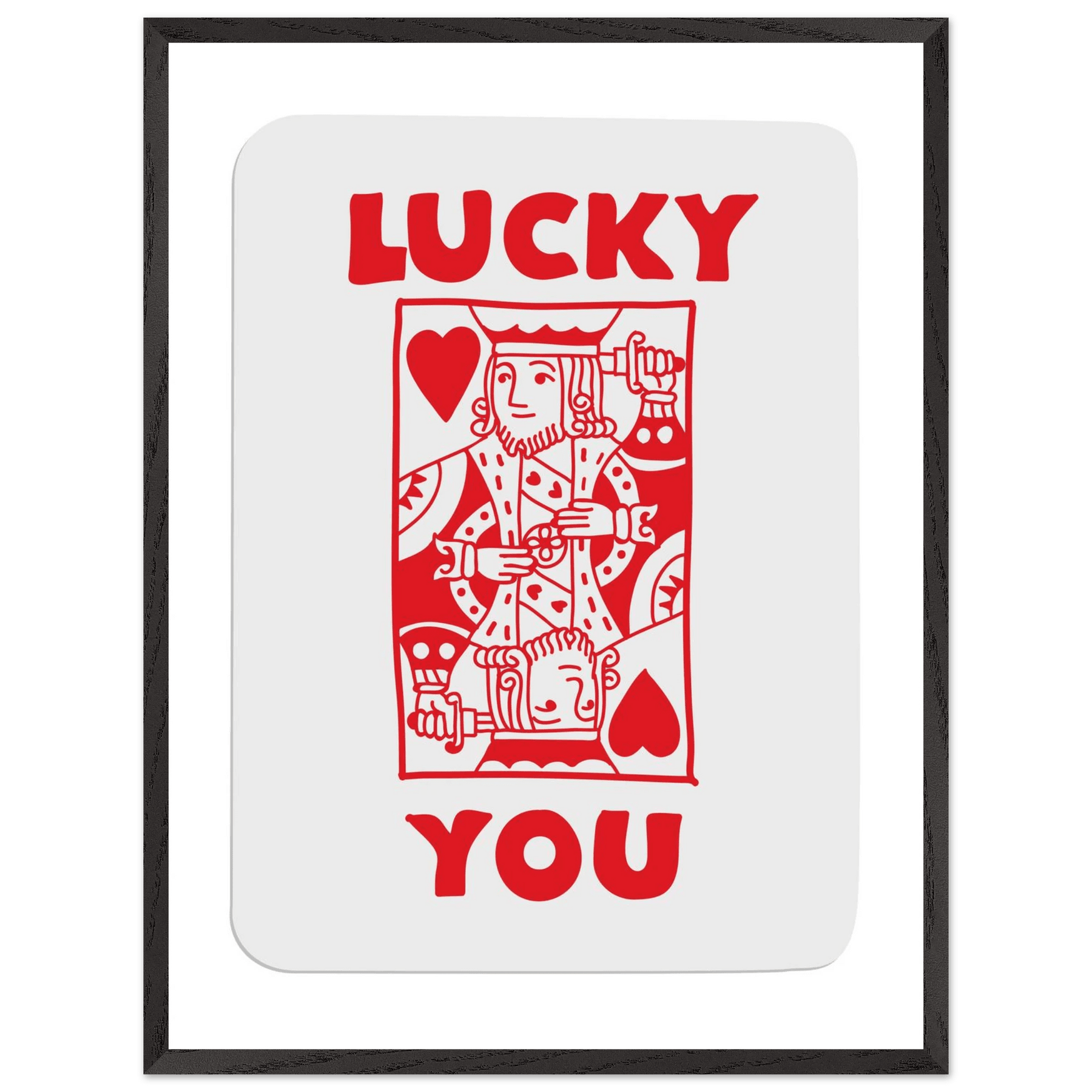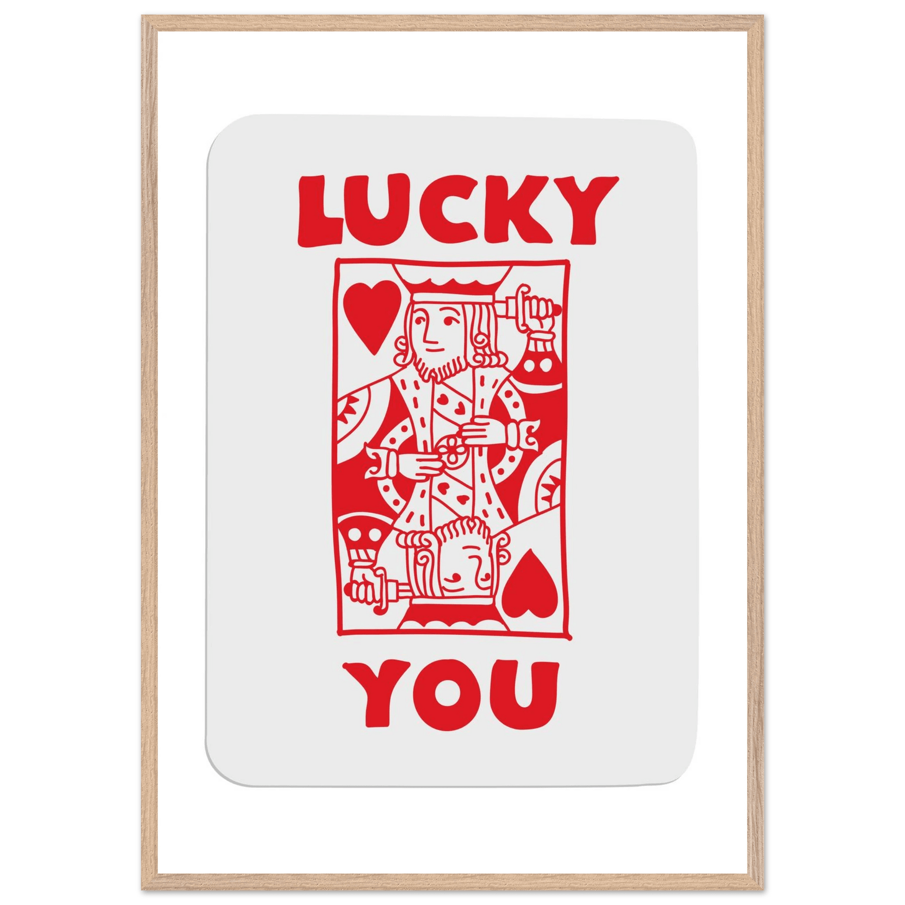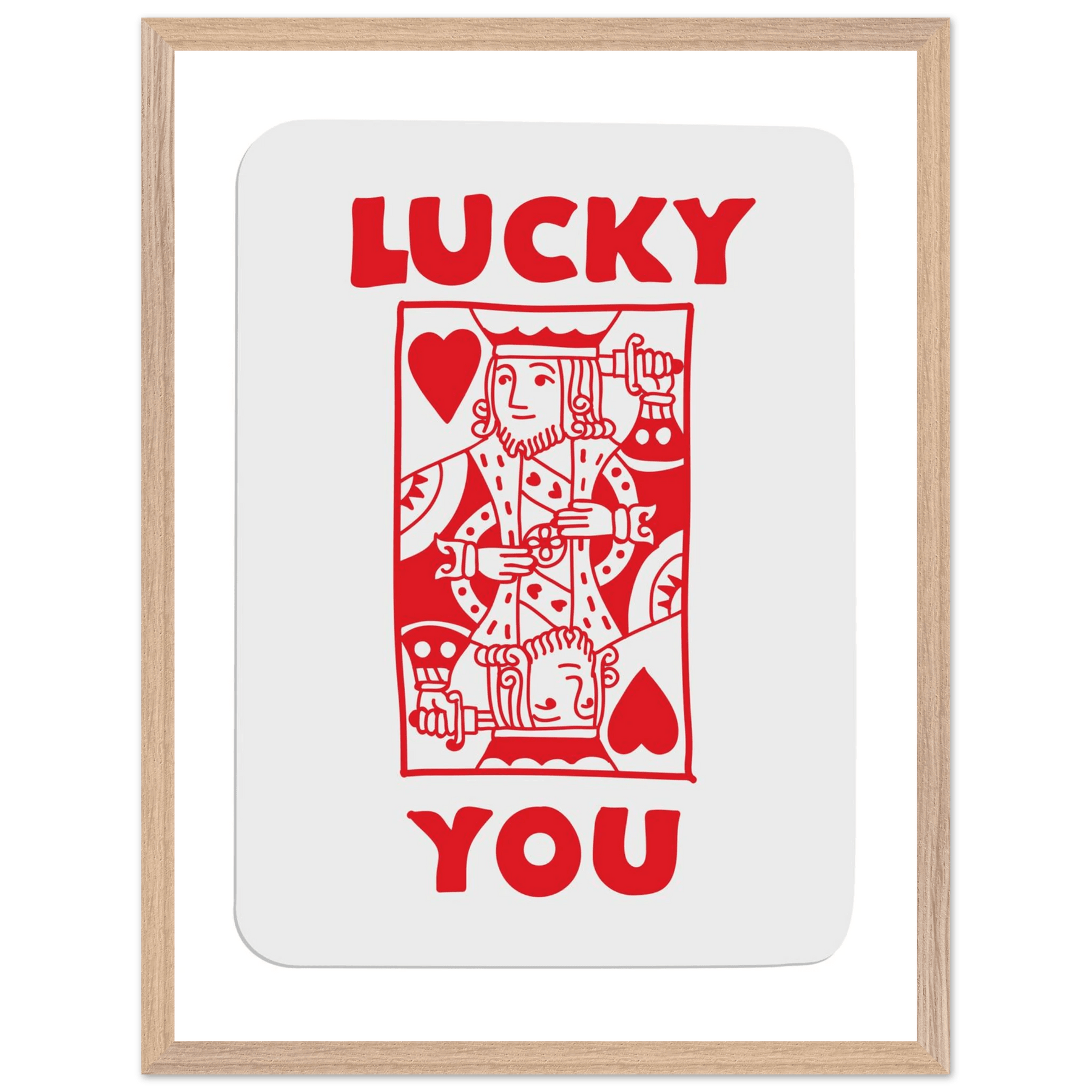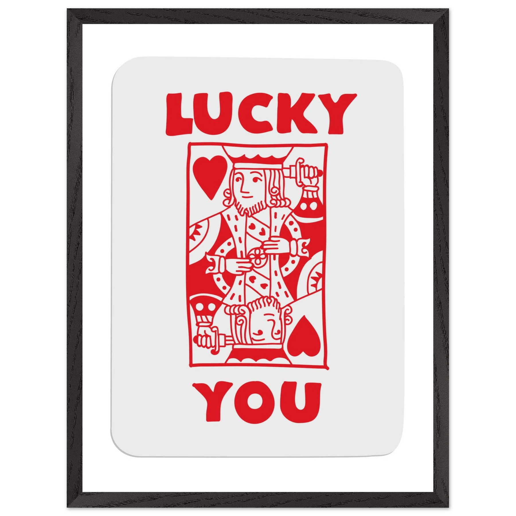 Lucky You Poker Card Art Print - Two of Hearts King - Framed Poster with Eco-Friendly Wood Frame
