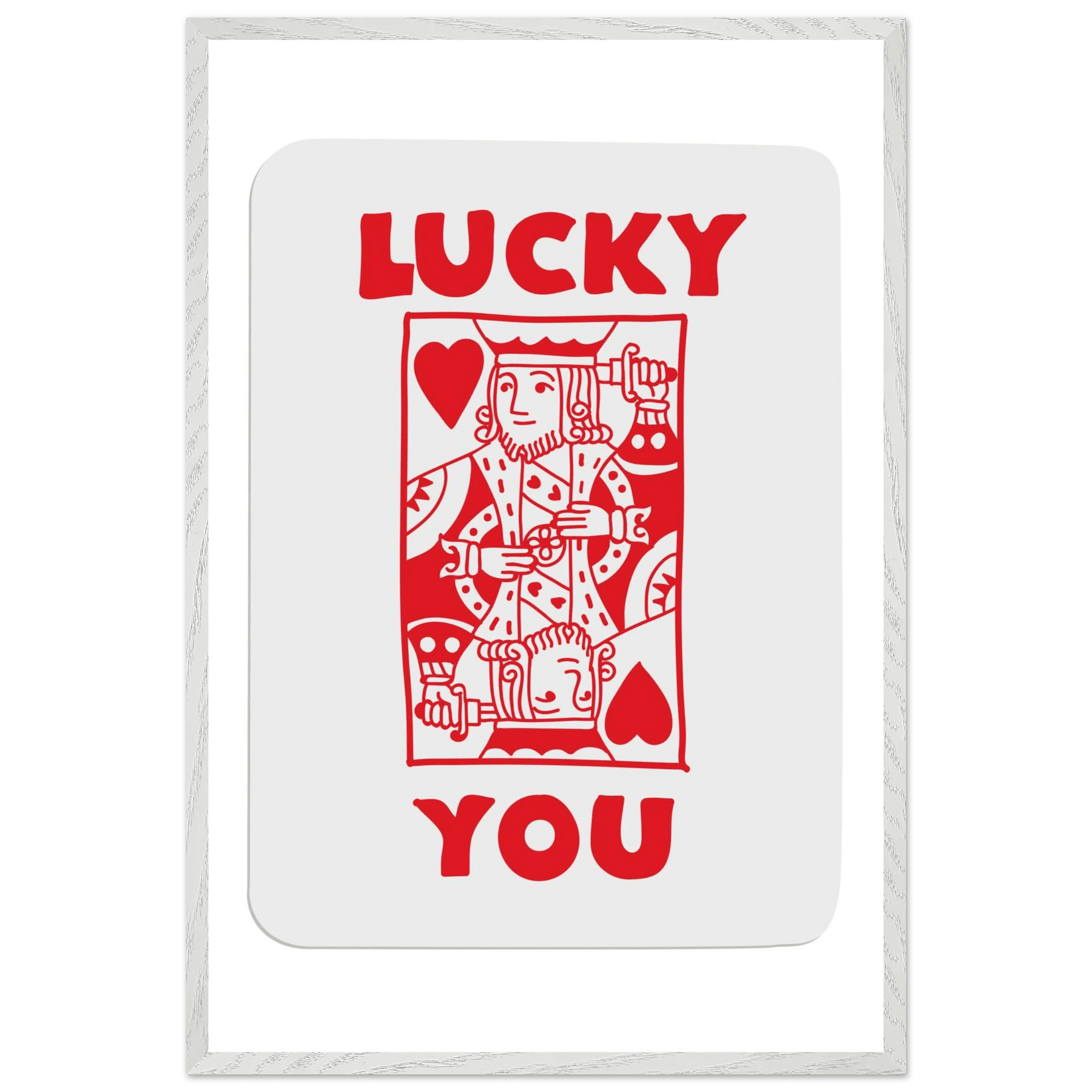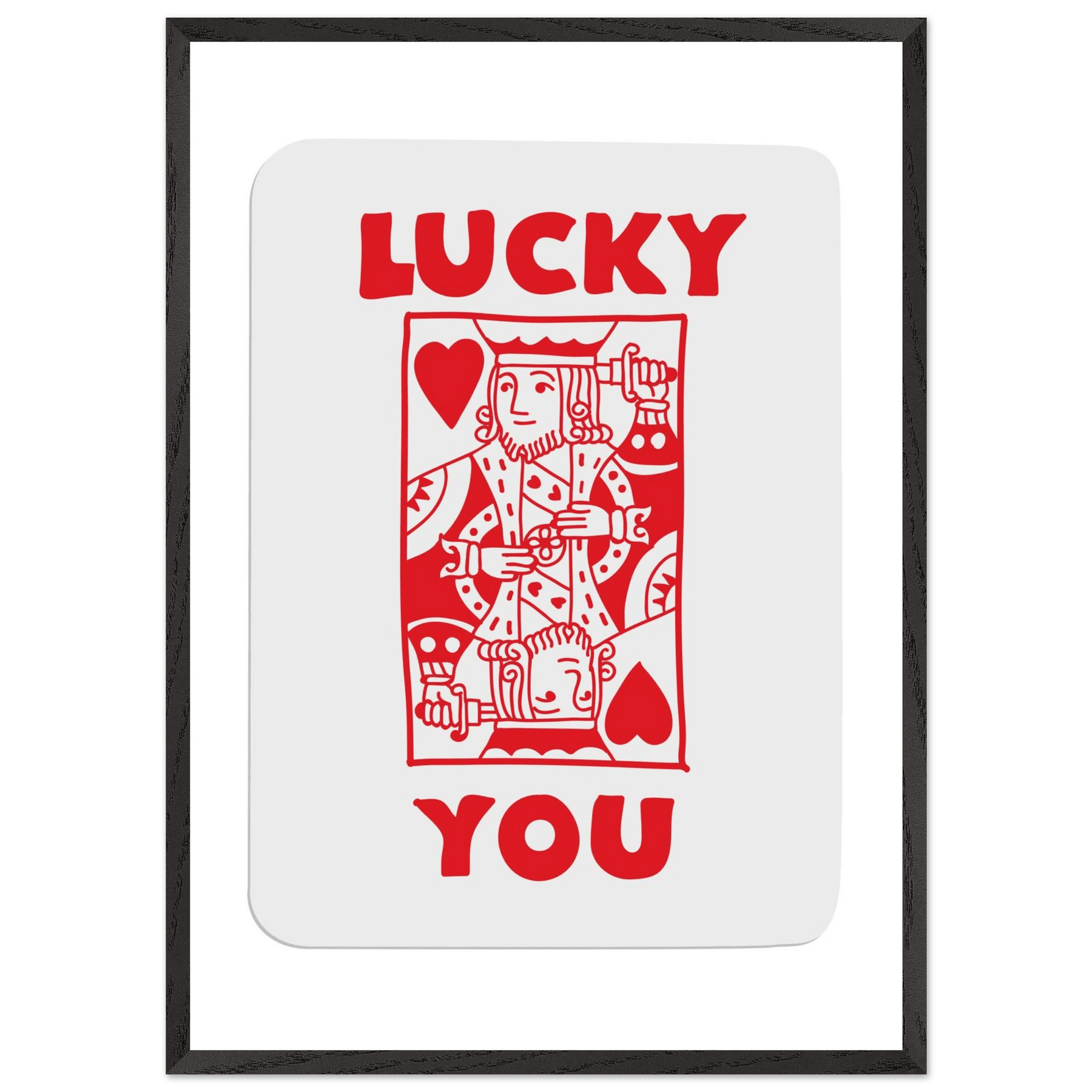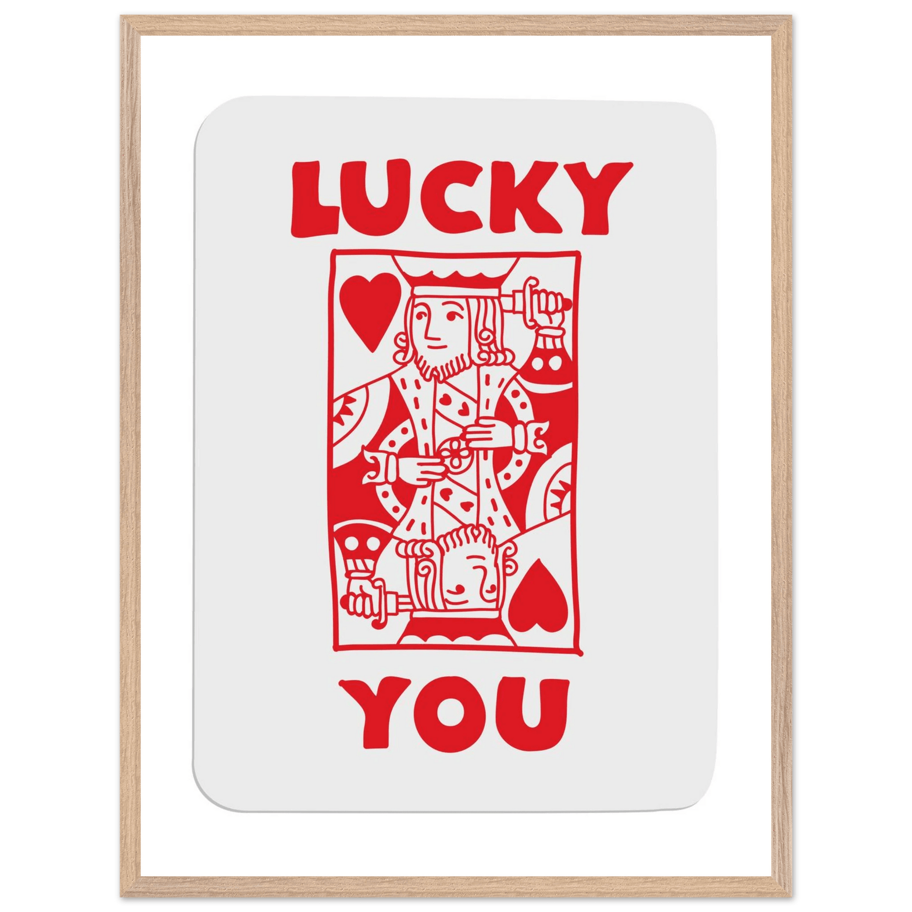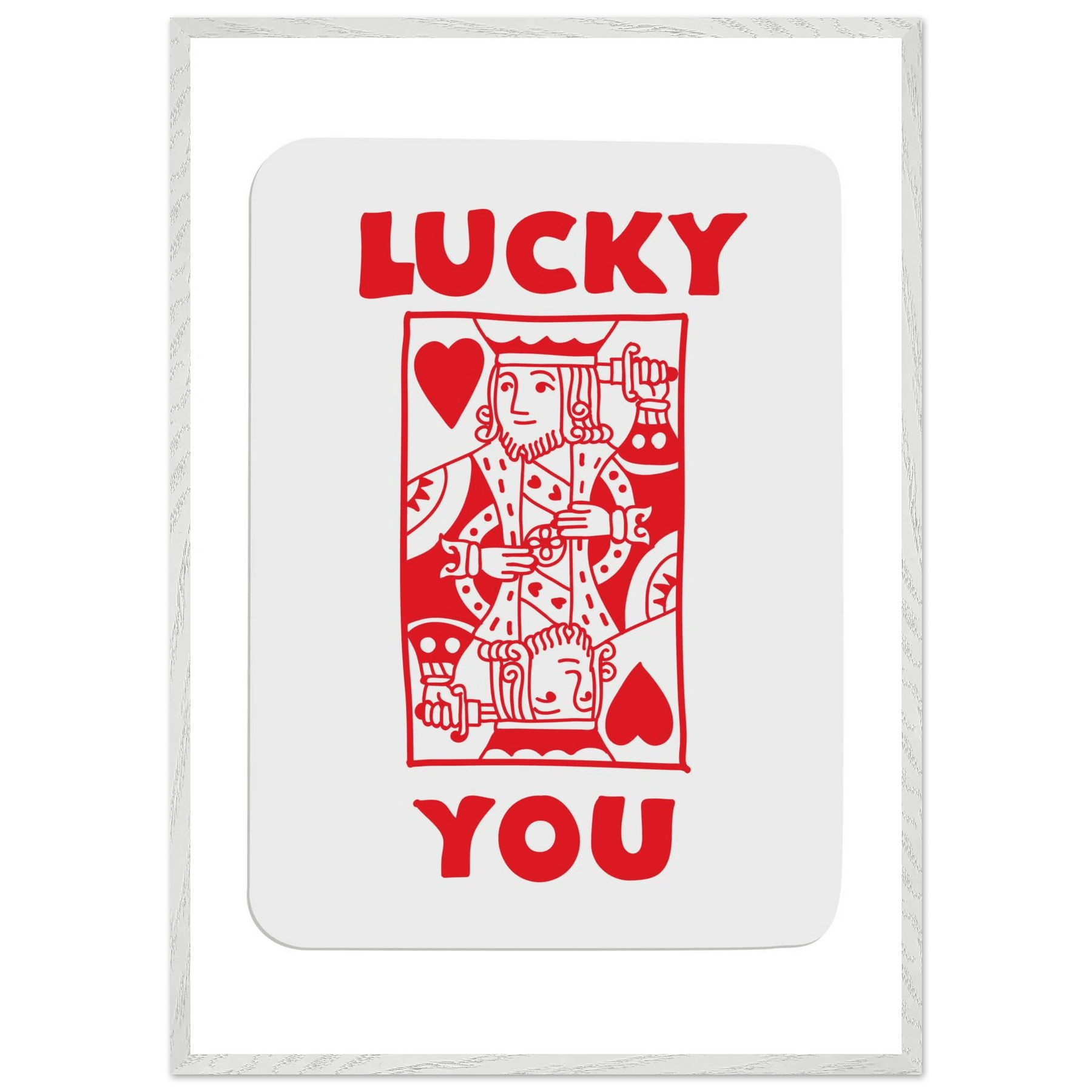Lucky You Poker Card Art Print - Two of Hearts King - Framed Poster with Eco-Friendly Wood Frame