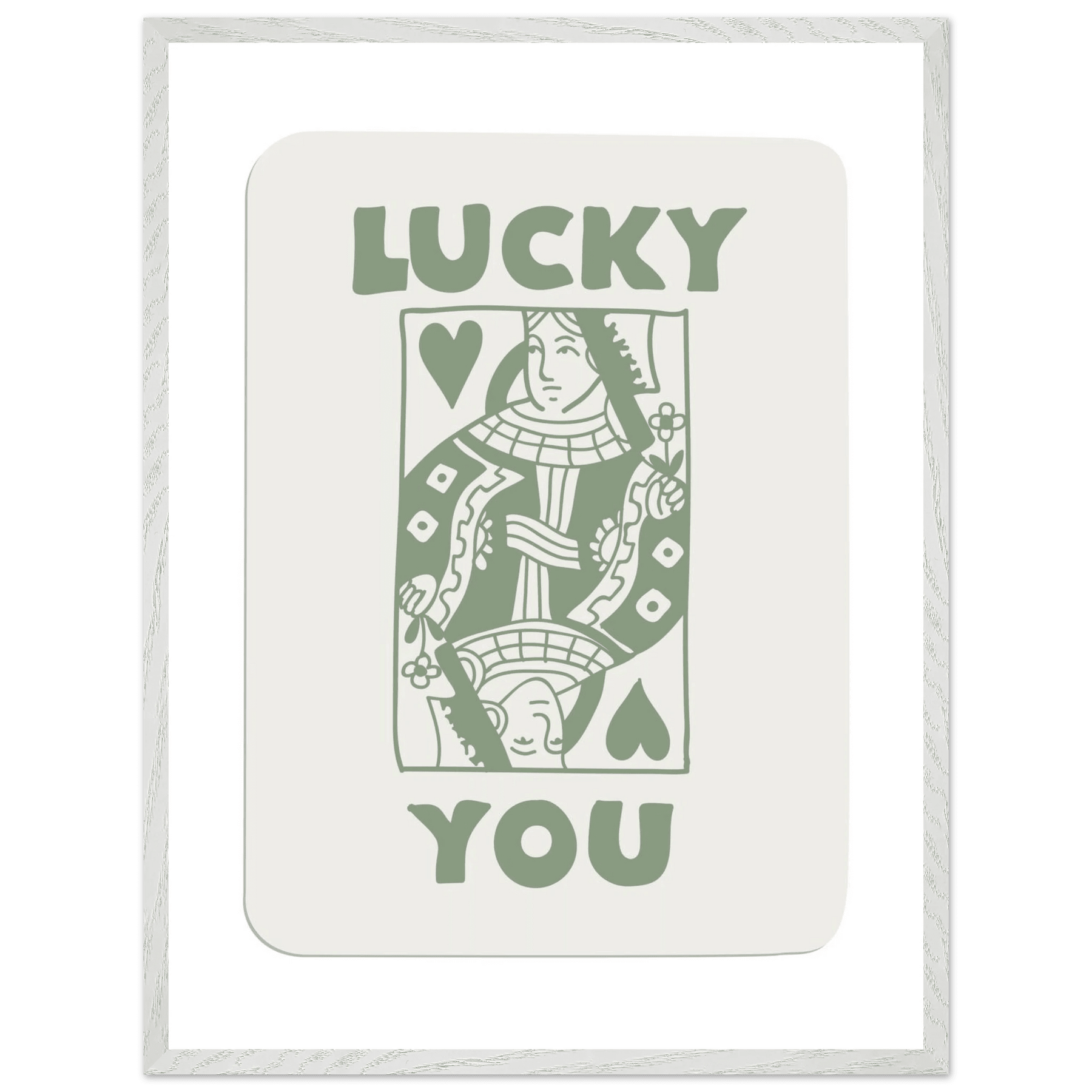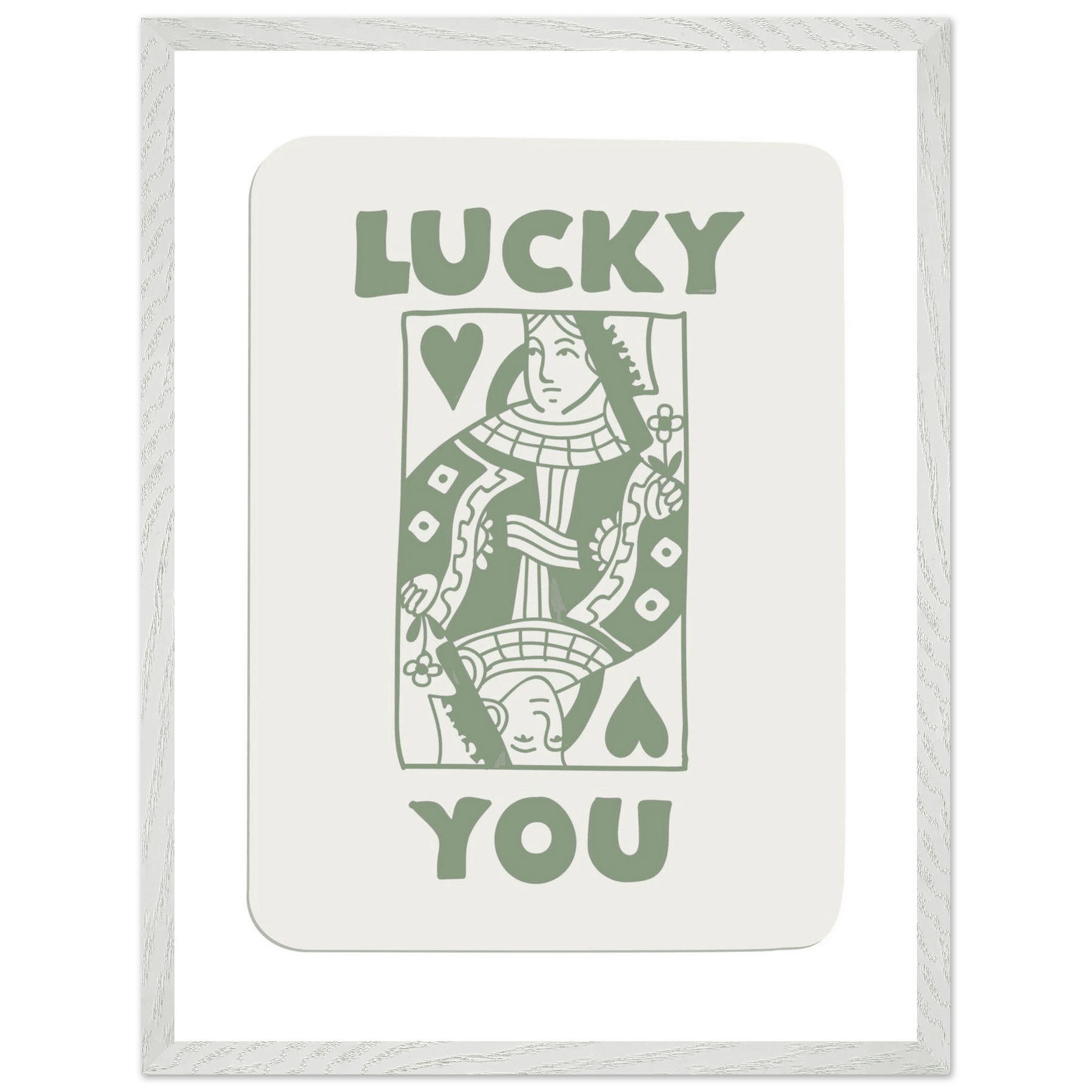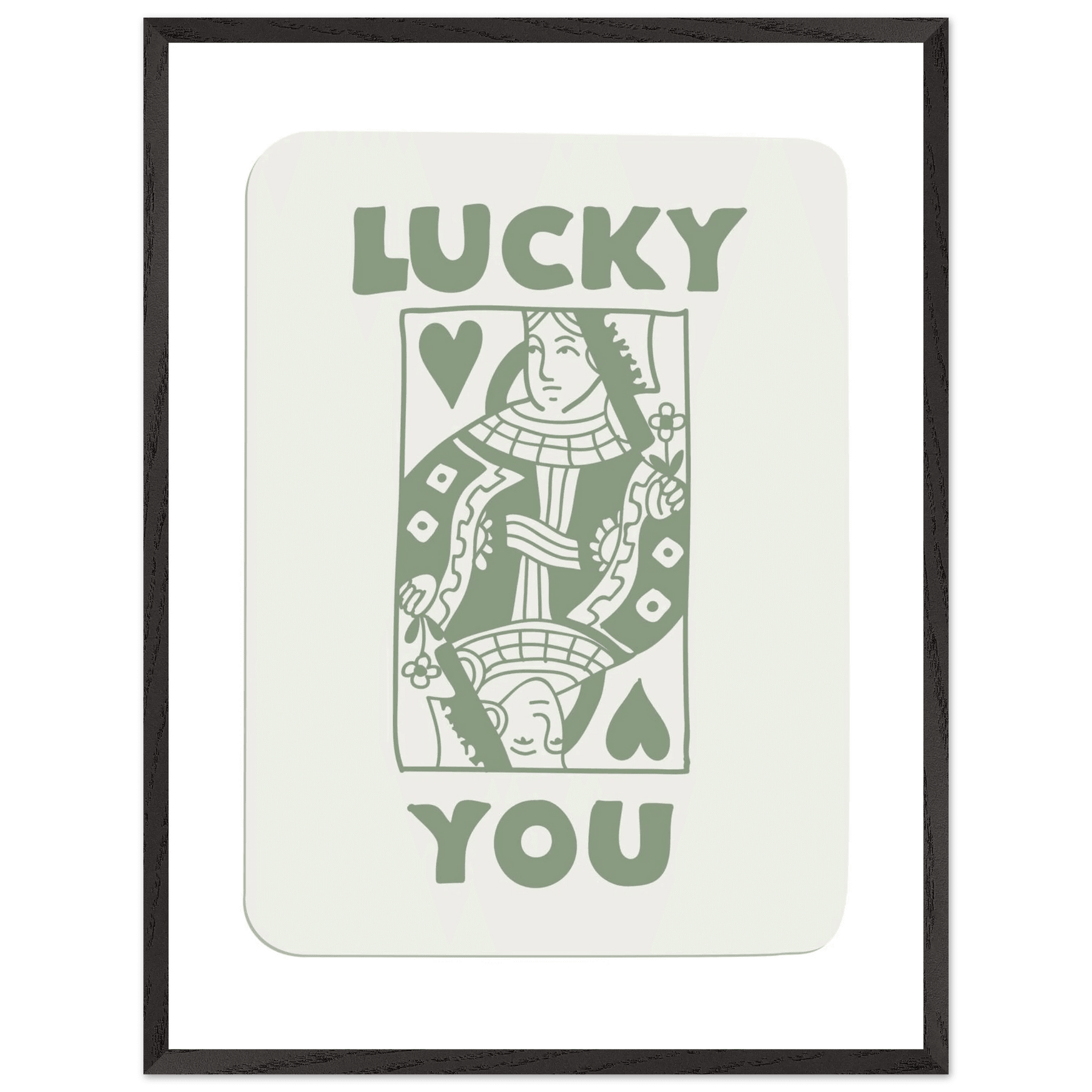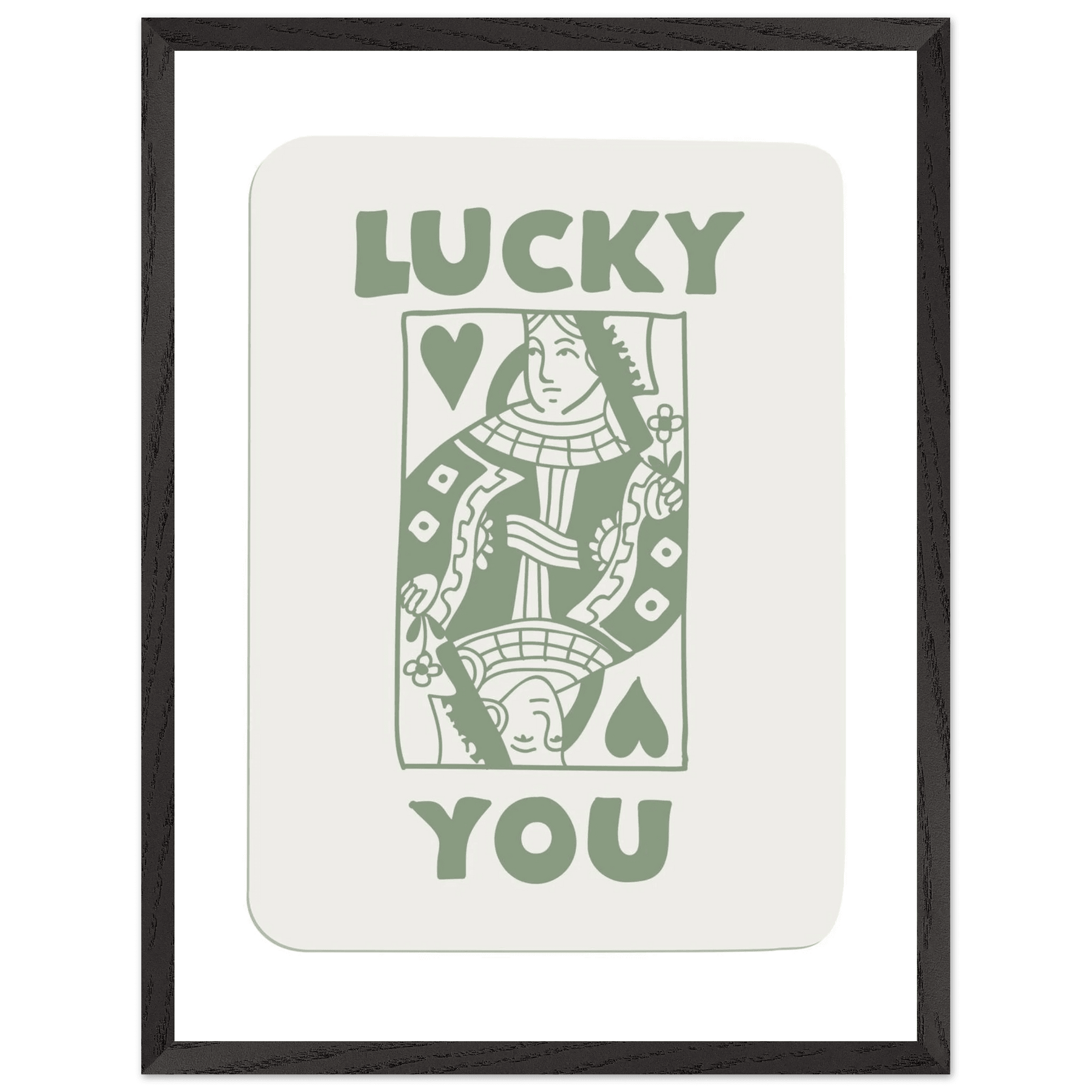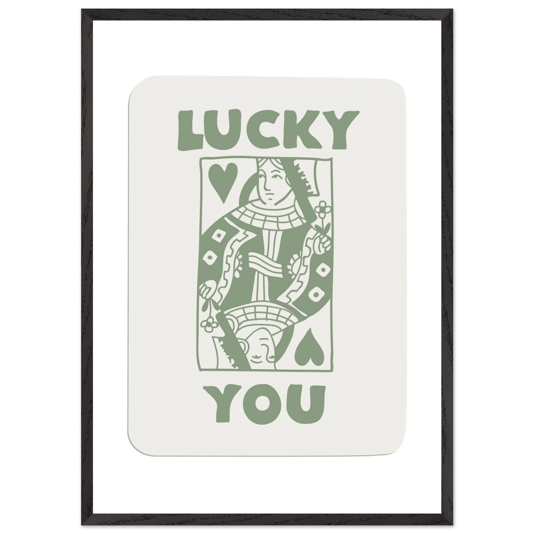 Elevate your decor with the Lucky You Poker Card Print - Queen of Hearts Framed Art - Eco-Friendly Wood Frame and let this unique piece bring joy and elegance to your space.