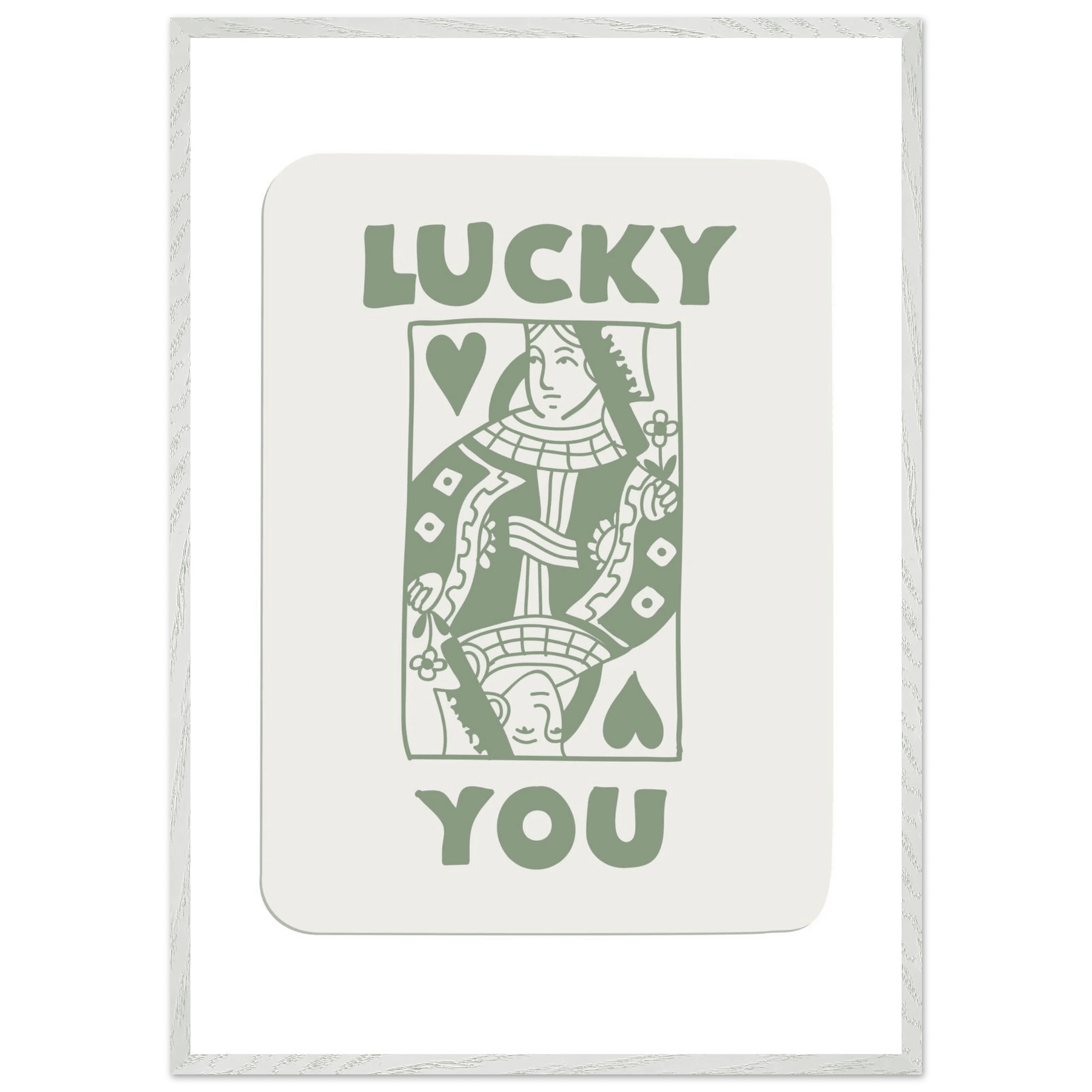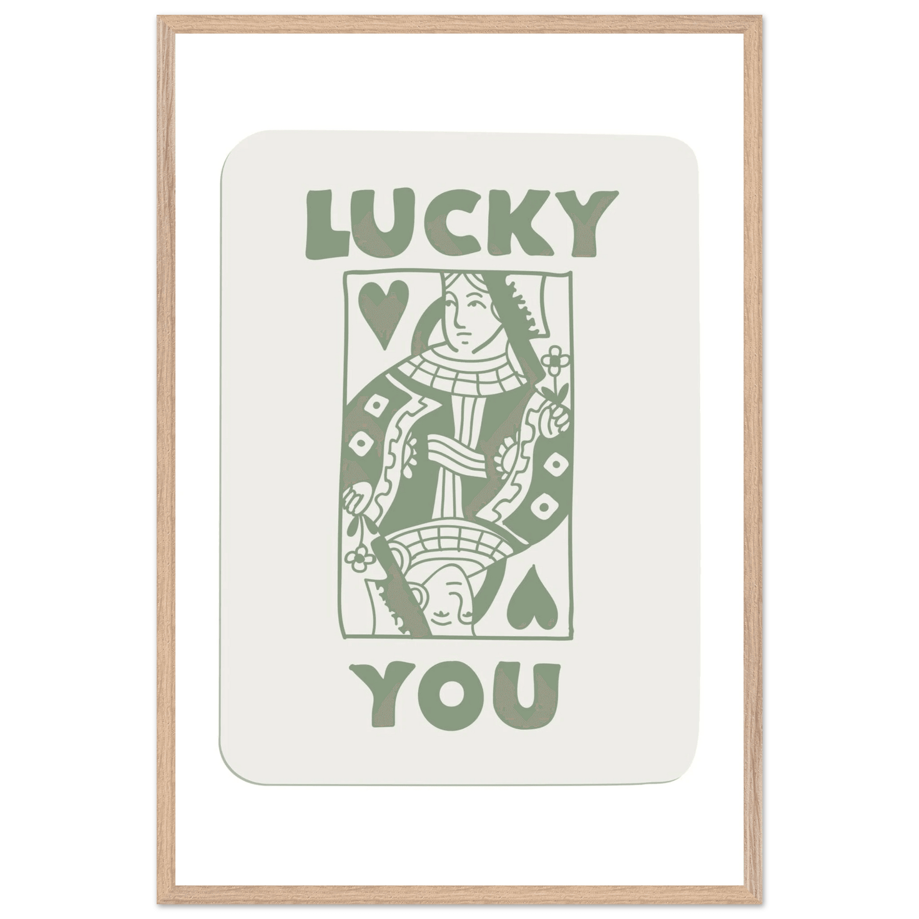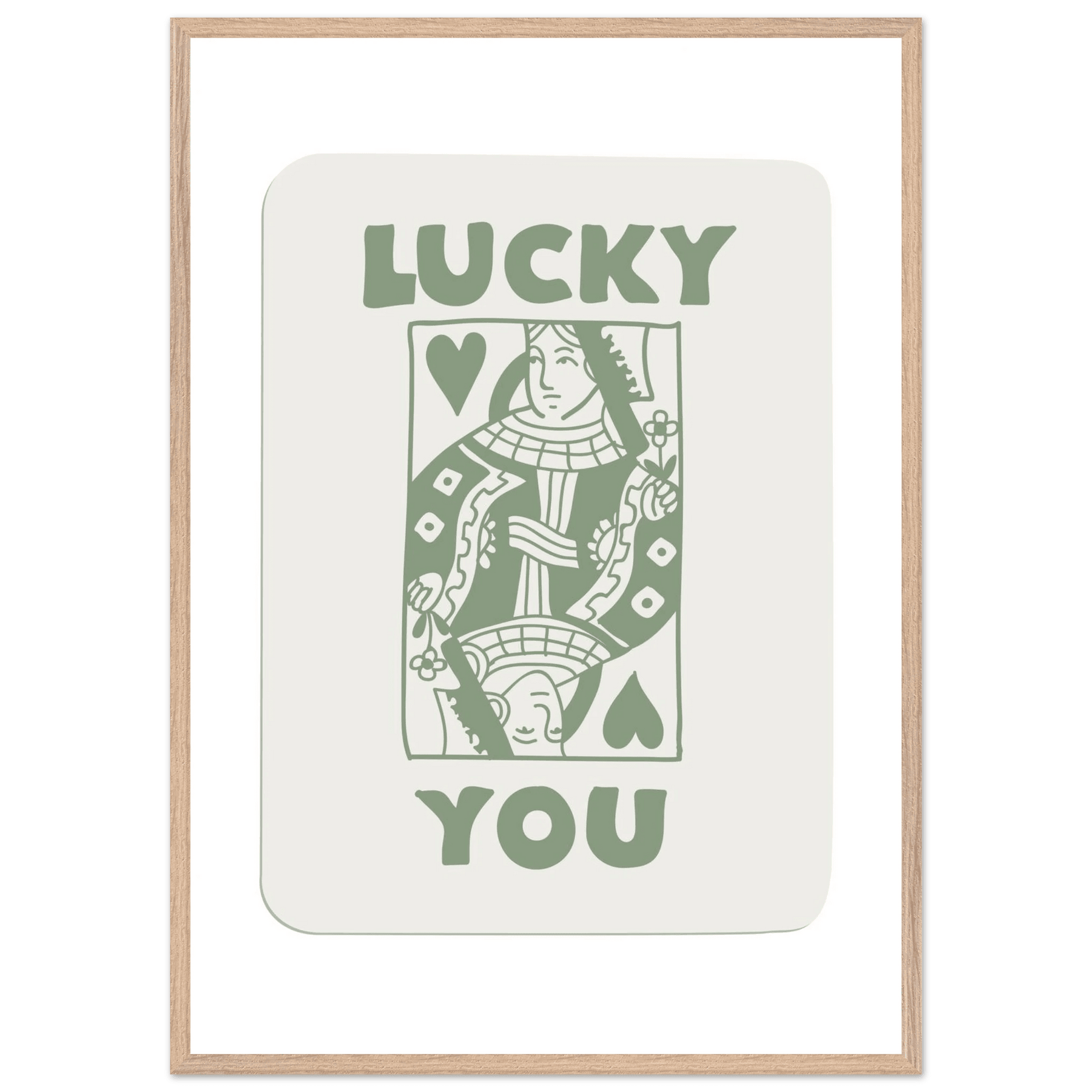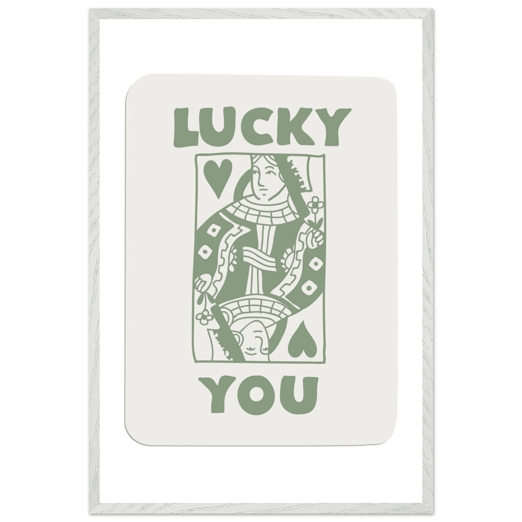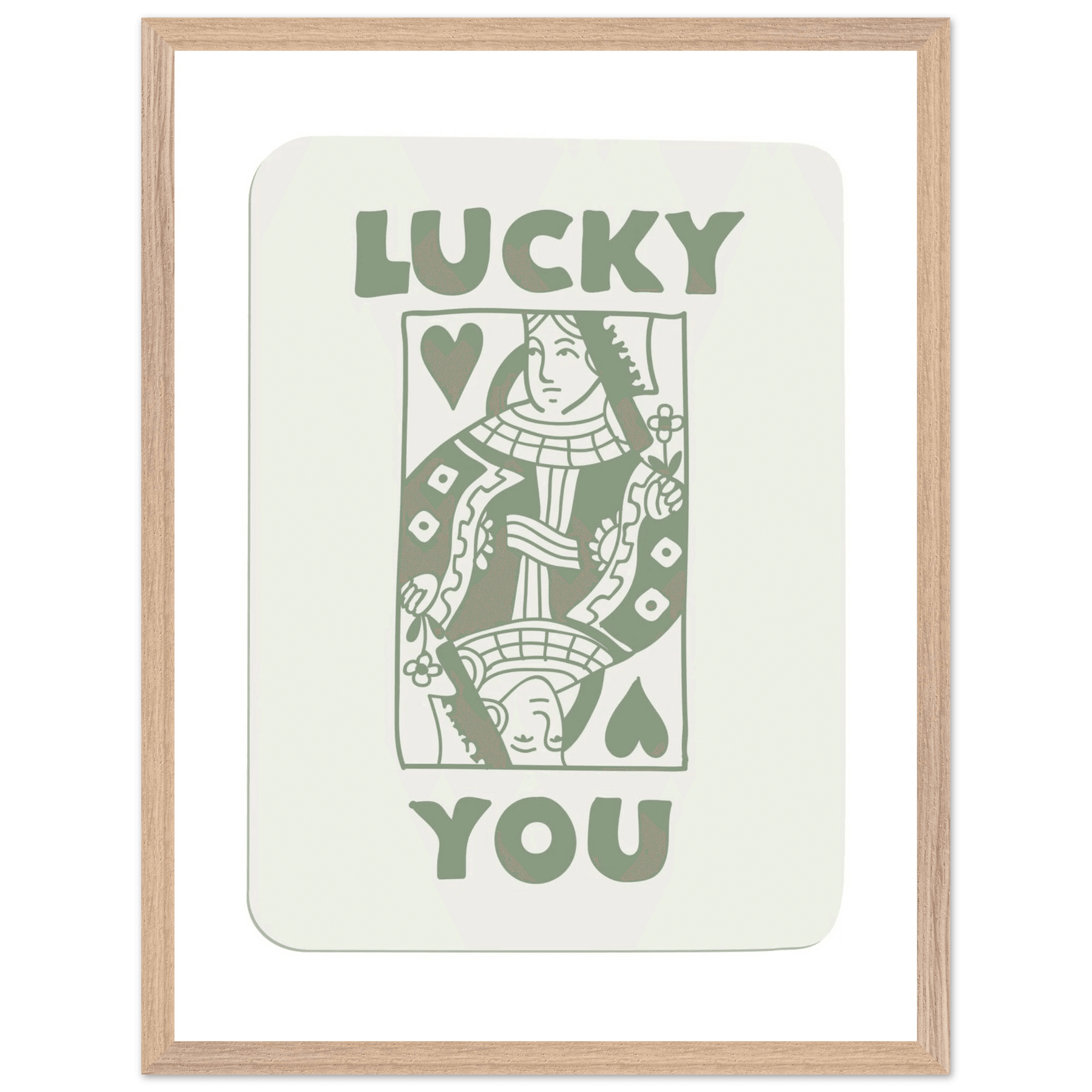 Elevate your decor with the Lucky You Poker Card Print - Queen of Hearts Framed Art - Eco-Friendly Wood Frame and let this unique piece bring joy and elegance to your space.