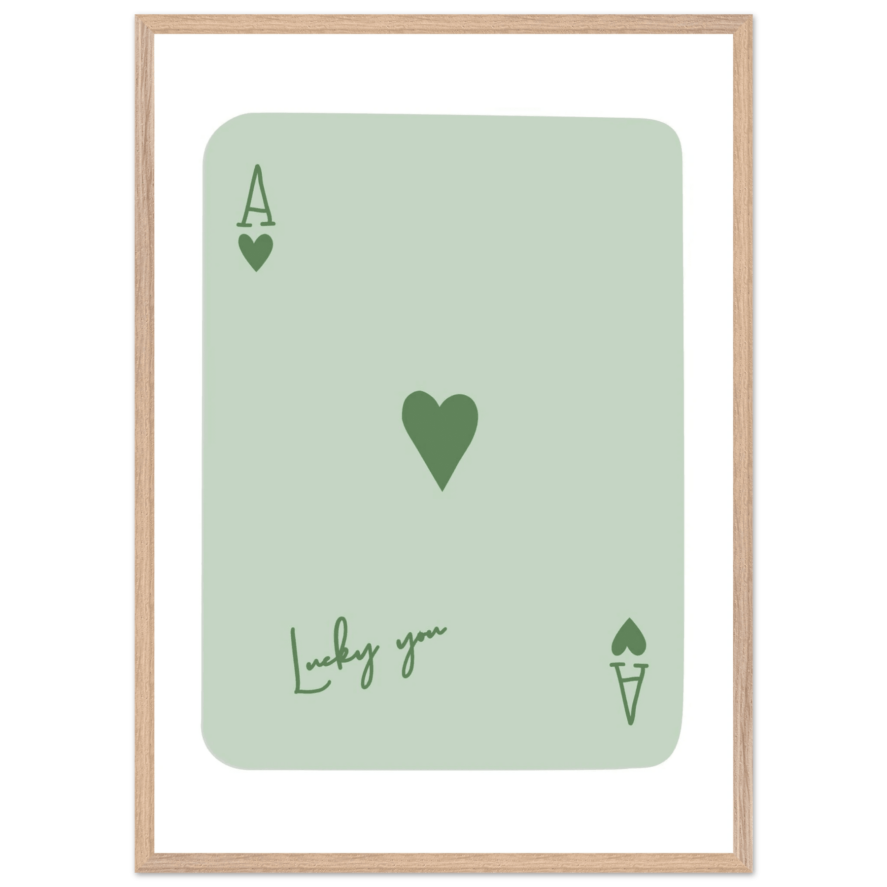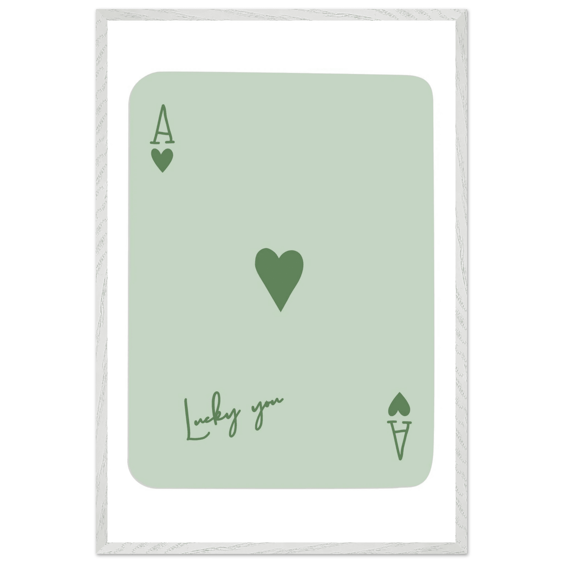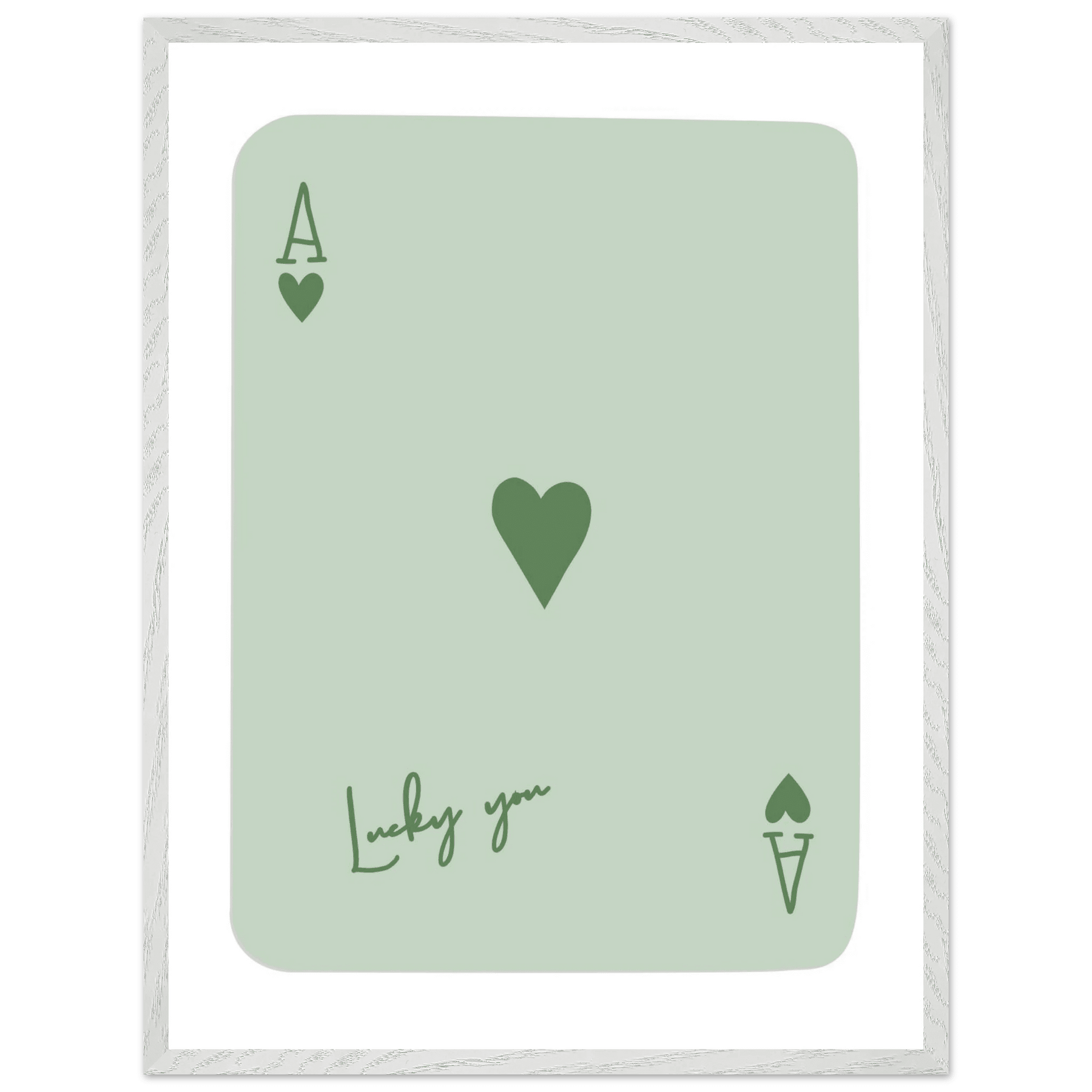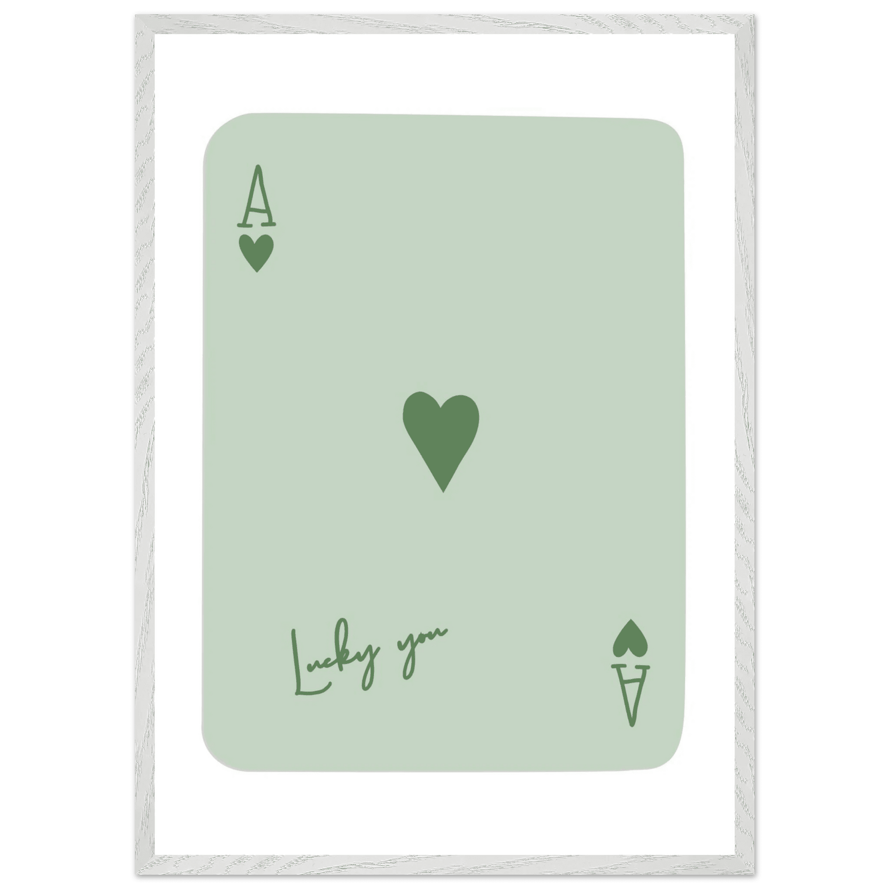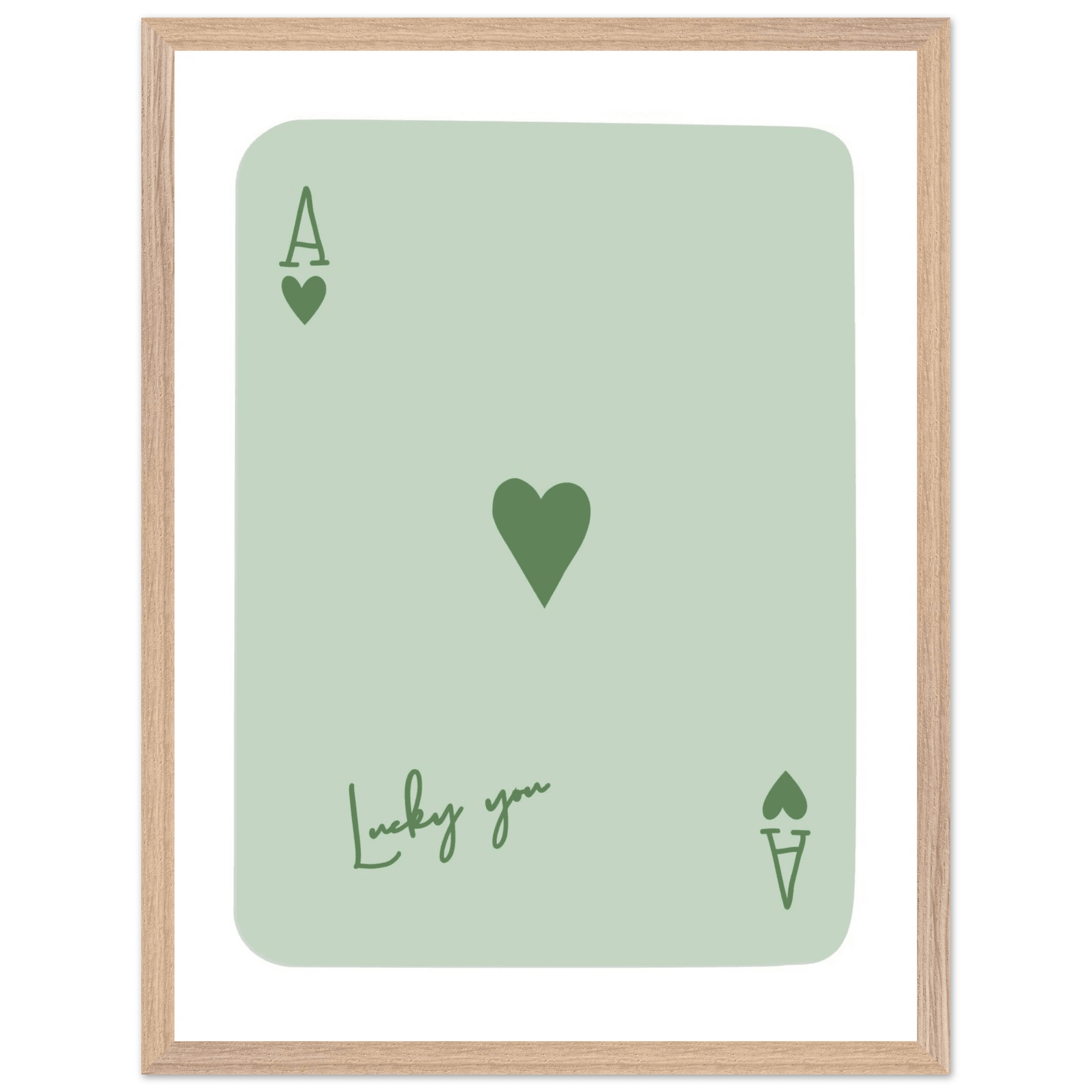 Minimalist Ace of Hearts Poker Card Print - Eco-Friendly Framed Wall Art, 'Lucky You' Design