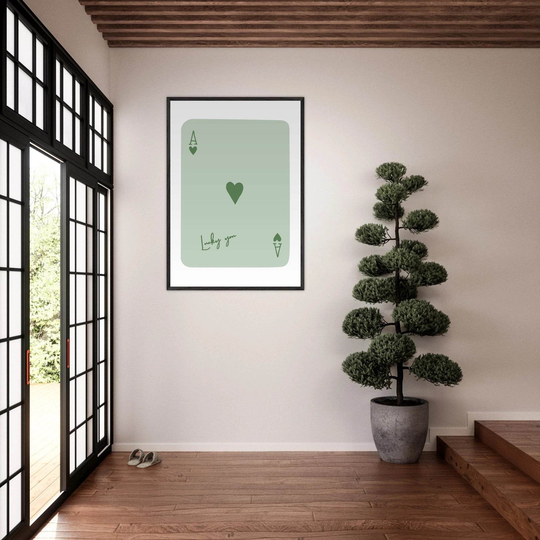 The Minimalist Ace of Hearts Poker Card Print - Eco-Friendly Framed Wall Art, 'Lucky You' Design is an exceptional piece that embodies elegance and charm, perfect for any enthusiast of poker or minimalistic art. This stunning print features the iconic Ace of Hearts, designed with a sleek, modern aesthetic that captures attention while maintaining simplicity. Crafted from eco-friendly materials, this wall art not only enhances your space aesthetically but also aligns with environmentally conscious values. Hang it in your game room, living room, or office to inspire good luck and fortune wherever you are.