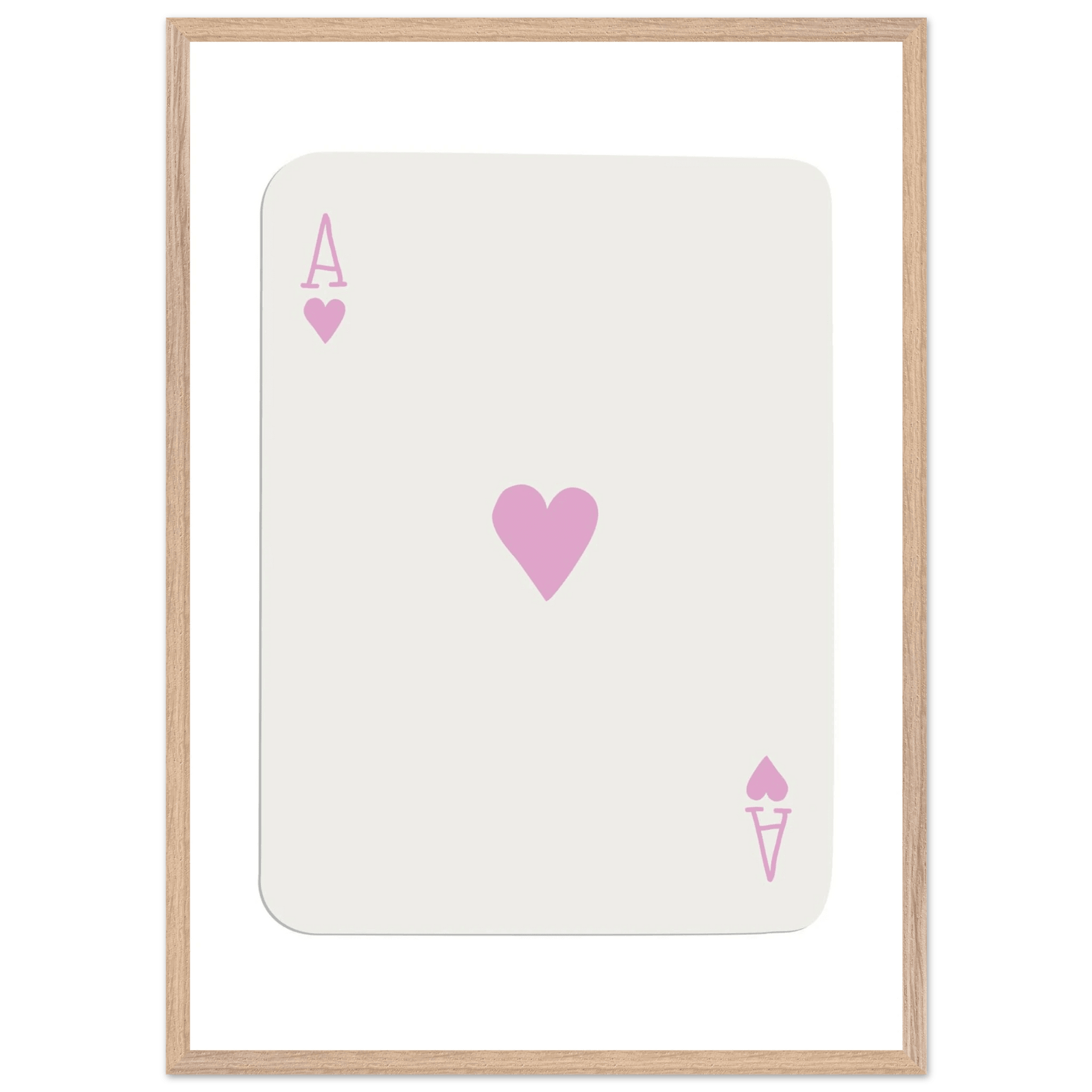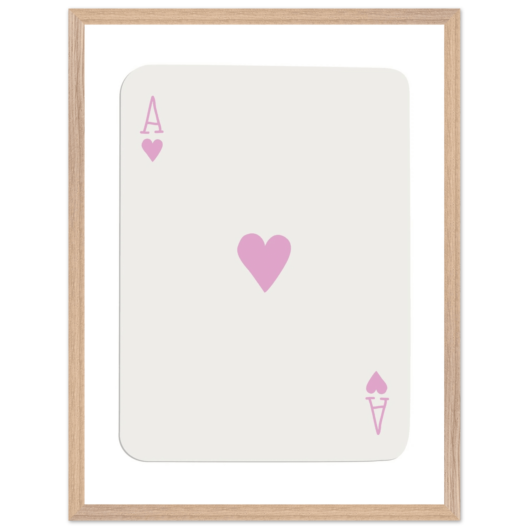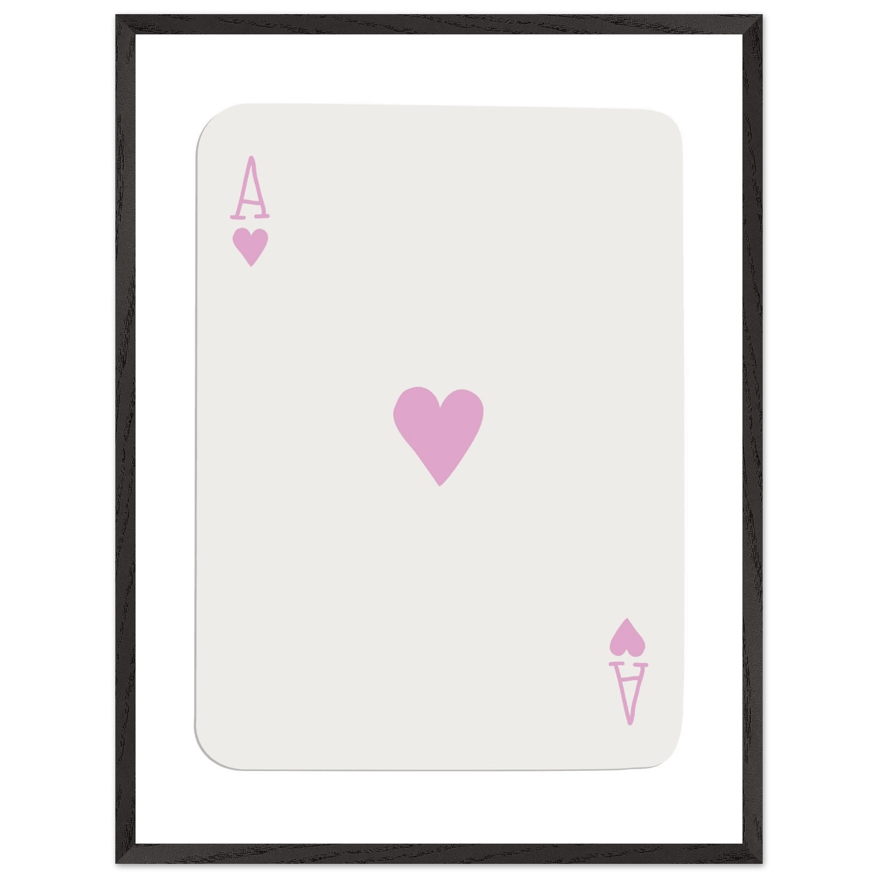 Minimalist Ace of Hearts Poker Card Print - Mounted Framed Poster Art, Eco-Friendly Wood Frame