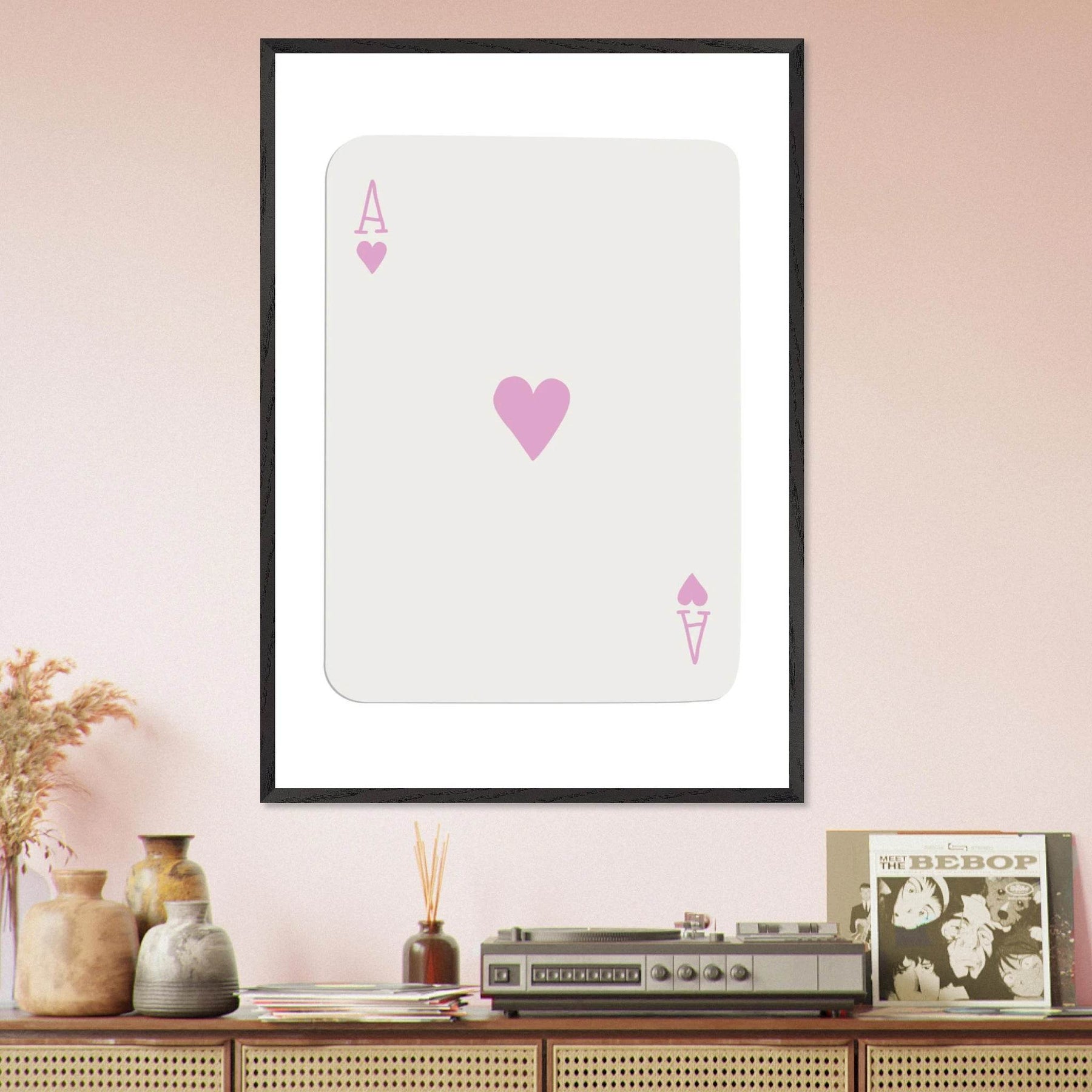 Don't miss out on adding this unique and delightful piece to your decor. The Minimalist Ace of Hearts Poker Card Print - Mounted Framed Poster Art, Eco-Friendly Wood Frame is not just a product; it's a celebration of the game and a piece of art that will be cherished for years to come.