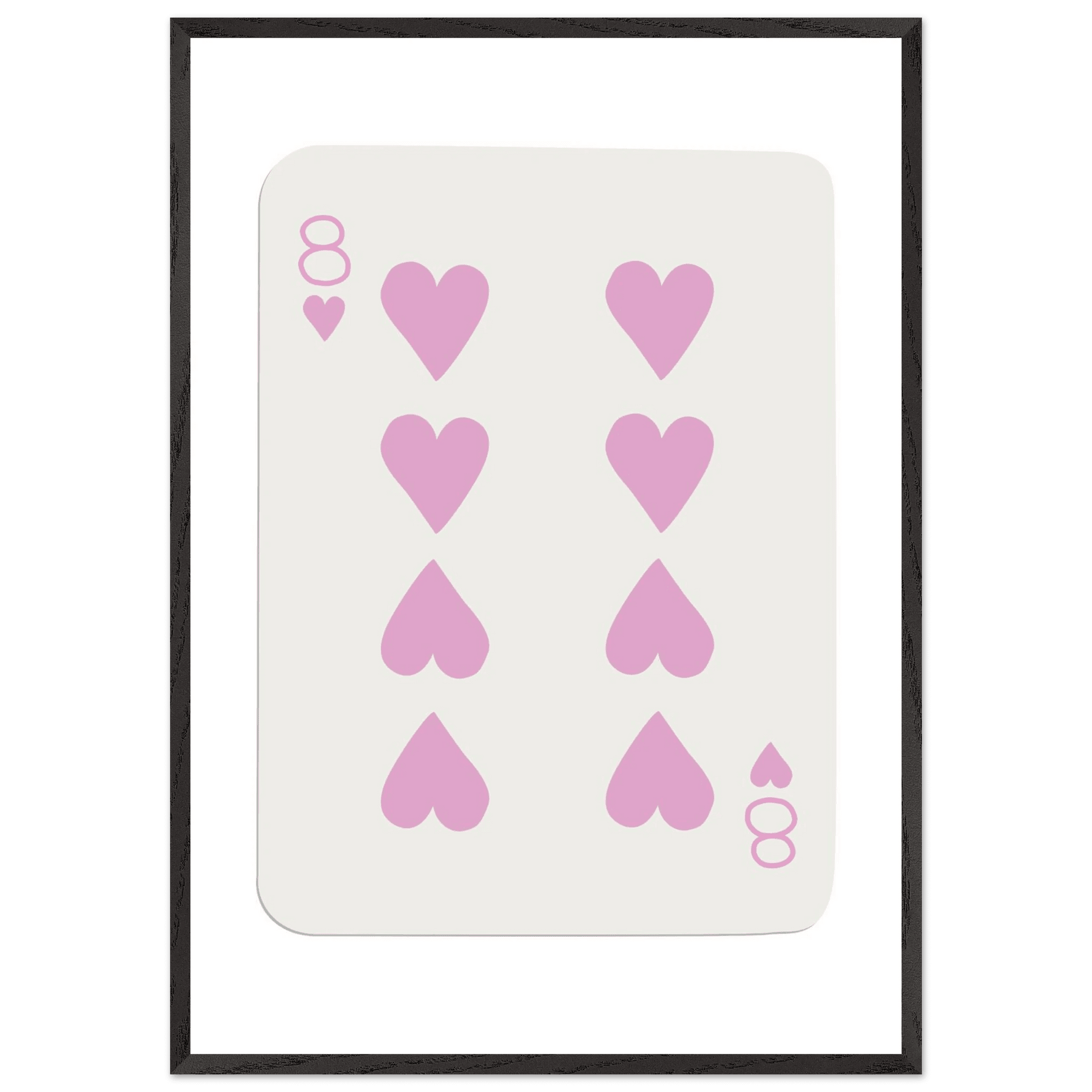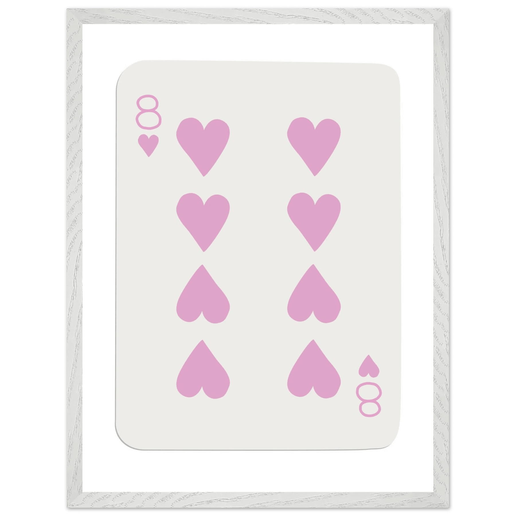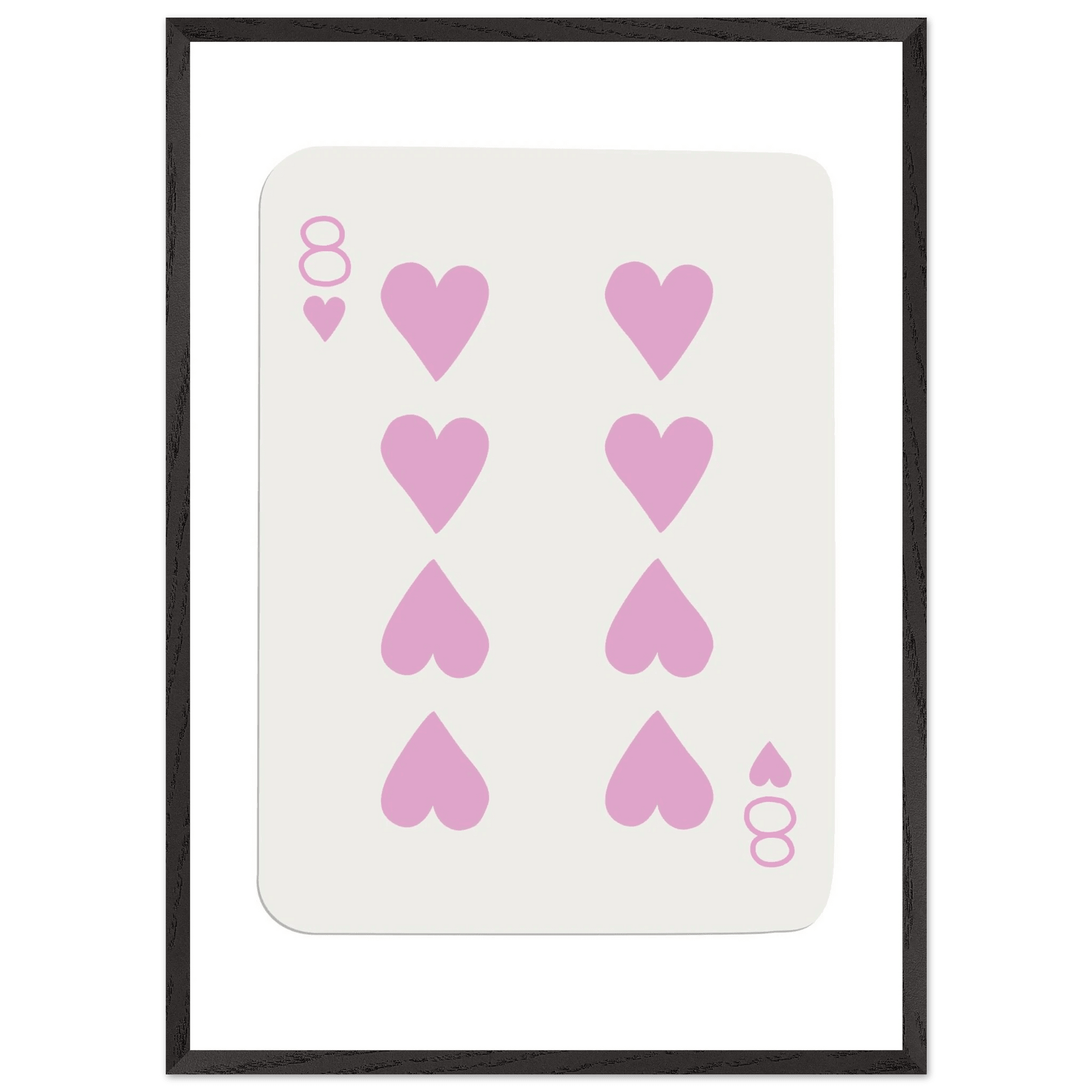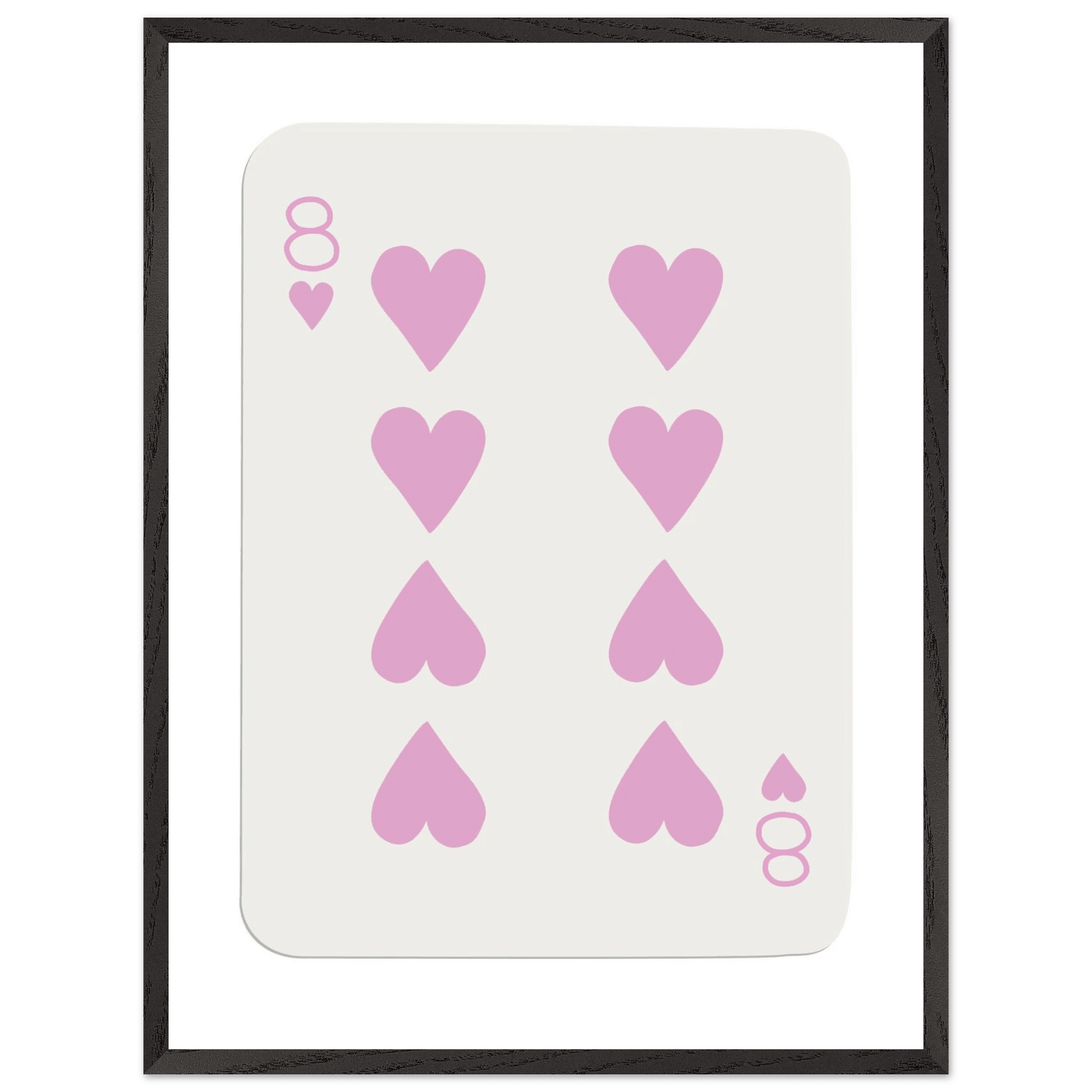 Minimalist Eight of Hearts Poker Card Print - Mounted Framed Art in Eco-Friendly Wood Frame