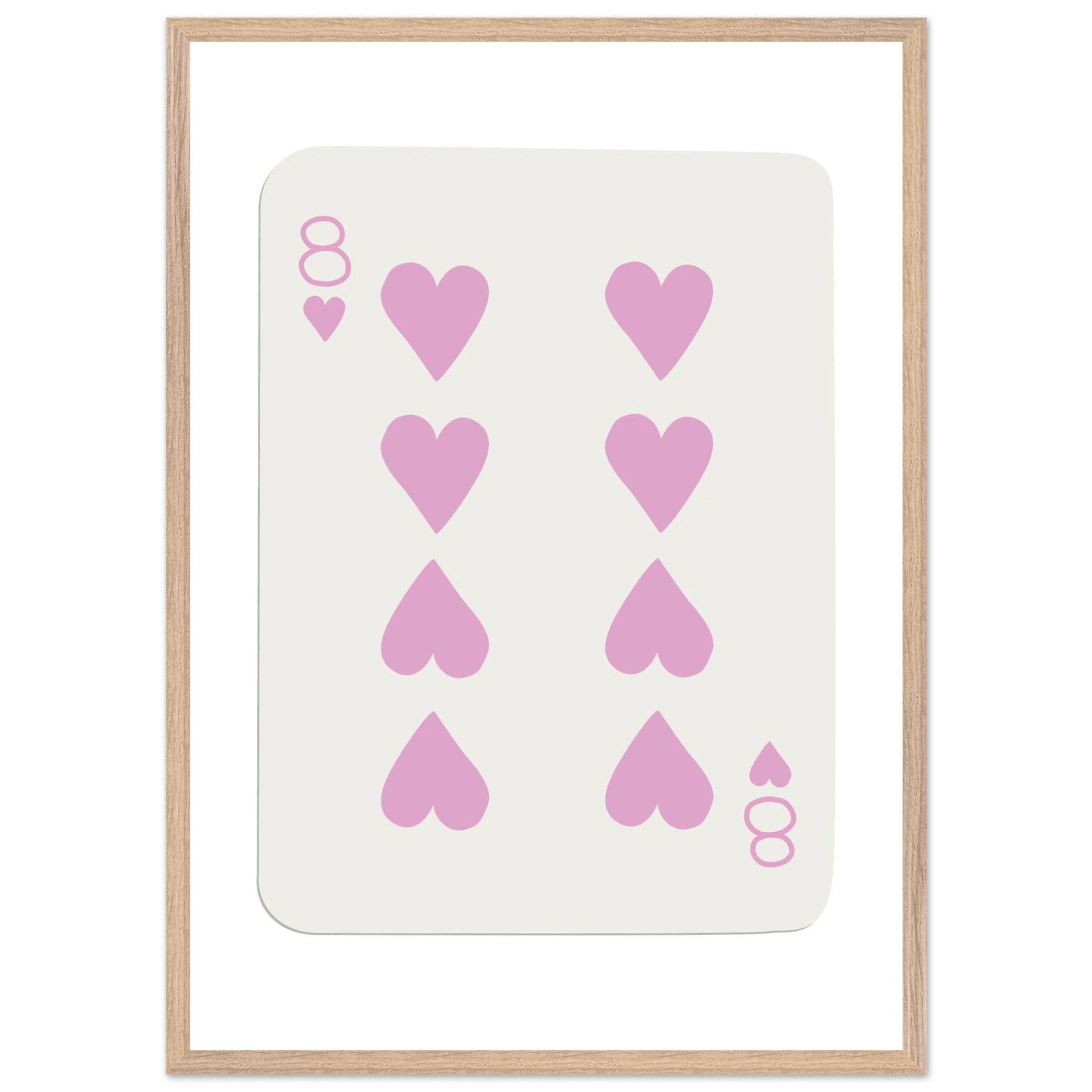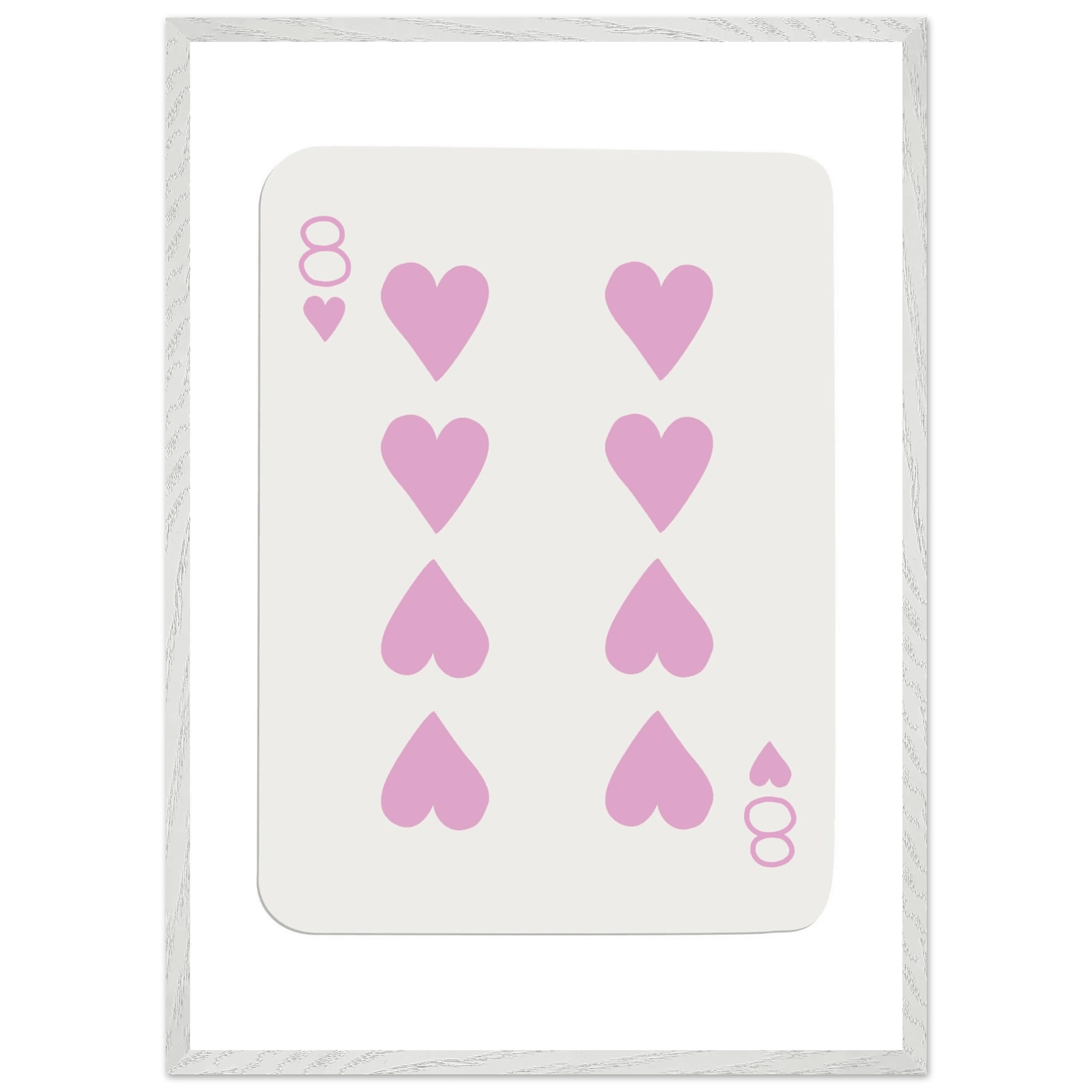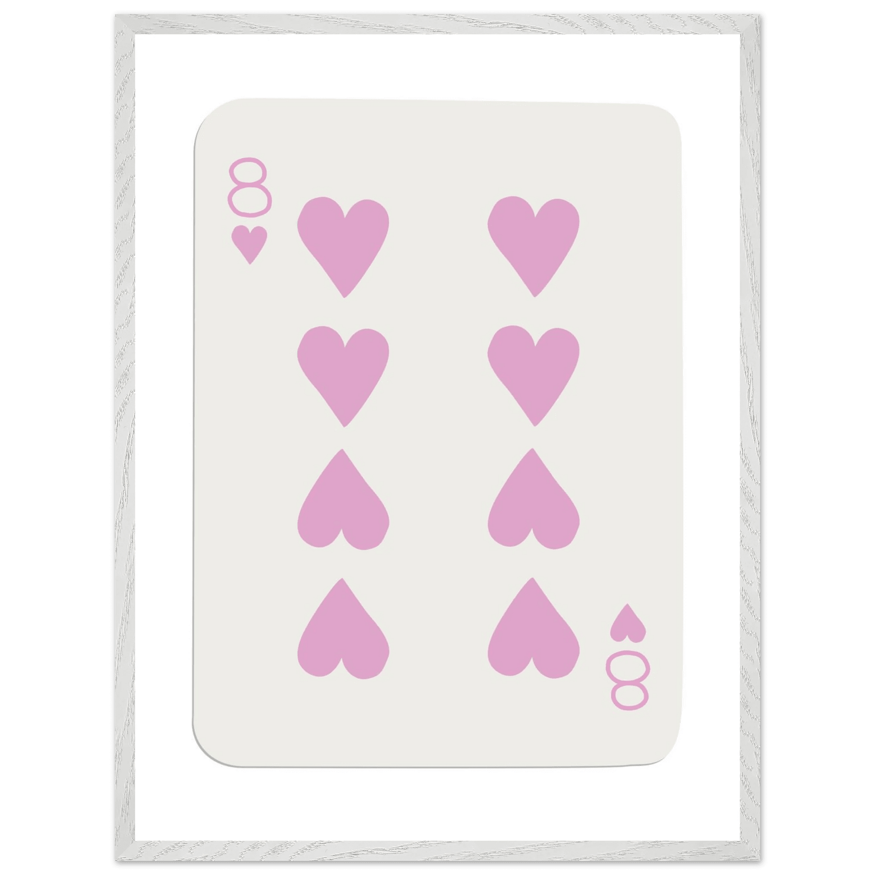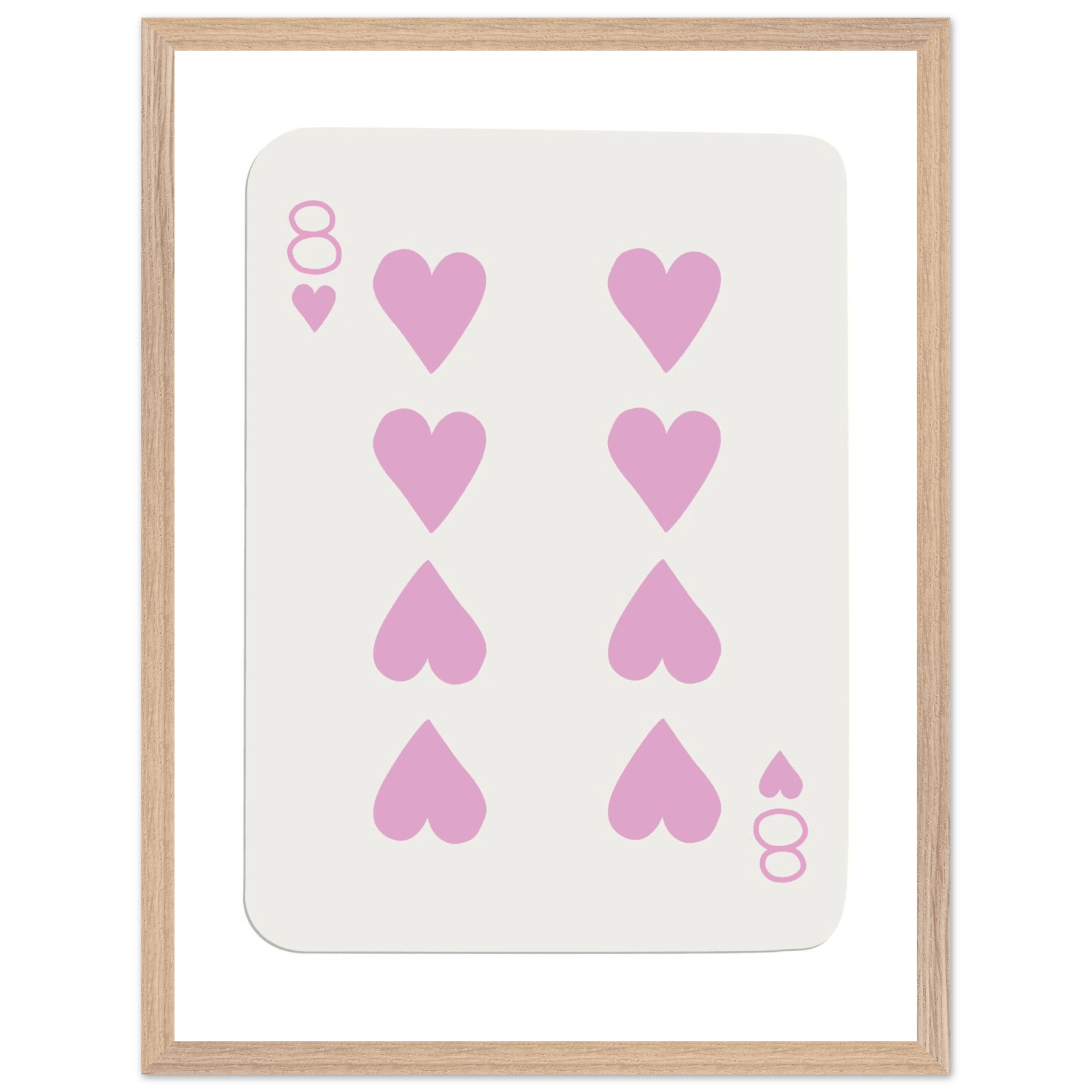 Minimalist Eight of Hearts Poker Card Print - Mounted Framed Art in Eco-Friendly Wood Frame