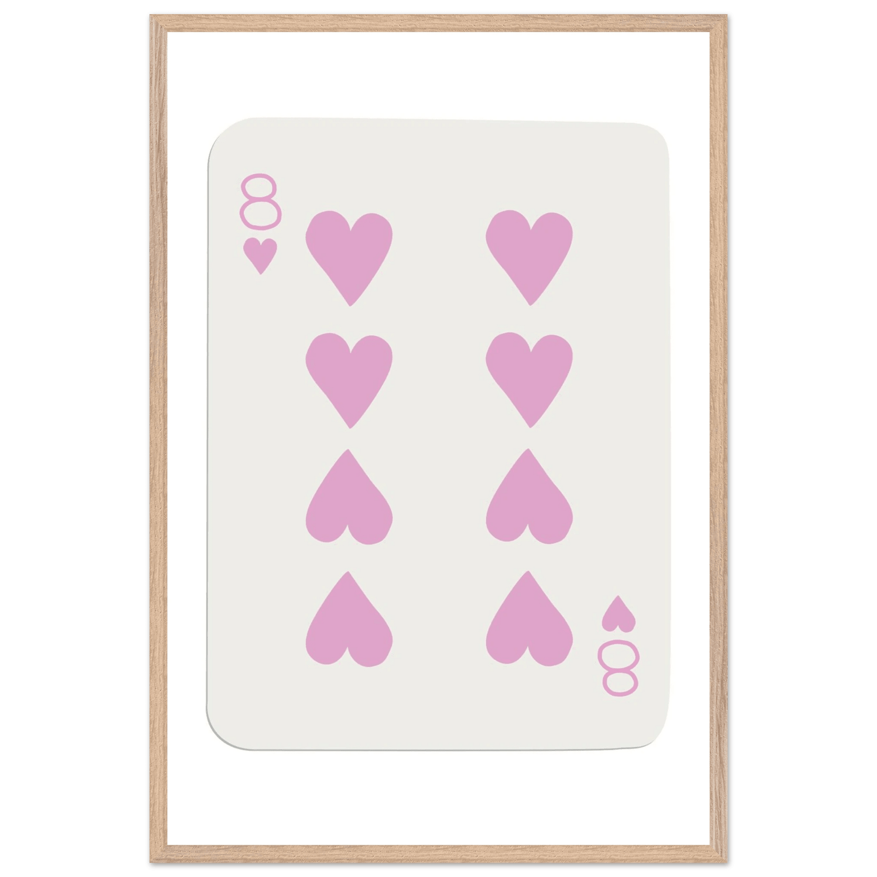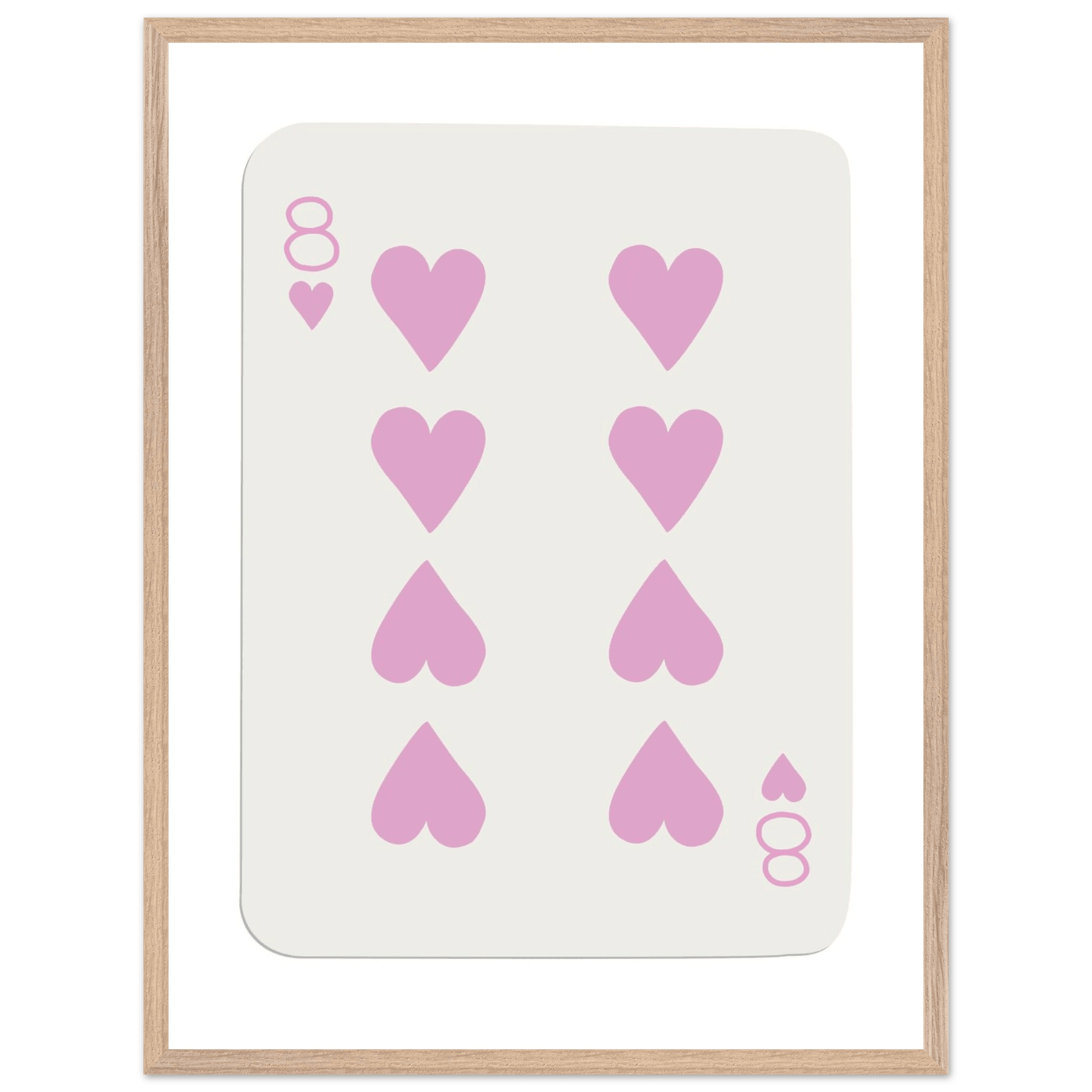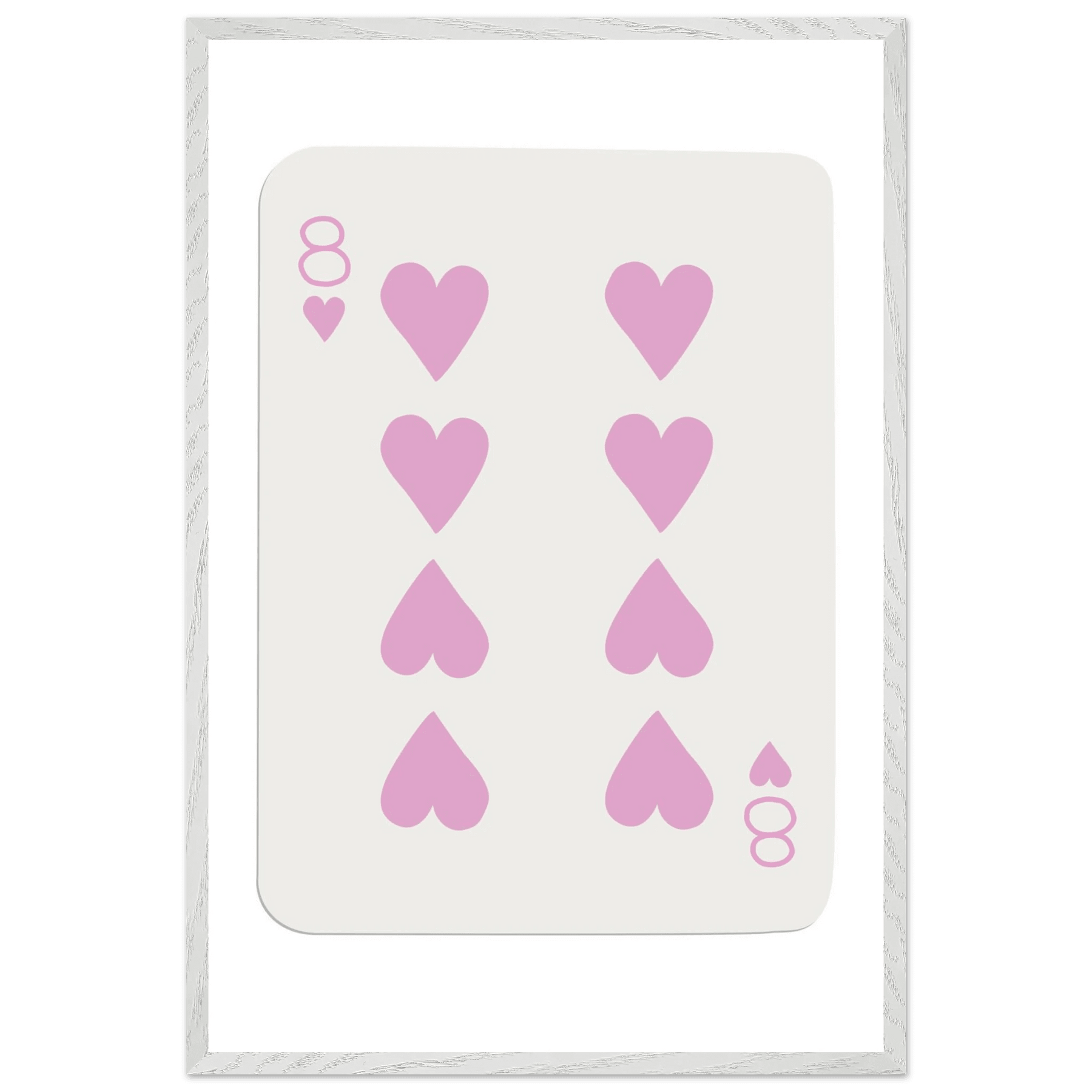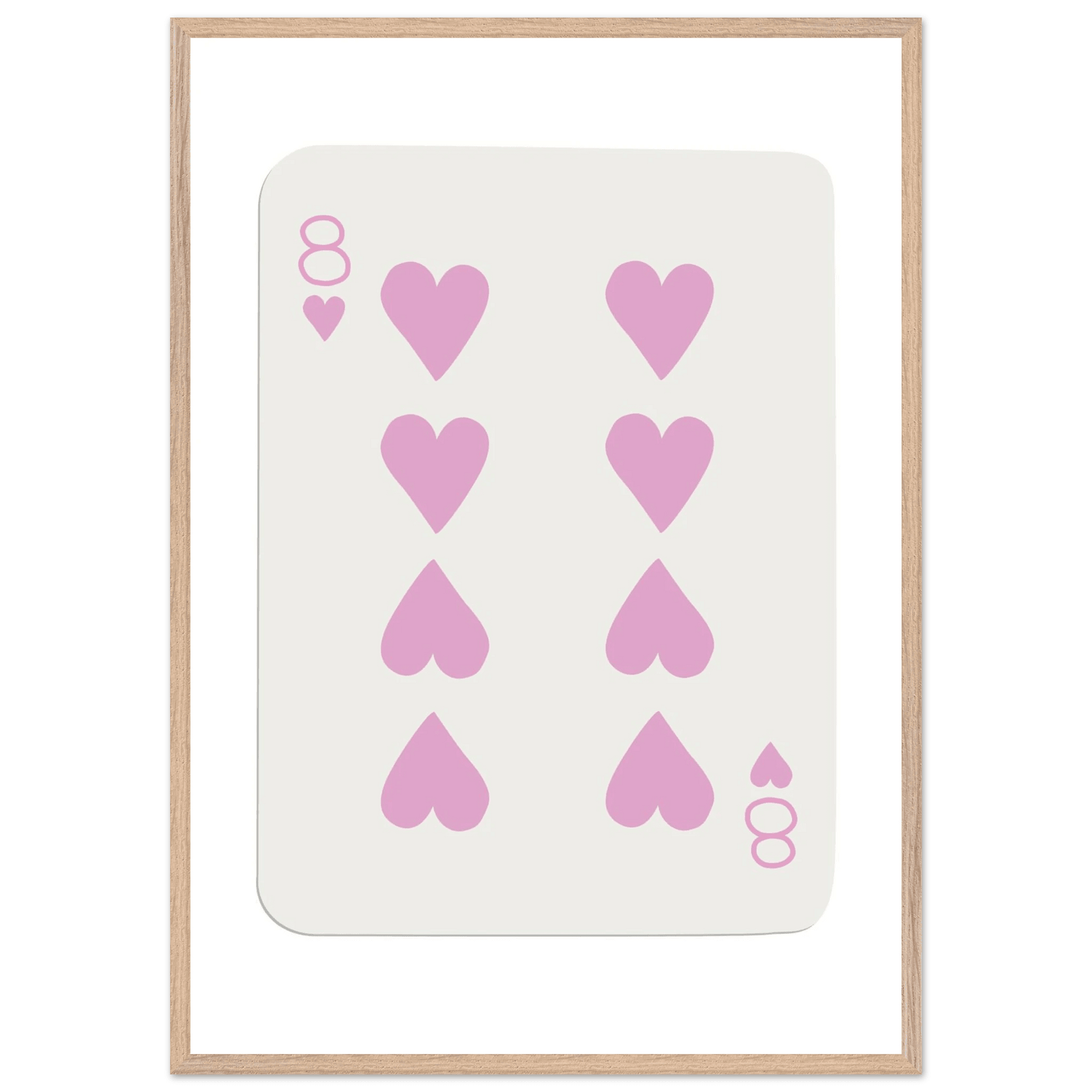 Minimalist Eight of Hearts Poker Card Print - Mounted Framed Art in Eco-Friendly Wood Frame