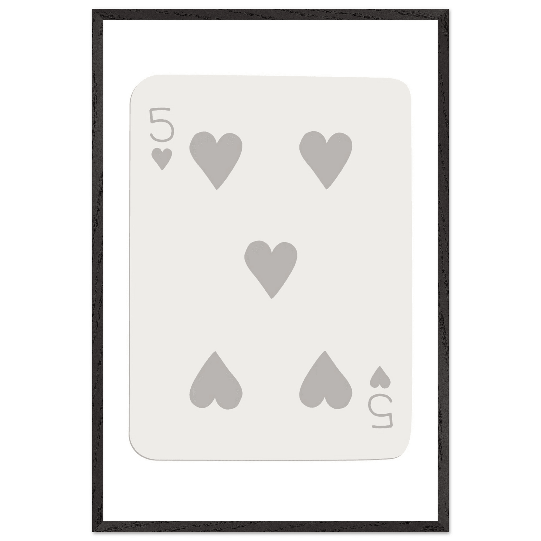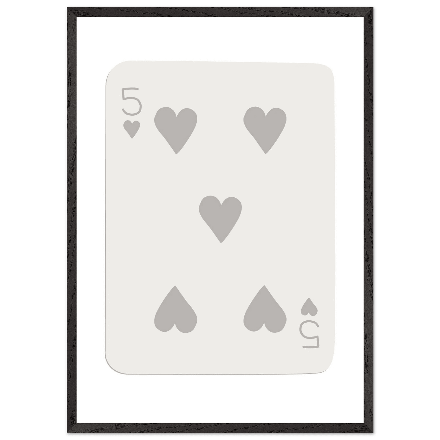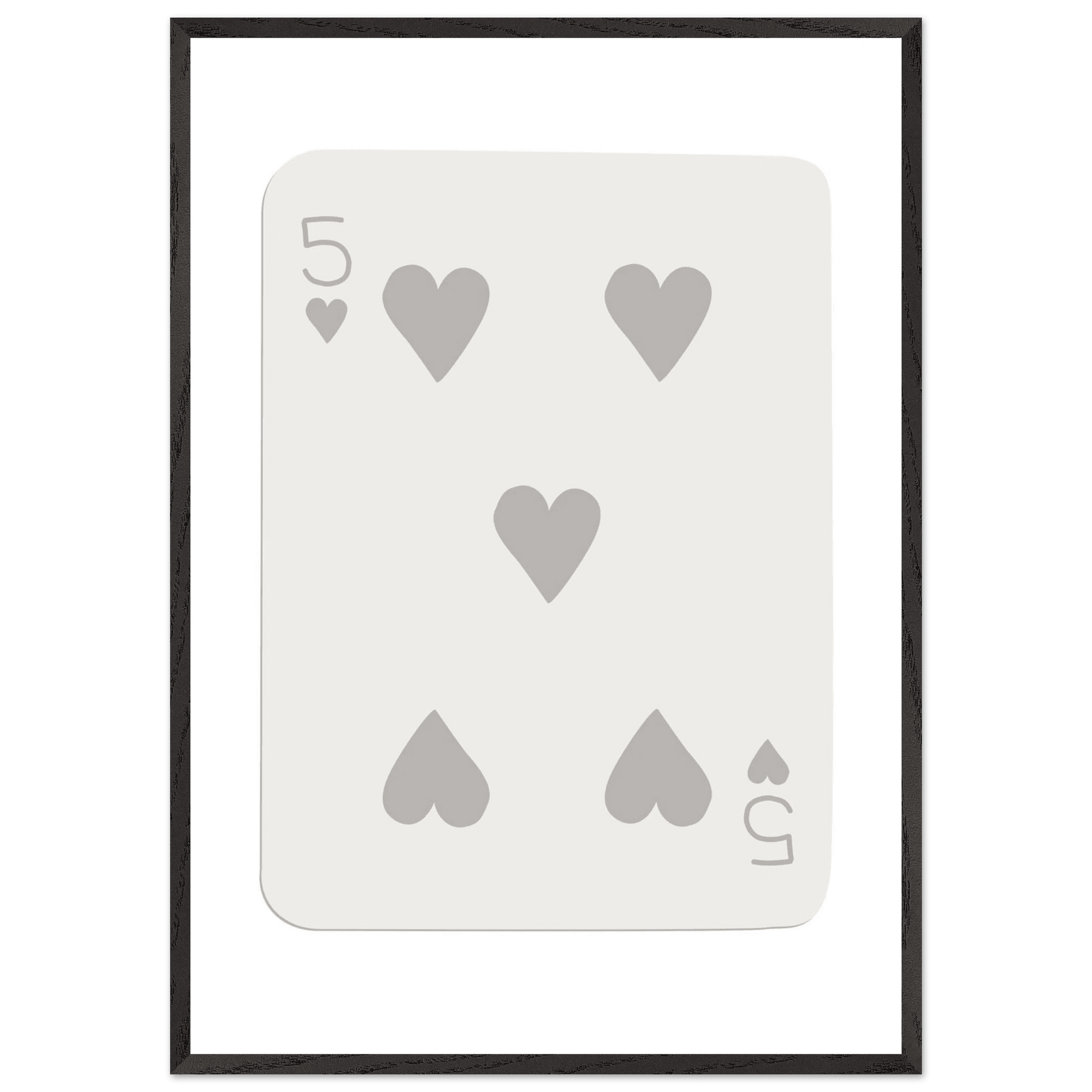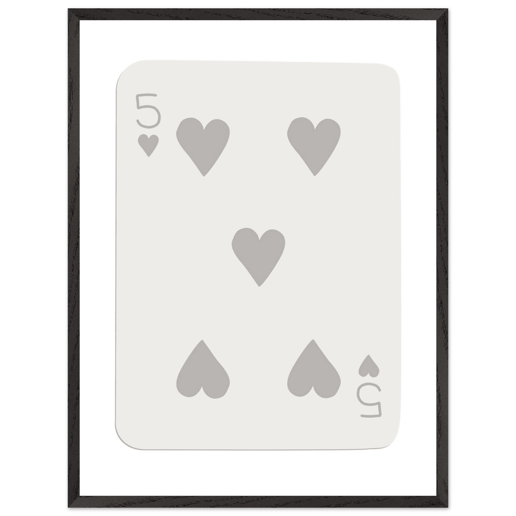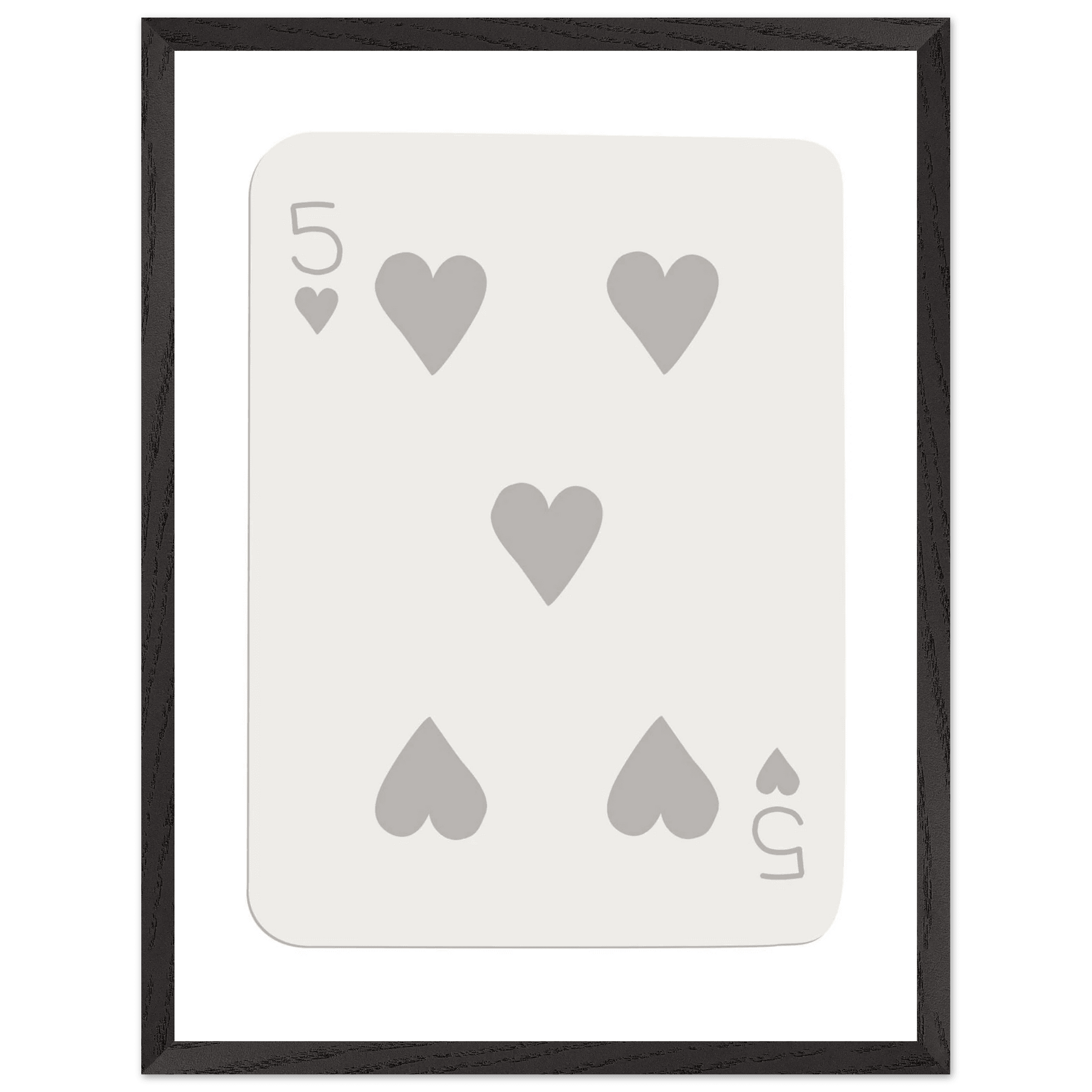 Minimalist Five of Hearts Poker Card Print - Eco-Friendly Mounted Framed Art for Modern Decor