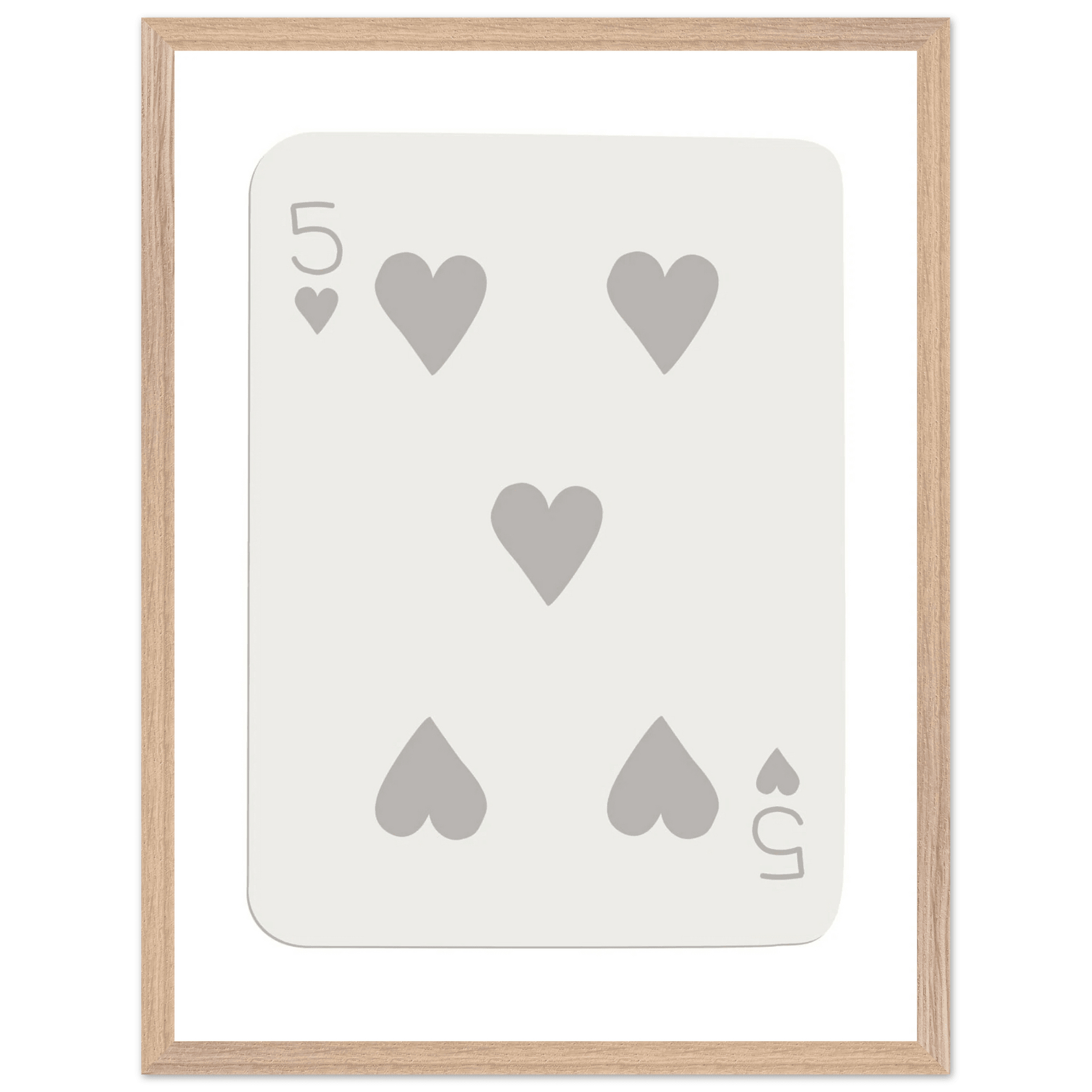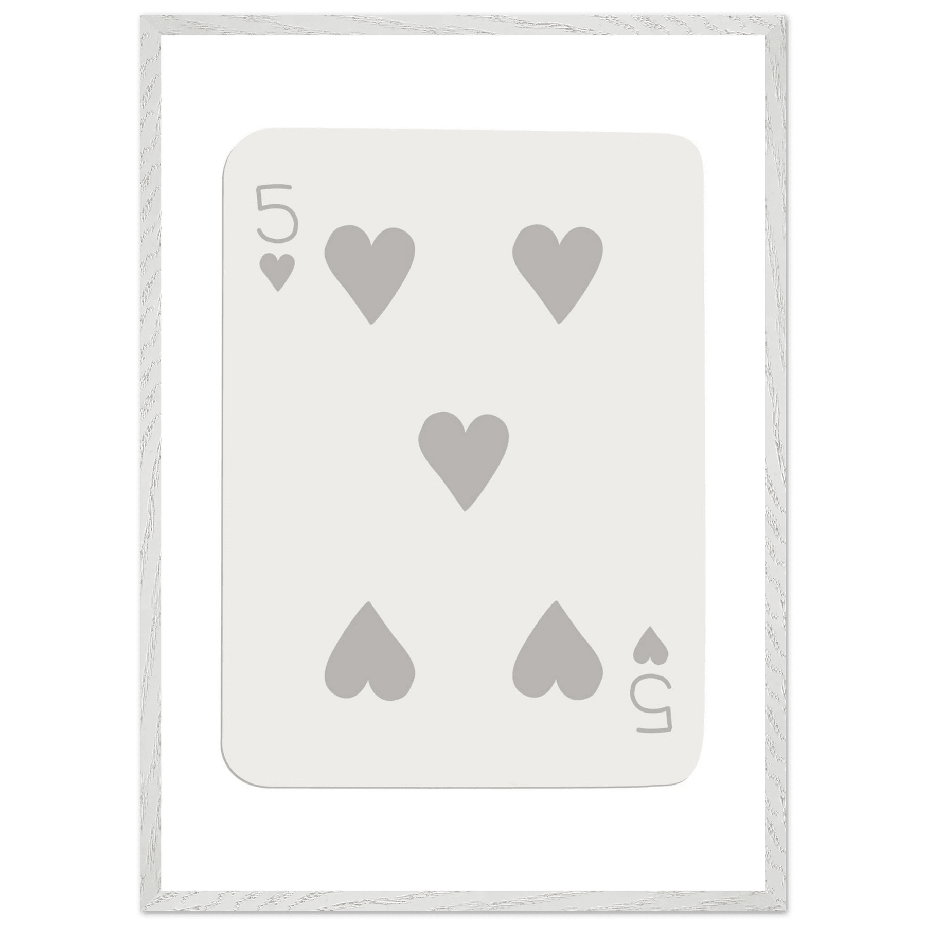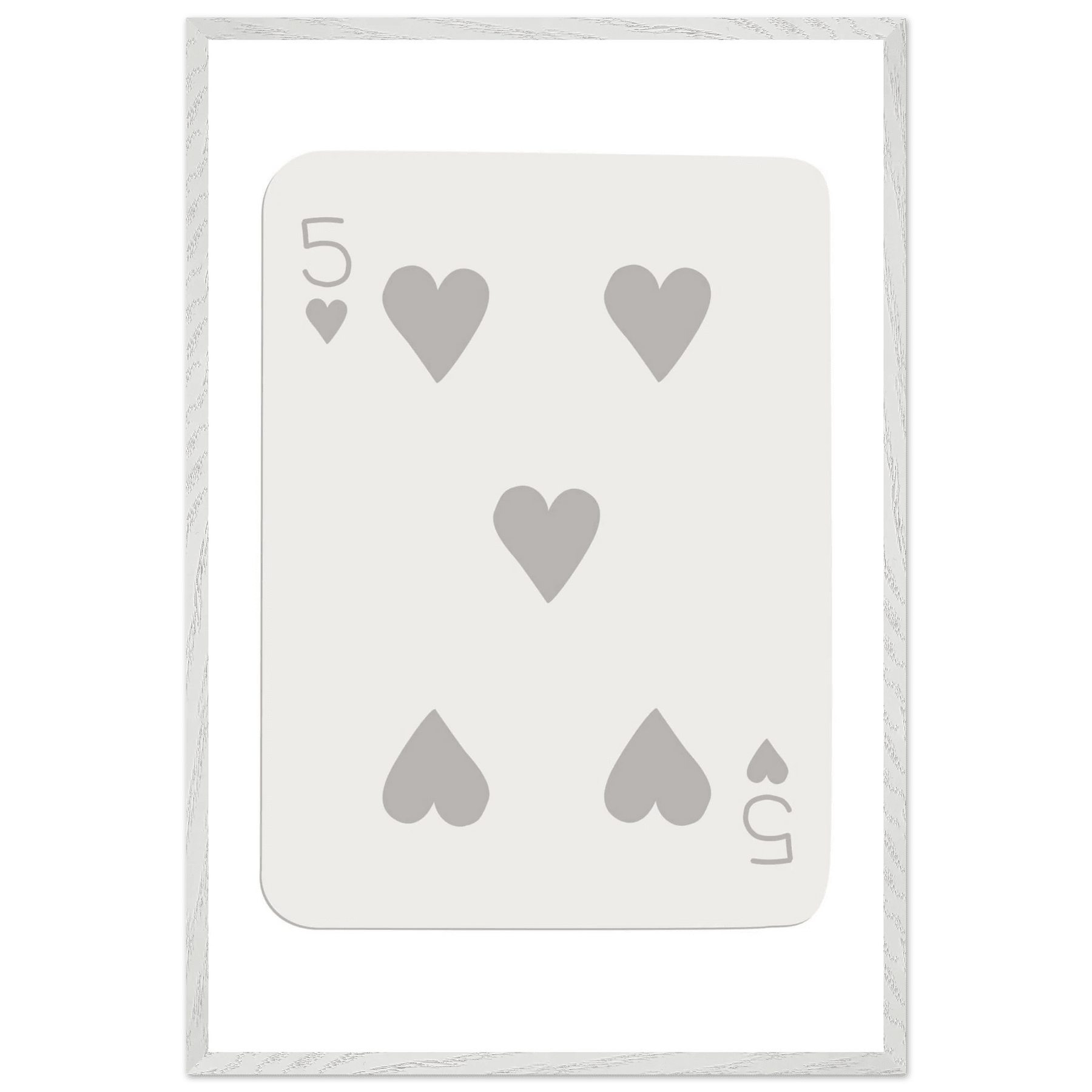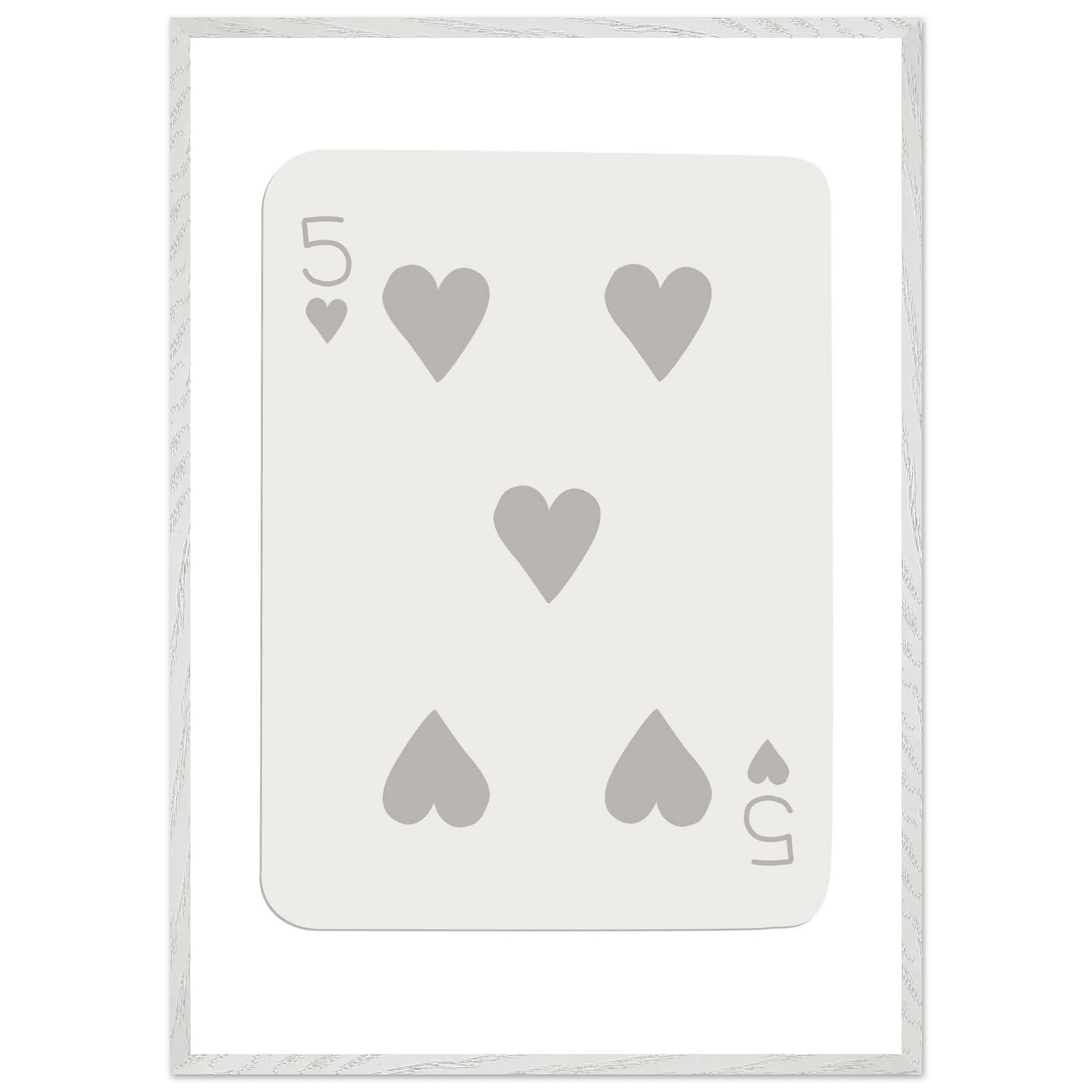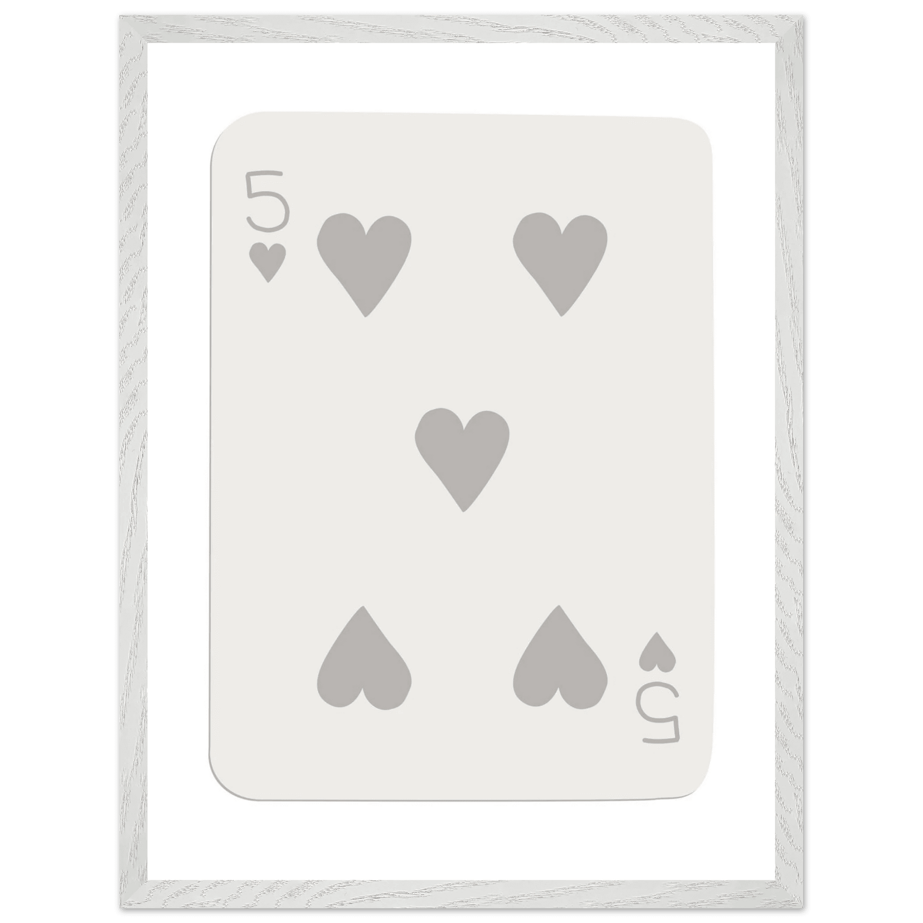 Minimalist Five of Hearts Poker Card Print - Eco-Friendly Mounted Framed Art for Modern Decor