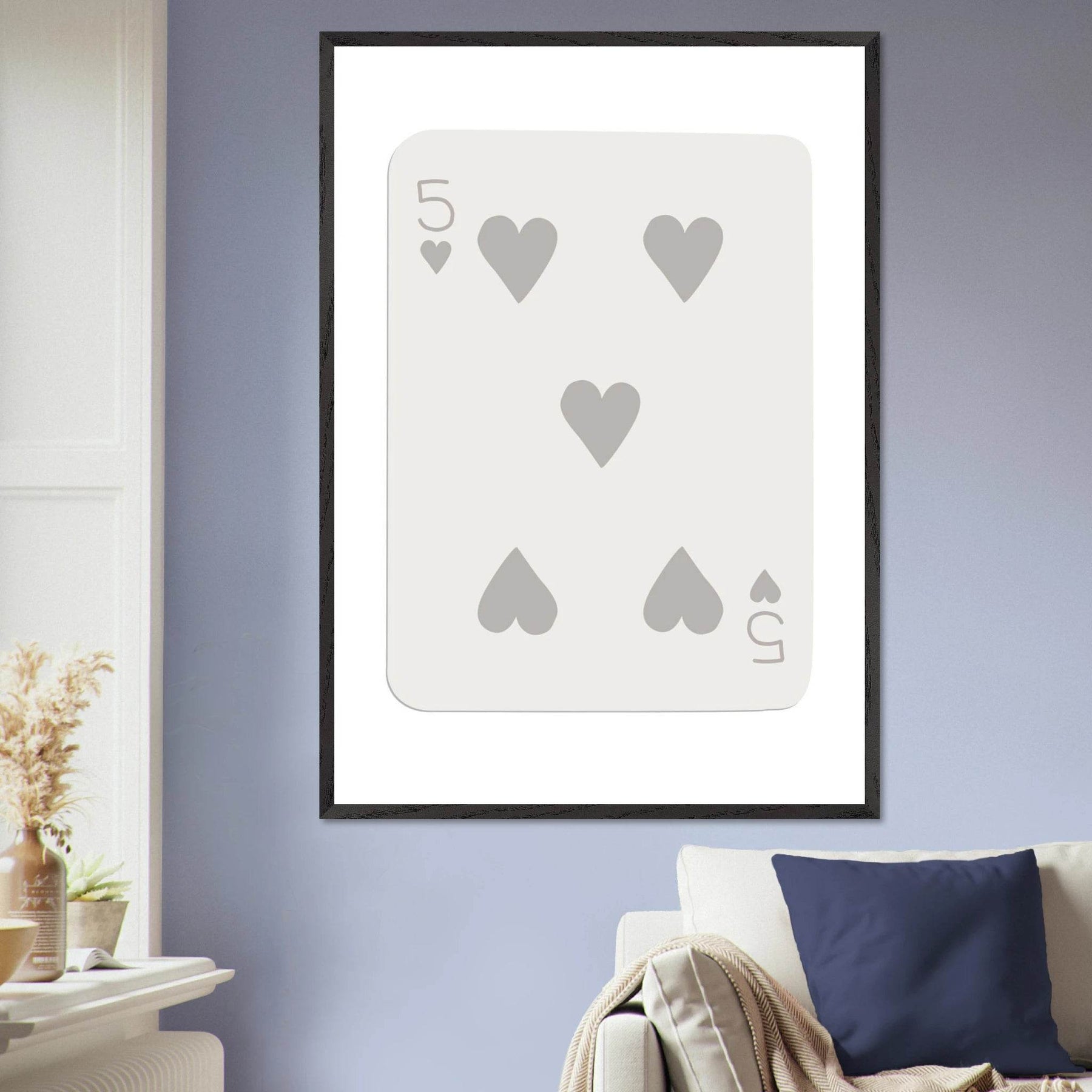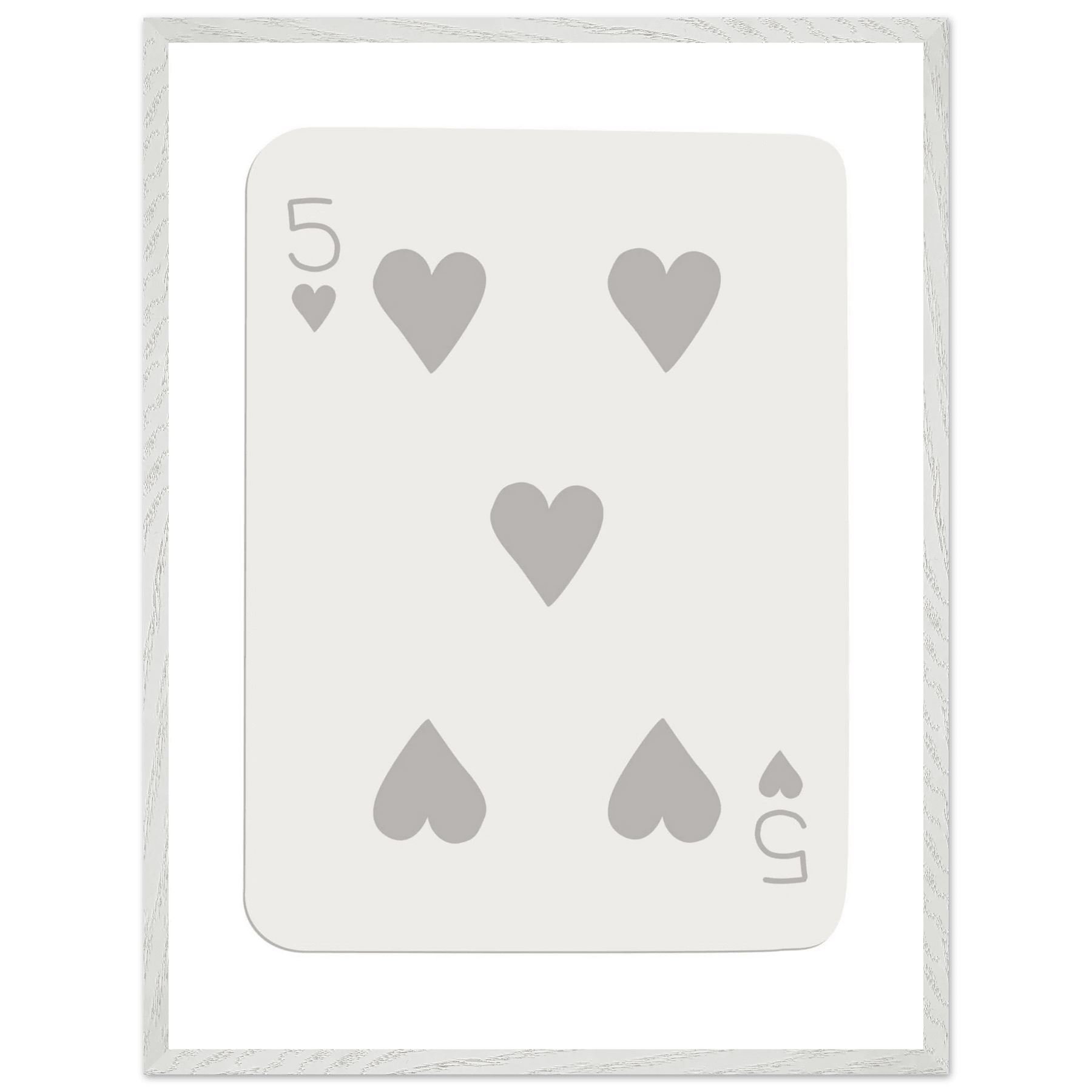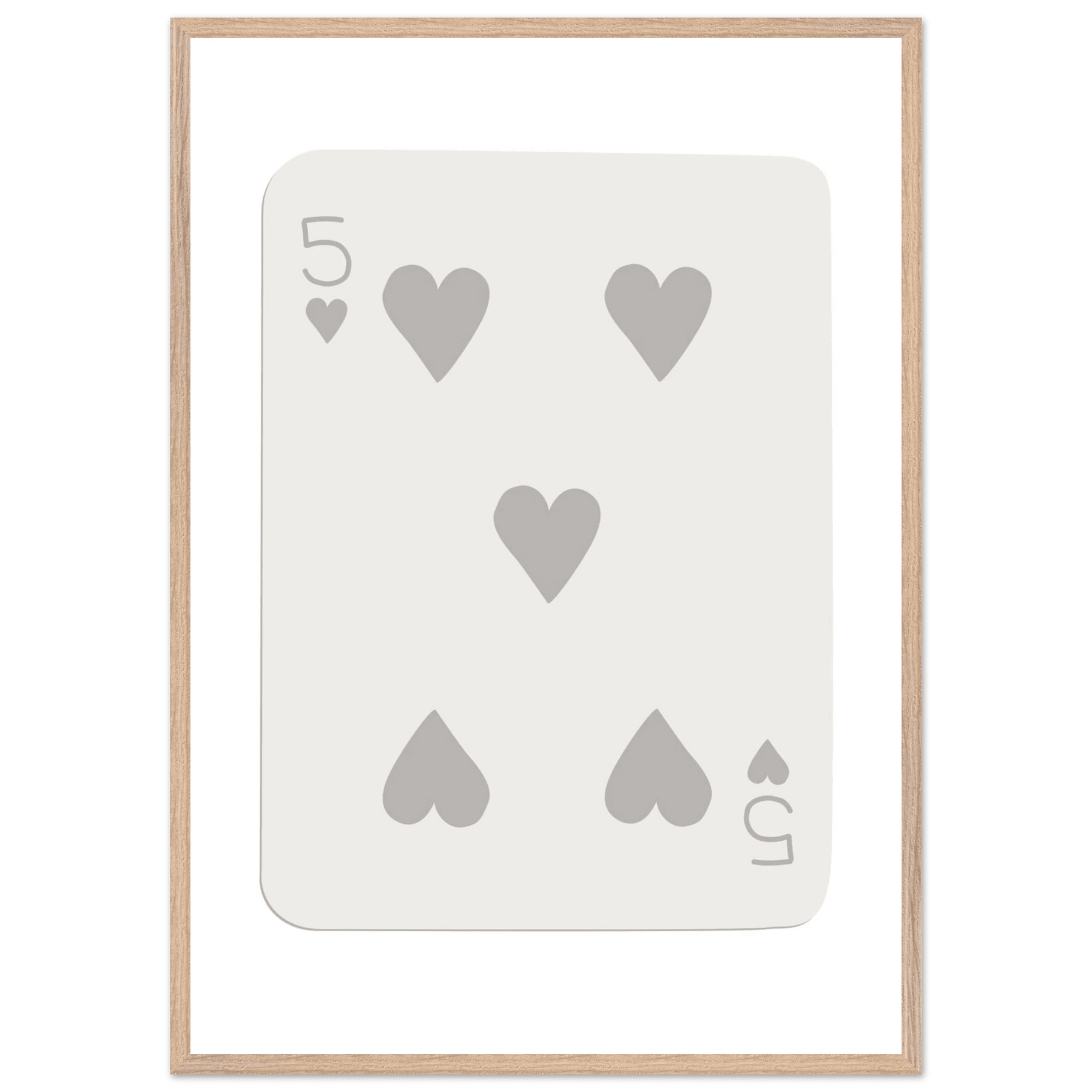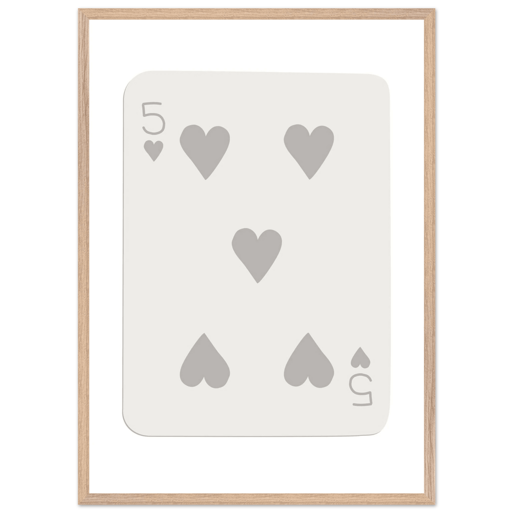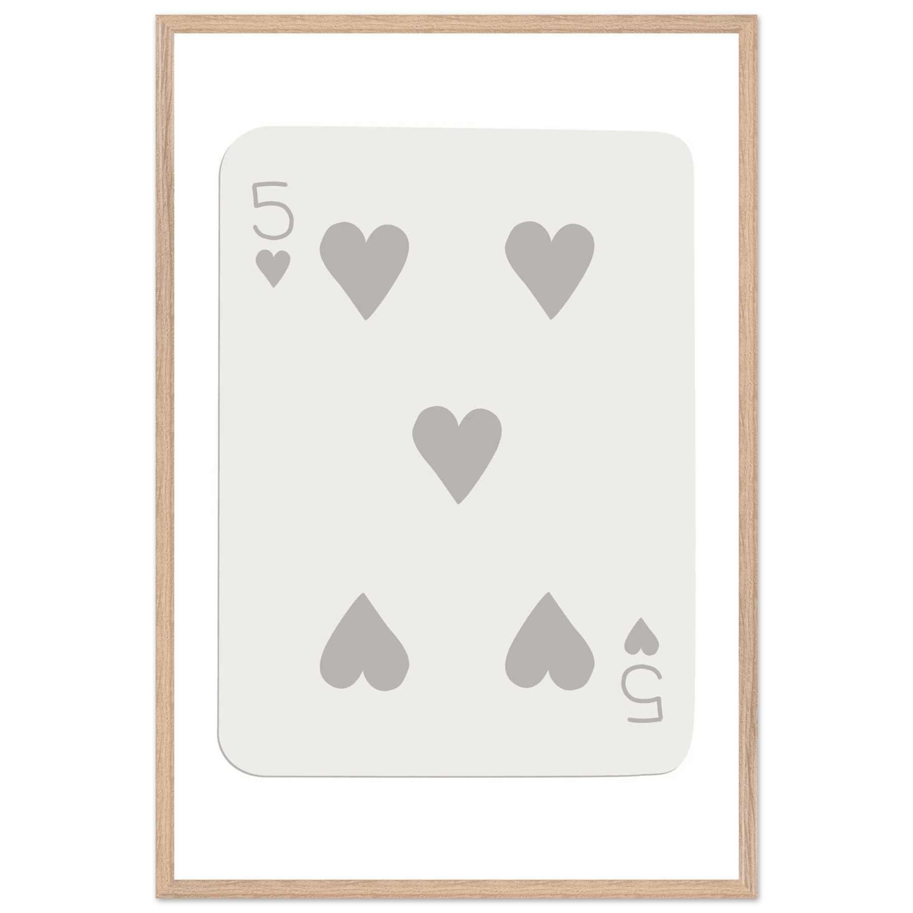 Minimalist Five of Hearts Poker Card Print - Eco-Friendly Mounted Framed Art for Modern Decor