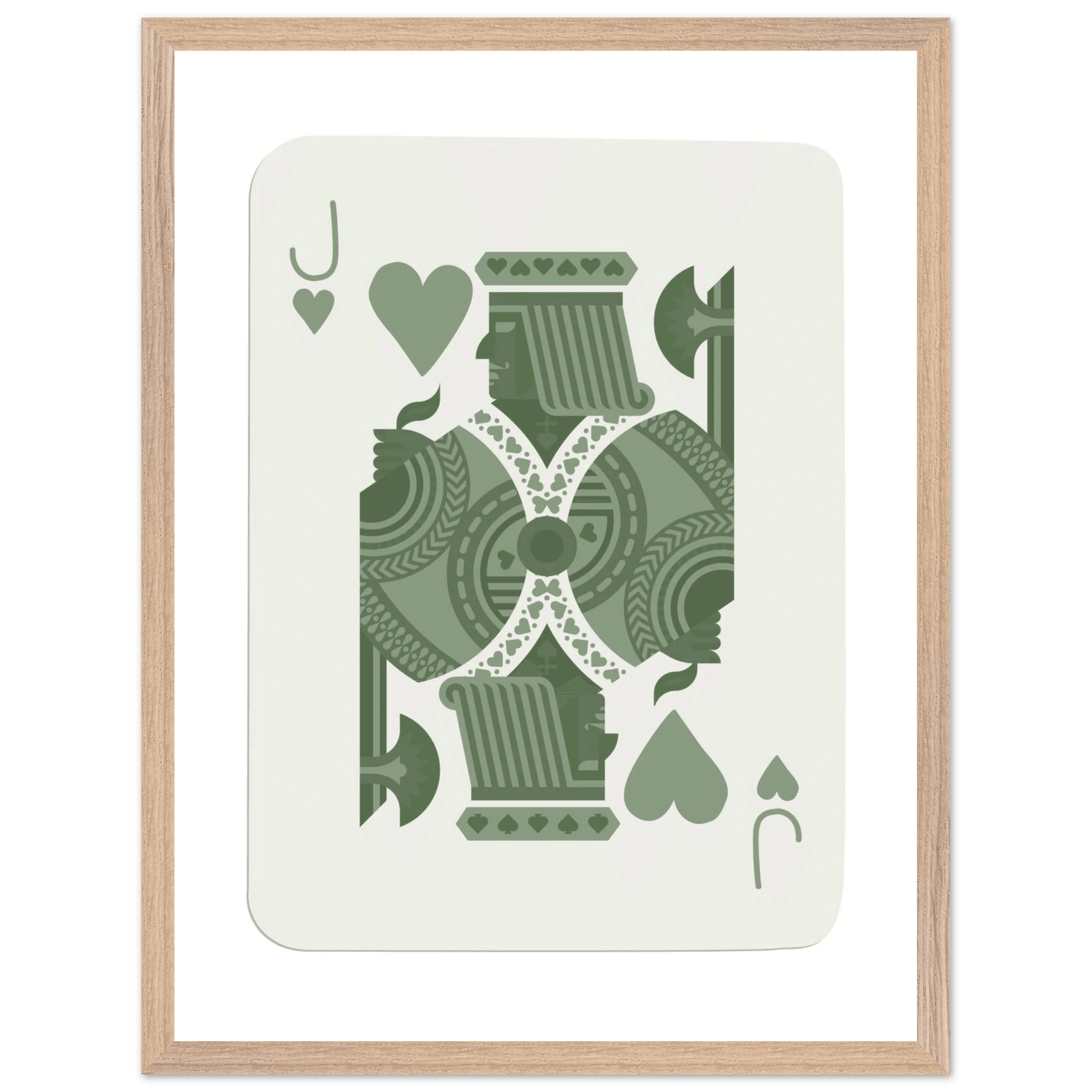 Minimalist Jack of Hearts Poker Card Print - Mounted Framed Eco-Friendly Art with Wood Frame - Vibrantwalls