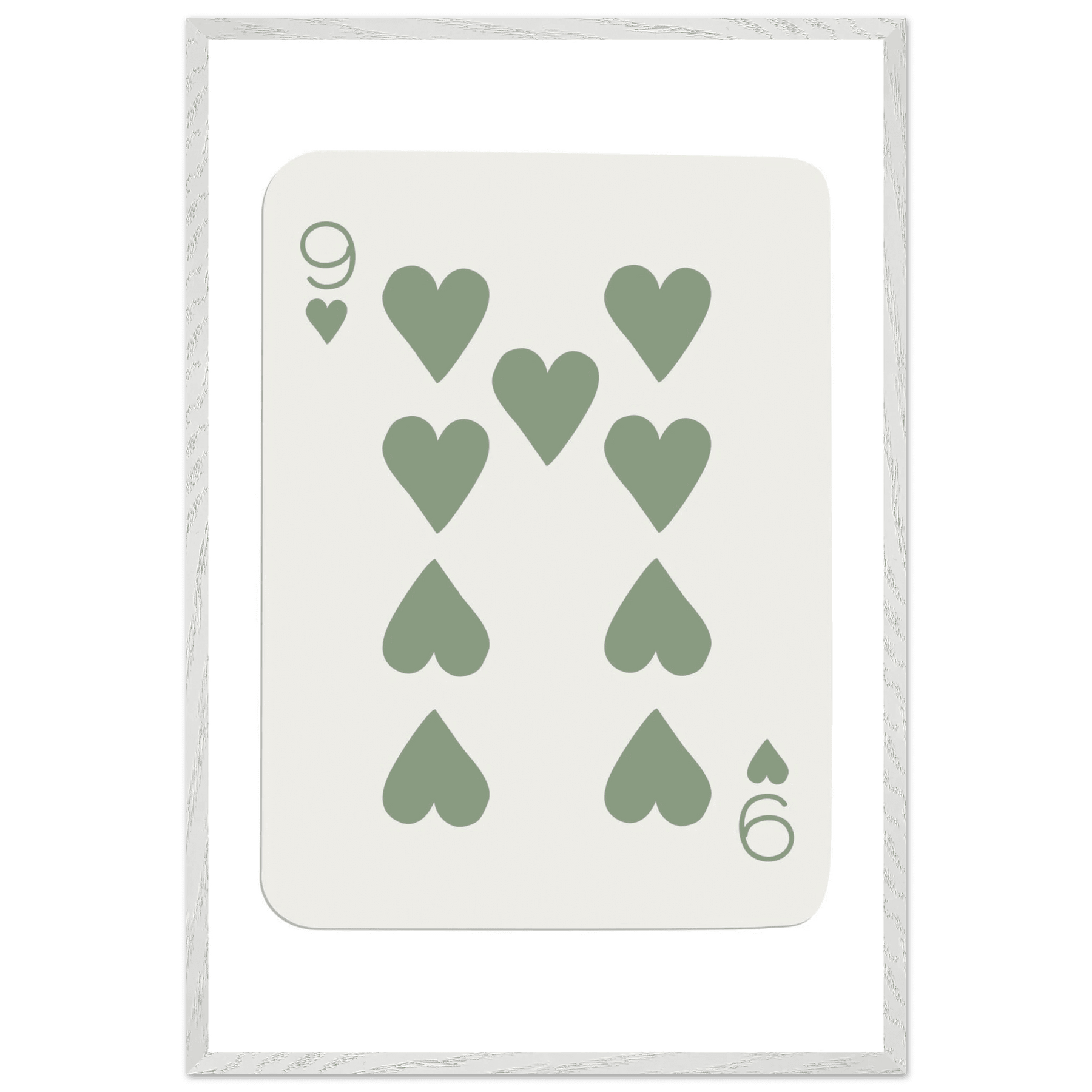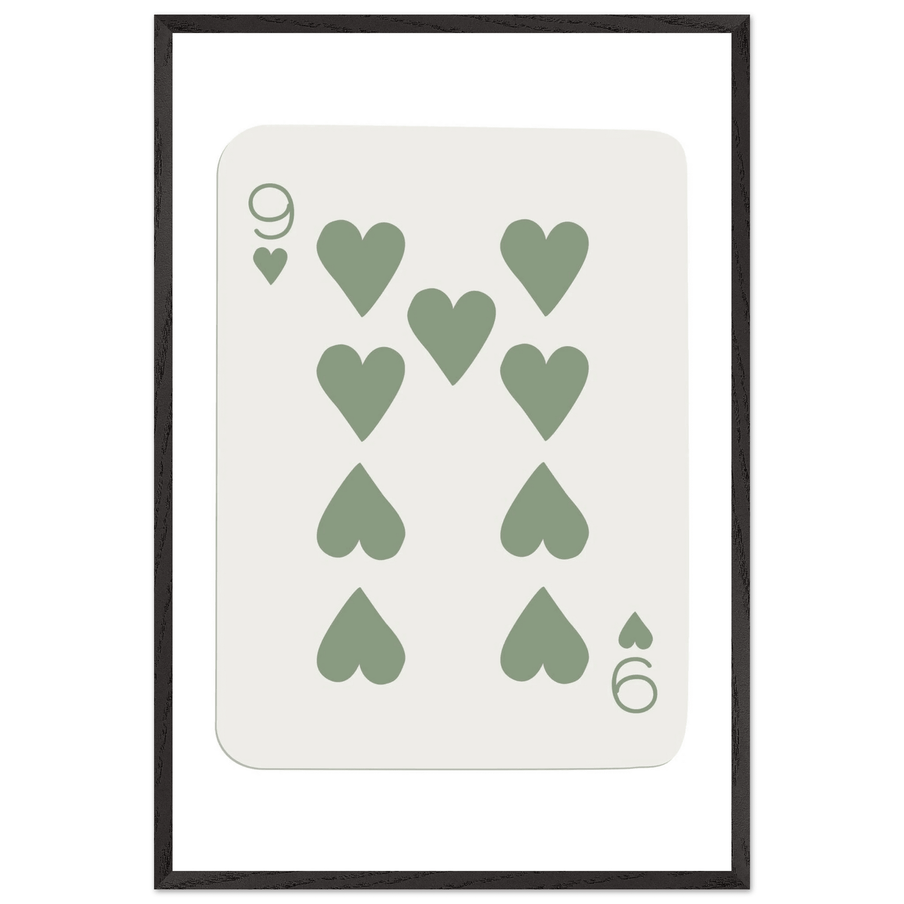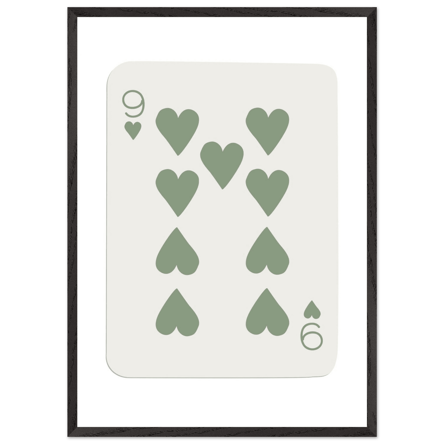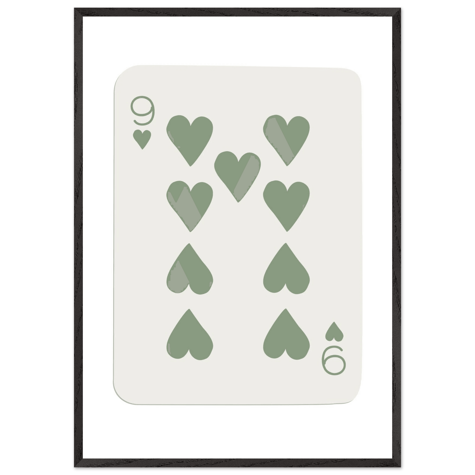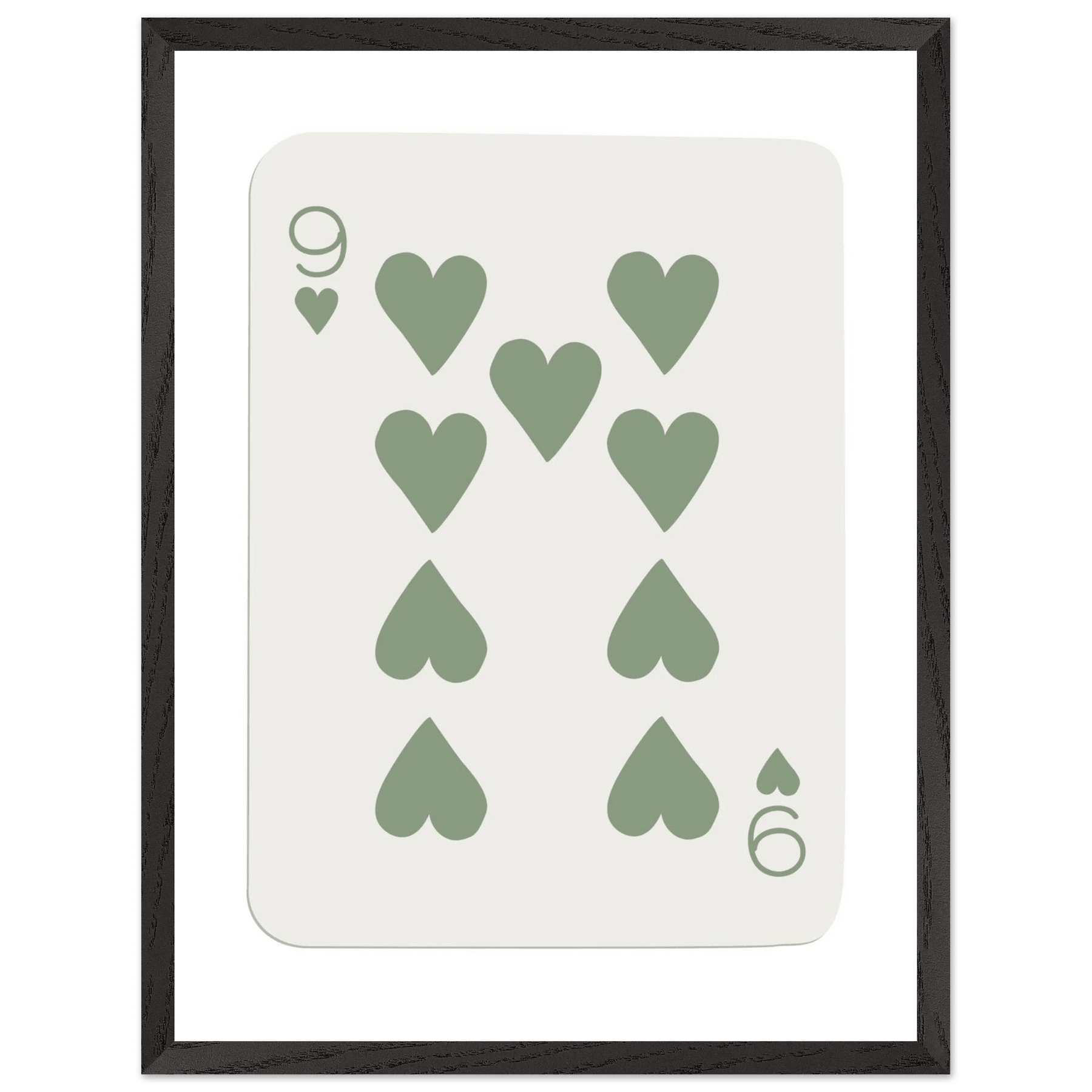 Minimalist Nine of Hearts Poker Card Print - Mounted Framed Wall Art, Sage Green Boho Decor, Eco-Friendly Wood Frame - Vibrantwalls