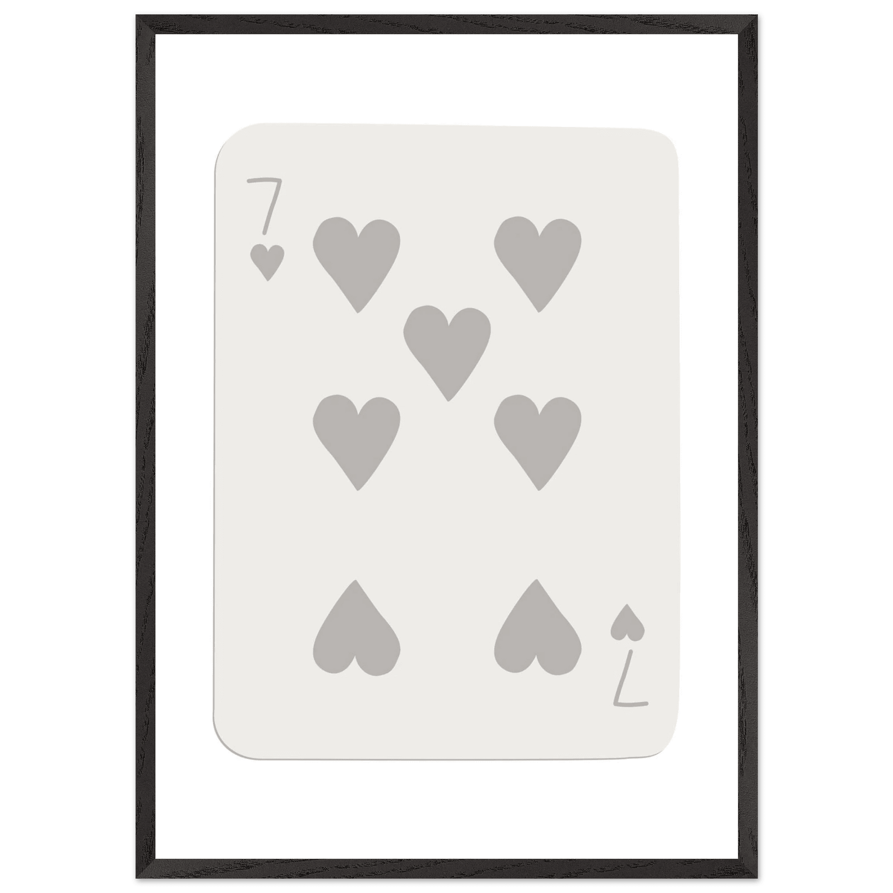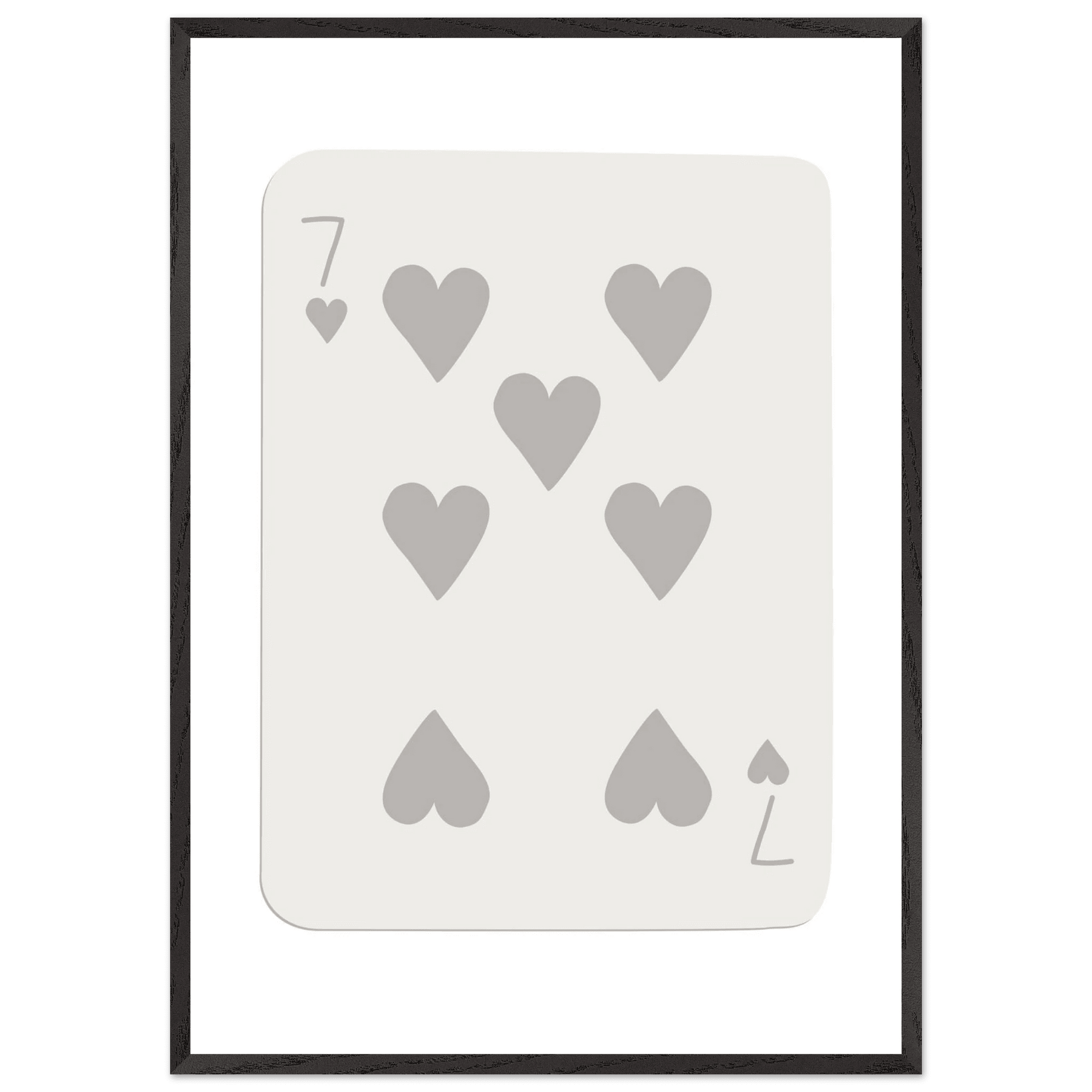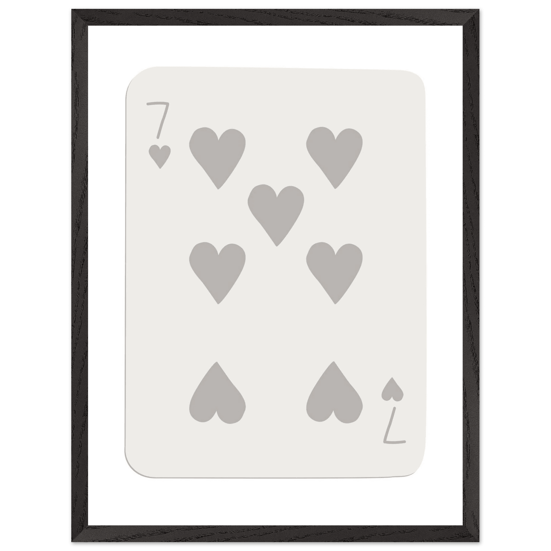 Minimalist Poker Card Print - Seven of Hearts - Mounted Eco-Friendly Framed Art, Custom Sizes & Finishes