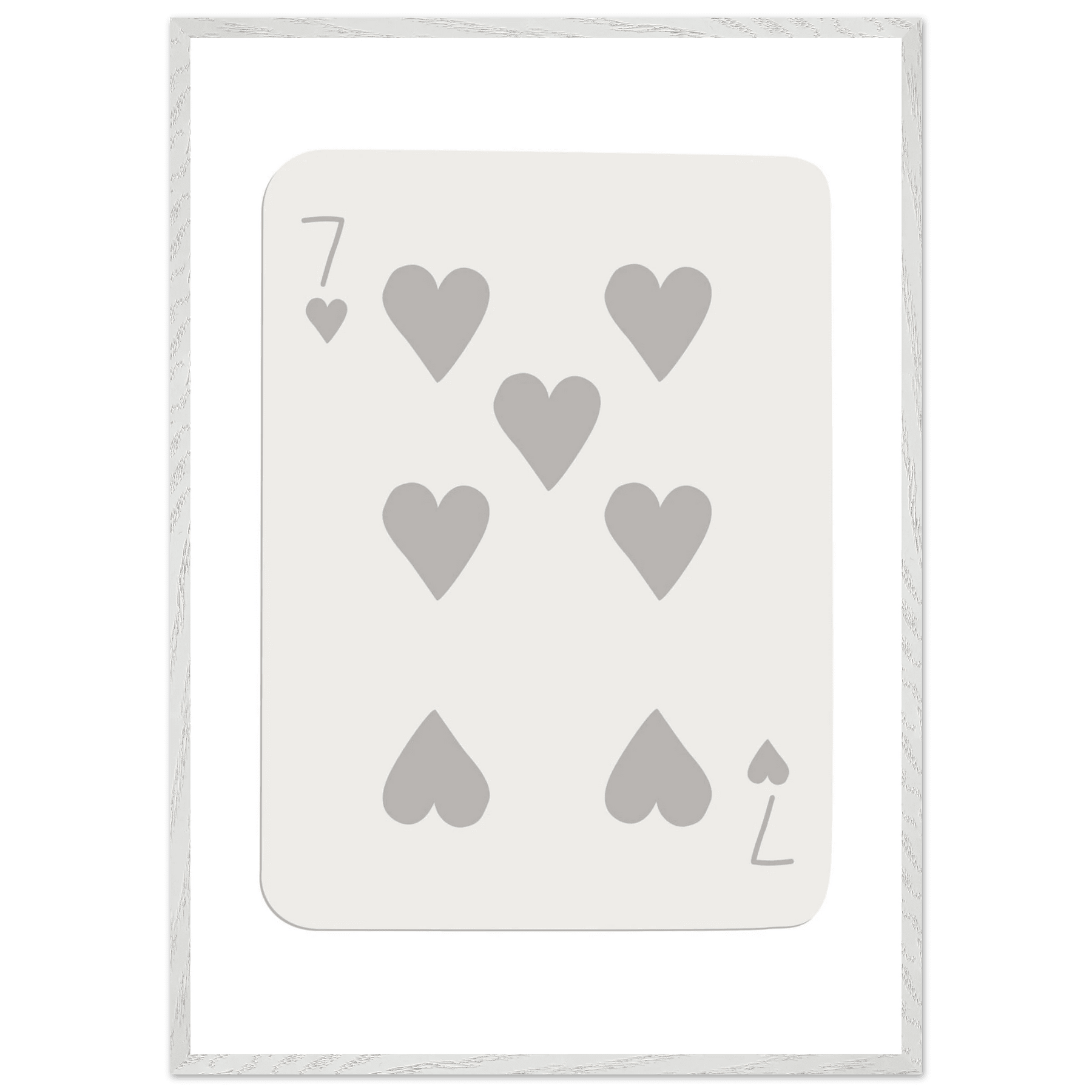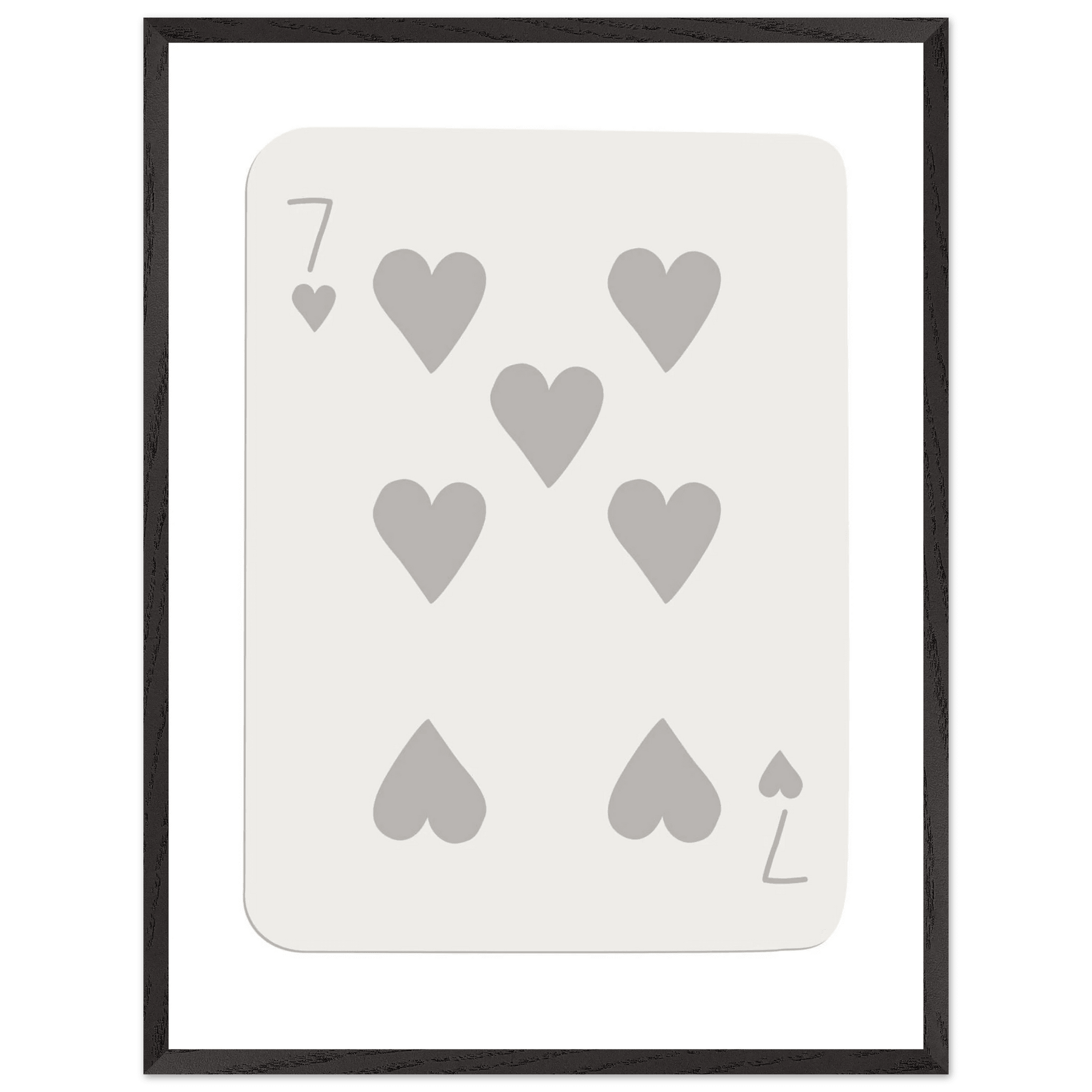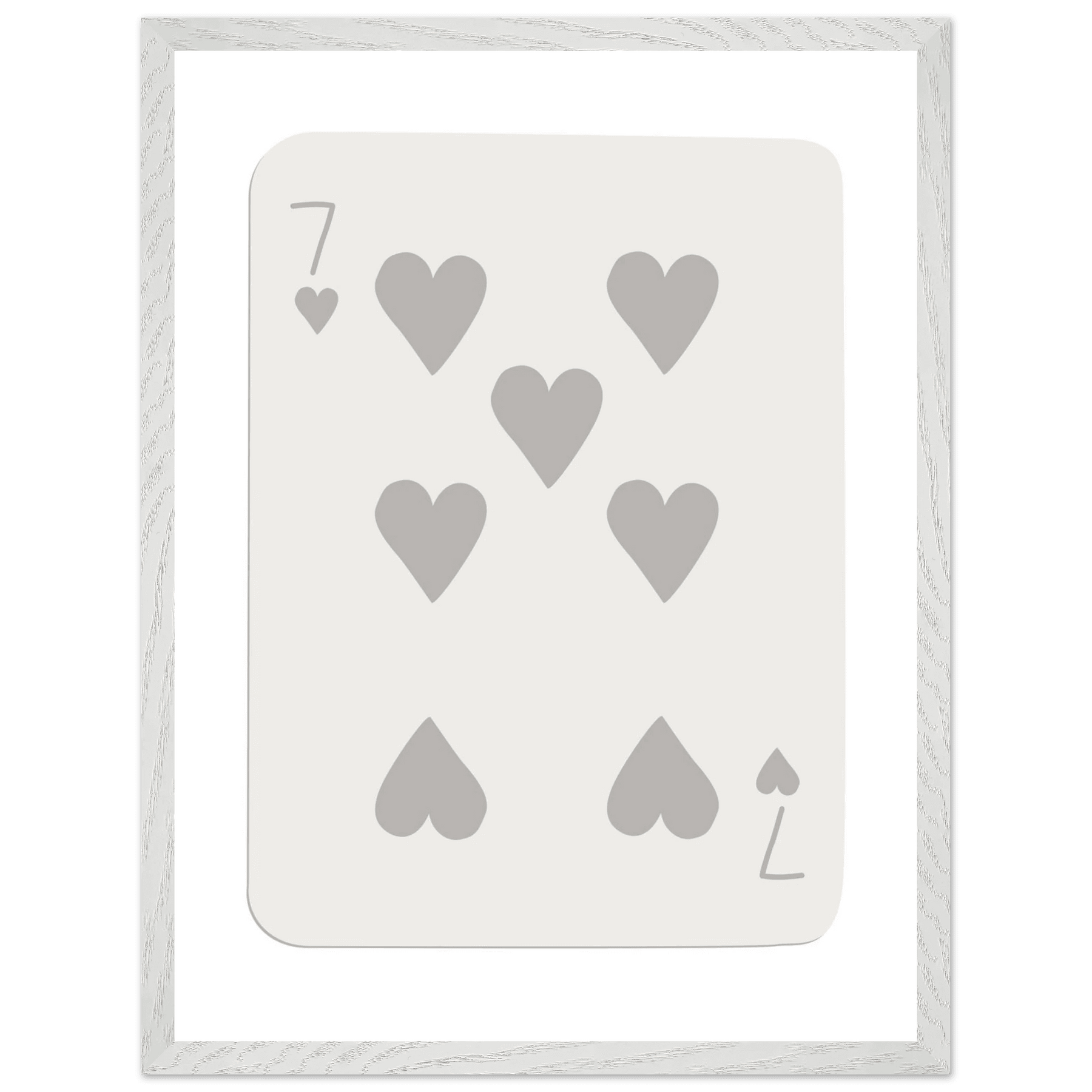 Minimalist Poker Card Print - Seven of Hearts - Mounted Eco-Friendly Framed Art, Custom Sizes & Finishes