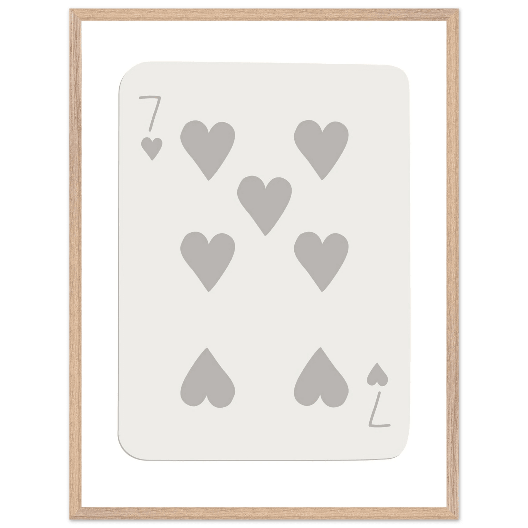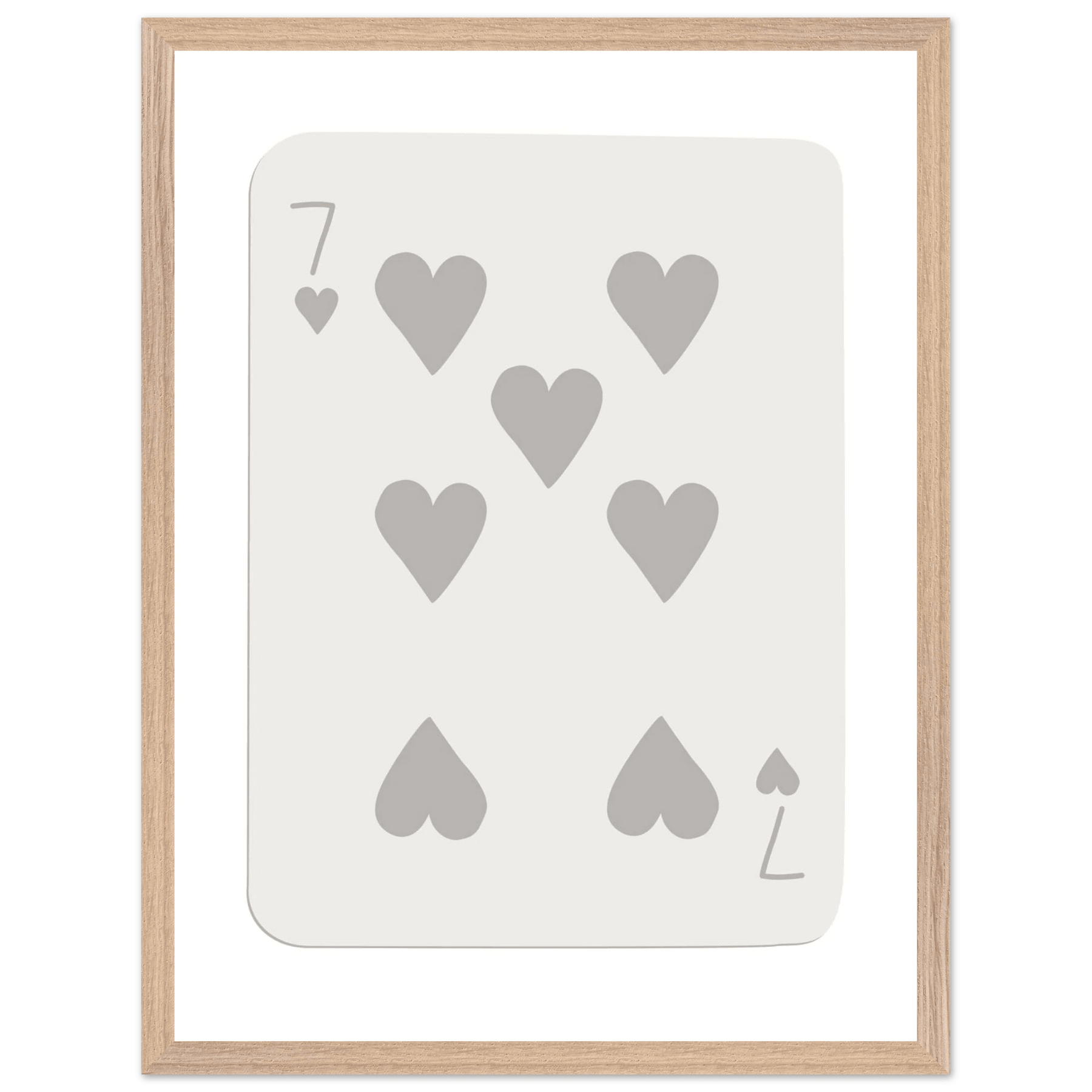 Bring sophistication into your interior design while staying true to your playful side. Order your Minimalist Poker Card Print - Seven of Hearts today and enjoy a piece of art that combines your passion for poker with commitment to sustainability.