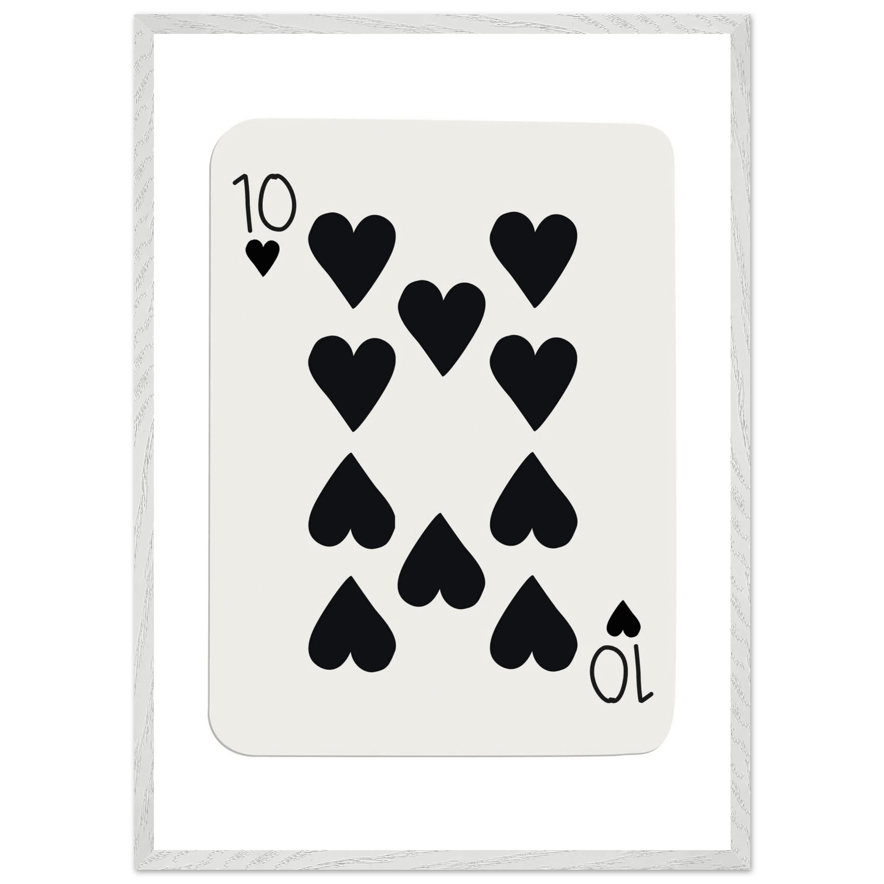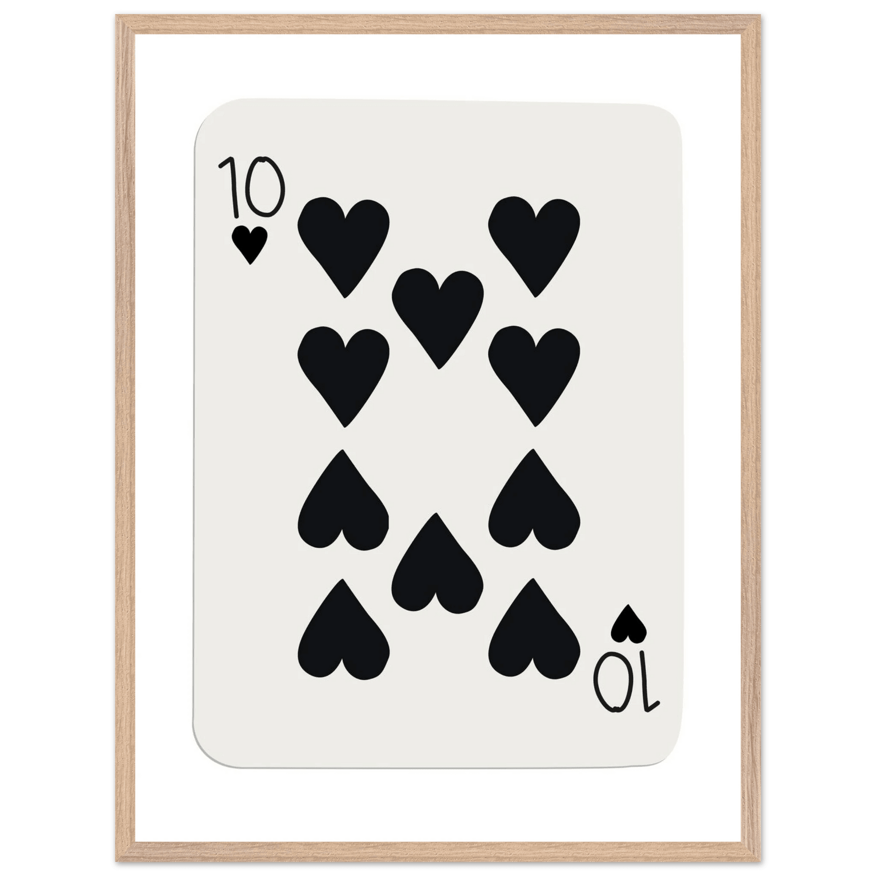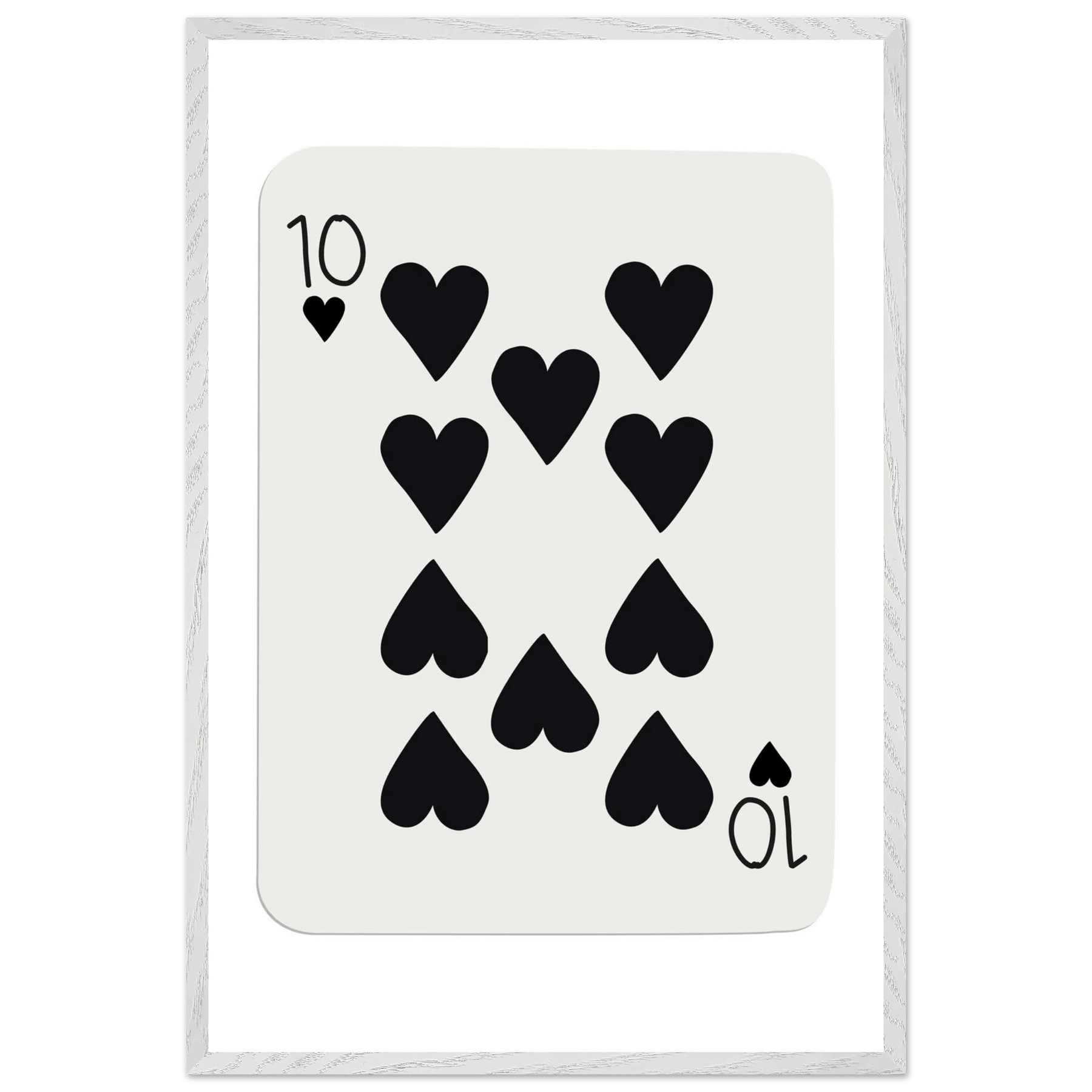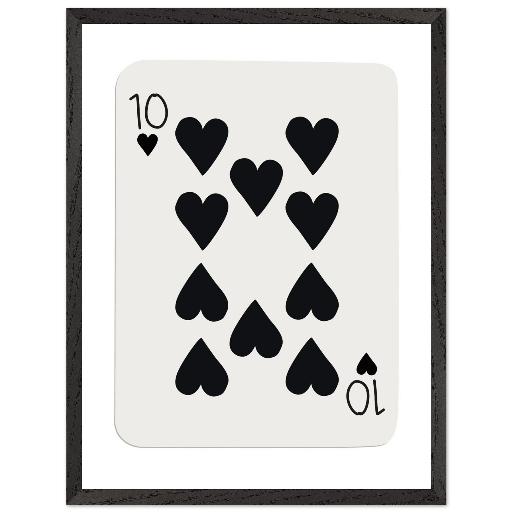 Minimalist Ten of Hearts Poker Card Print - Mounted Framed Poster Art, Eco-Friendly Wood Frame