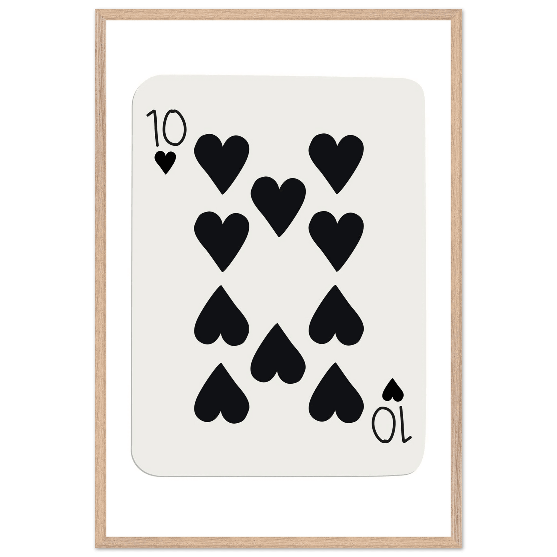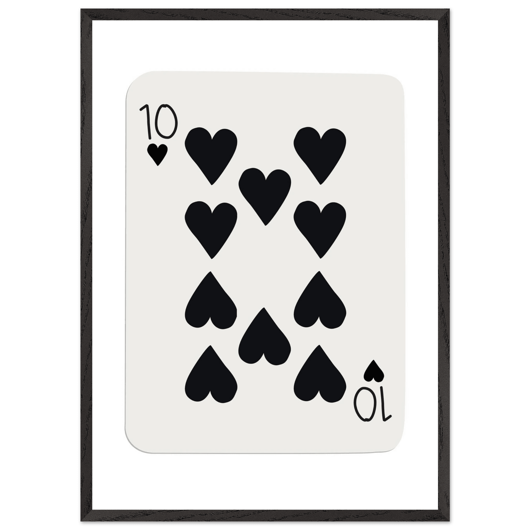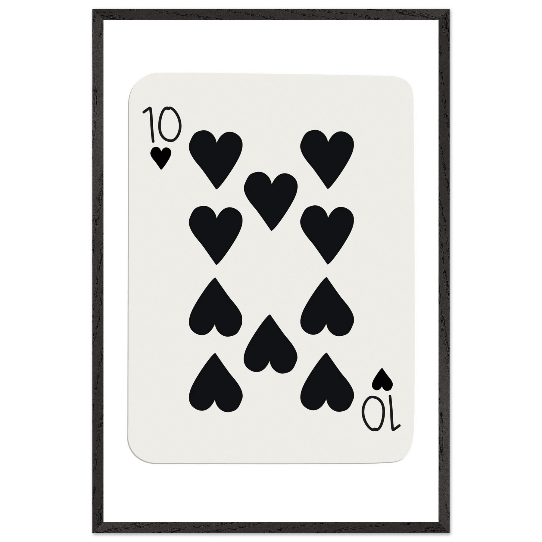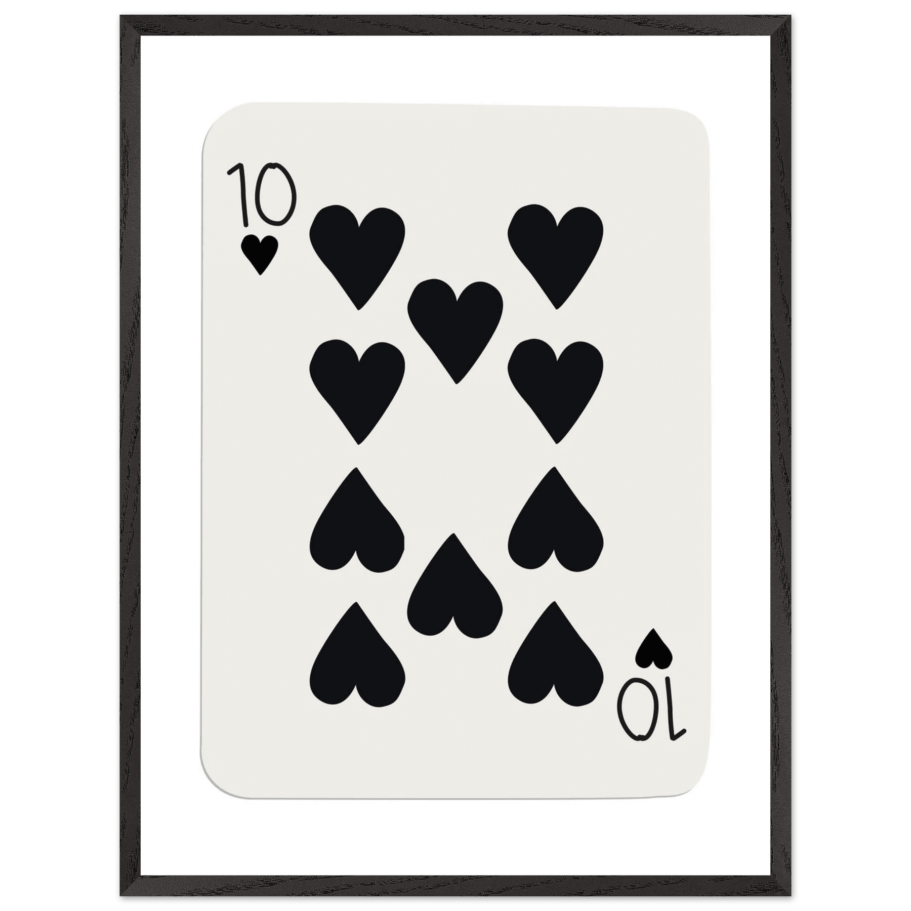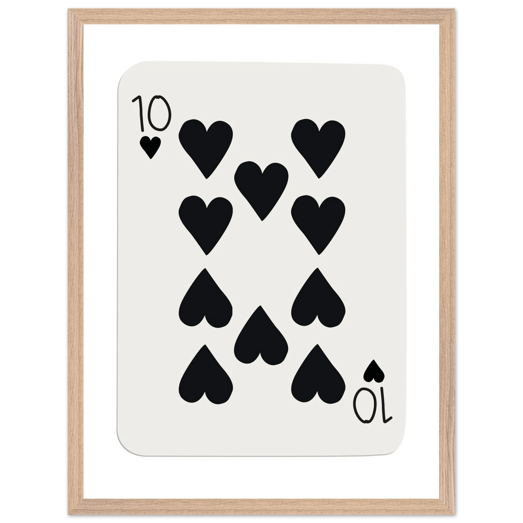 Minimalist Ten of Hearts Poker Card Print - Mounted Framed Poster Art, Eco-Friendly Wood Frame