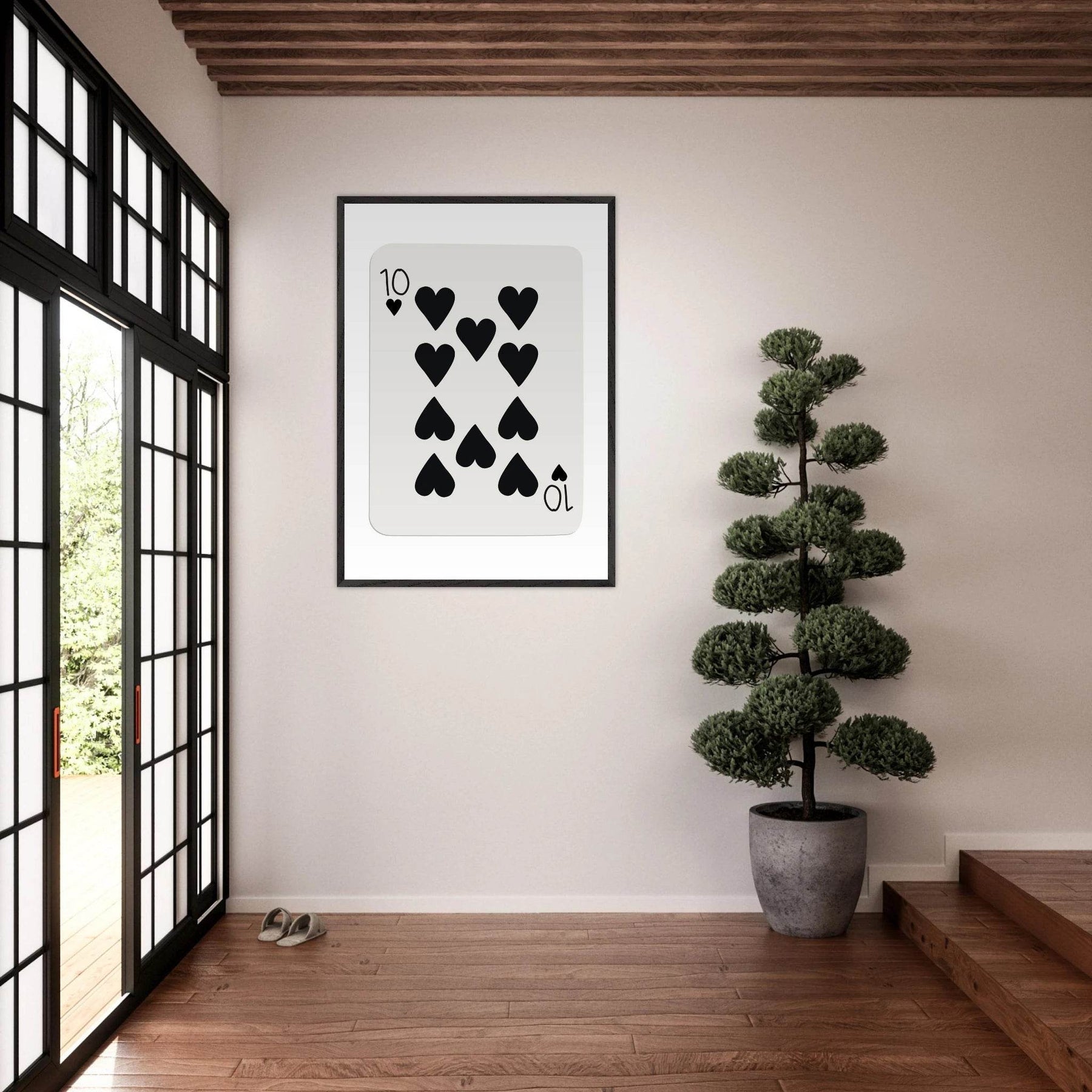 Minimalist Ten of Hearts Poker Card Print - Mounted Framed Poster Art, Eco-Friendly Wood Frame - Vibrantwalls
