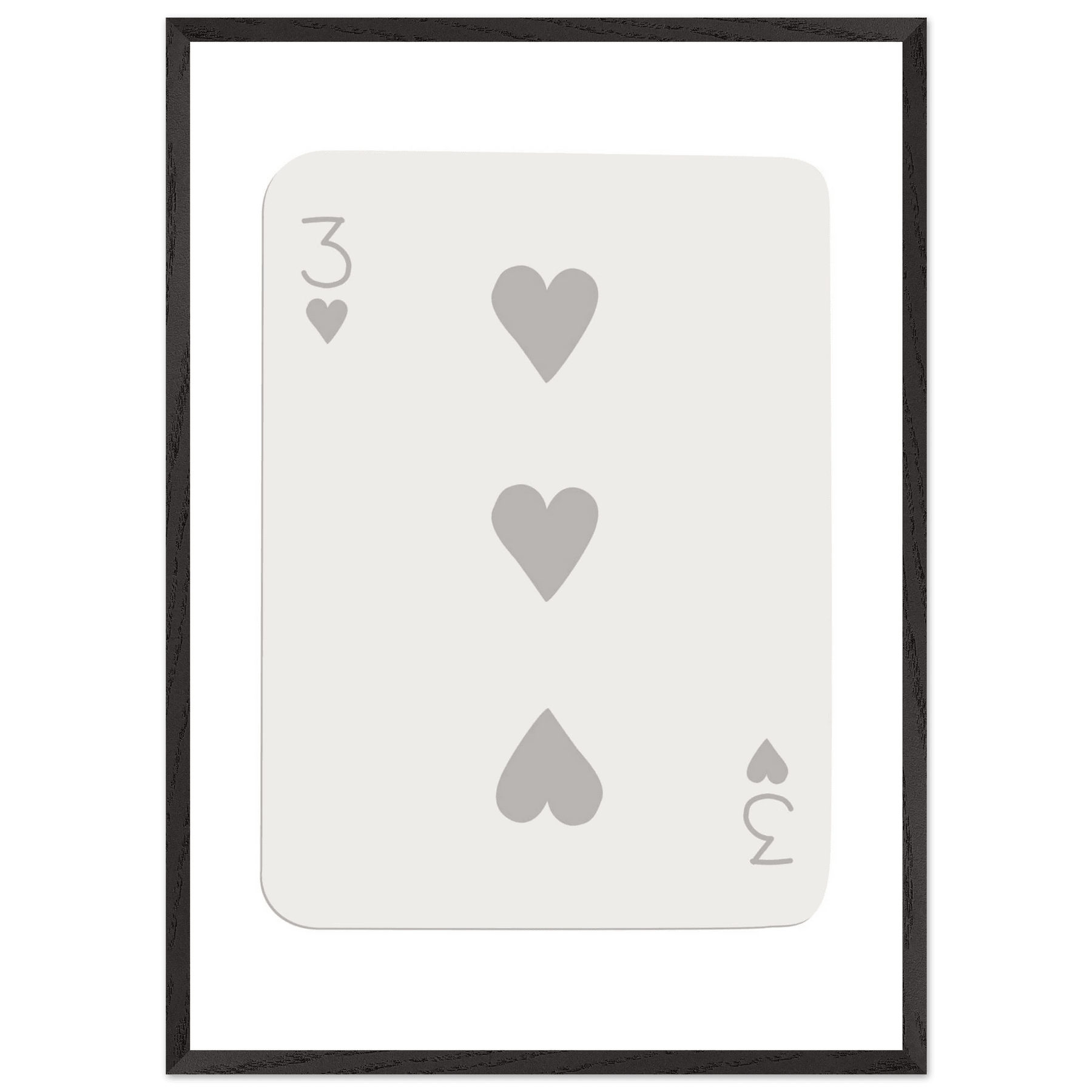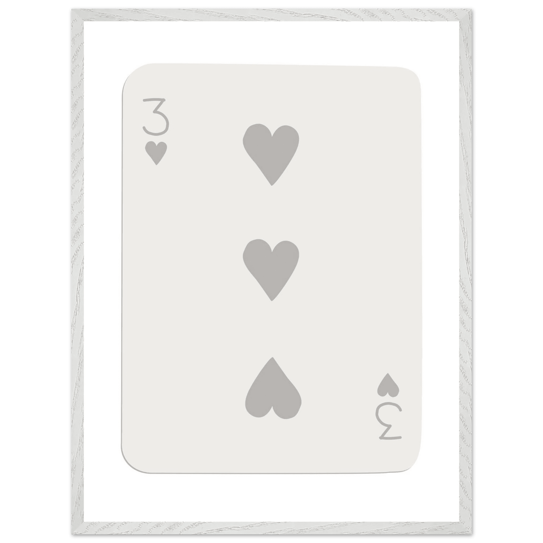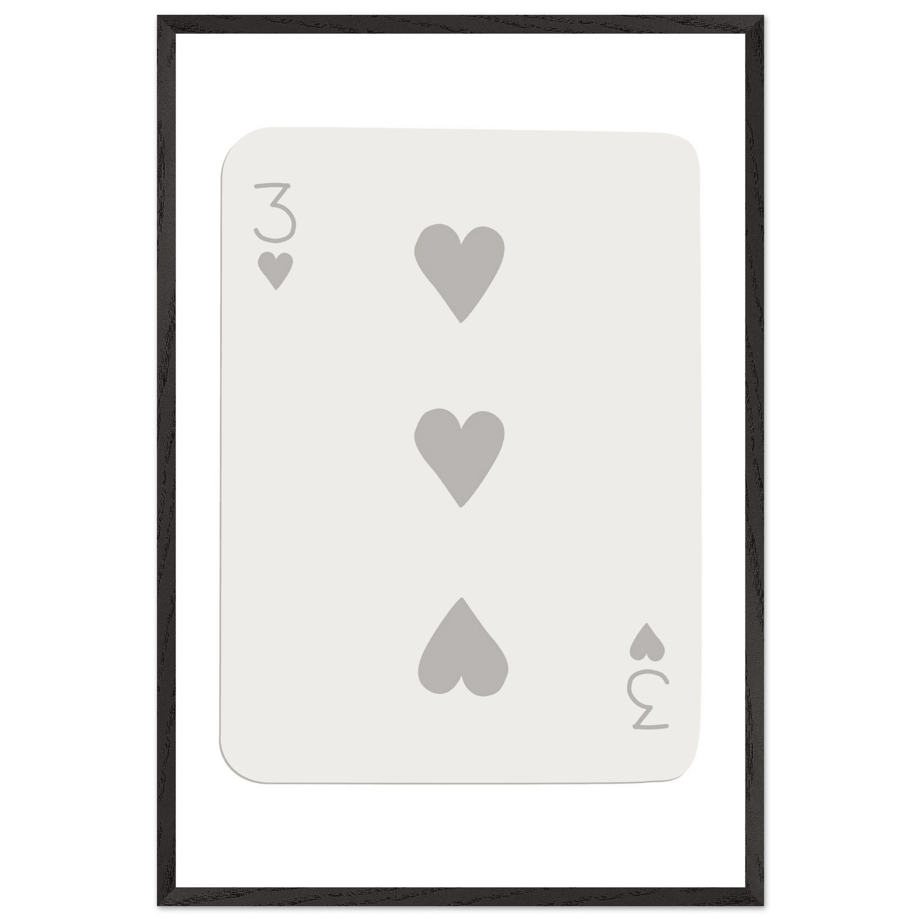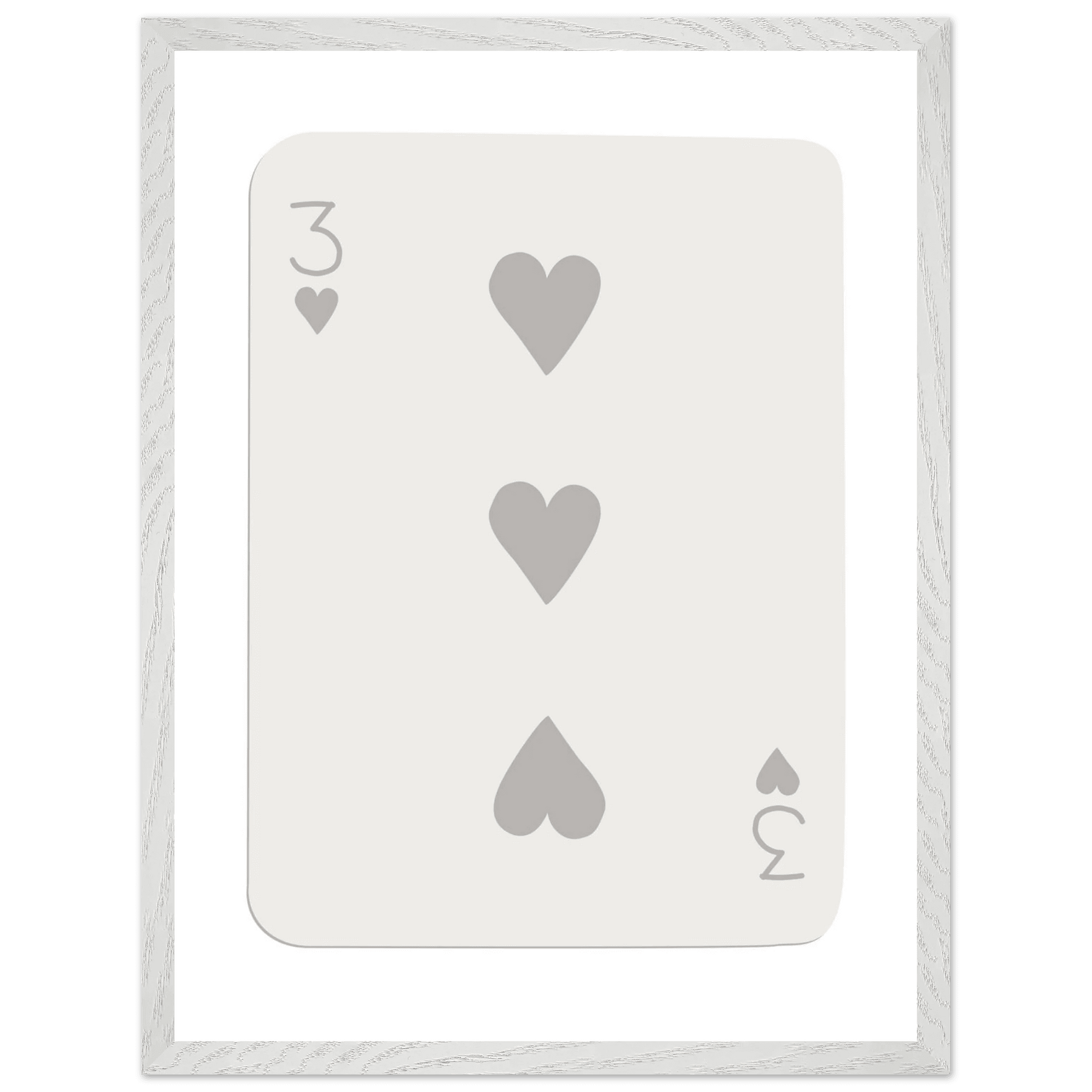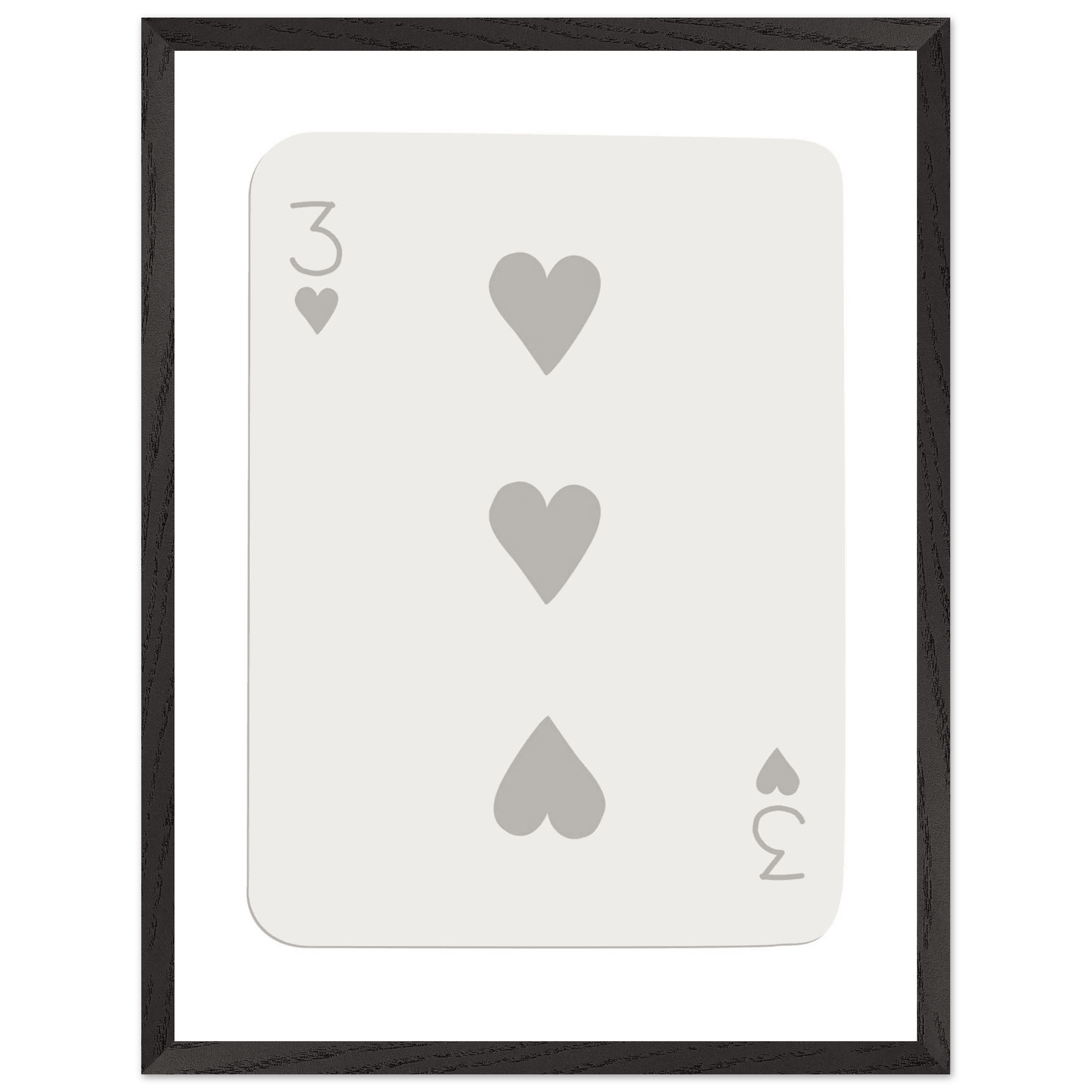 Minimalist Three of Hearts Poker Card Print - Eco-Friendly Framed Wall Art, Matte Finish