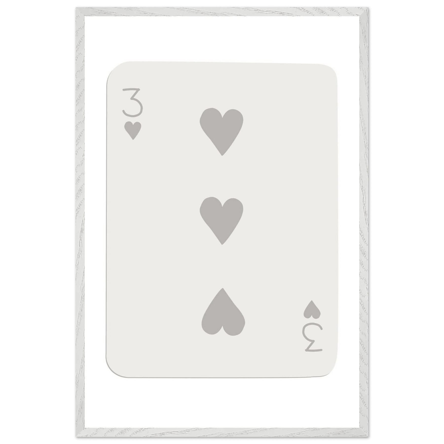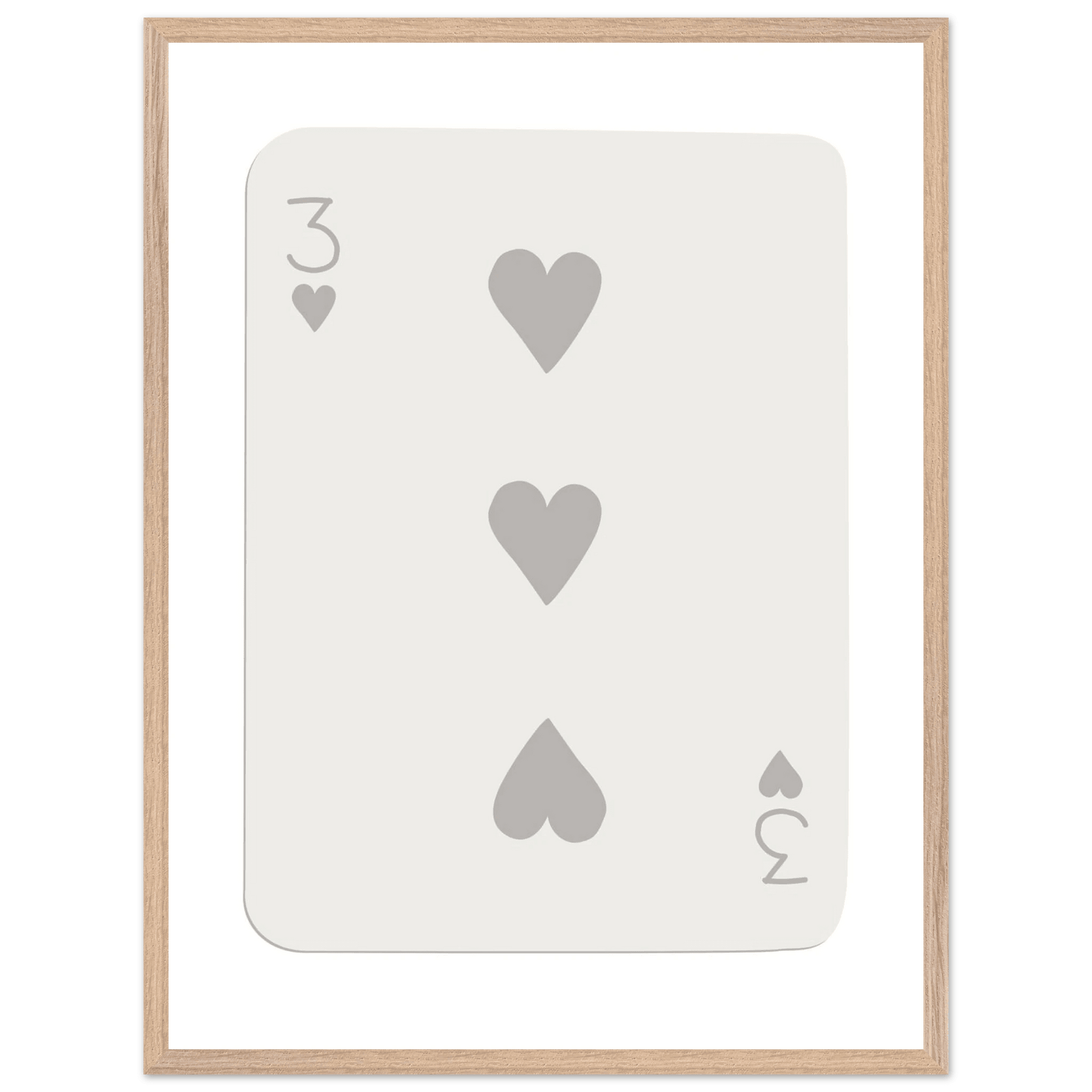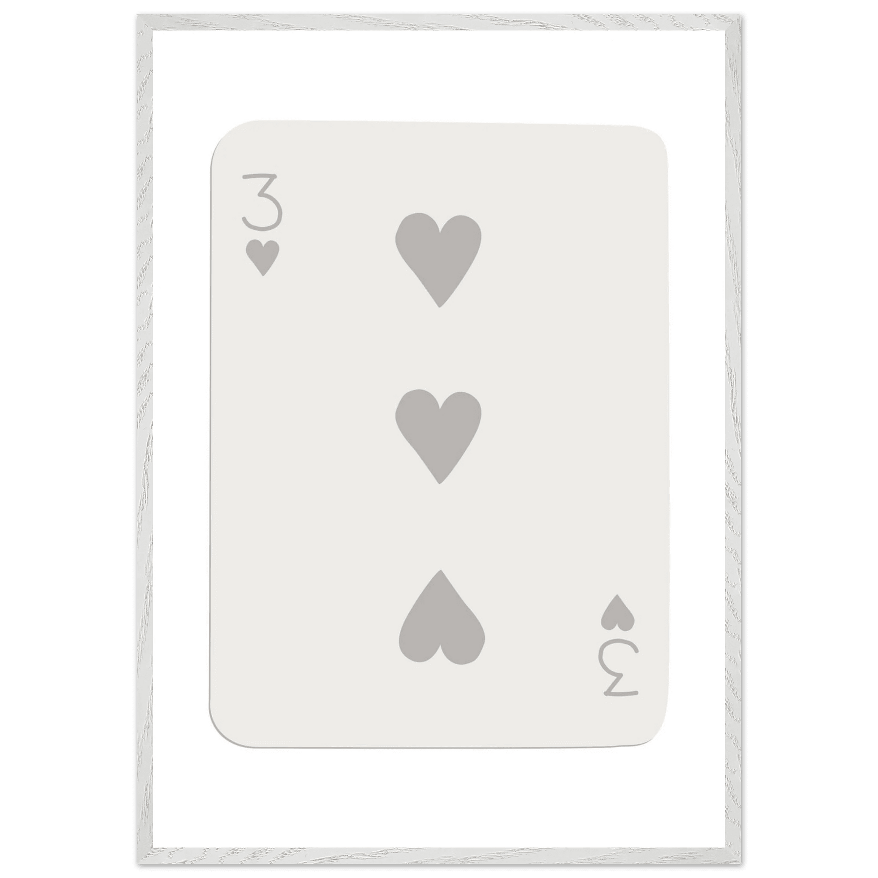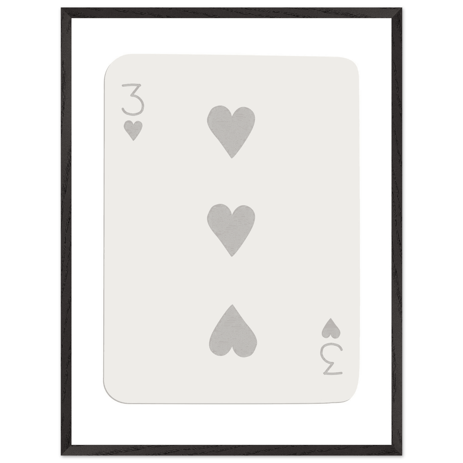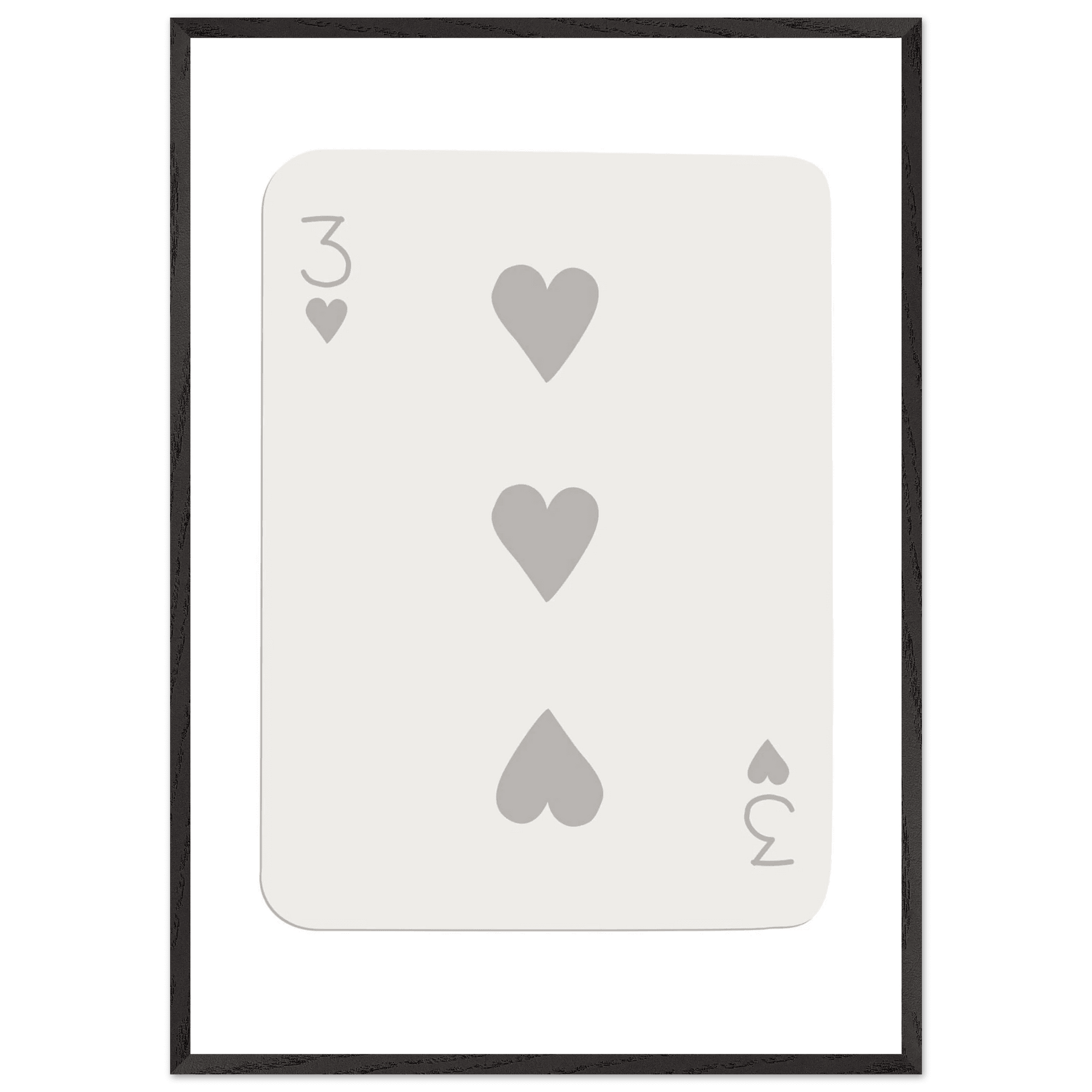 Minimalist Three of Hearts Poker Card Print - Eco-Friendly Framed Wall Art, Matte Finish