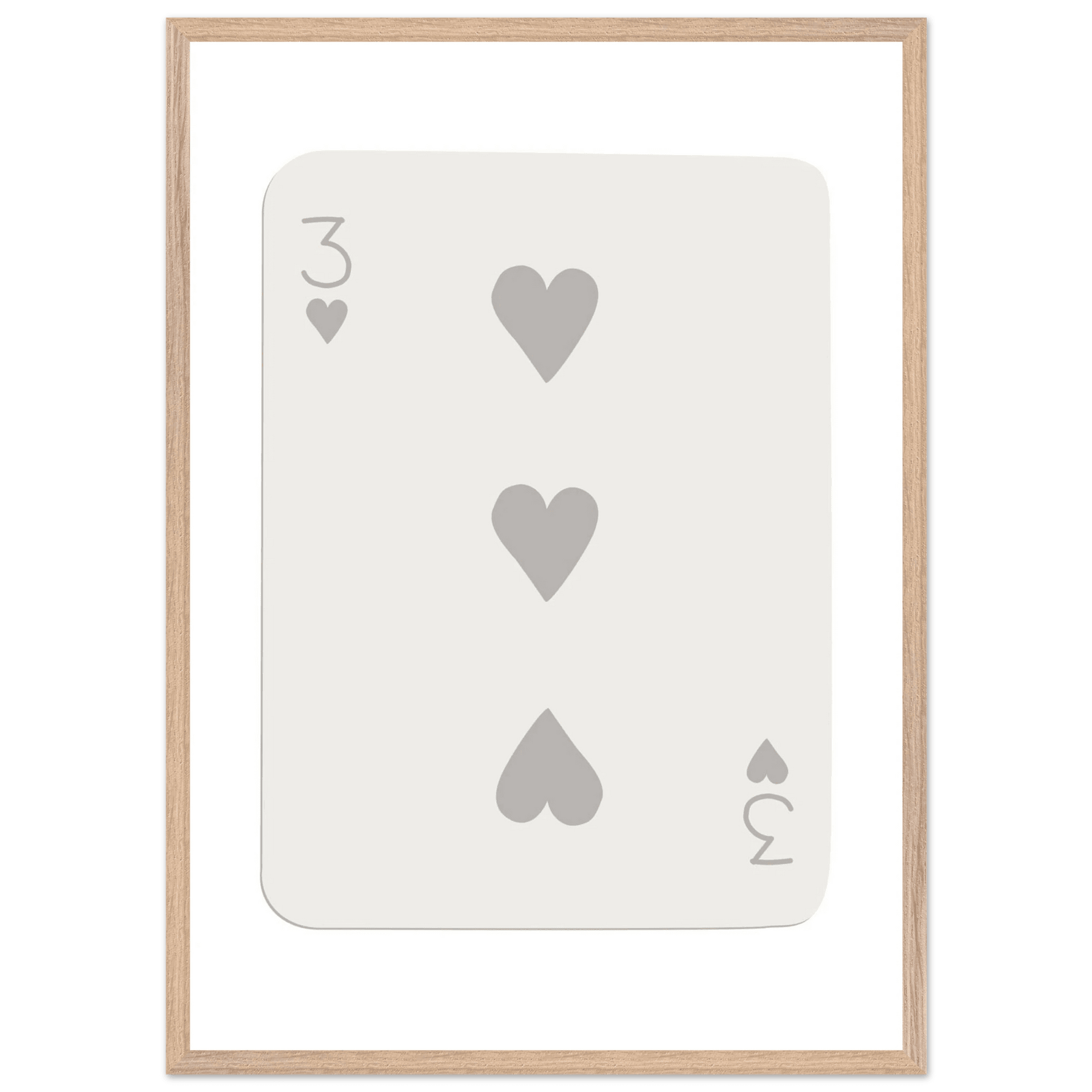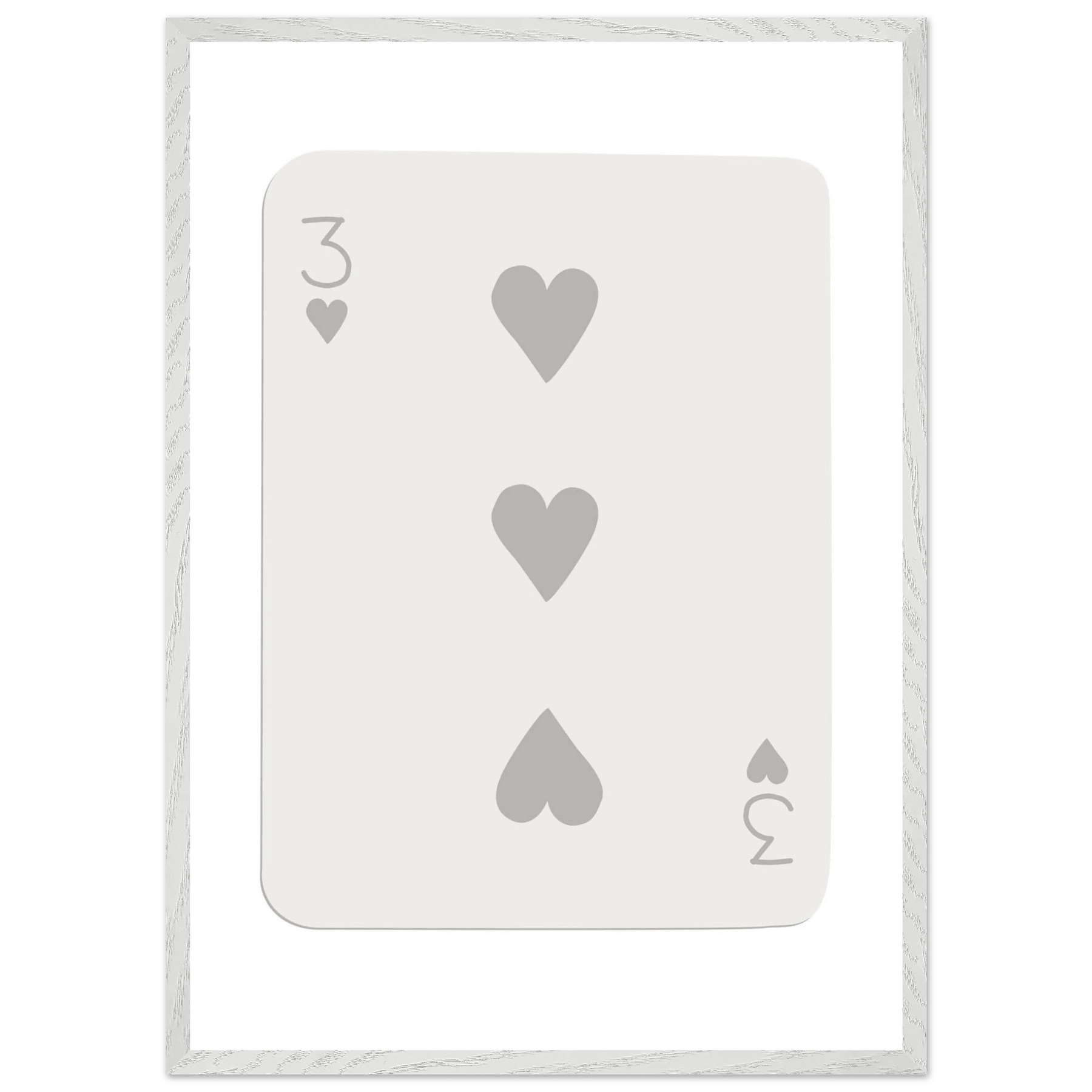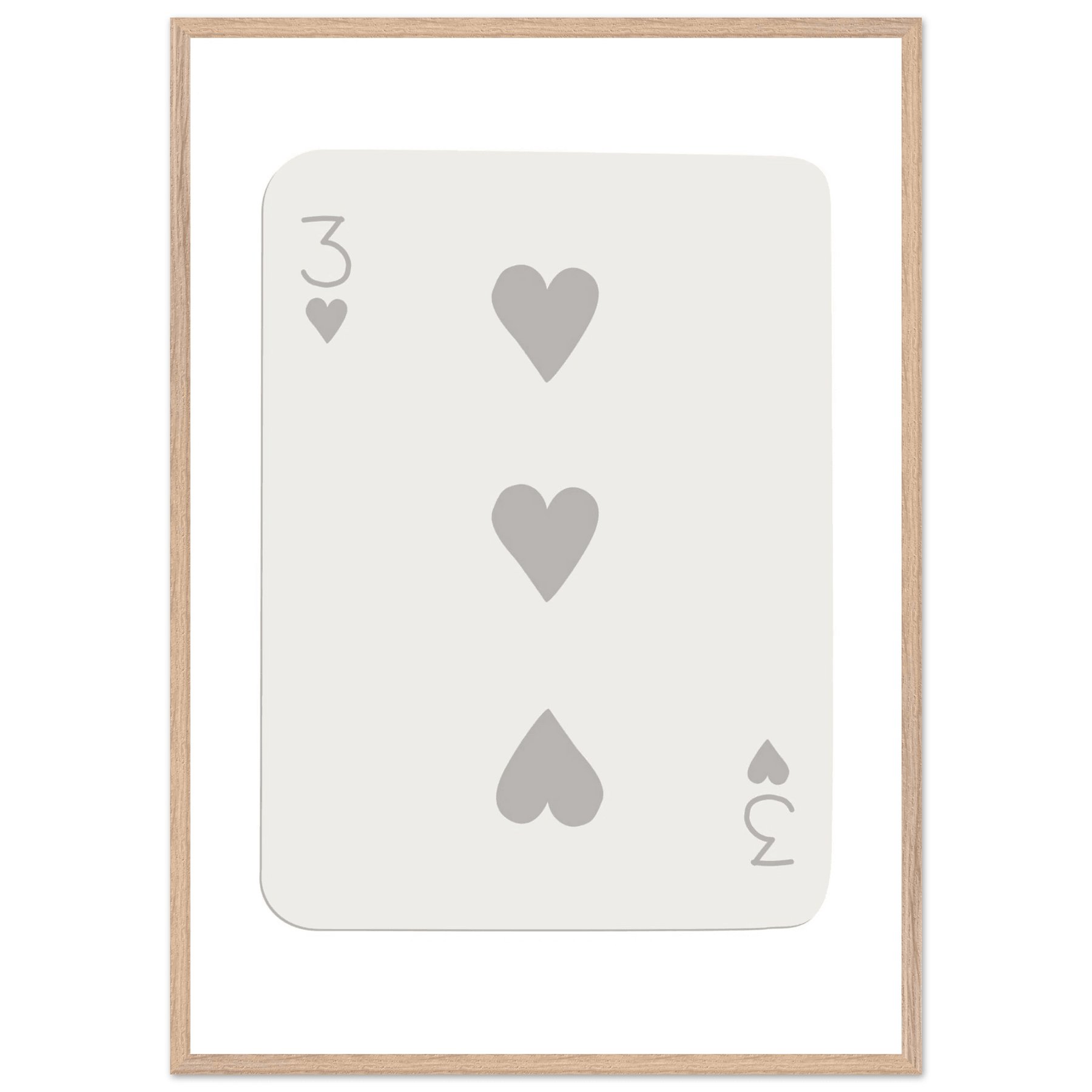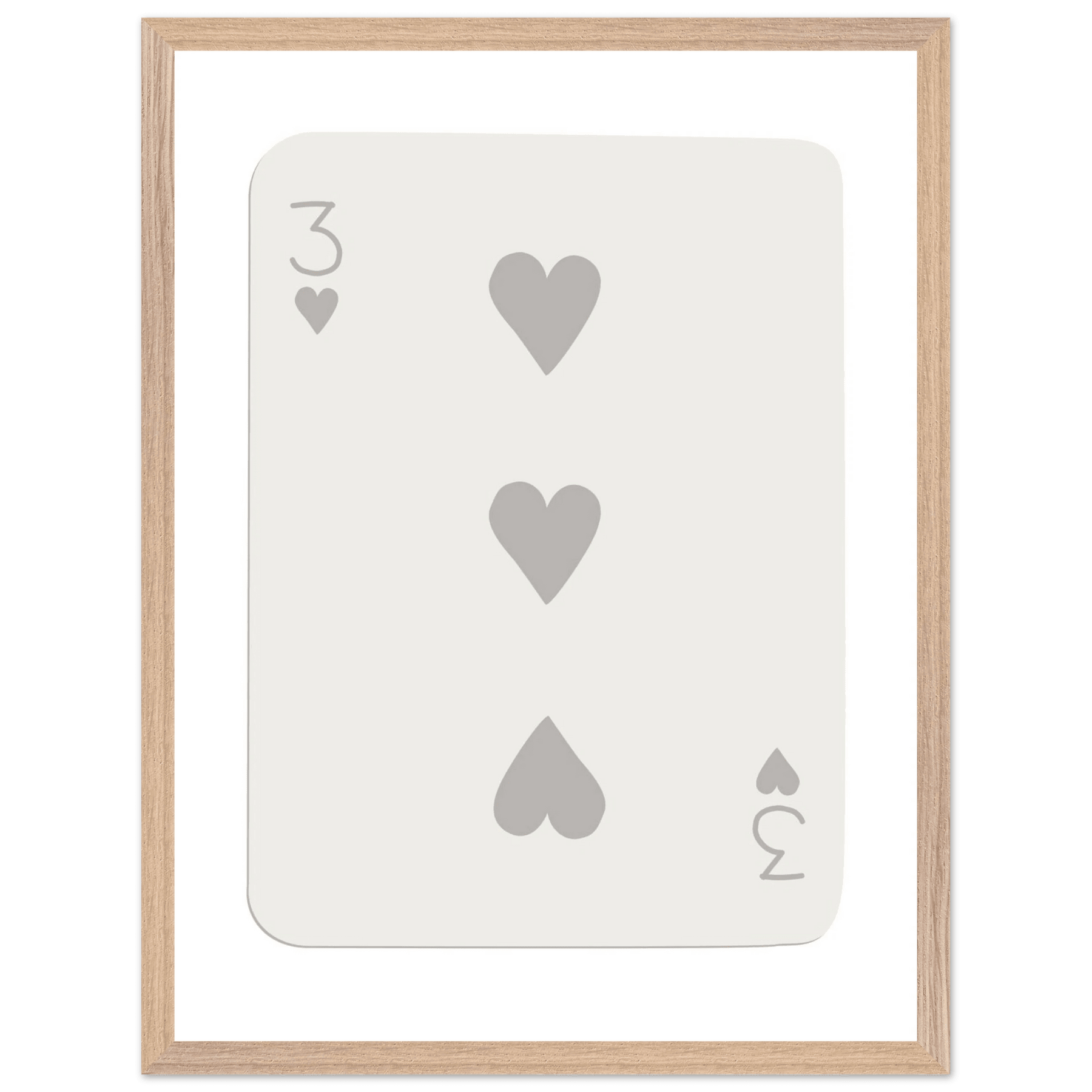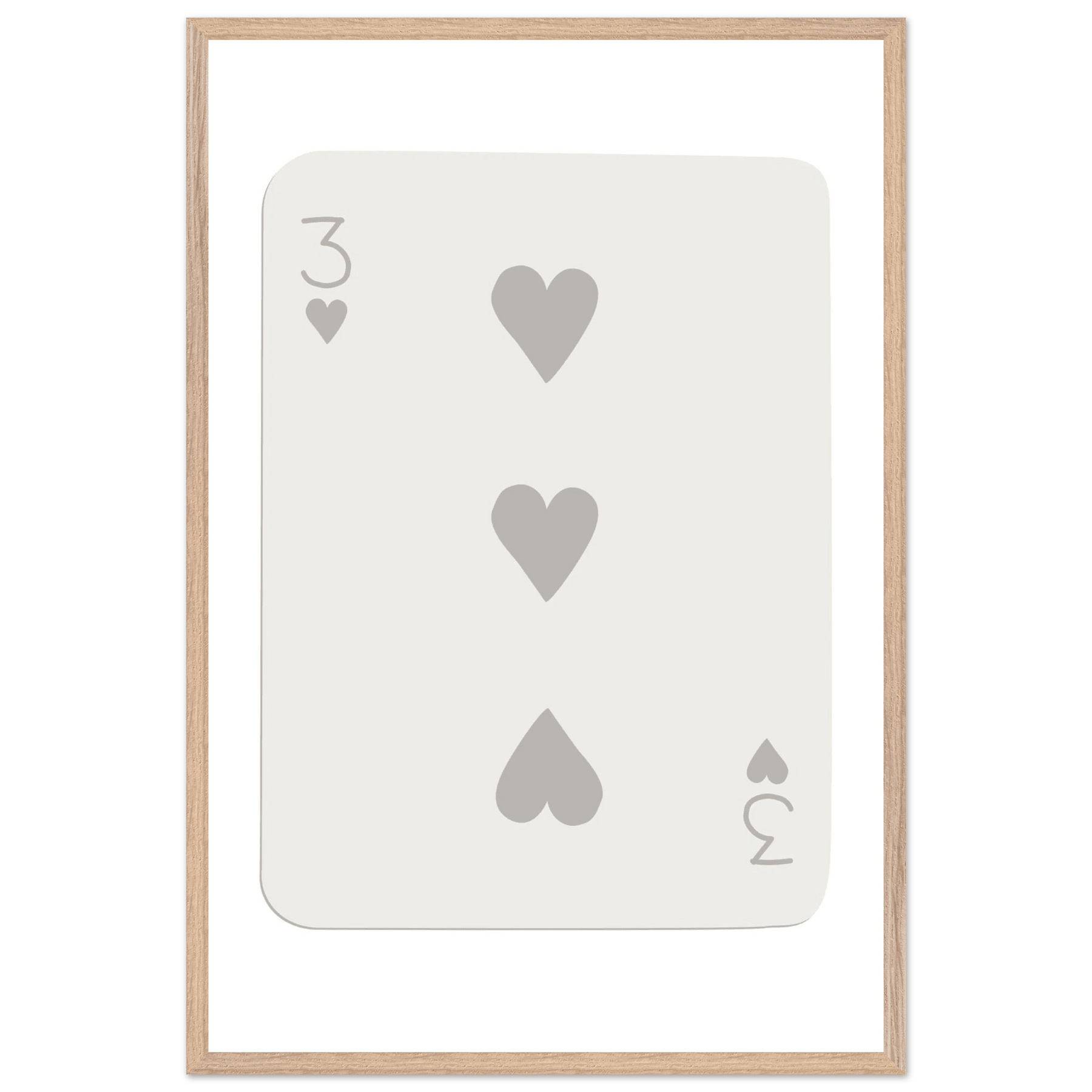 Minimalist Three of Hearts Poker Card Print - Eco-Friendly Framed Wall Art, Matte Finish