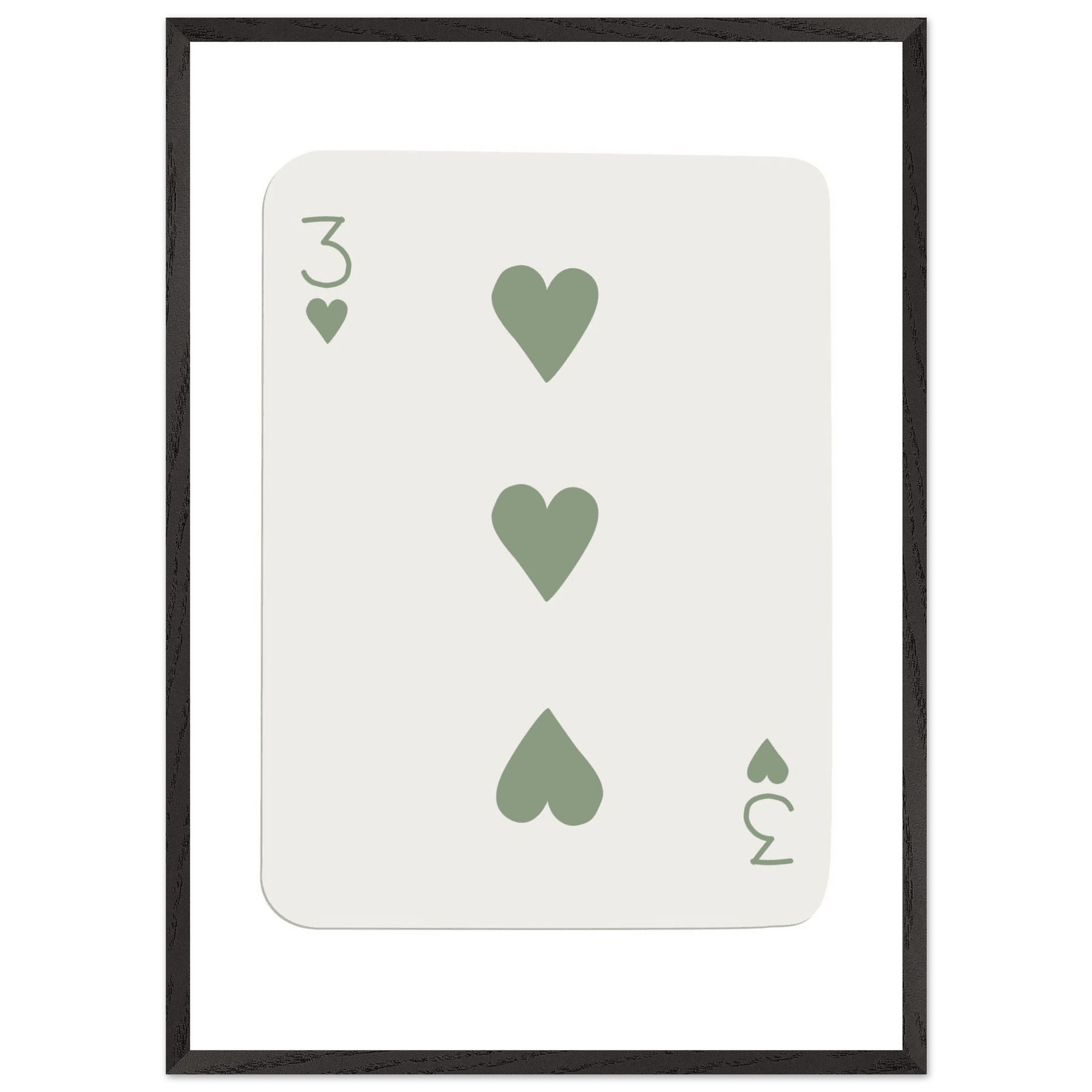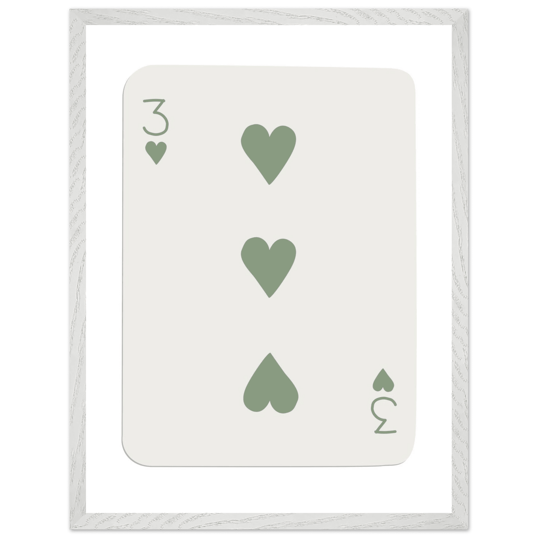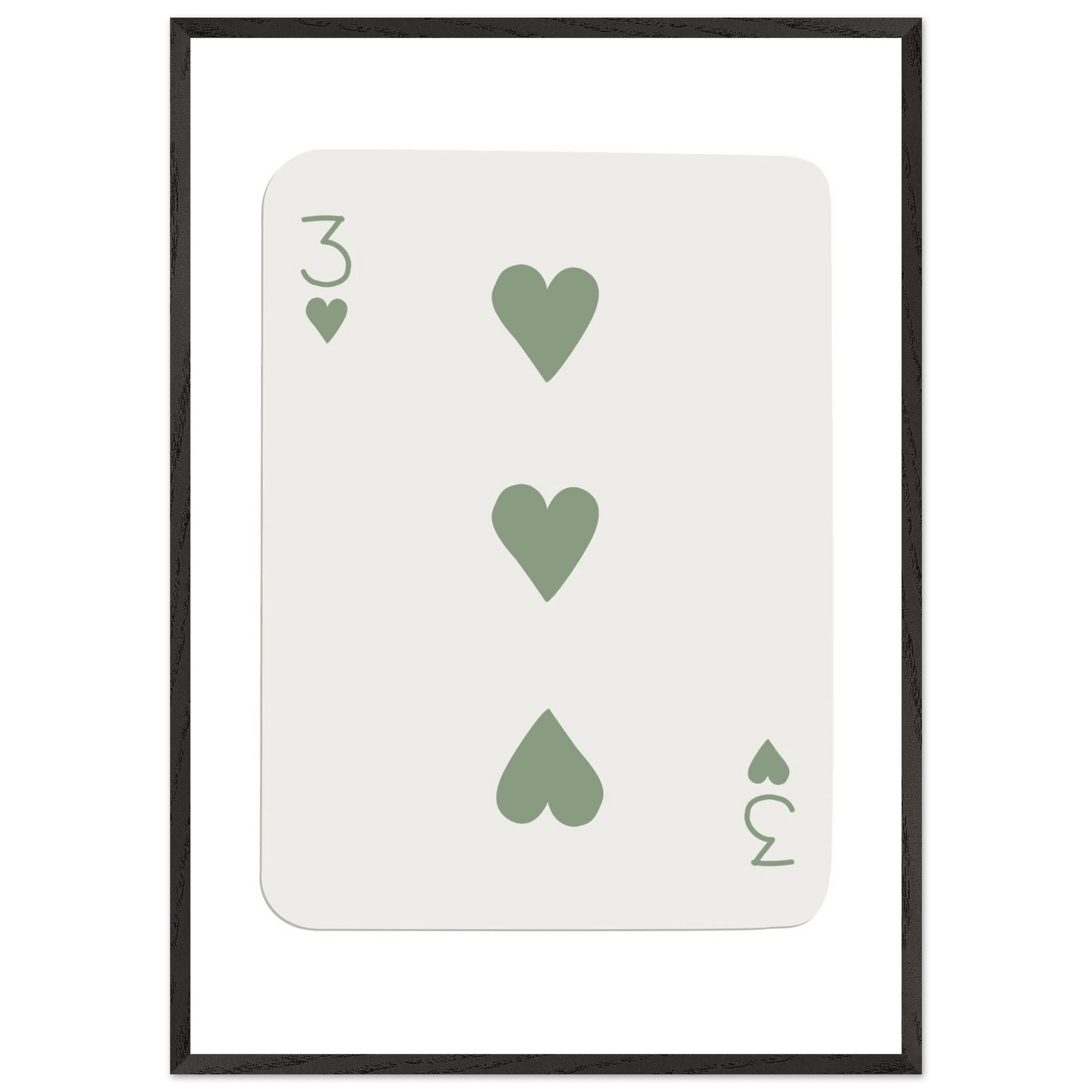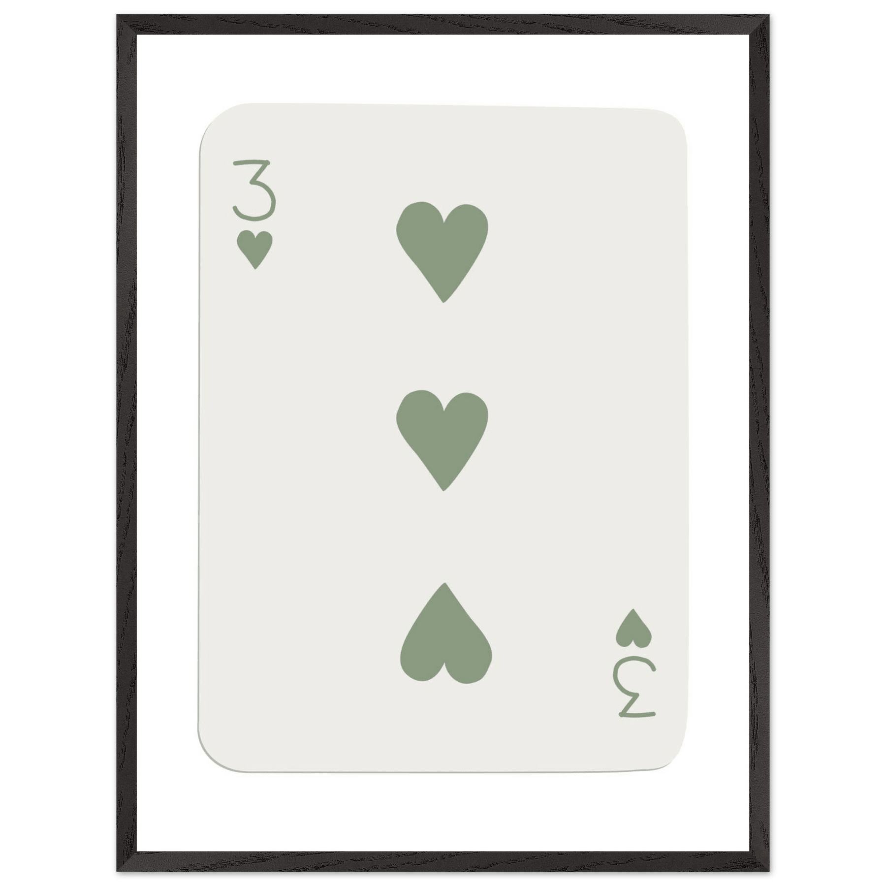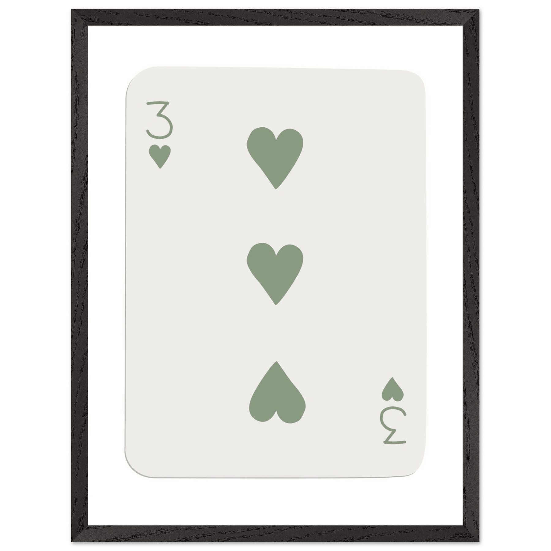 Minimalist Three of Hearts Poker Card Print - Mounted & Framed Eco-Friendly Wall Art for Modern Decor