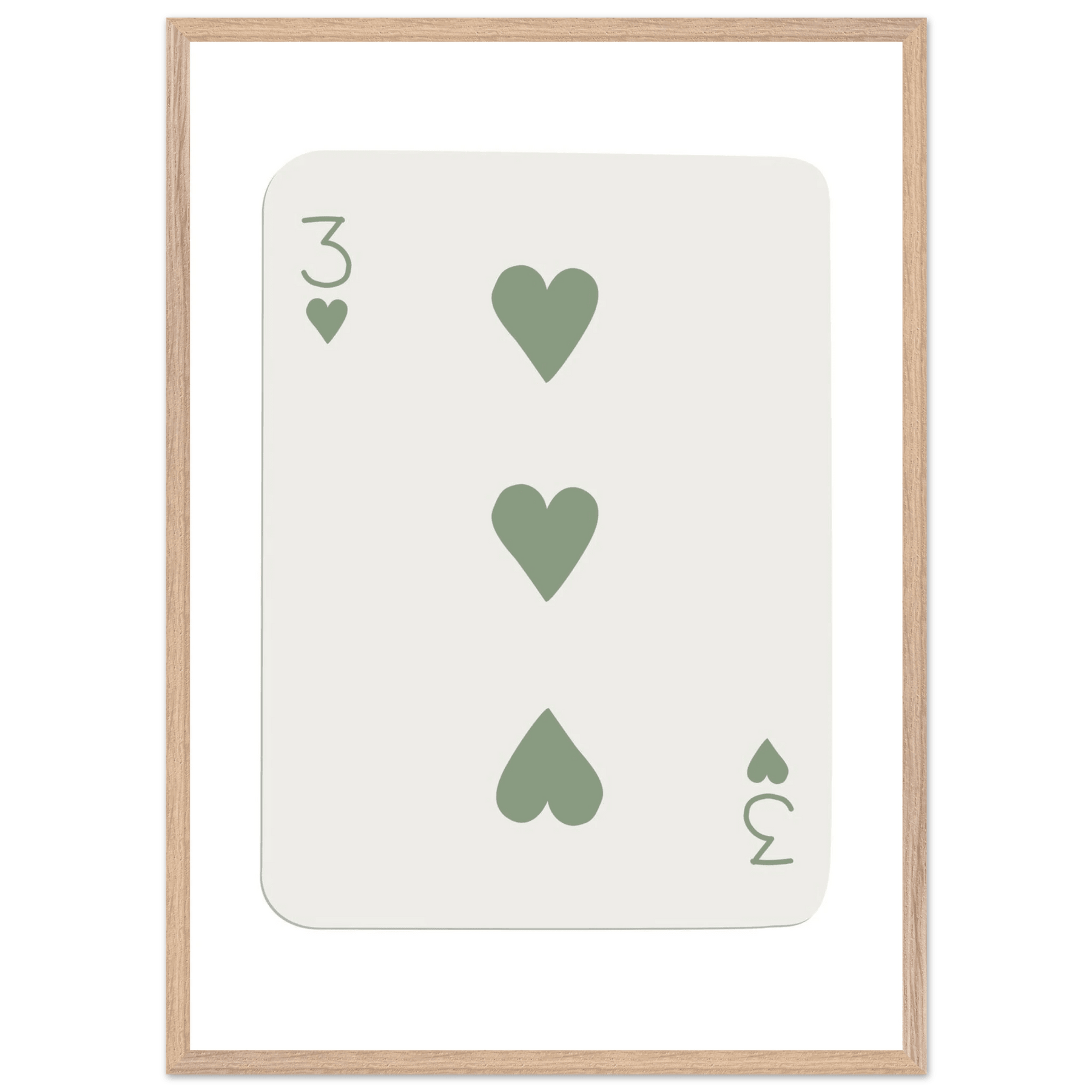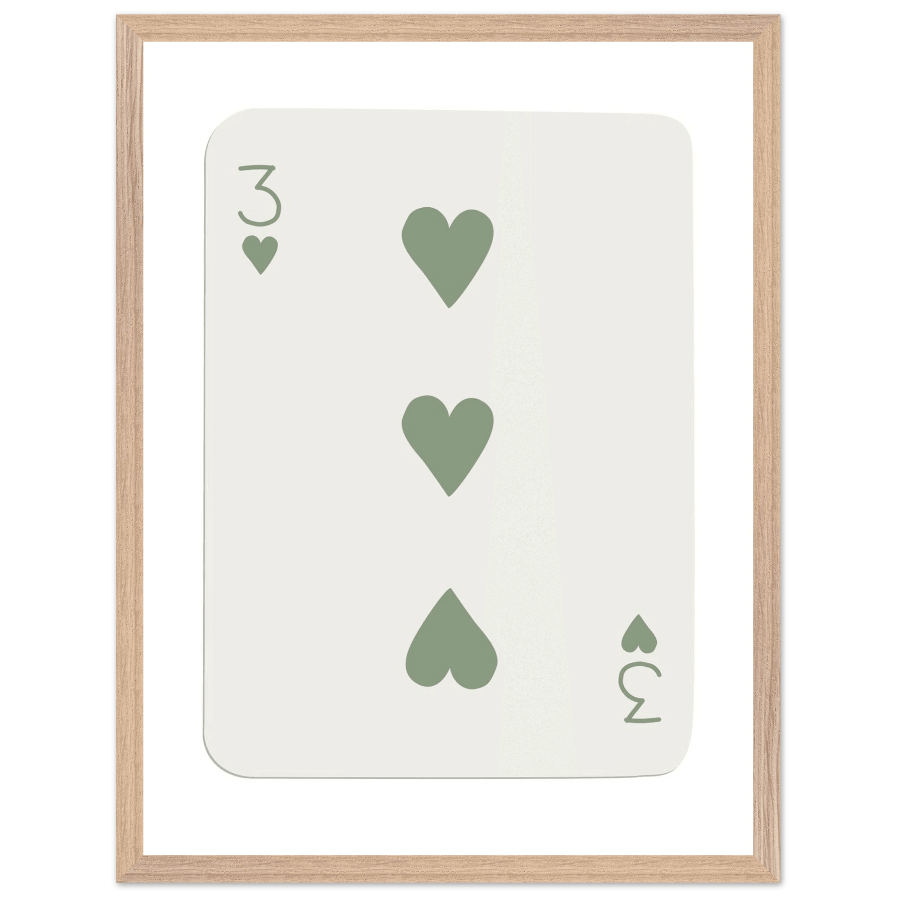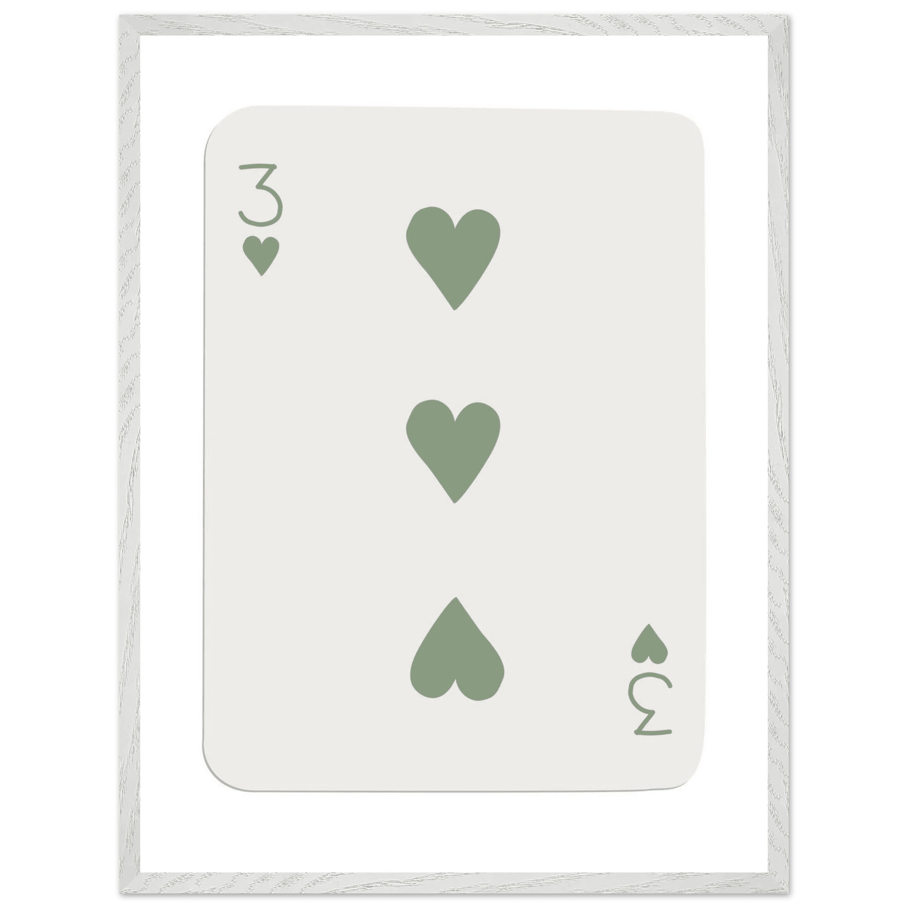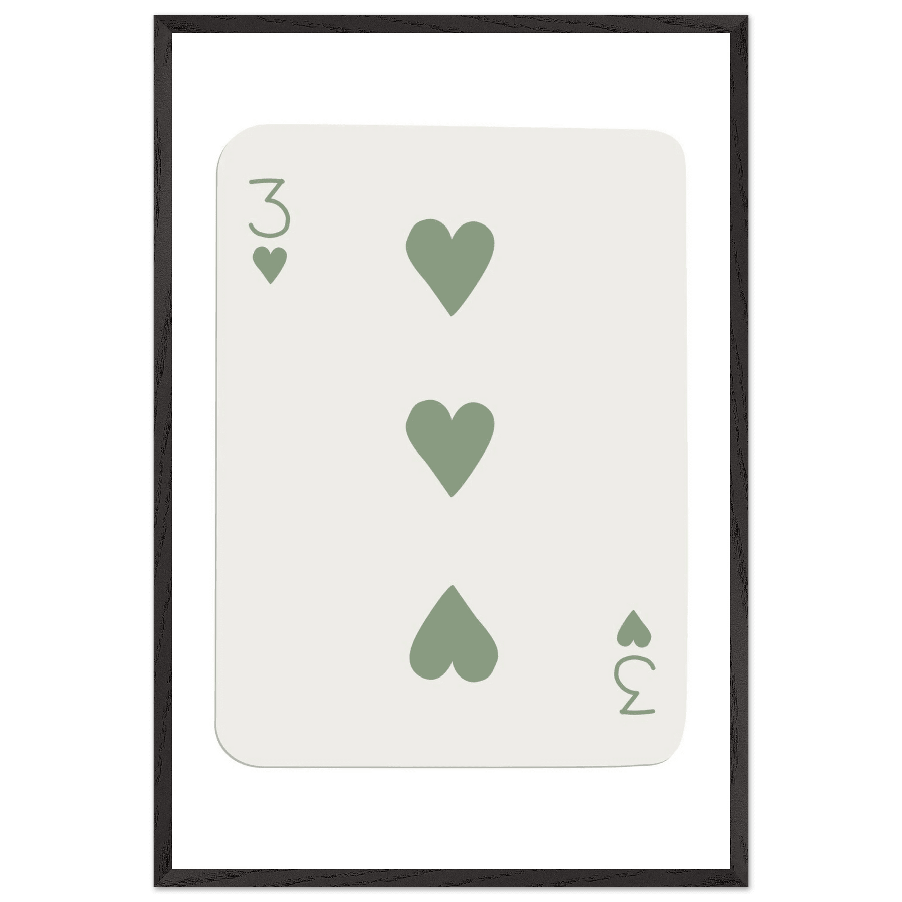 Minimalist Three of Hearts Poker Card Print - Mounted & Framed Eco-Friendly Wall Art for Modern Decor