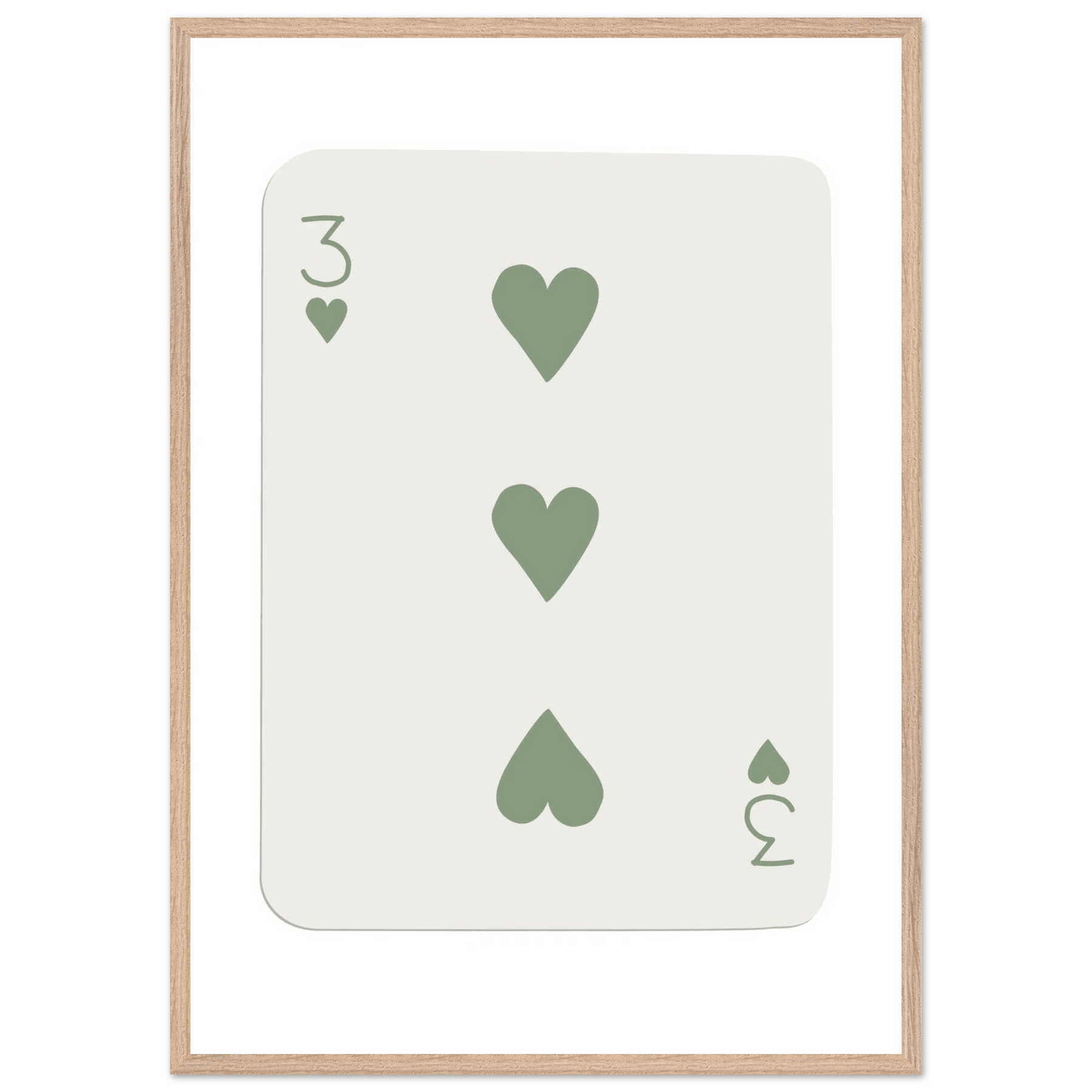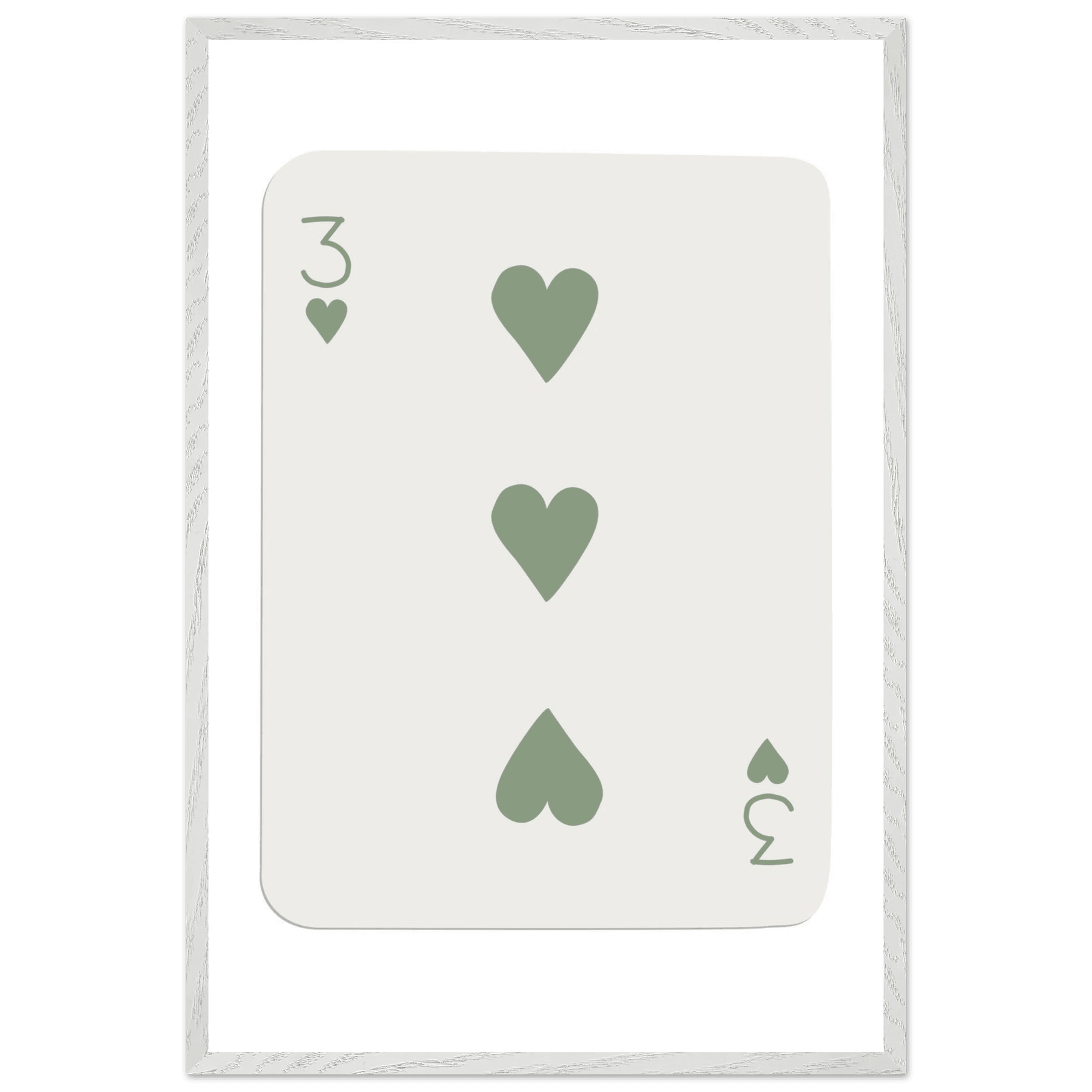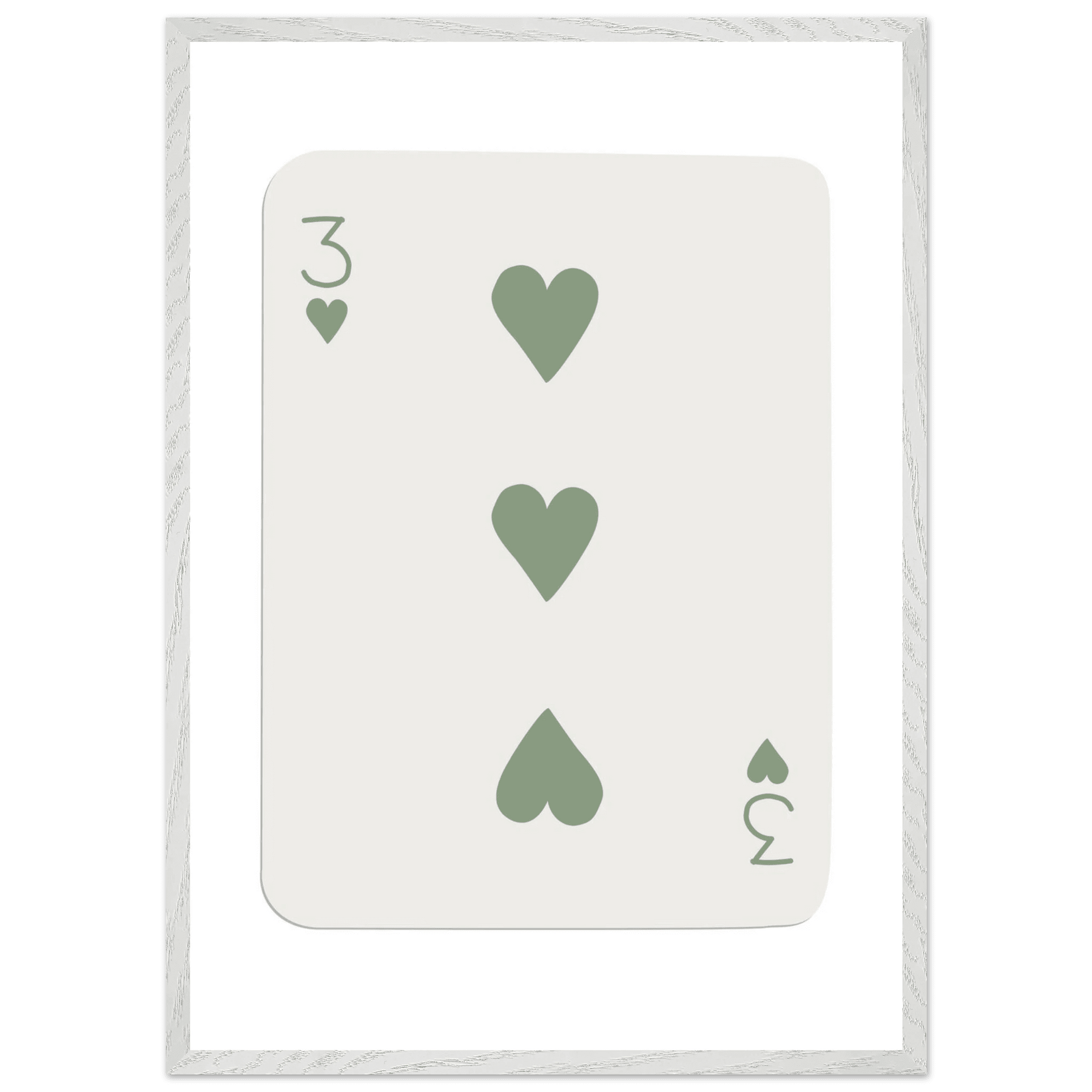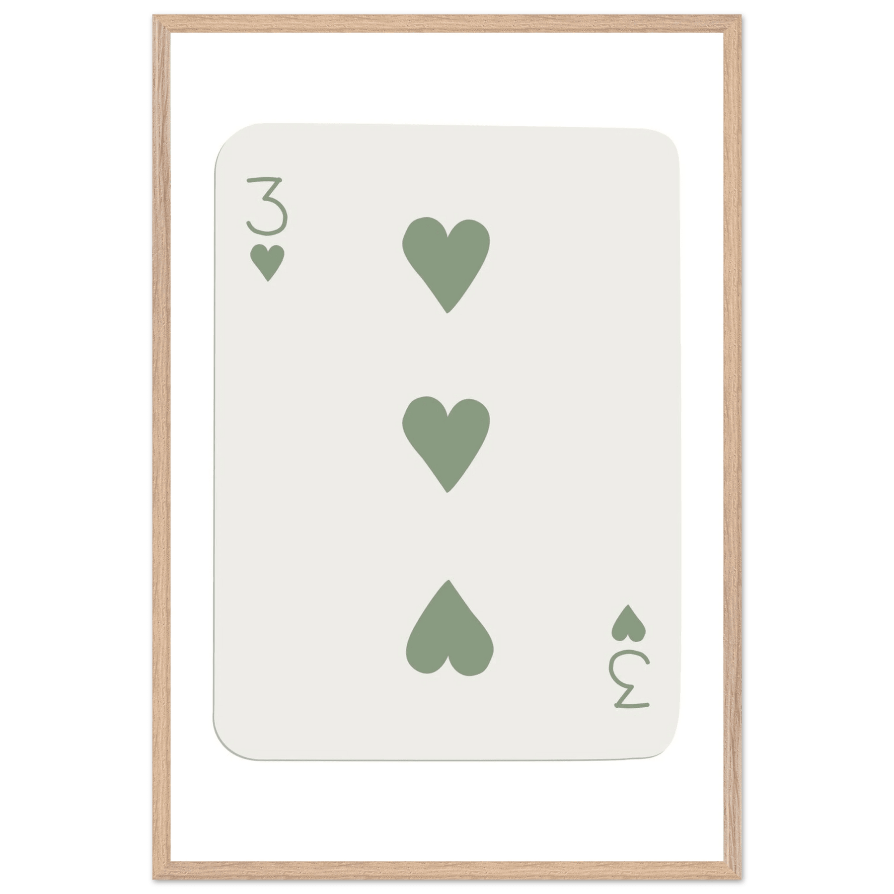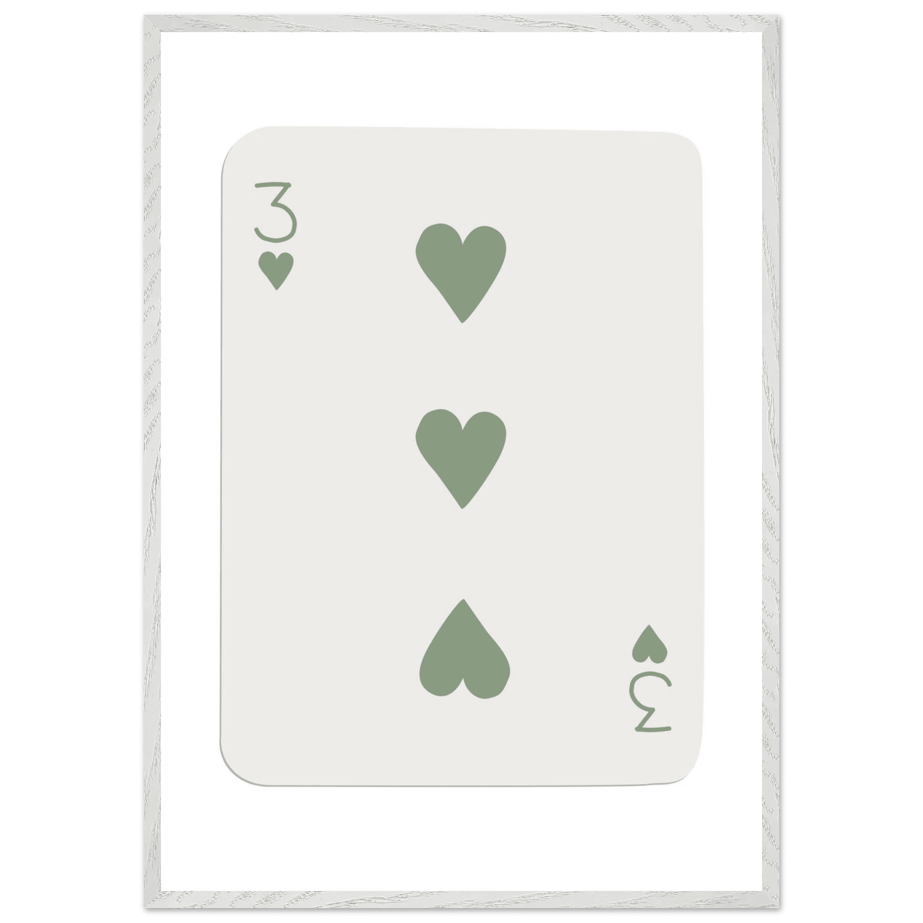 Minimalist Three of Hearts Poker Card Print - Mounted & Framed Eco-Friendly Wall Art for Modern Decor