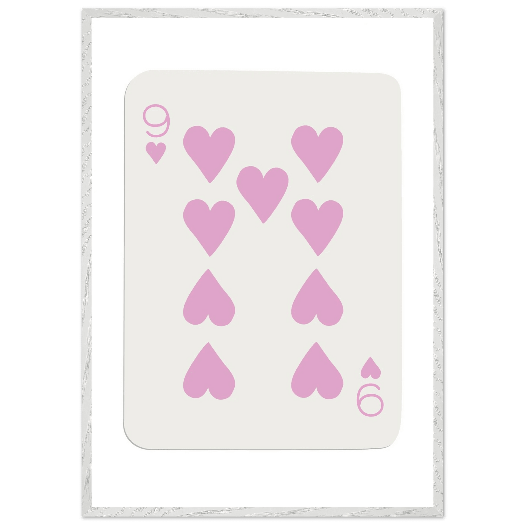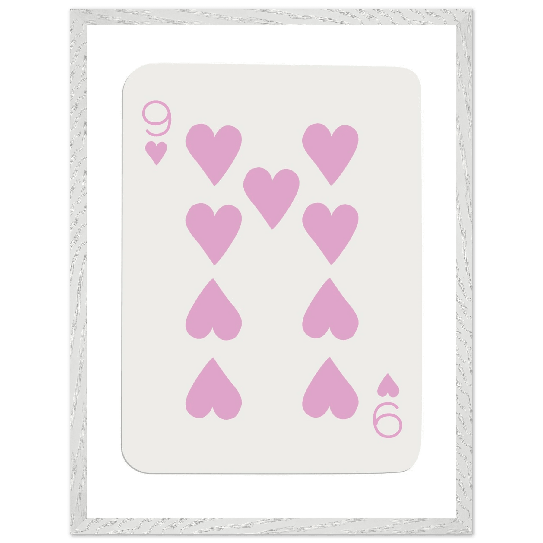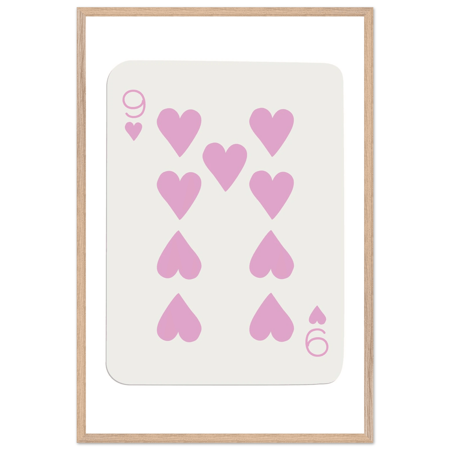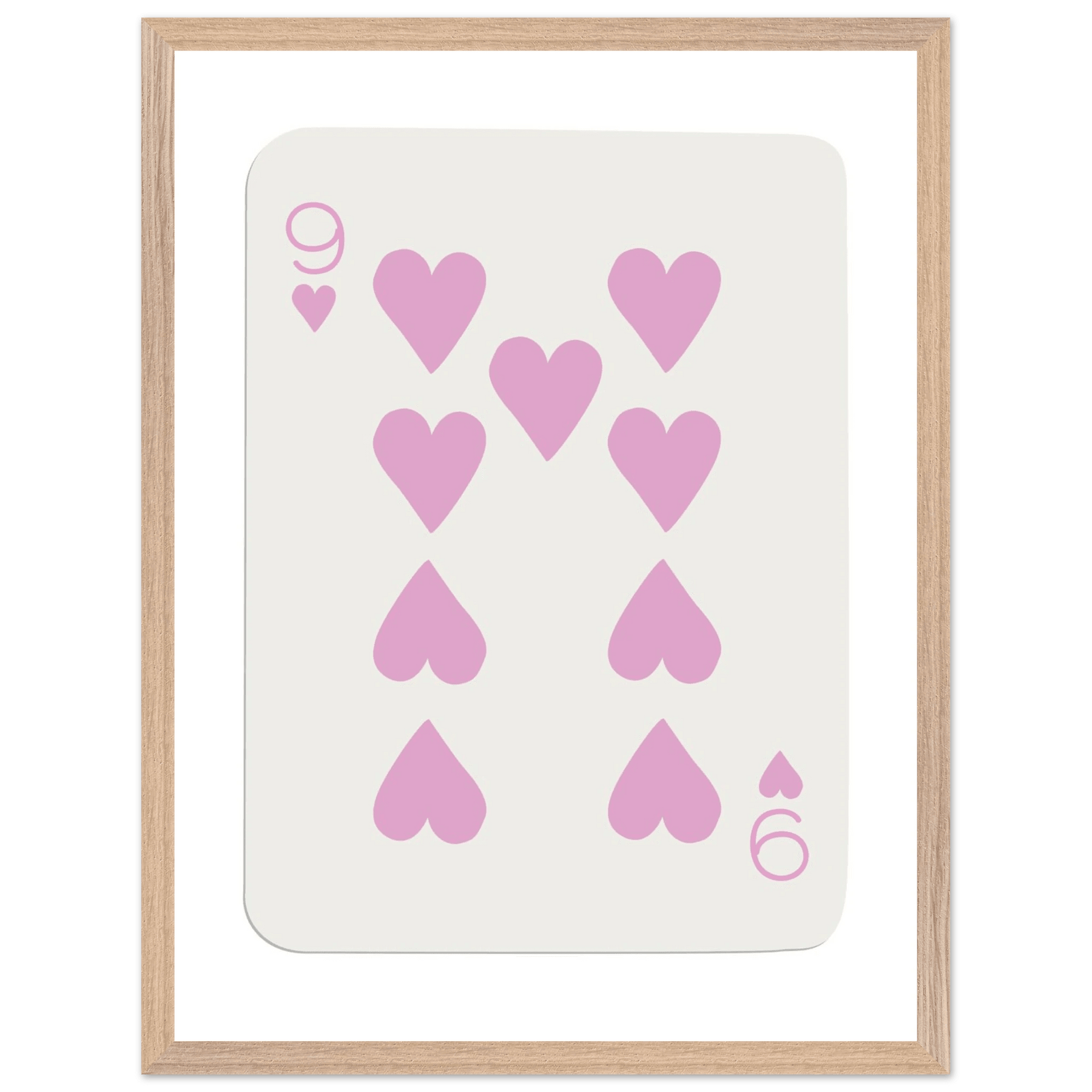 Nine of Hearts - Pink Poker Card Print - Mounted Framed Poster Art, Eco-Friendly Wood Frame