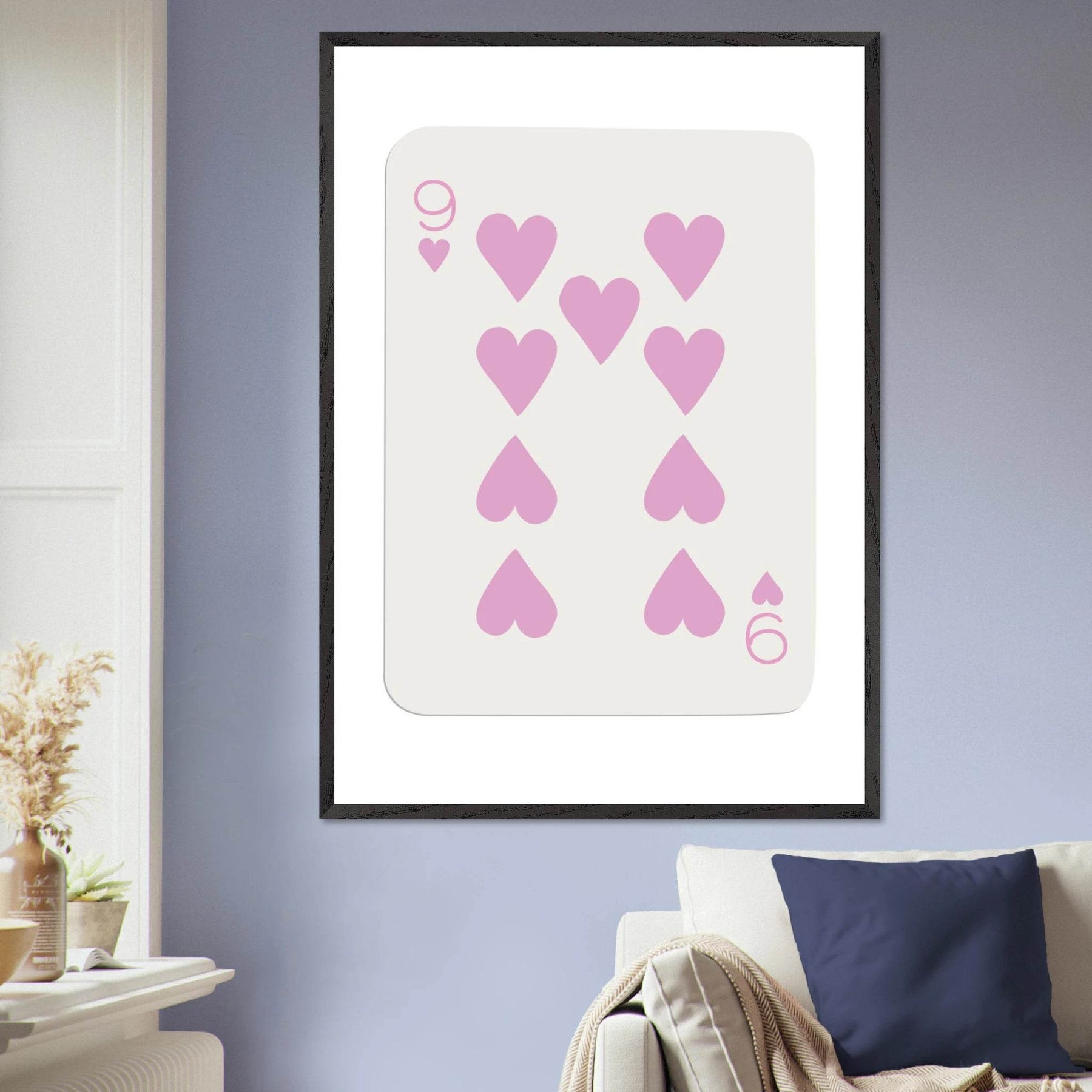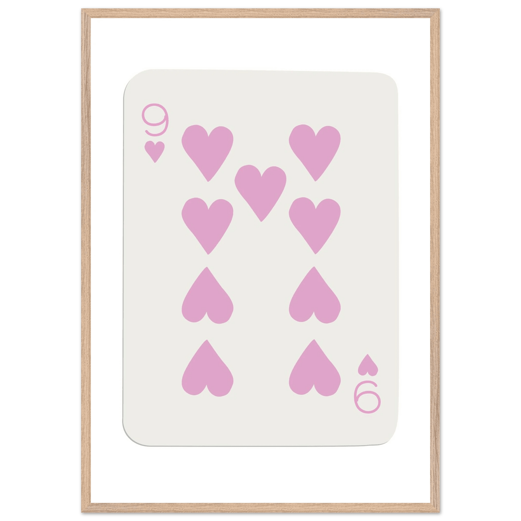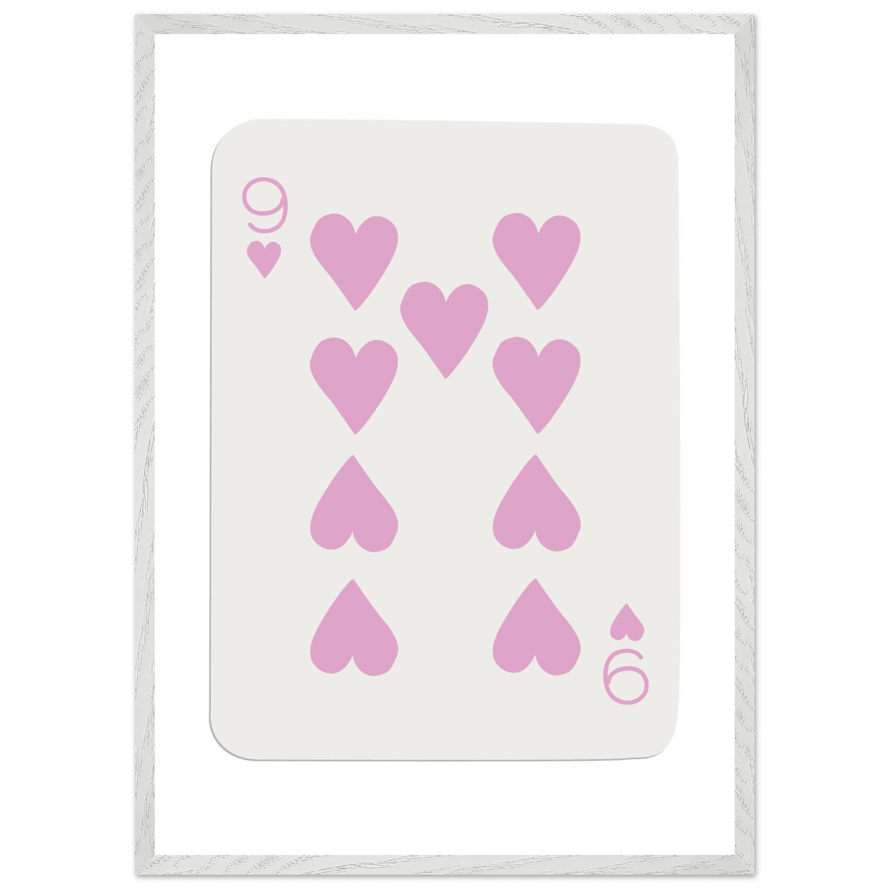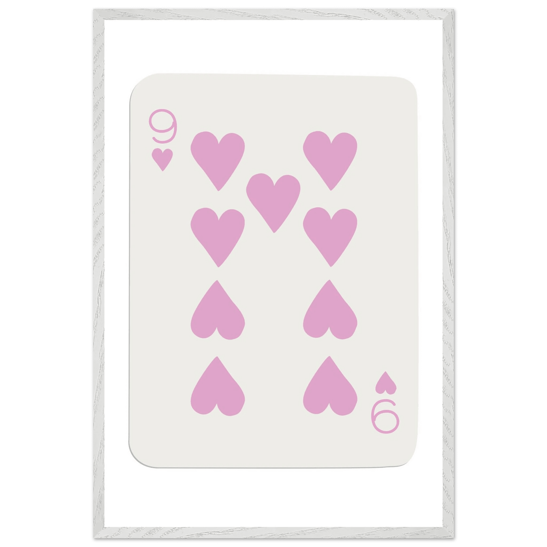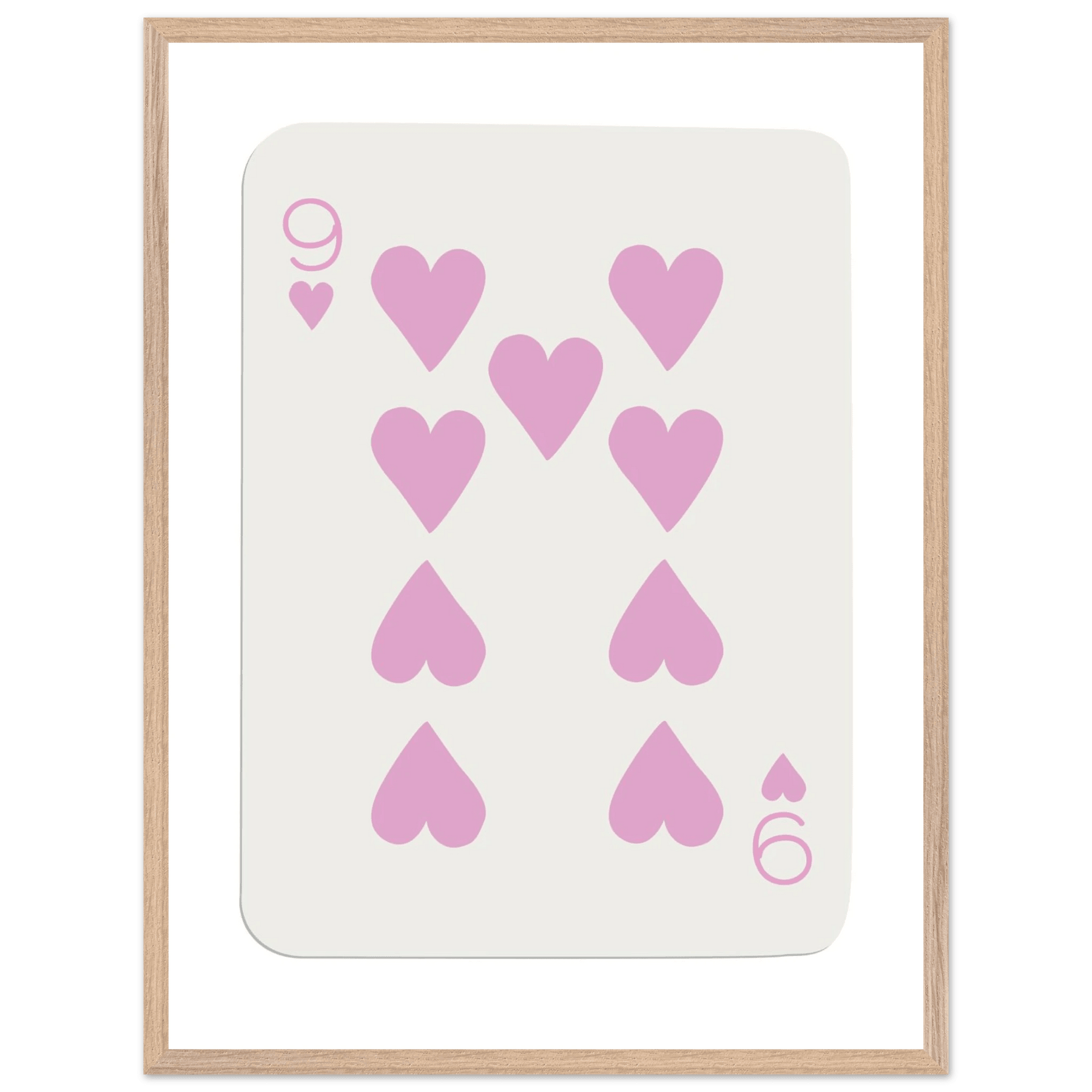 Nine of Hearts - Pink Poker Card Print - Mounted Framed Poster Art, Eco-Friendly Wood Frame