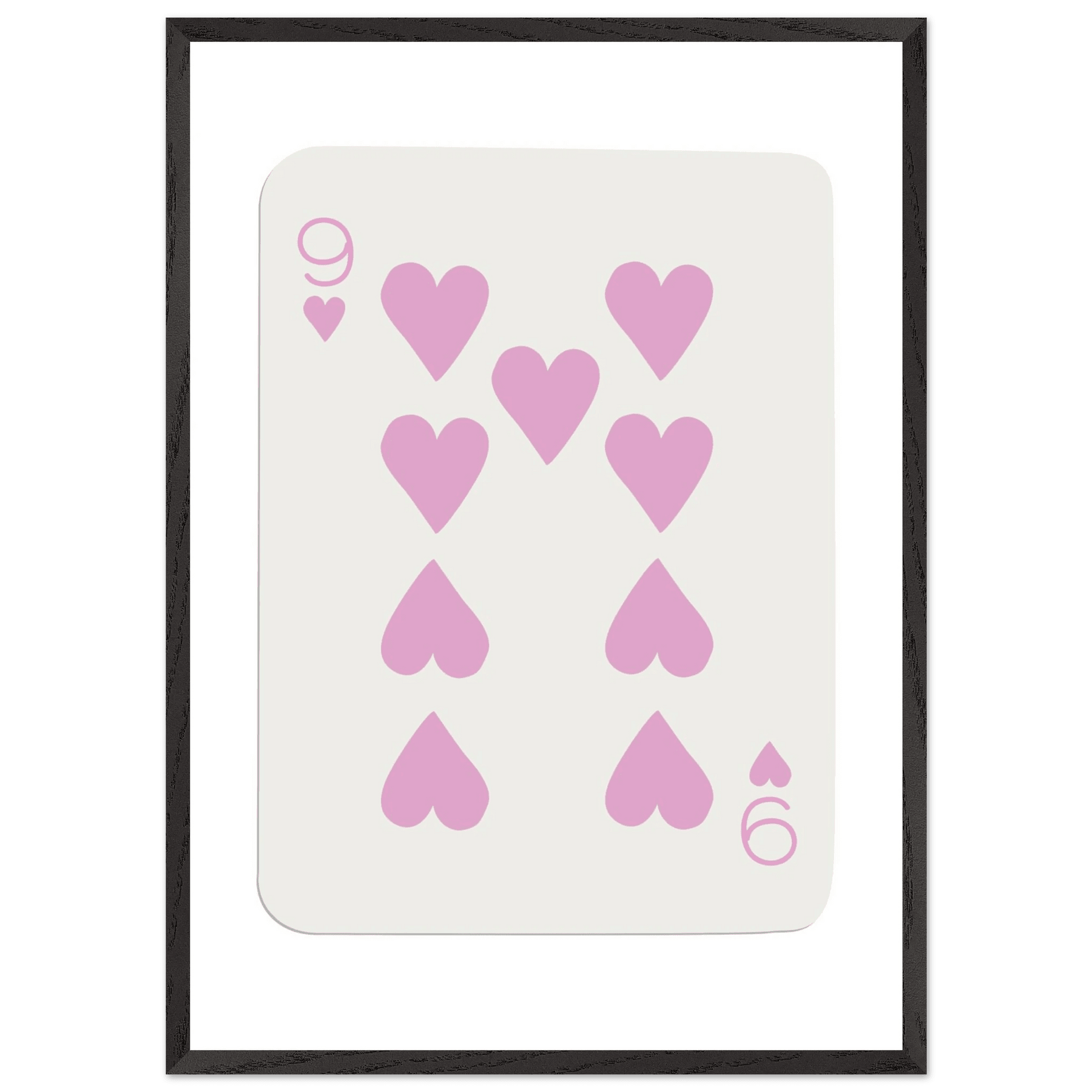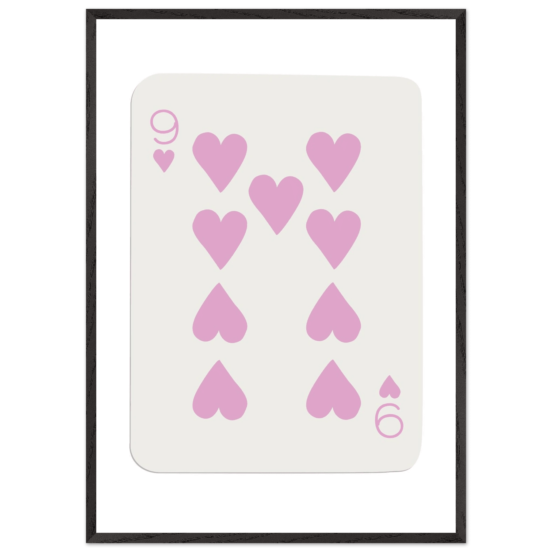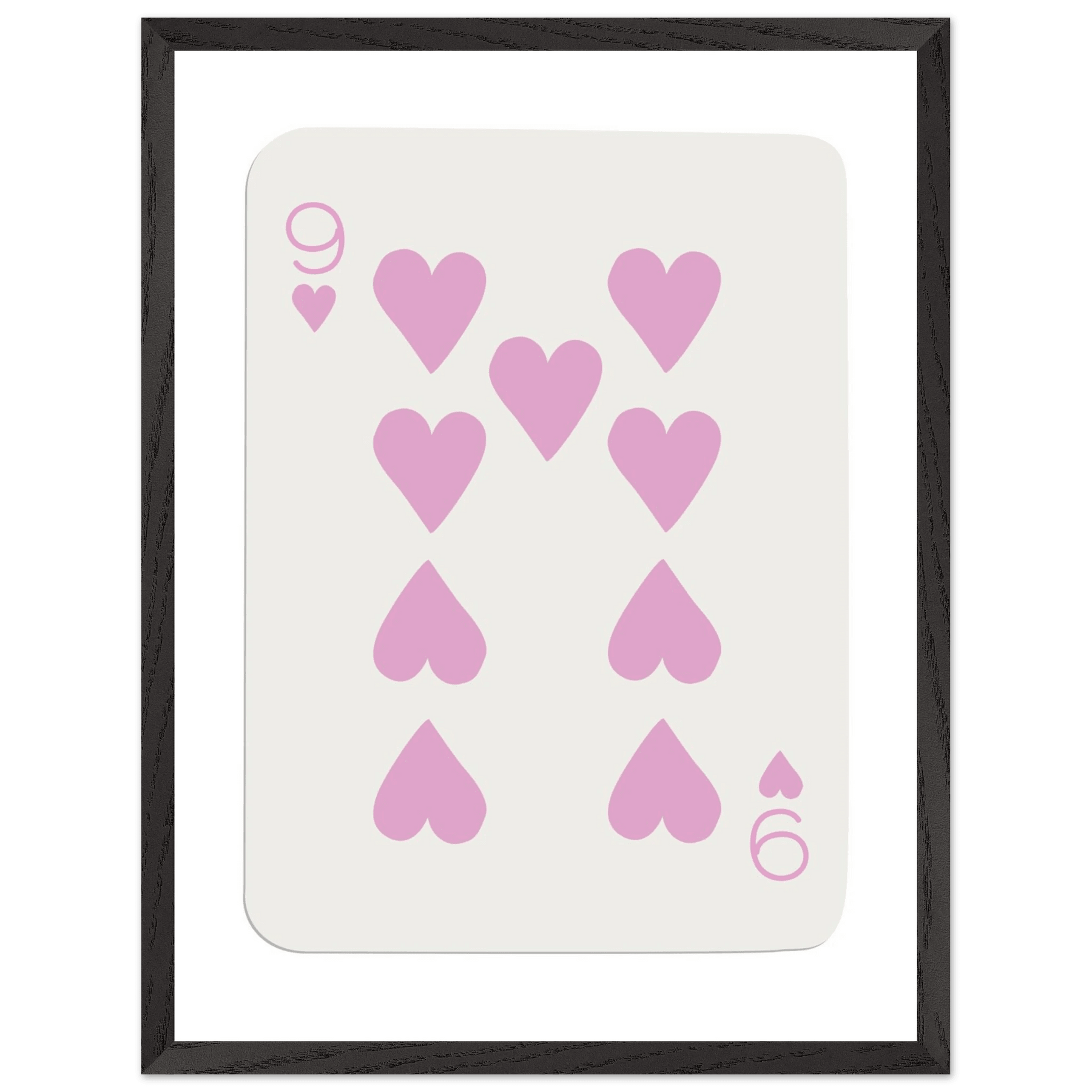 Features of the Nine of Hearts - Pink Poker Card Print - Mounted Framed Poster Art, Eco-Friendly Wood Frame: