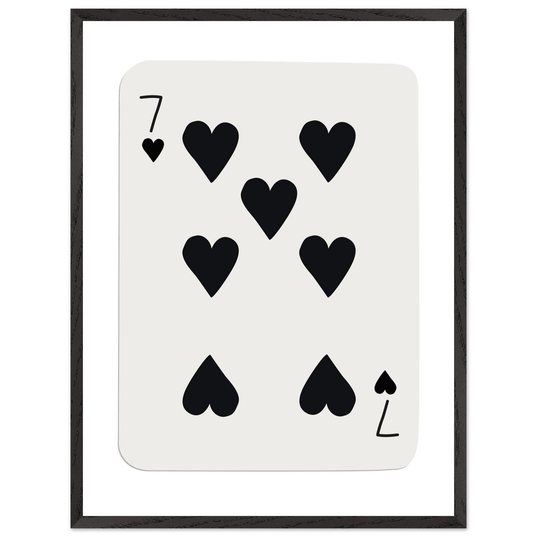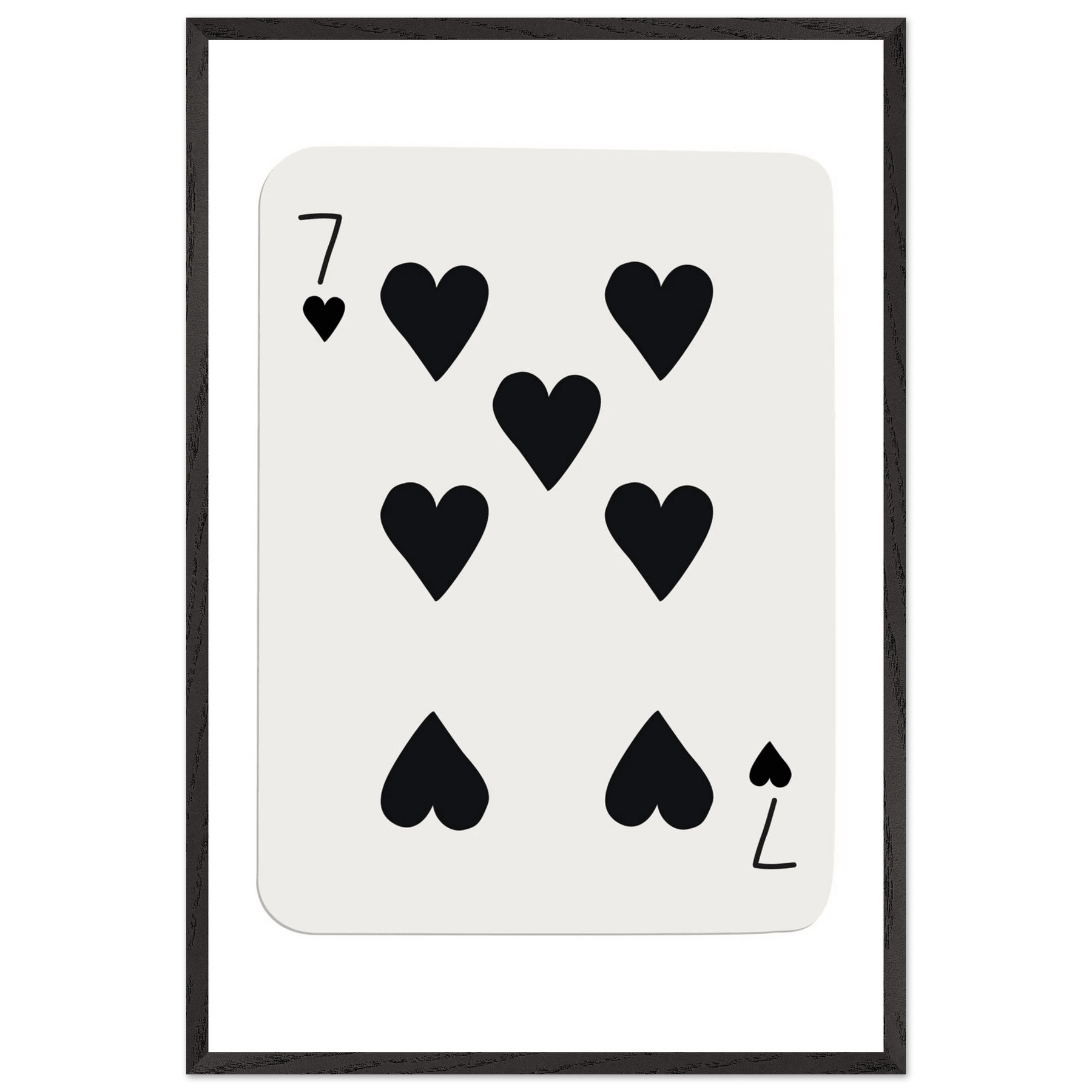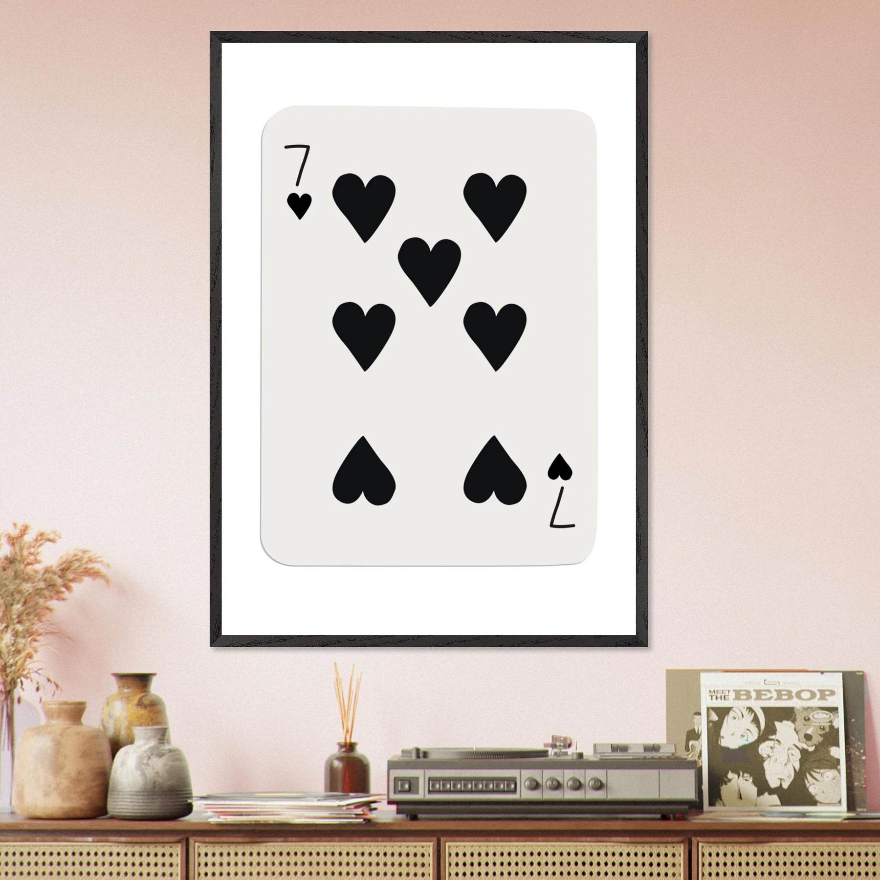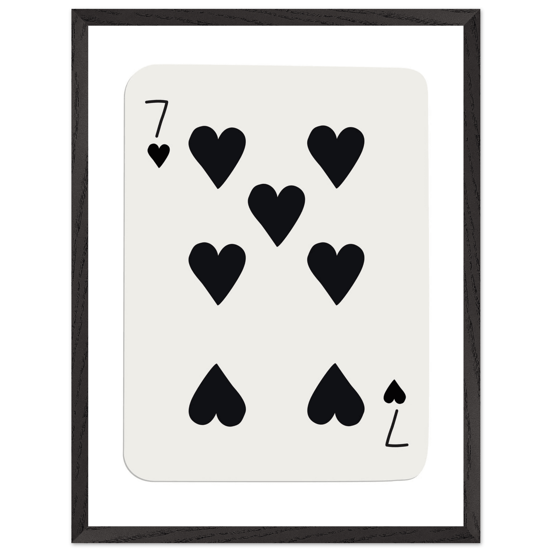 Enhance your space with the Seven of Hearts - Modern Poker Card Print Art - Eco-Friendly Wood Framed Poster, in your choice of elegant frames today, and enjoy a blend of art and passion that resonates with every glance. This stunning piece not only decorates your walls but also symbolizes the thrill of the game, inviting both nostalgia and excitement into your living area.