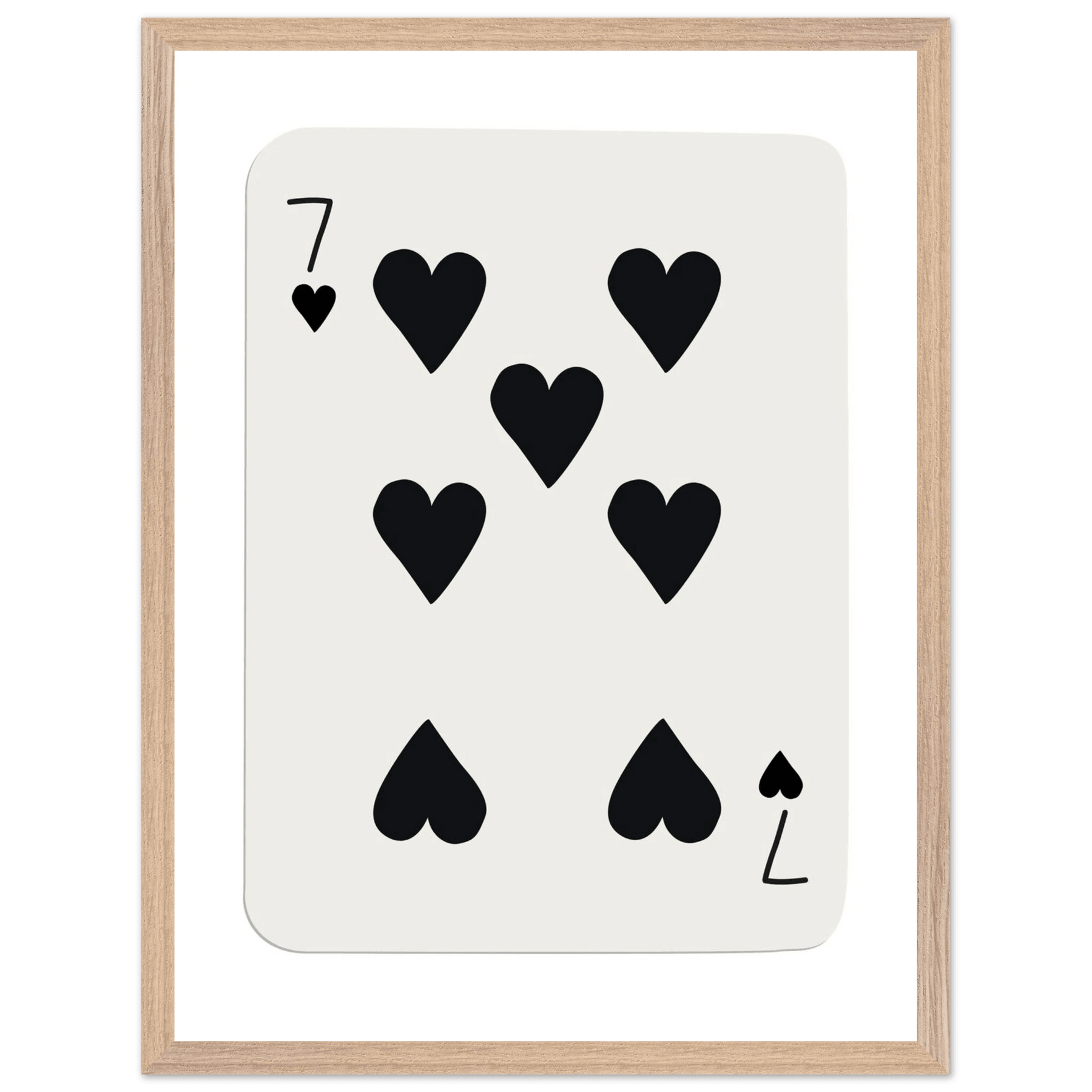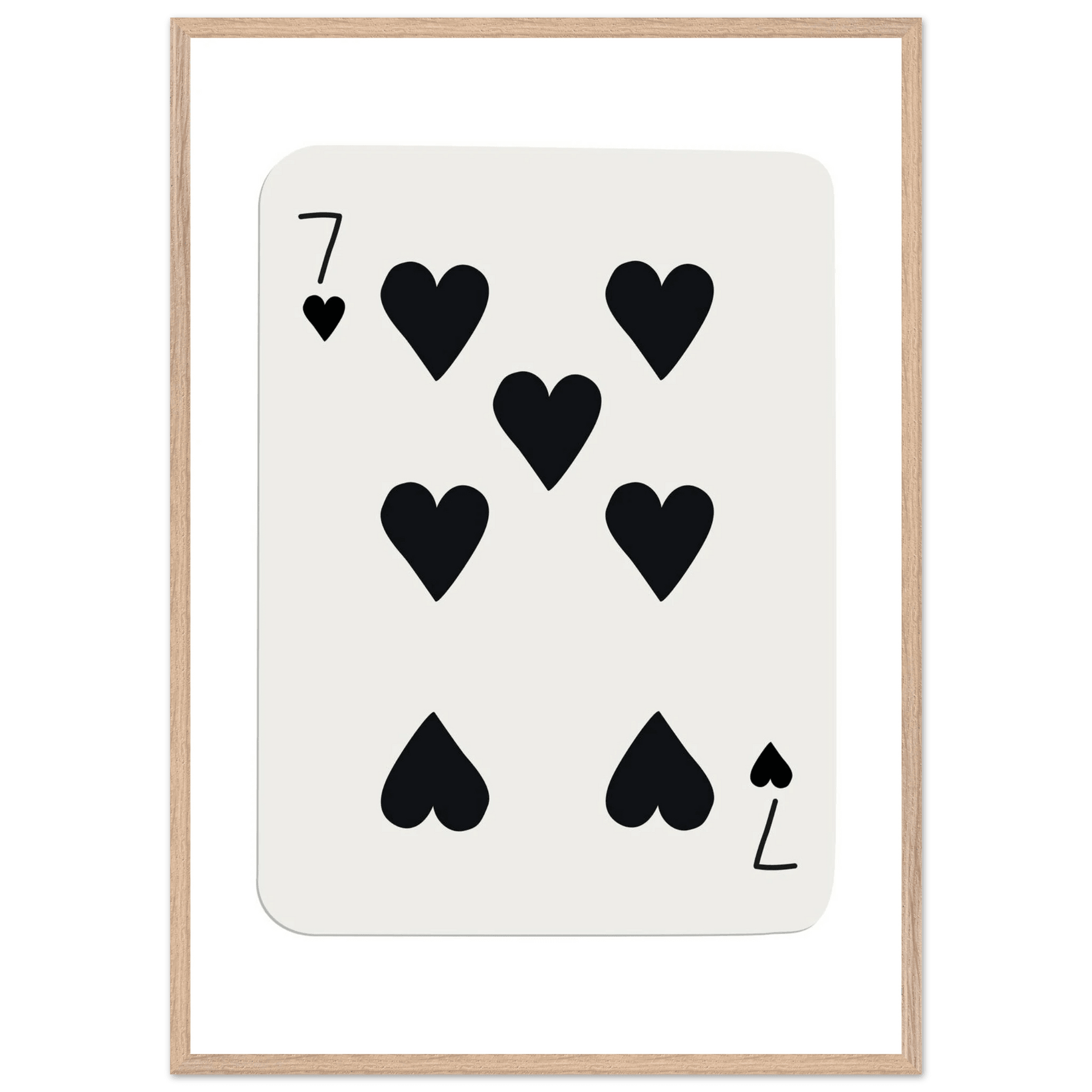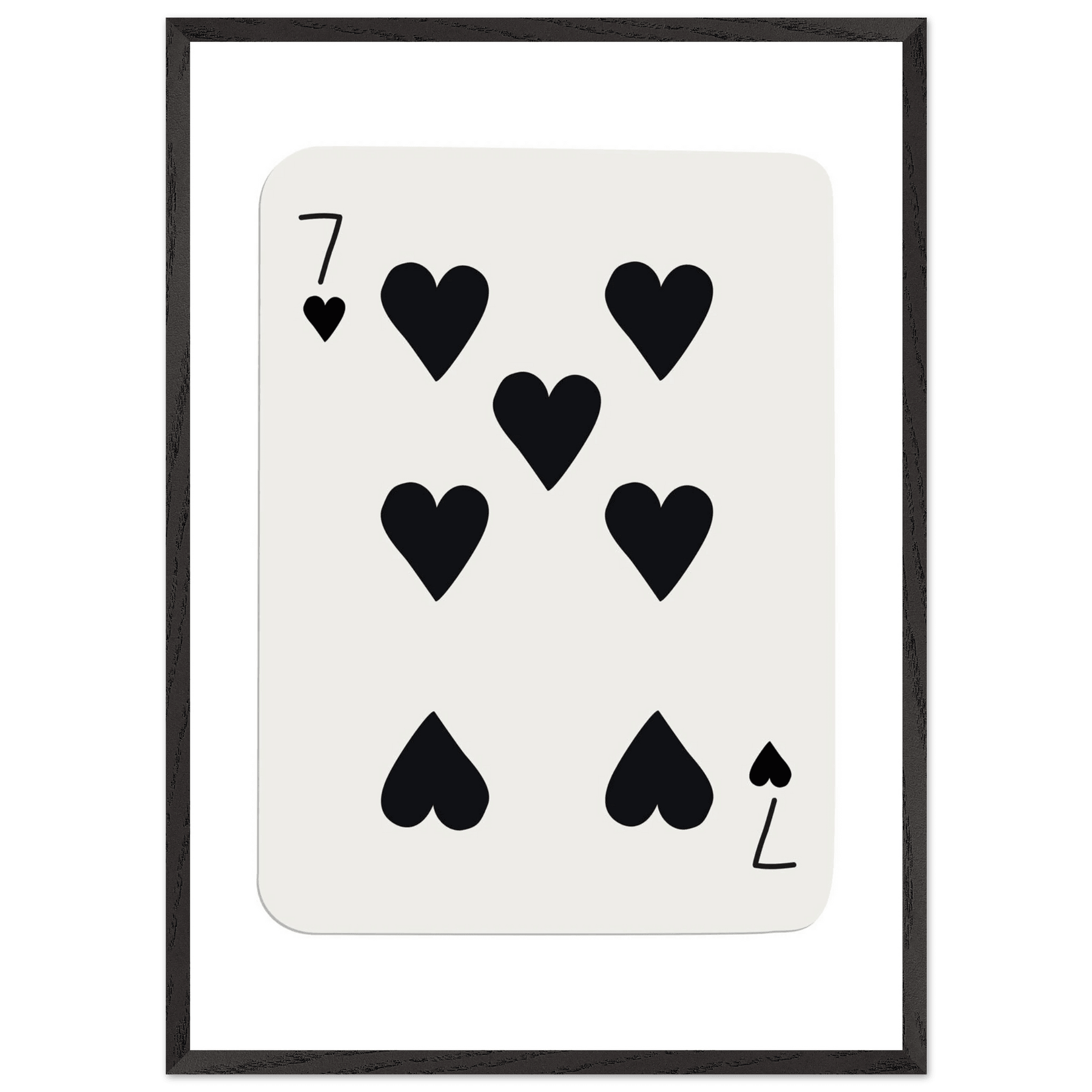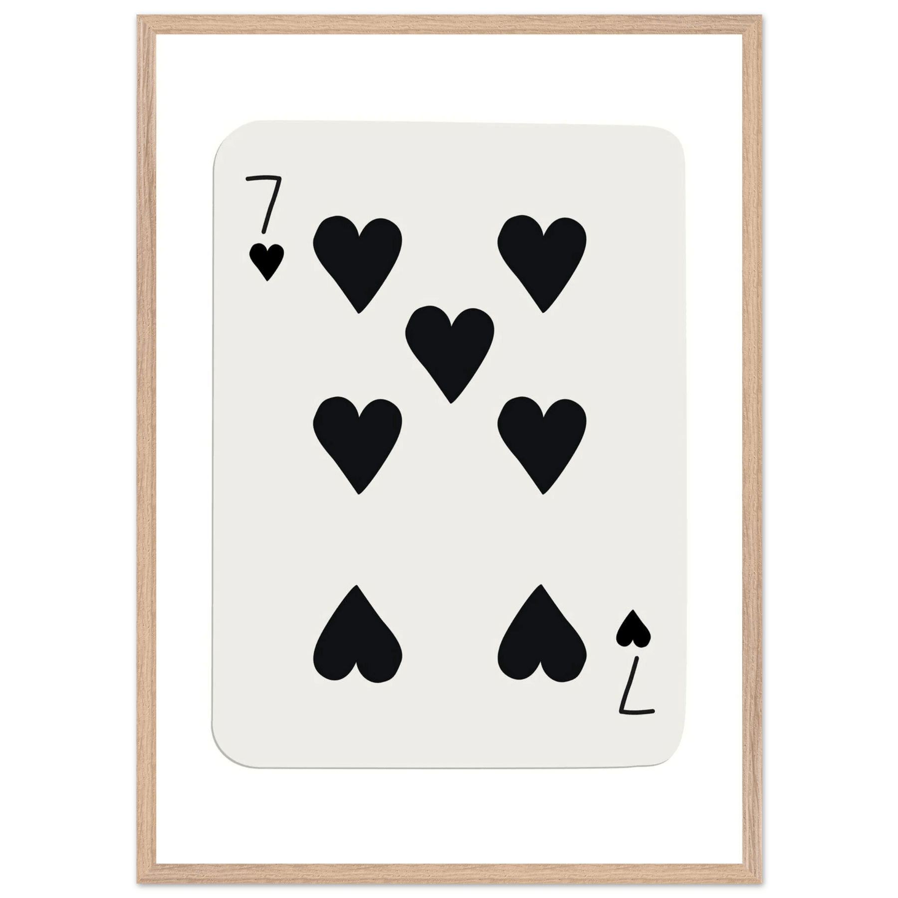 Enhance your space with the Seven of Hearts - Modern Poker Card Print Art - Eco-Friendly Wood Framed Poster, in your choice of elegant frames today, and enjoy a blend of art and passion that resonates with every glance. This stunning piece not only decorates your walls but also symbolizes the thrill of the game, inviting both nostalgia and excitement into your living area.