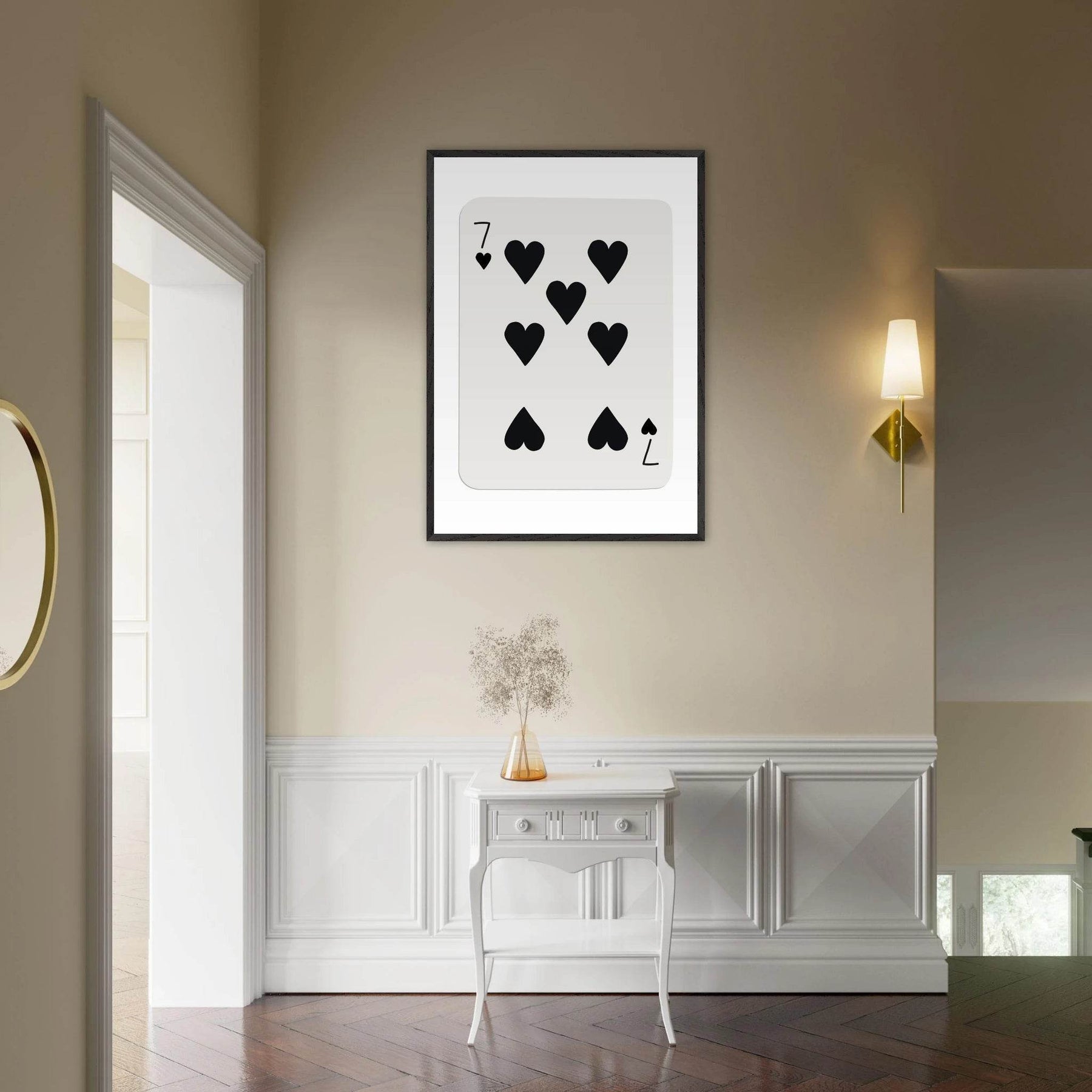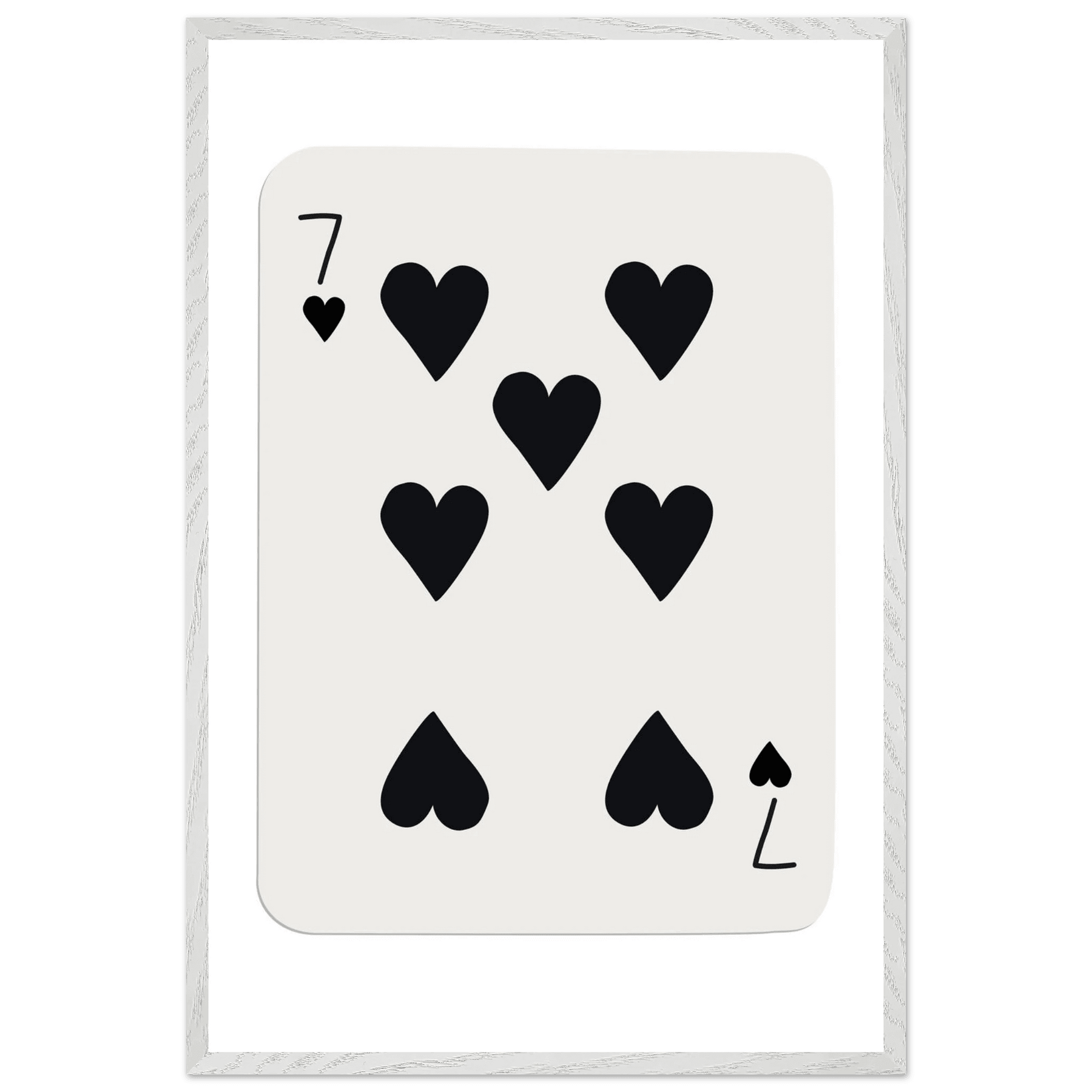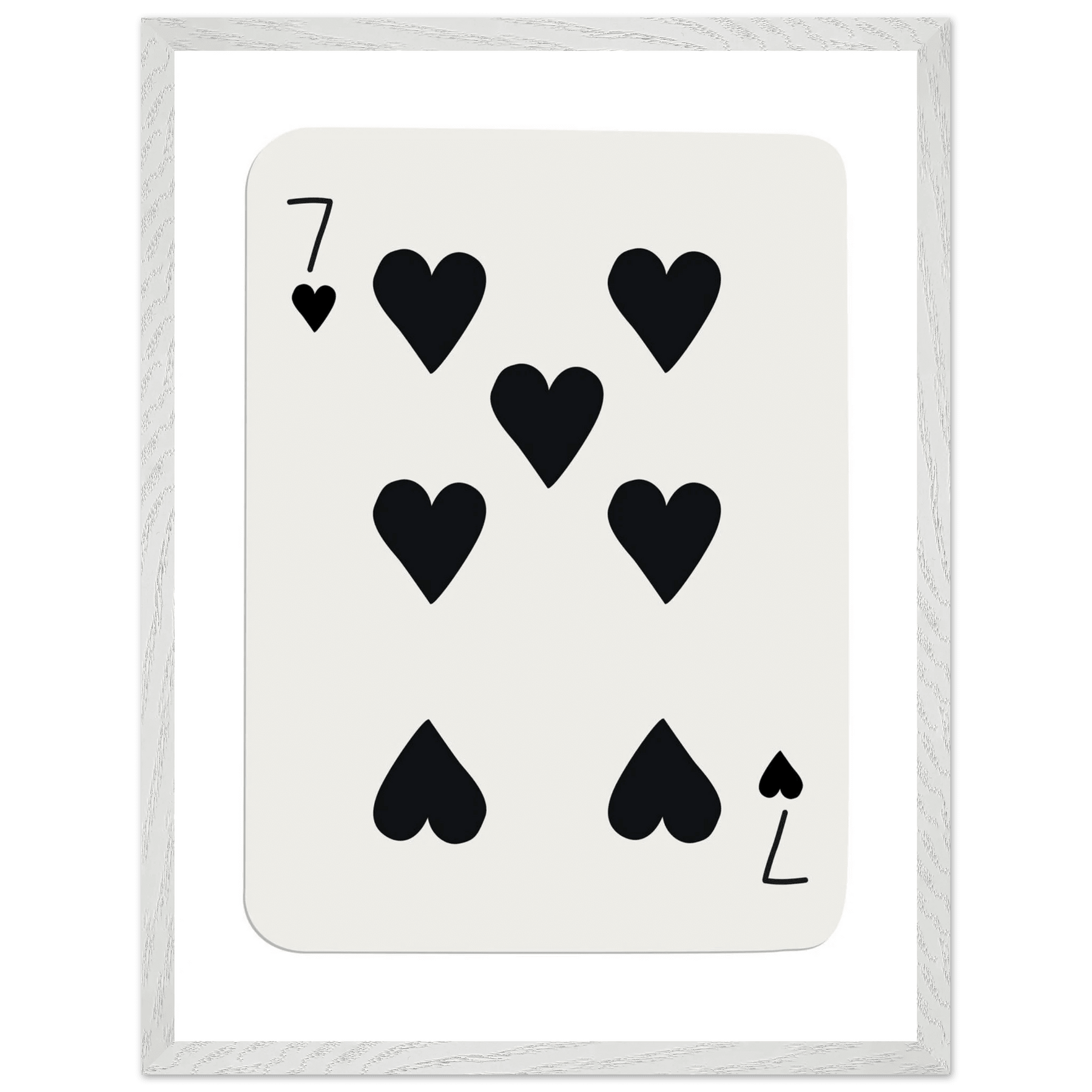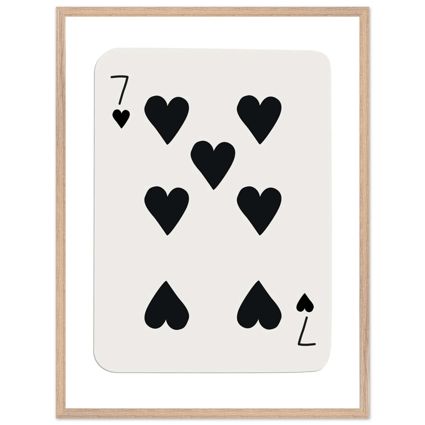 Enhance your space with the Seven of Hearts - Modern Poker Card Print Art - Eco-Friendly Wood Framed Poster, in your choice of elegant frames today, and enjoy a blend of art and passion that resonates with every glance. This stunning piece not only decorates your walls but also symbolizes the thrill of the game, inviting both nostalgia and excitement into your living area.