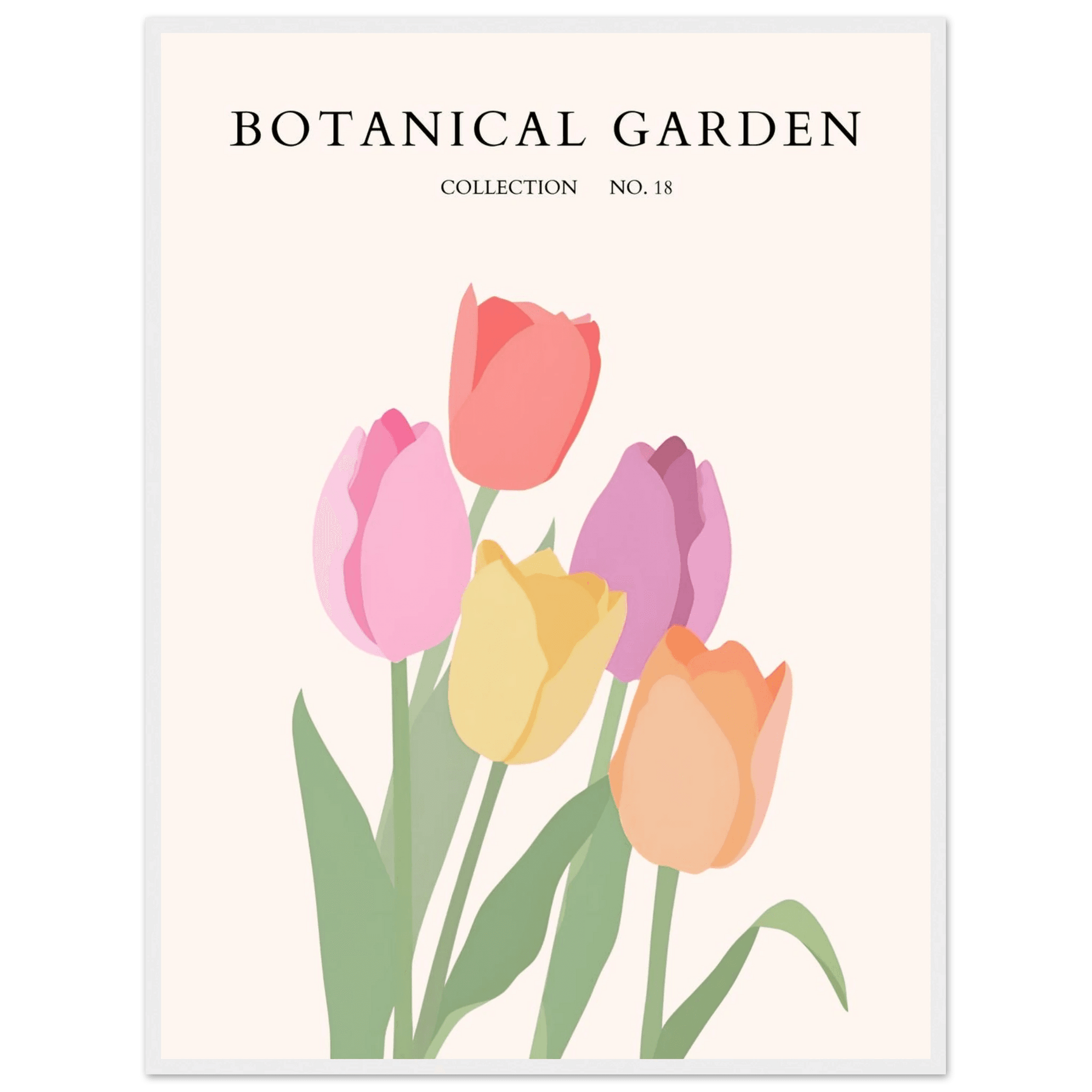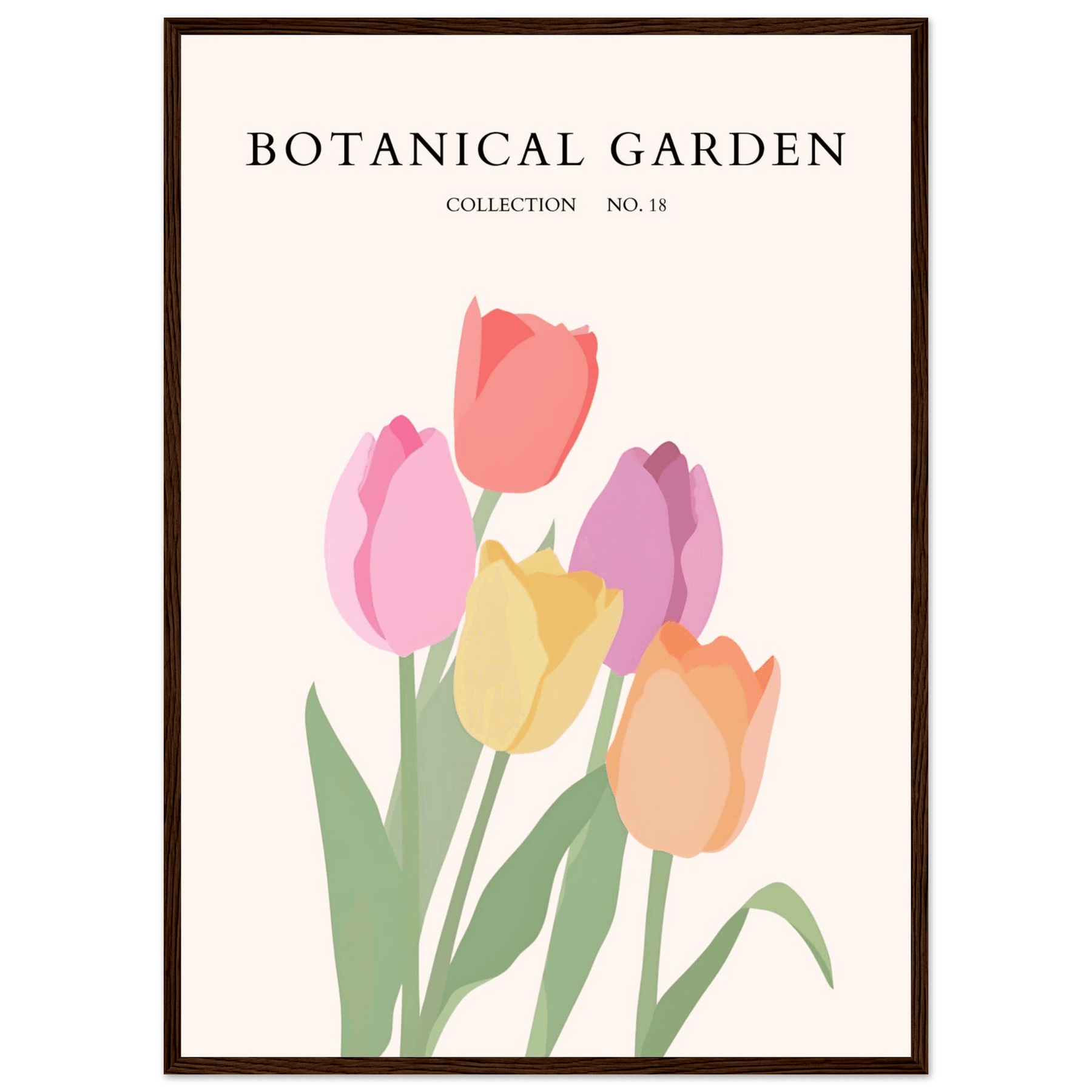 Botanical Garden Tulip Framed Poster – Pastel Bloom Art Print | Ready-to-Hang Floral Decor