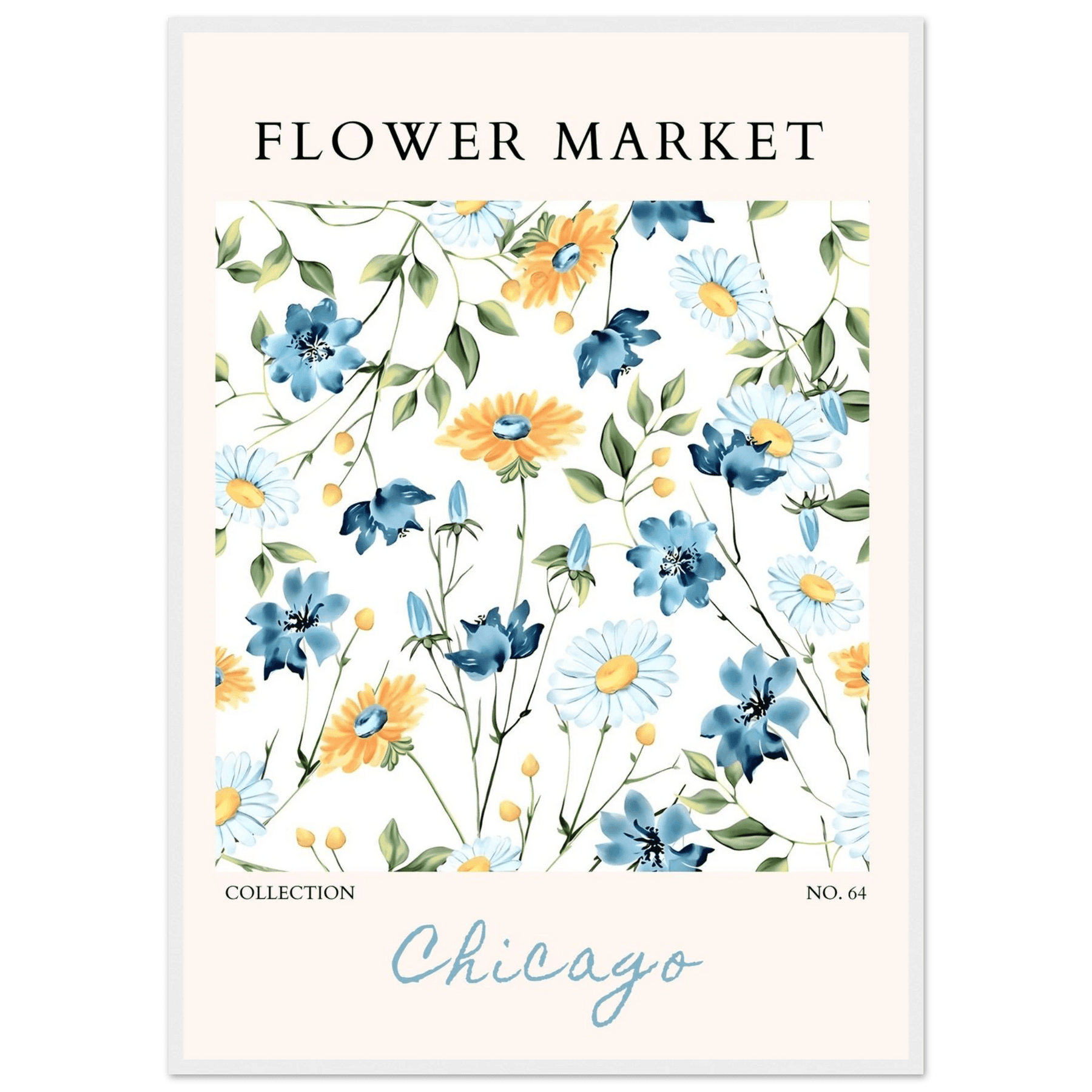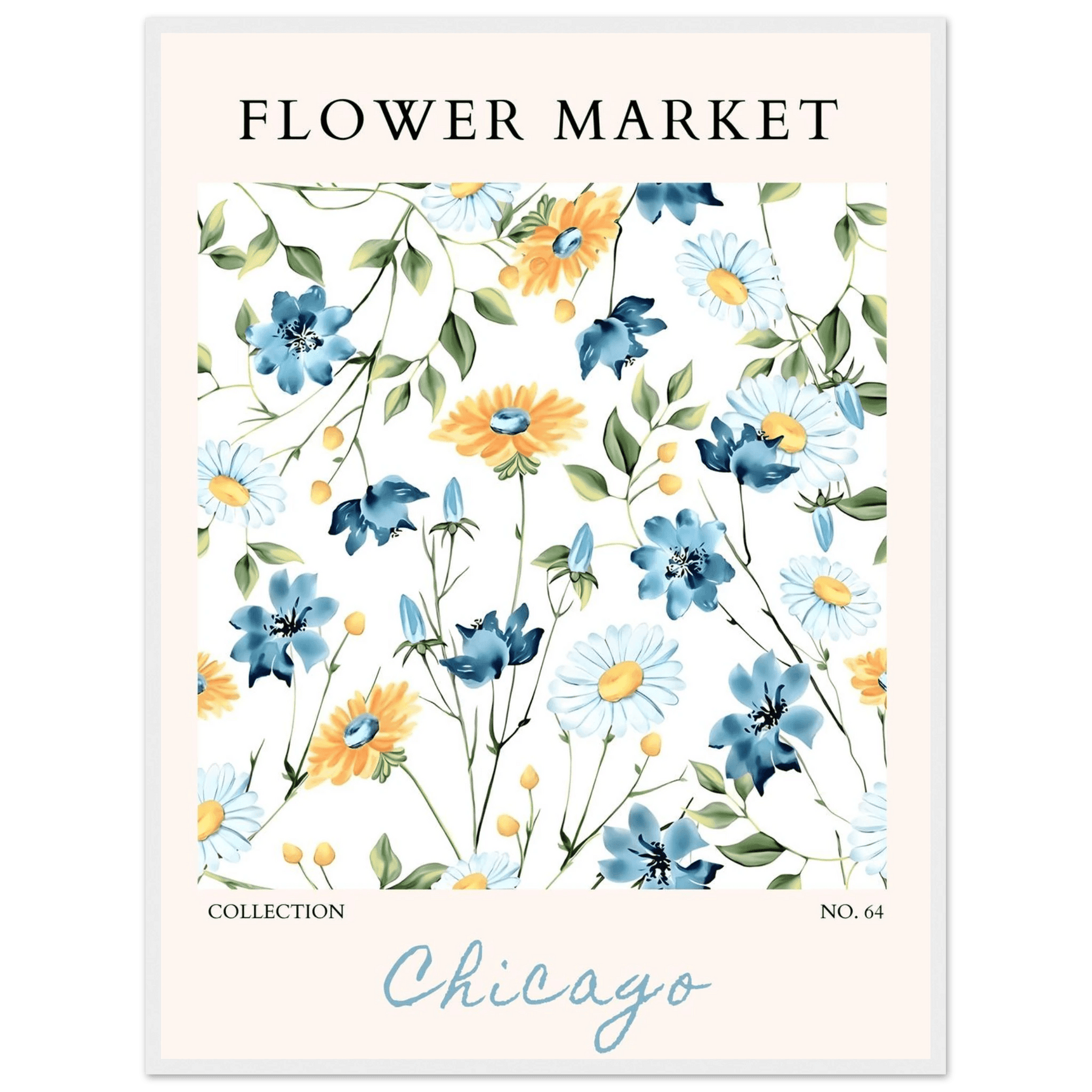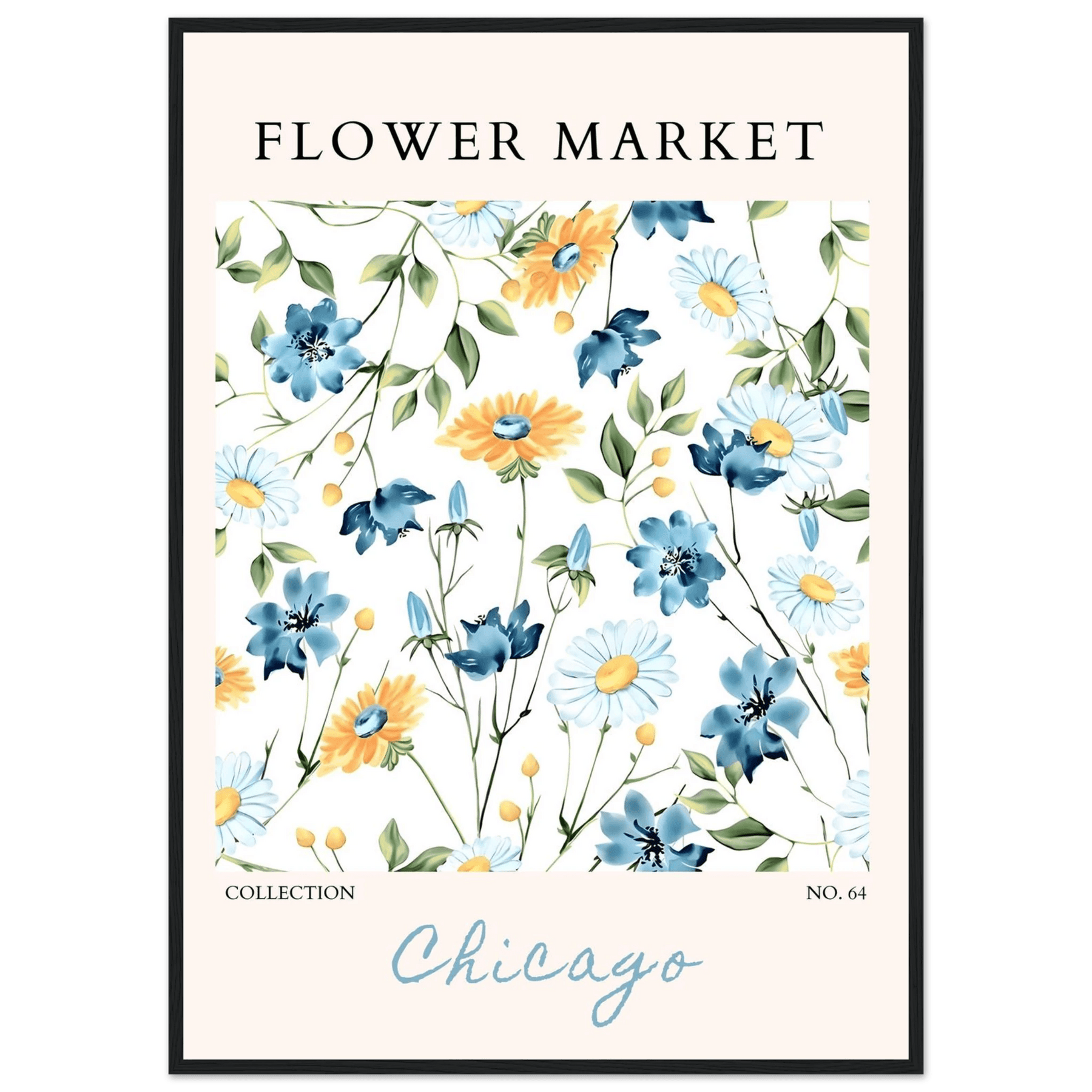The enchanting blue and yellow tones in the Flower Market Chicago Collection Framed Poster create a harmonious balance with any decor style, from modern to rustic. This piece not only adorns your walls but also conveys a message of joy and creativity. Hang it in a prominent place and let its charm inspire conversations and admiration.