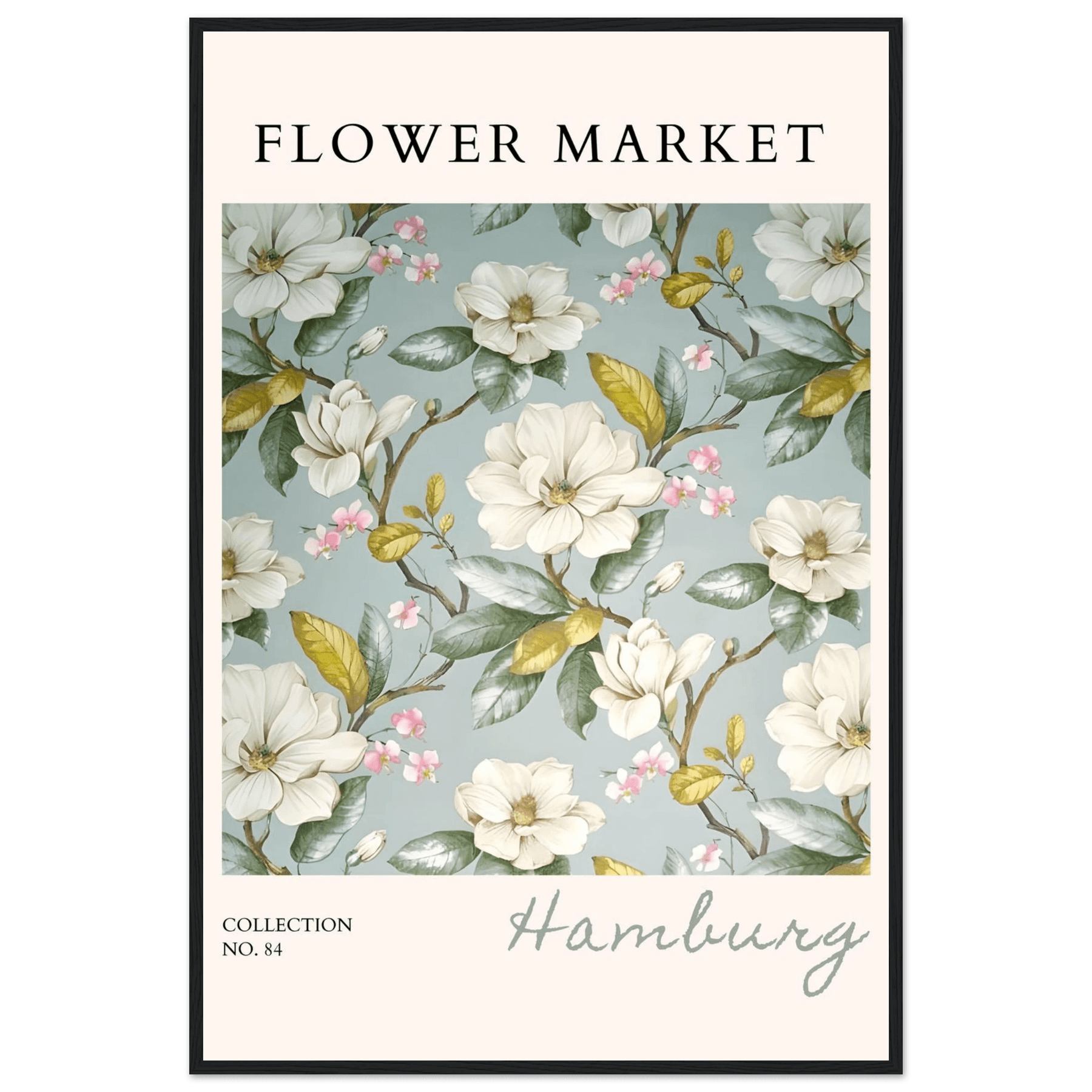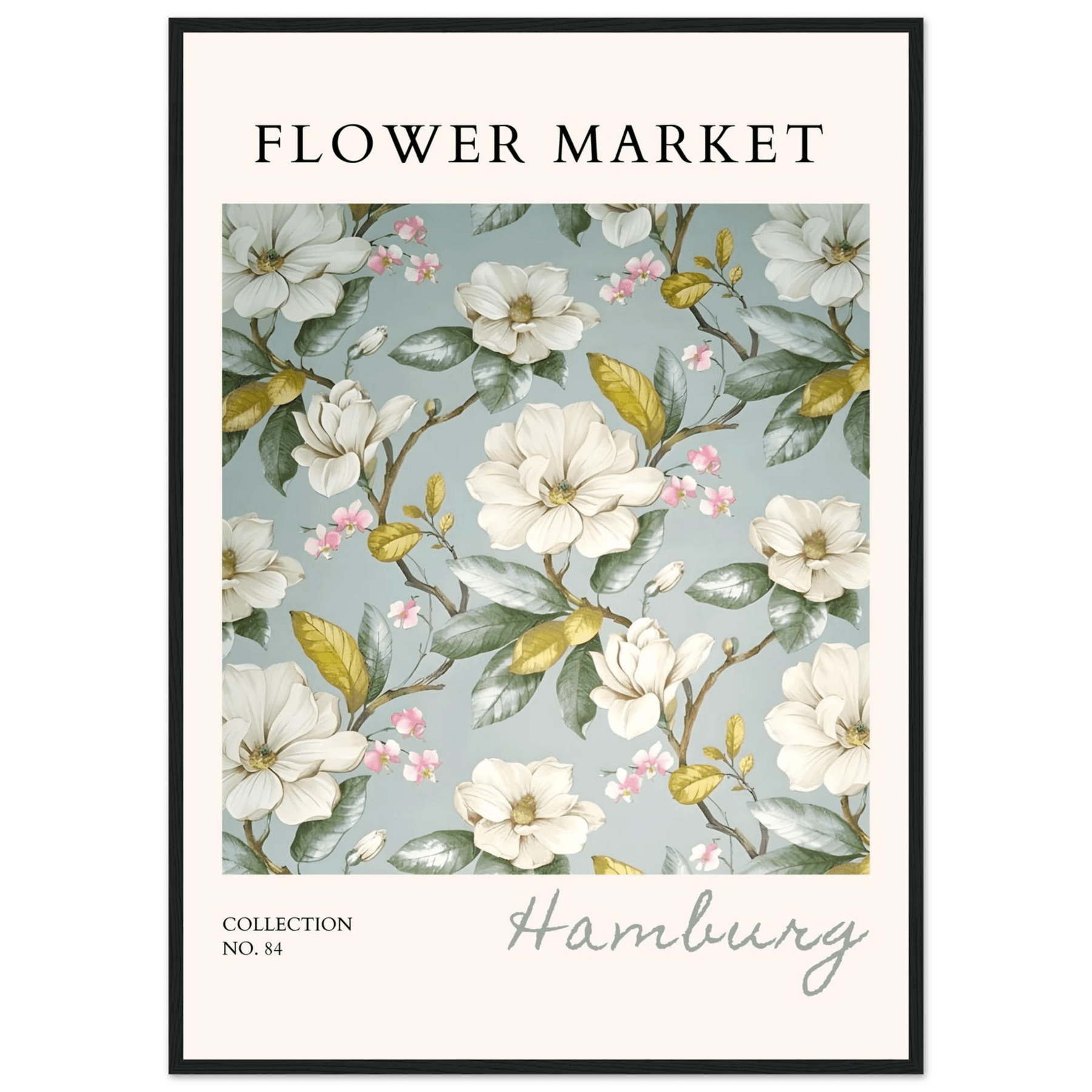 Hamburg 'Flower Market' Framed Poster – Elegant Magnolia & Cherry Blossom Art Print | Ready-to-Hang