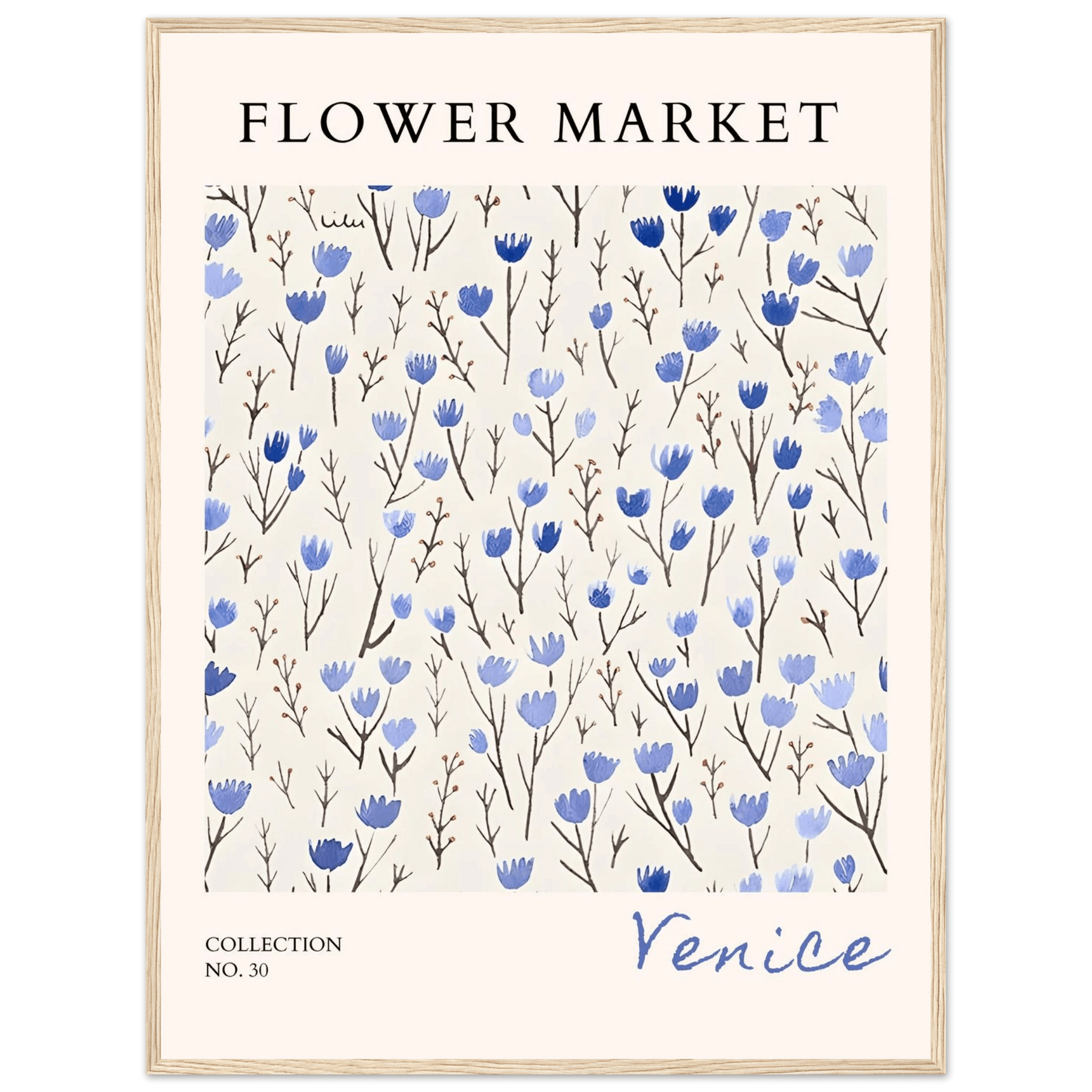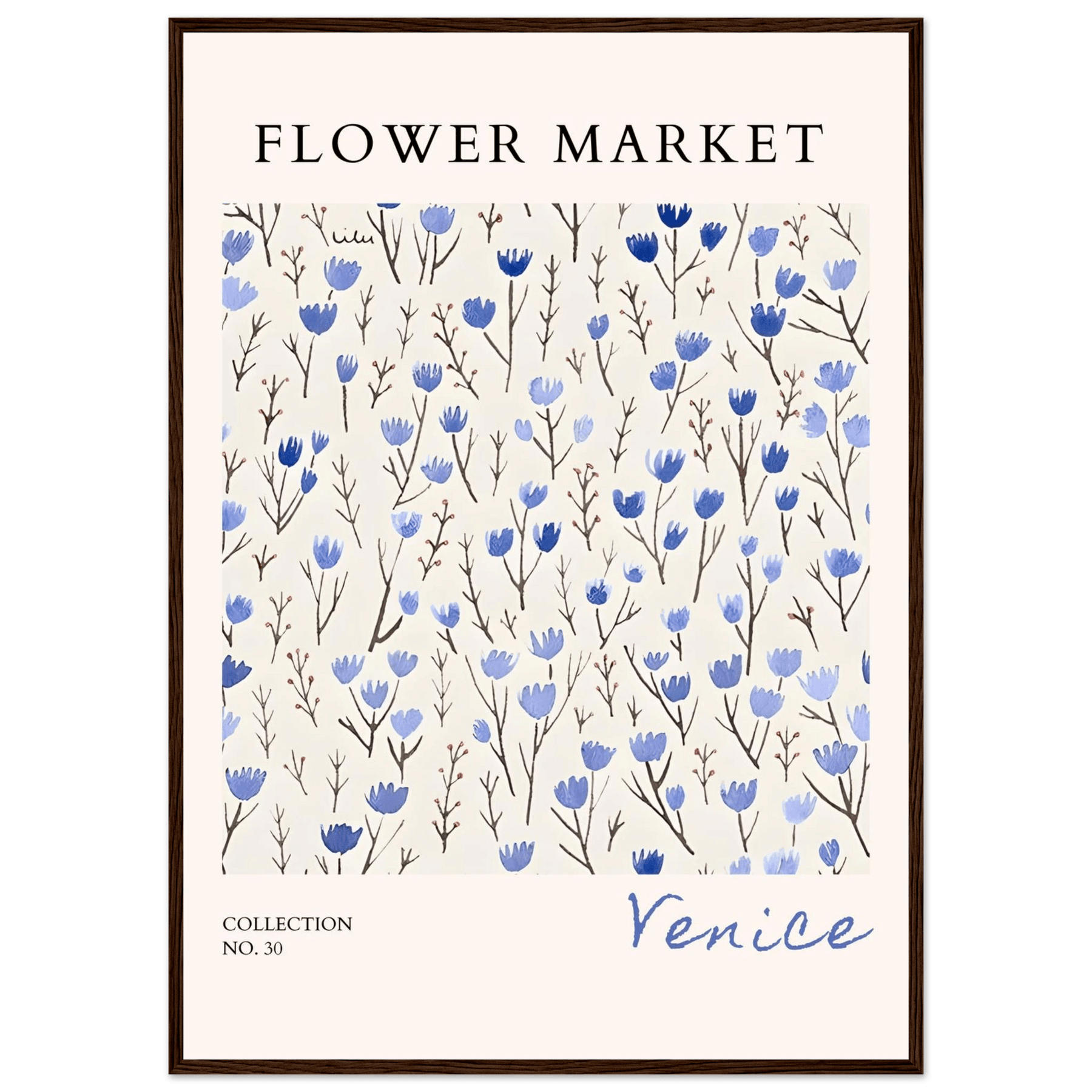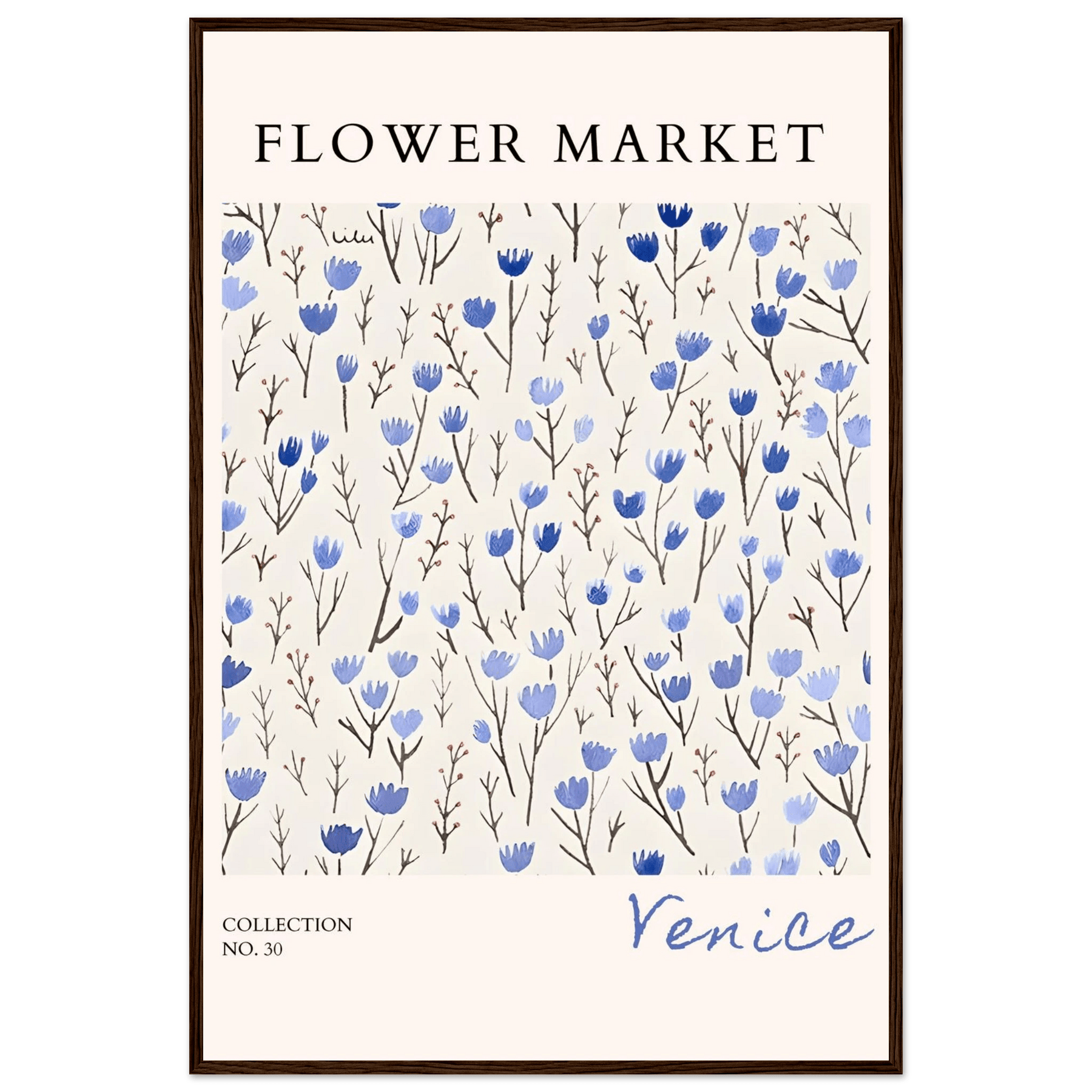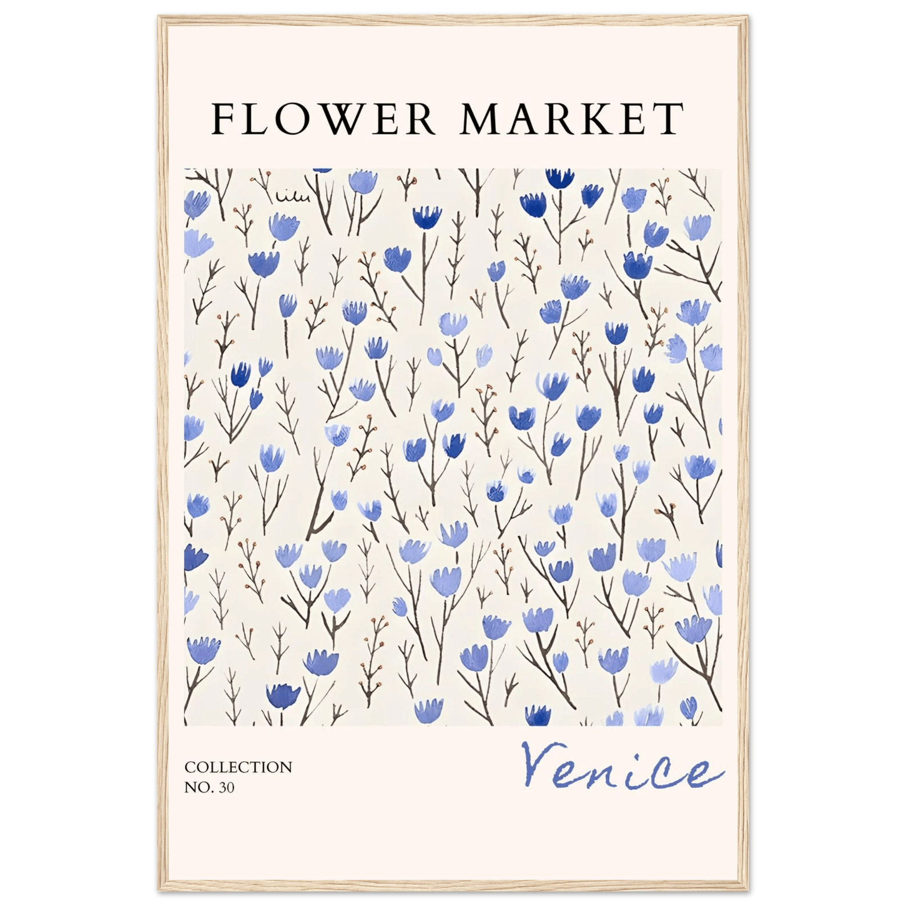 Venice Flower Market Framed Poster – Serene Blue Floral Art Print | Ready-to-Hang Wall Decor