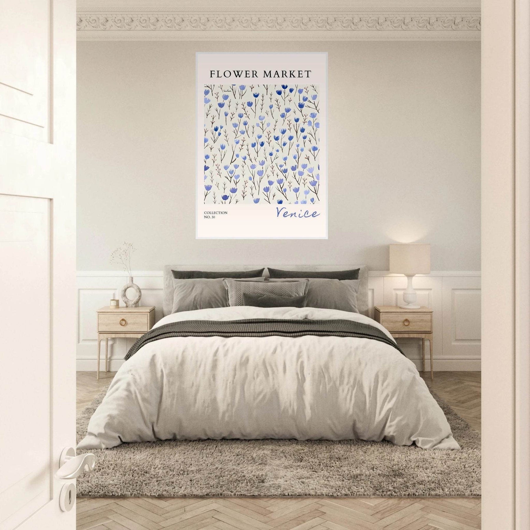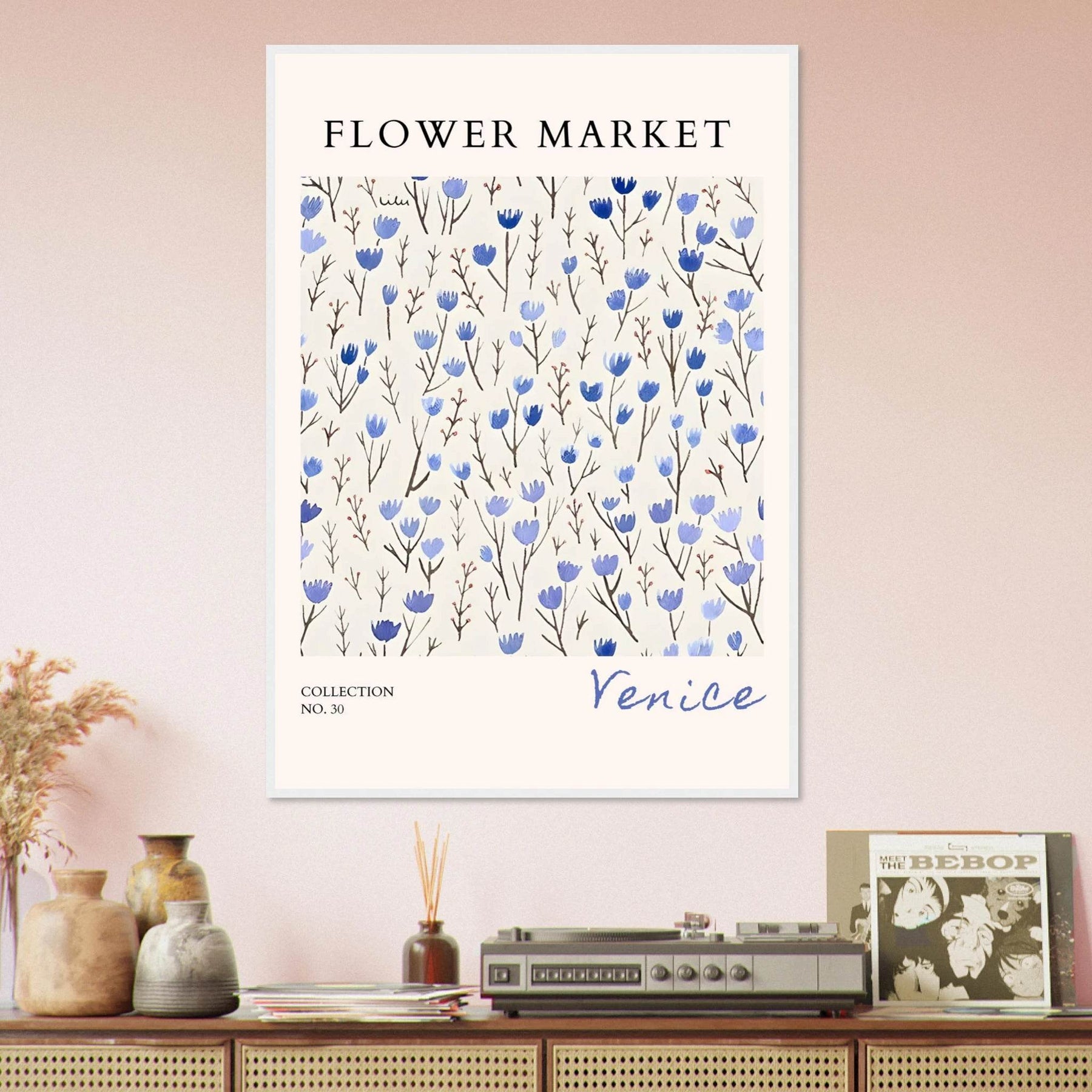 Invest in more than just wall decor; embrace a serene experience every time you gaze upon this stunning framed poster. The Venice Flower Market Framed Poster – Serene Blue Floral Art Print | Ready-to-Hang Wall Decor promises to elevate your interior design while offering a calming presence in your home.