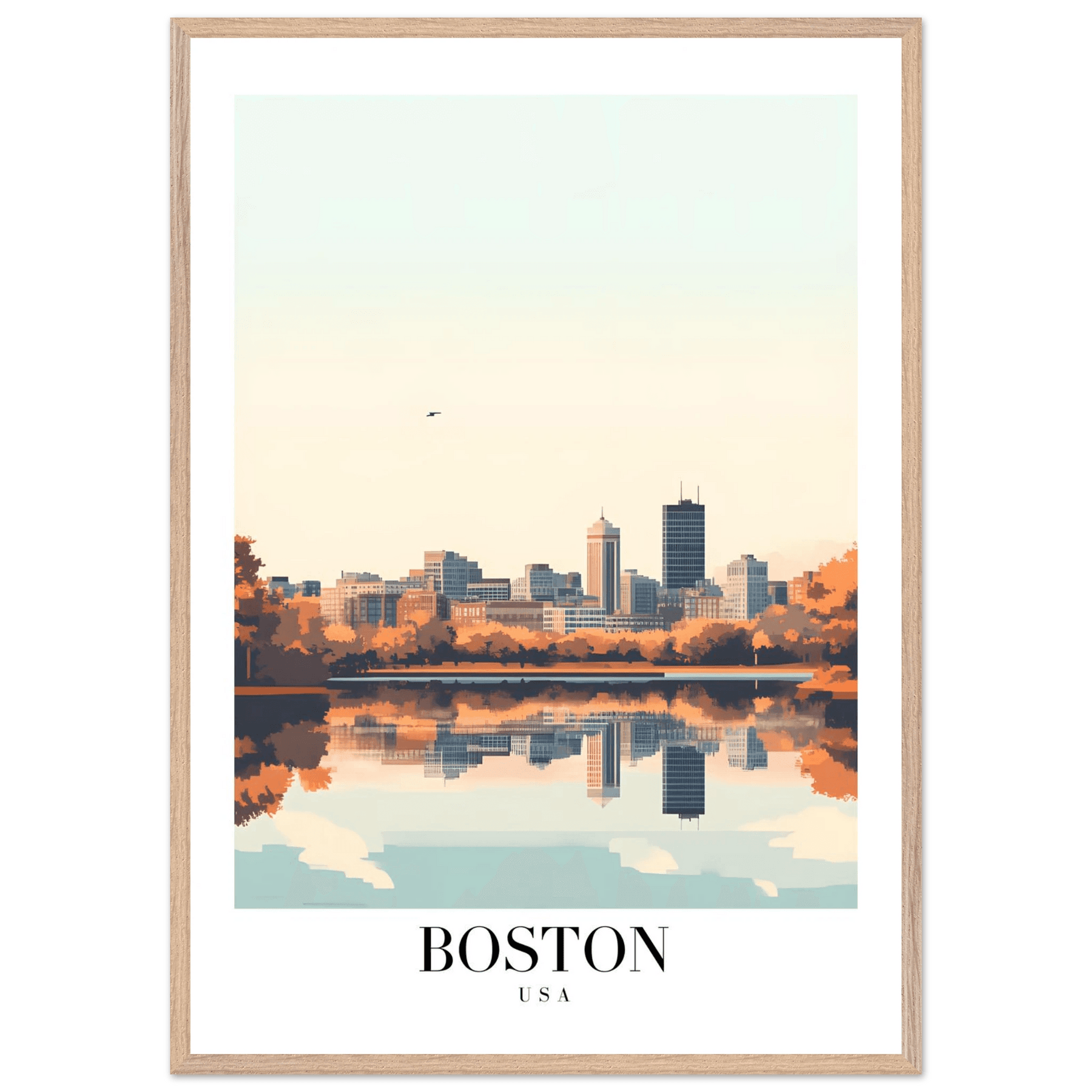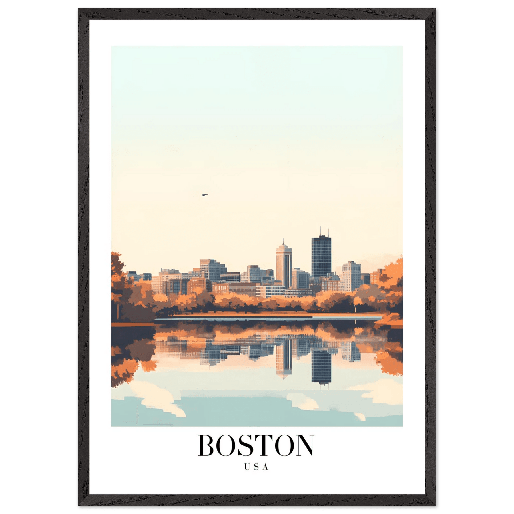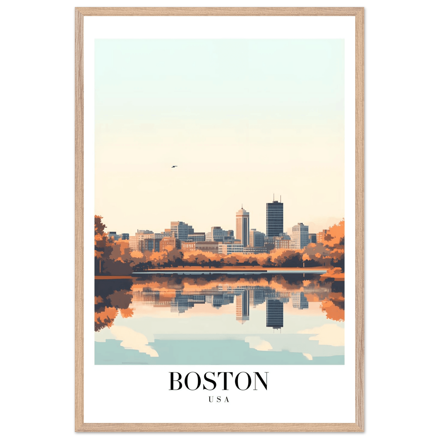 Boston Cityscape Framed Poster – Modern Travel Wall Art with Wooden Frame & Multiple Sizes