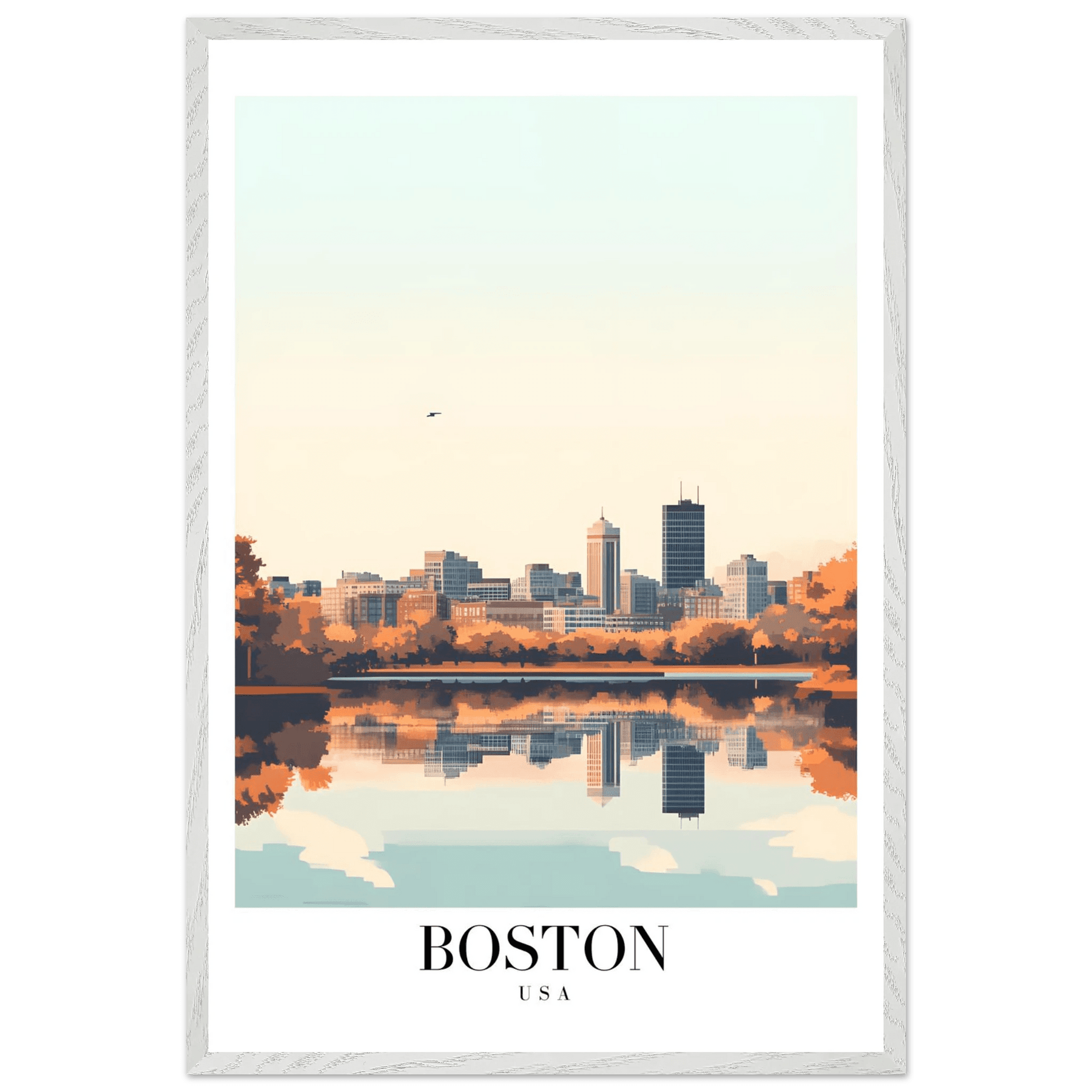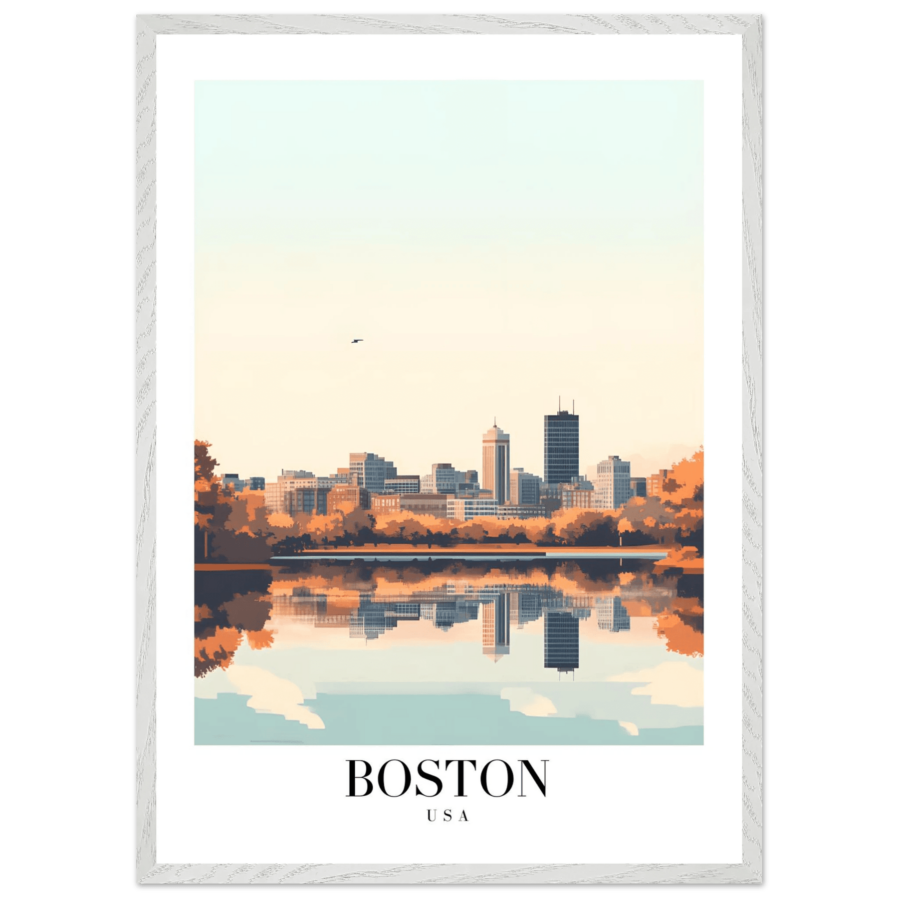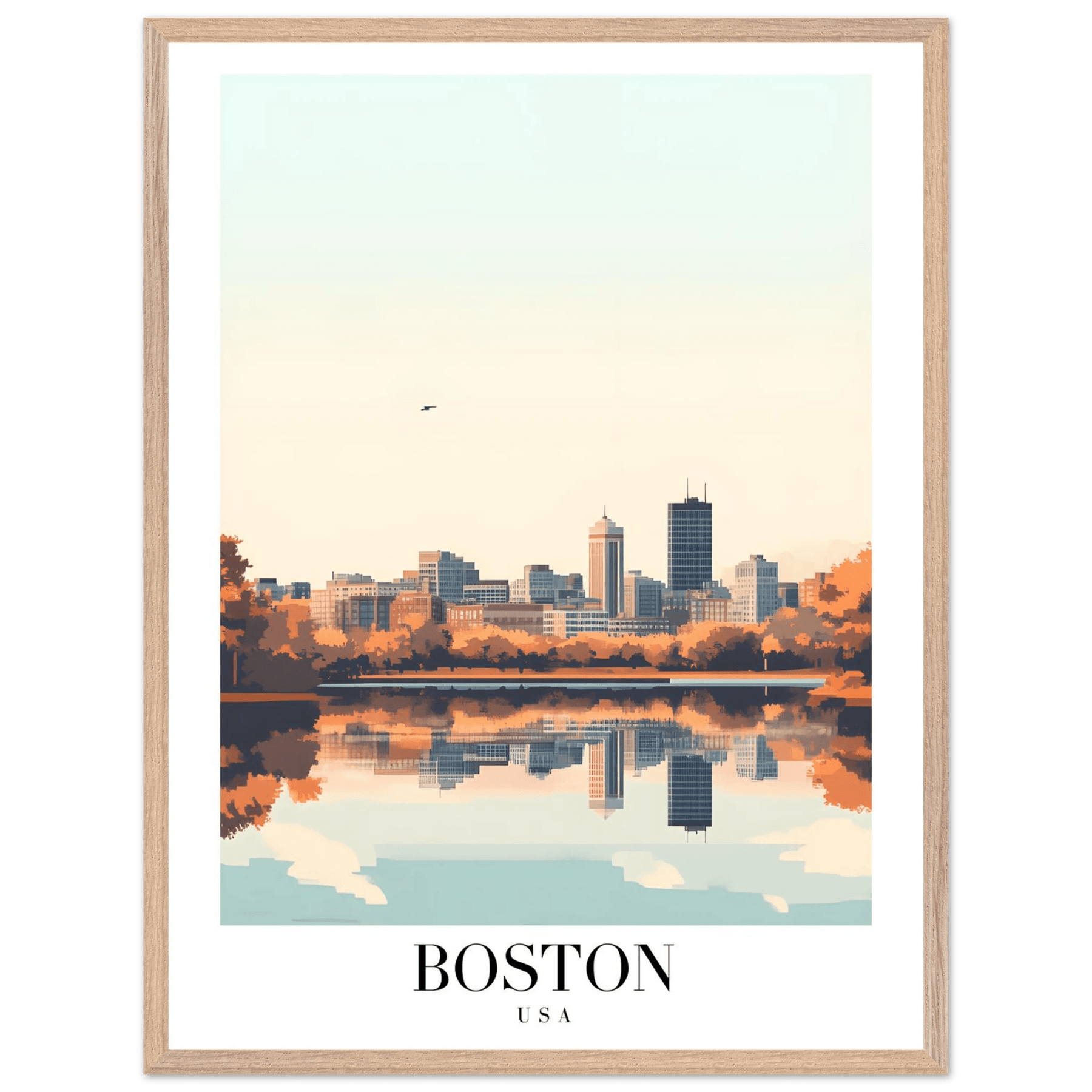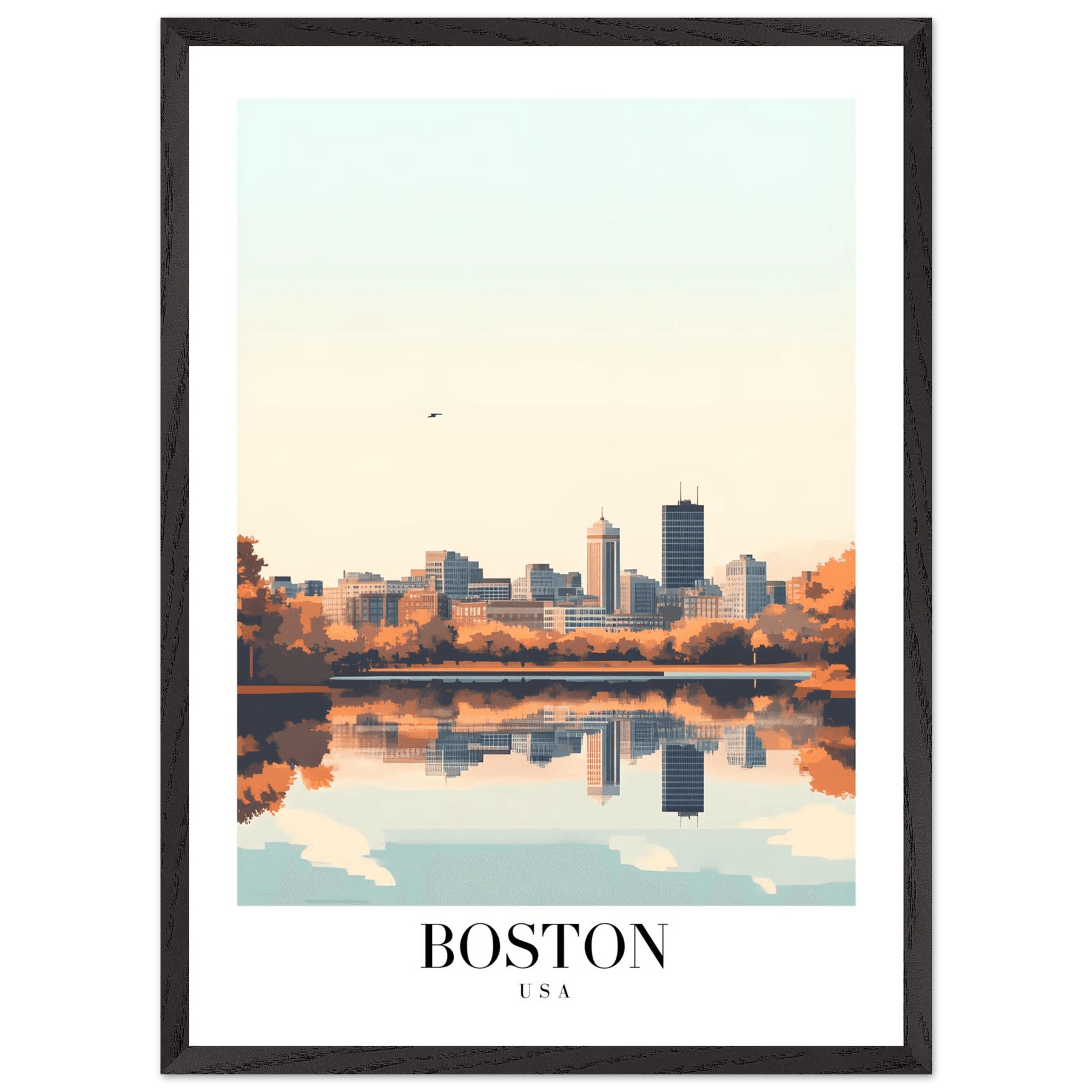 Boston Cityscape Framed Poster – Modern Travel Wall Art with Wooden Frame & Multiple Sizes